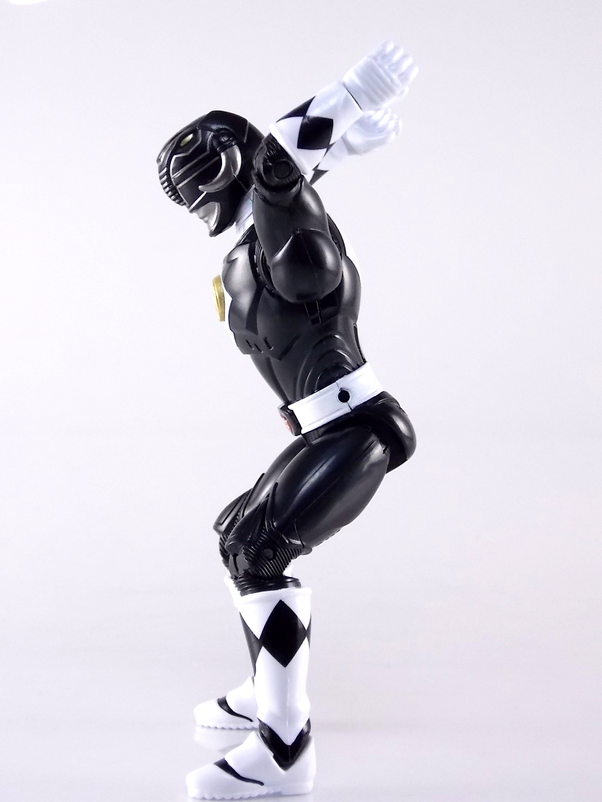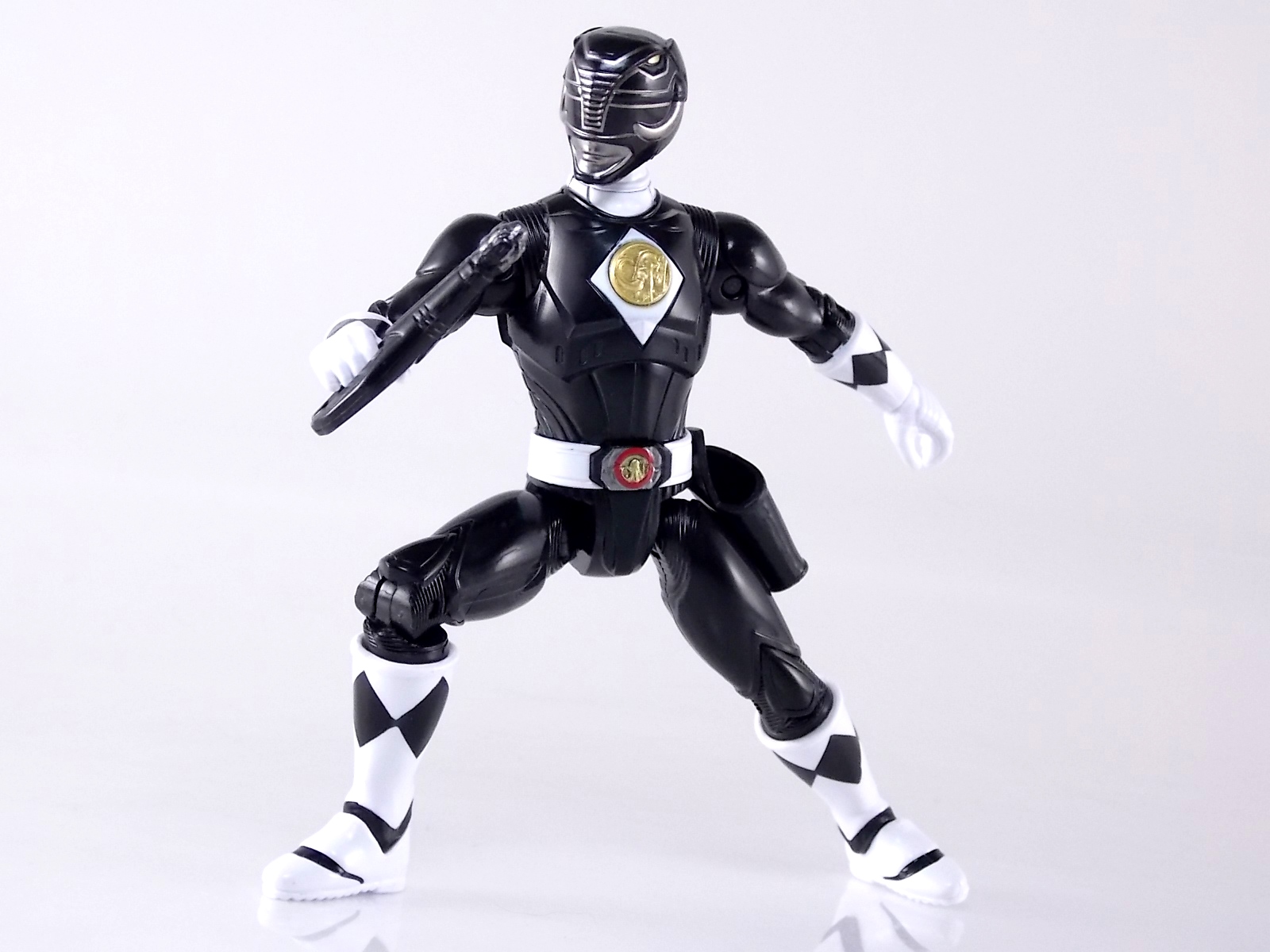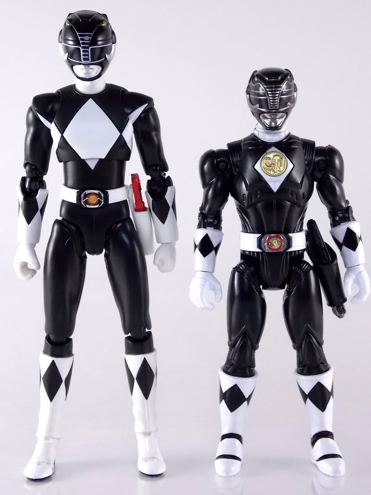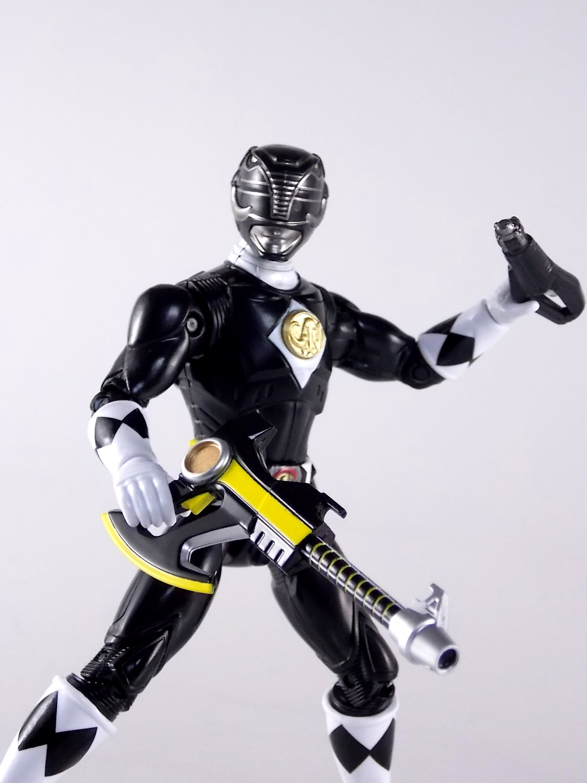 TokuNation is continuing it's trip down memory lane with 1995 film Mighty Morphin Power Rangers: The Movie! And the second figure we're in this series of galleries is the 5" Legacy Movie Black Ranger! Packaging If you haven't picked up a Power Rangers Legacy figure by now, the Movie Black Ranger follows the same basic formula. Packaged in a triangular box Bandai has done the best job they could at evoking the look of the vintage toys from the original movie toyline. Just as with the Legacy Mighty Morphin TV themed figures this box perfectly replicates the look of the movie toys, right down to the more bare bones black & white colors. It may look a little more drab but it's still a great package. Included on the front of the box is a call out to the 1995 film and to further that connection on the back is a brief description of the films plot. Even going so far as to mention Ivan Ooze & Dulcea. A brief bio about the Black Ranger (Adam) is also given. Oddly the bio only makes mention of his Frog Ninjazord, when technically speaking these figures are based on the rangers pre-ninja based suits from early into the film. The rangers received the ninja zords/powers after losing their original powers. Though the Mastodon and other dino zords were never seen in the film, Adam calls out "Mastodon!" to morph in the initial fight, and the Mastodon coin is still present both on his belt and chest on this figure. An oddity but not necessarily a detriment depending on how picky you are. Figure As far as 5" figures go the Movie Black Ranger offers a bit more than the standard fare. To start you should know that this line of 5" Movie figures is literally the first time ever that the actual movie designs have been put into figure form. The original toys were mere metallic repaints of the TV show toys in movie packaging. But this figure is the real deal. From a sculpt and detail perspective alone this figure is leagues beyond the generally simple toys of the normal Power Rangers retail lines. Where those 5" figures feel flat and artificially roided out, the movie rangers are covered in armored technological detailing that really goes a long way to replicating the look of the actual costume. Since these suits were more armor than spandex they had a lot of detail to them, so I'm pleased that the toy has managed to capture that. Though the finer details are pretty bad. The morpher/belt area and chest emblem have incredibly soft details. They just aren't properly sculpted. and look like they're made of butter or something. The head is also a little bit off to me, a little fuzzy and undefined. Sadly the same can be said for the gray paint apps on the head. On the articulation front the figure has much of what we've come to expect. Hips that swing forward/back & side to side. Knees & shin swivels with surprisingly decent rocker ankles. No waist joint sadly. The arms however are as bad as I've come to expect generally. Simple shoulders that move forward & back and can't properly stretch out to allow the arm a full range of up/down movement. This is mostly due to the sculpted in shoulder pads, but it keeps the arms from getting into dynamic poses. Elbow articulation is limited to a 90 degree angle only, and the wrists while on ball joints don't have much clearance to make use of them, they also pop off. A lot. The arms are kind of frustrating to me though as a whole. A simple bicep swivel could have made them so much more dynamic. The head is on a fairly decent ball joint that allows for a good bit of tilting in all the primary directions too. I honestly didn't expect it to be as decent as it is. If only it had a little more clearance in the back. Also a peg hole is built into the left side of the belt area to accommodate the included accessories, or a similar one from another 5" Ranger figure. While I don't own the 5" Legacy MMPR TV Black Ranger to compare this figure too, I did have the S.H. Figuarts Mammoth Ranger on hand for a general comparison. Accessories 1 - holster. Used for the included weapon accessory 1 - Power Blaster/Blade Blaster. This is an odd one. While this item most certainly is in the film, in fact the 5 core rangers each have one holstered in the movie, none of them are ever used or seen outside the holster. Though the name Power Blaster has been given to the unused weapon, it's apparent that it's very much meant to be the film version of the TV shows Blade Blaster. The sculpt is a bit soft but whats worse is there are only minimal paint apps on the tip of the blade. Nothing elsr. Just a cheap piece of softly sculpted plastic. Sadly that's it. The Movie Black Ranger comes with nothing else at all. I really expected at least the Power Axe to be included as some sort of bonus to justify the supposed collector nature of this figure and it's price. While it may never have been seen in the film, the Blade/Power Blasters were never used either despite their appearance. And the weapon could easily have just been a repack form the Legacy 5" TV figure. As with the Movie Red Rangers' lack of an additional accessory I expected better. But in the case of this figure which comes with nothing else at all I'm truly disappointed. For the characters who didn't use special power ups in the film they should have included something, even a repacked weapon to make them worth while. Final Thoughts Like I said in the Movie Red Ranger review, I love that original movie. Terrible characters, plot, CG and all. The suit designs have never been properly put into toy form and that's what propelled my purchases here. While I already thought the Red Ranger was overpriced at $16.99, the Legacy 5" Movie Black Ranger is even more so. It's a nigh identical figure with one less accessory and an already lite accessory count but for the same price. Despite my general love for the Black Ranger it's a tough pill to swallow.