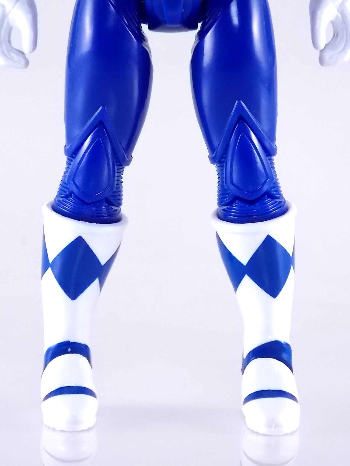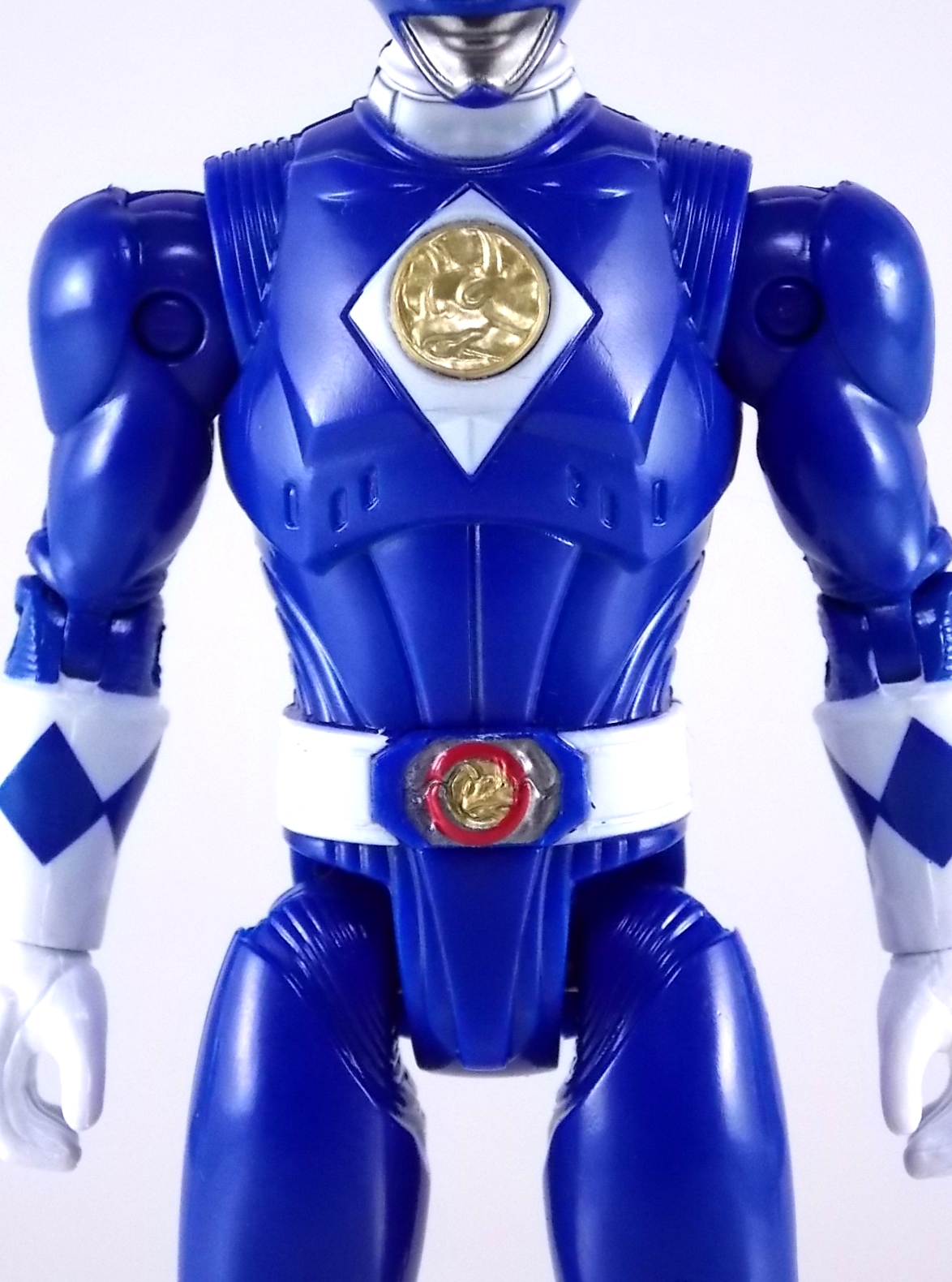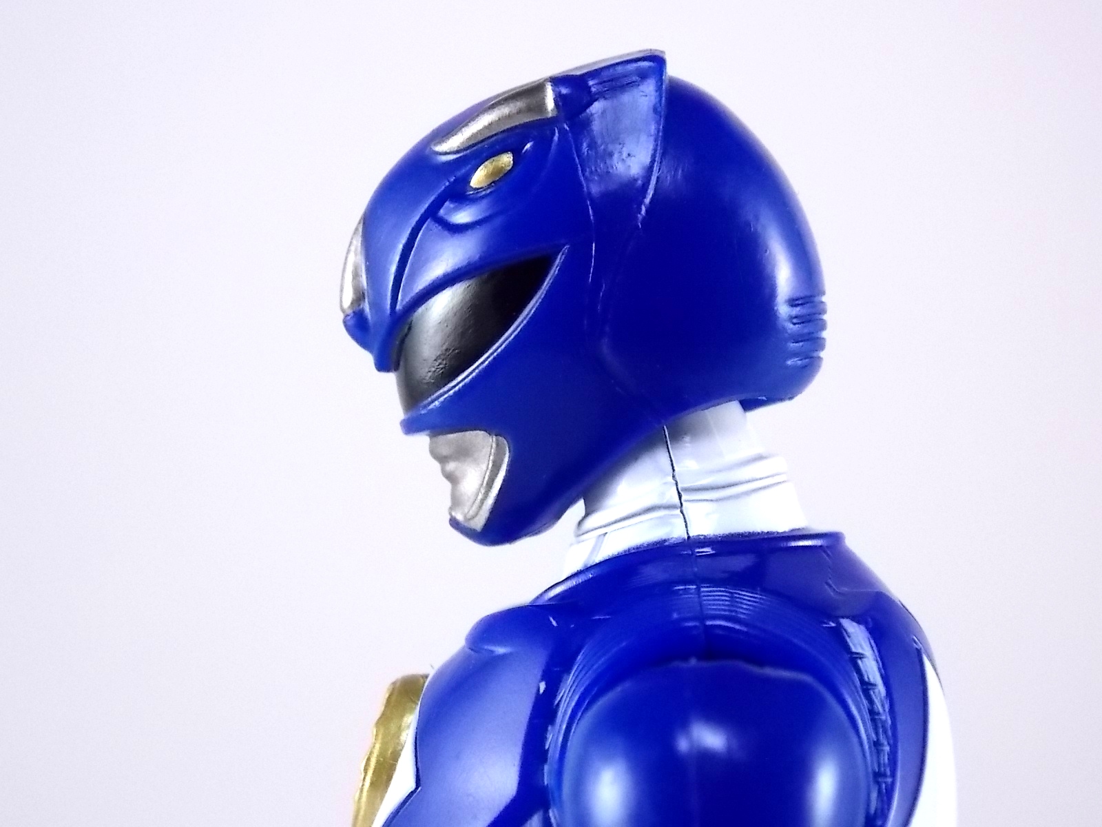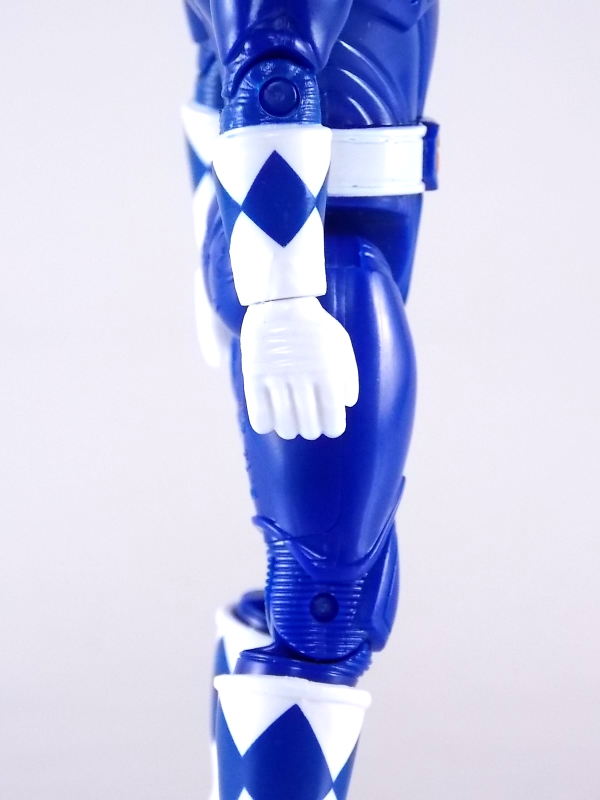 TokuNation is continuing it's celebration of the past with the 1995 film Mighty Morphin Power Rangers: The Movie! After a short hiatus we're back with yet another figure gallery honoring this movie, the 5" Legacy Movie Blue Ranger! Packaging If you haven't picked up a Power Rangers Movie Legacy figure by now, the Movie Blue Ranger follows the same basic formula. Packaged in a triangular box Bandai has done the best job they could at evoking the look of the vintage toys from the original movie toyline. Just as with the Legacy Mighty Morphin TV themed figures this box perfectly replicates the look of the movie toys, right down to the more bare bones black & white colors. It may look a little more drab but it's still a great package. Included on the front of the box is a call out to the 1995 film and to further that connection on the back is a brief description of the films plot. Even going so far as to mention Ivan Ooze & Dulcea. A brief bio about the Blue Ranger (Billy) is also given. Oddly the bio only makes mention of his Wolf Ninjazord, when technically speaking these figures are based on the rangers pre-ninja based suits from early into the film. The rangers received the ninja zords/powers after losing their original powers. Though the Triceratops and other dino zords were never seen in the film, Billy calls out "Triceratops!" to morph in the initial fight, and the Triceratops coin is still present both on his belt and chest on this figure. An oddity but not necessarily a detriment depending on how picky you are. More odd though I suppose was the total ignorance of the Thunder Zords having even existed in this films continuity. Figure As far as 5" figures go the Movie Blue Ranger at first glance appears to offer more than the stadard. To start you should know that this line of 5" Movie figures is literally the first time ever that the actual movie designs have been put into figure form. The original toys were mere metallic repaints of the TV show toys in movie packaging. But this figure is the real deal. From a sculpt and detail perspective alone this figure is leagues beyond the generally simple toys of the normal Power Rangers retail lines. Where those 5" figures feel flat and artificially roided out, the movie rangers are covered in armored technological detailing that really goes a long way to replicating the look of the actual costumes. Since these suits were more armor than spandex they had a lot of detail to them, so I'm pleased that the toy has managed to capture that. Though the finer details are pretty bad. The morpher/belt area and chest emblem have incredibly soft details. They just aren't properly sculpted. and look like they're made of butter or something. The head is also a little bit off to me, a little fuzzy and undefined. On the articulation front the figure has much of what we've come to expect. Hips that swing forward/back & side to side. Knees & shin swivels with surprisingly decent rocker ankles. No waist joint sadly. The arms however are as bad as I've come to expect generally. Simple shoulders that move forward & back and can't properly stretch out to allow the arm a full range of up/down movement. This is mostly due to the sculpted in shoulder pads, but it keeps the arms from getting into dynamic poses. Elbow articulation is limited to a 90 degree angle only, and the wrists while on ball joints don't have much clearance to make use of them, they also pop off. A lot. The arms are kind of frustrating to me though as a whole. A simple bicep swivel could have made them so much more dynamic. The head is on a fairly decent ball joint that allows for a good bit of tilting in all the primary directions too. I honestly didn't expect it to be as decent as it is. If only it had a little more clearance in the back. Also a peg hole is built into the left side of the belt area to accommodate the included accessories, or a similar one from another 5" Ranger figure. While I don't own the 5" Legacy MMPR TV Blue Ranger to compare this figure too, I did have the S.H. Figuarts Tricera Ranger on hand for a general comparison. Accessories 1 - holster. Used for the included weapon accessory 1 - Power Blaster/Blade Blaster. This is an odd one. While this item most certainly is in the film, in fact the 5 core rangers each have one holstered in the movie, none of them are ever used or seen outside the holster. Though the name Power Blaster has been given to the unused weapon, it's apparent that it's very much meant to be the film version of the TV shows Blade Blaster. The sculpt is a bit soft but whats worse is there are only minimal paint apps on the tip of the blade. Nothing elsr. Just a cheap piece of softly sculpted plastic. 1 - Stega Stinger. Though I would generously call it that. A small hunk of blue plastic that's hardly accurate to the real thing and has no functionality or unique sculpting at all that would lead you to believe it's a grappling hook device as it was on screen. Honestly it looks like a poor mans walkie talkie more than anything and can't be used for any really dynamic purposes, Sadly that's it. The Movie Blue Ranger comes only with the above items. I'd really hopedat least the Power Lance to be included as some sort of bonus to justify the supposed collector nature of this figure and it's price. While it may never have been seen in the film, the Blade/Power Blasters were never used either despite their appearance. And the weapon could easily have just been a repack form the Legacy 5" TV figure. As with the Movie Red Ranger, Movie Black Ranger, & Movie Pink Rangers' lack of an additional accessory I expected better. After this many figures though I shouldn't be surprised. Final Thoughts As I've said in my previous Movie Ranger reviews, I love that original movie. Terrible characters, plot, CG and all. The suit designs have never been properly put into toy form til now. Which nudged me into buying these figures. However I find myself disappointed with each of the