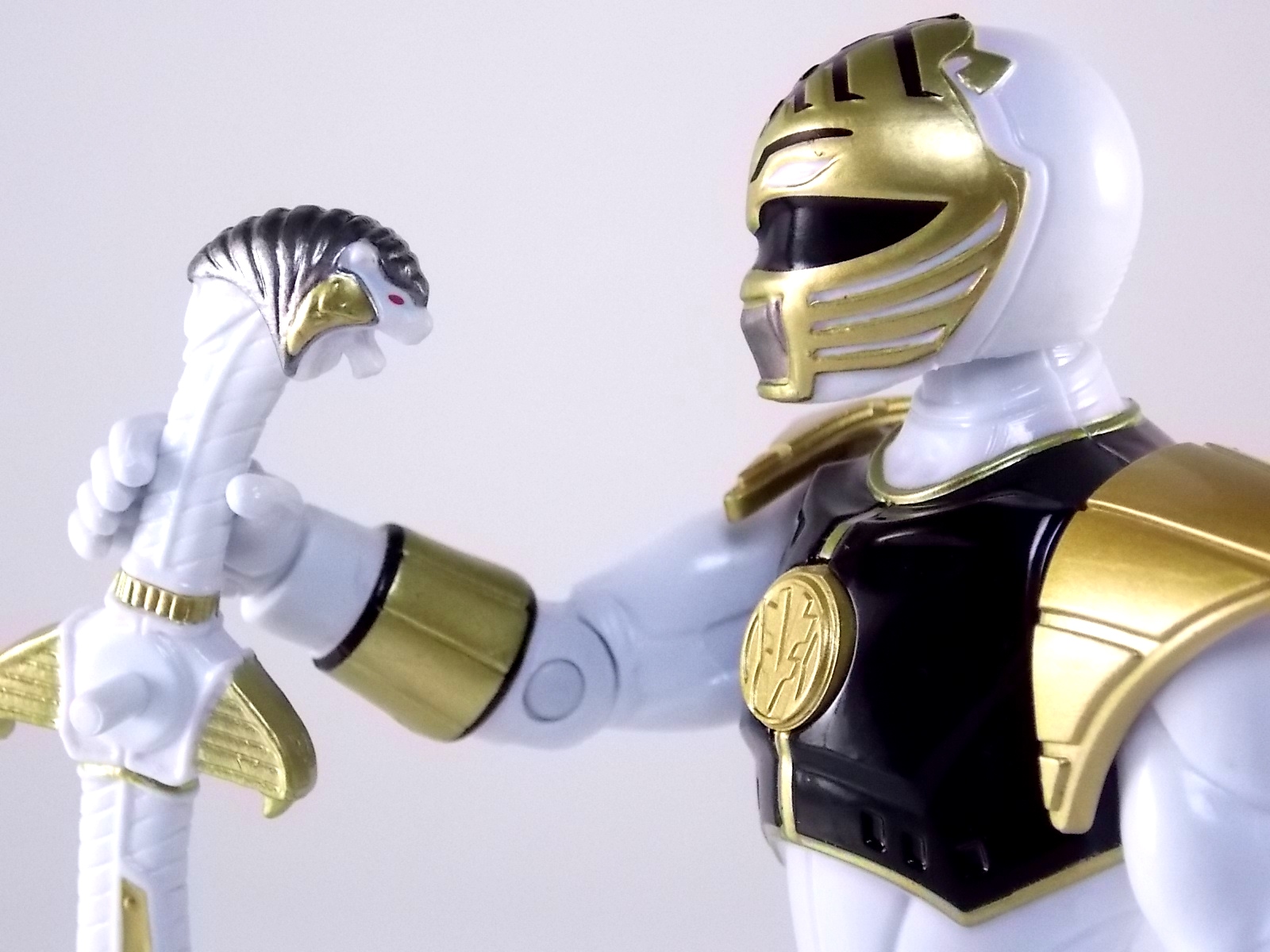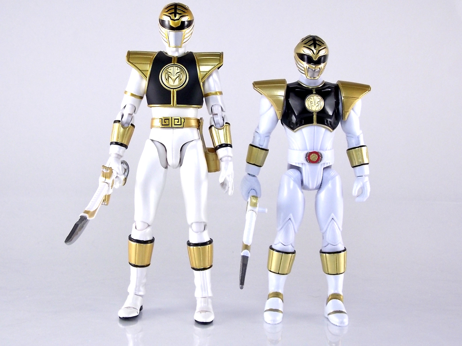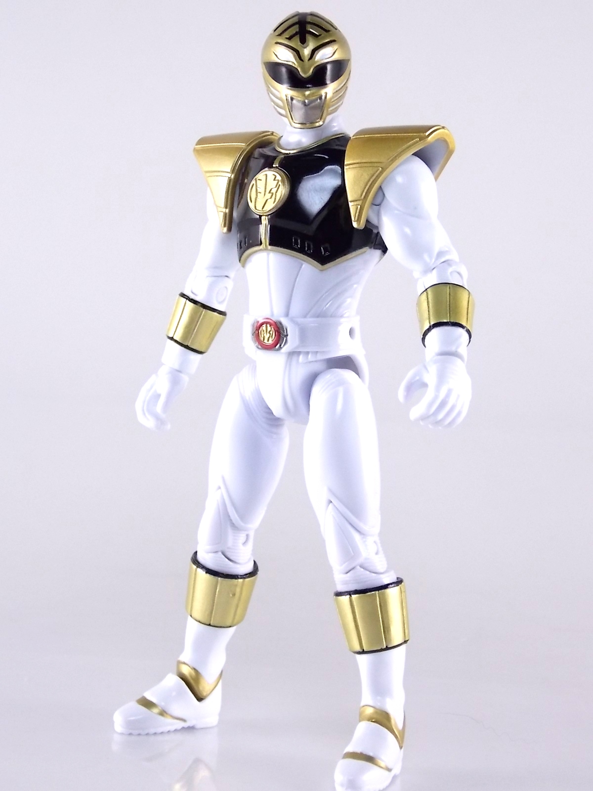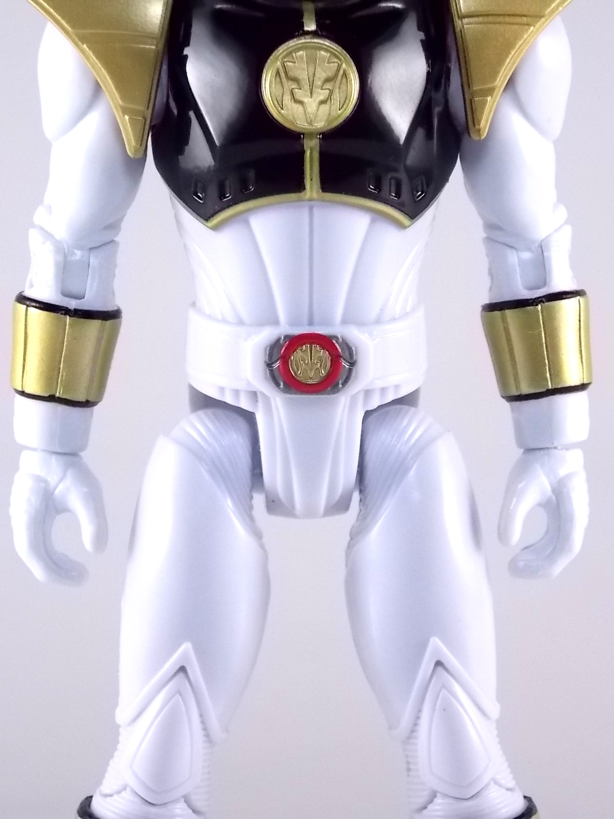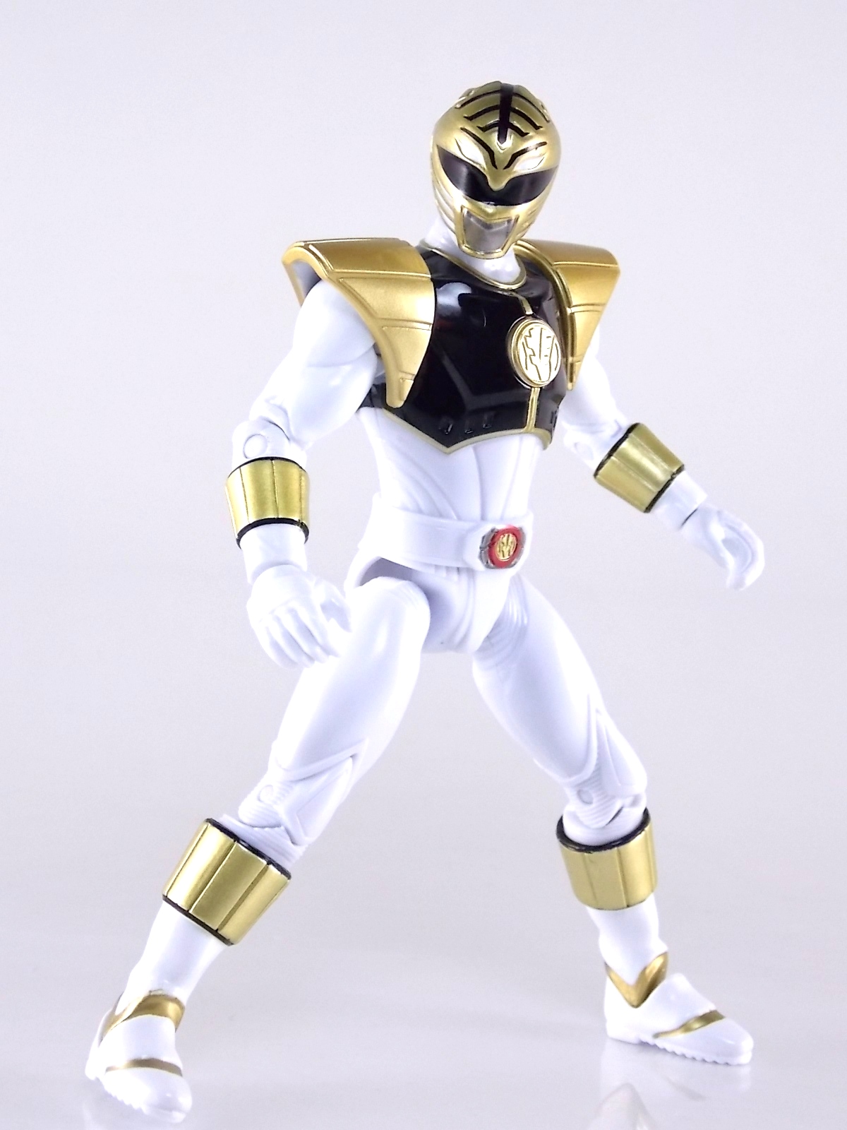 TokuNation is back with it's FINAL installment in our recent series of Mighty Morphin Power Rangers: The Movie galleries! The 7th and final figure in Bandai of America's Lecay 5" Movie line, the Movie White Ranger! Packaging If you haven't picked up a Power Rangers Movie Legacy figure by now, the Movie White Ranger follows the same basic formula. Packaged in a triangular box Bandai has done the best job they could at evoking the look of the vintage toys from the original movie toyline. The black & white color scheme may look a little more drab but it's still a great package. Showcased on the front of the box is a call out to the 1995 film itself and to further that connection on the back is a brief description of the films plot. Even going so far as to mention Ivan Ooze & Dulcea. A brief bio about the White Ranger (Tommy) is also given. Oddly the bio only makes mention of his Falconzord, when actually these figures are based on the rangers pre-ninja based suits from early into the film. The rangers received the ninja zords/powers after losing their original powers. Though the Tigerzord and other Dino & Thunder zords were never seen in the film, Tommy calls out "Tigerzord!" to morph in the initial fight, and the Tigerzord coin is still present both on his belt and chest on this figure. An oddity but not necessarily a detriment depending on how picky you are. More odd though I suppose was the total ignorance of the Thunder Zords having even existed in this films continuity. Figure As far as 5" figures go the Movie White Ranger at first glance appears to offer more than the standard. To start you should know that this line of 5" Movie figures is literally the first time ever that the actual movie designs have been put into figure form. The original toys were mere metallic repaints of the TV show toys in movie packaging. But this figure is the real deal. From a sculpt and detail perspective alone this figure is leagues beyond the generally simple toys of the normal Power Rangers retail lines. Where those 5" figures feel flat and artificially roided out, the movie rangers are covered in armored technological detailing that really goes a long way to replicating the look of the actual costumes. Since these suits were more armor than spandex they had a lot of detail to them, so I'm pleased that the toy has managed to capture that. Though finer details at least on this figure are a bit superior to the other 5 rangers released in this line. Though the head still feels a little undefined. On the articulation front the figure has much of what we've come to expect. Hips that swing forward/back & side to side. Knees & shin swivels with surprisingly decent rocker ankles. No waist joint sadly. The arms however are as bad as I've come to expect generally. Simple shoulders that move forward & back and can't properly stretch out to allow the arm a full range of up/down movement. Though it must be pointed out that the shoulder armor is hinged to move up and down a little bit to make this more manageable. Already an improvement on the core 5 rangers. Elbow articulation is limited to a 90 degree angle only, and the wrists while on ball joints don't have much clearance to make use of them, they also pop off. A lot. The arms are still kind of frustrating to me but this figure succeeds in having a slightly better version of them. The head is on a fairly decent ball joint that allows for a good bit of tilting in all the primary directions too. And after seeing this same design 6 times over it's still about as serviceable as when I first encountered it. Also a peg hole is built into the left side of the belt area to accommodate the included accessory, or a similar one from another 5" Ranger figure. While I don't own the 5" Legacy MMPR TV White Ranger to compare this figure too, I did have the S.H. Figuarts Kiba Ranger on hand for a general comparison. Accessories The Legacy 5" Movie White Ranger includes a mere single accessory. Though arguably this figure has the most appropriate accessory placement of any of the Movie Legacy figures: 1 - Saba. The patented sidekick and trademark special weapon of the White ranger. Honestly this is a pretty great accessory, it's detailed pretty nicely, painted very very well and is just about the right scale to the figure. It has a peg built into it to allow you to store it on the figures hip which is odd. I would have thought a holster would have been more appropriate, especially considering the other 5 rangers have them. And that's it. The Movie White Ranger comes only with Saba. Unlike the other 5 figures in this line I'm okay with this. Tommy only ever used Saba in both the TV show and Movie. He didn't use a Power Blaster and had no other additional weapons or powers exclusive to him for the film. Would it have been nice for a Blaster & Holster to be thrown in as bonuses? Sure. But in this case I'm not bothered by the lack of them either. Final Thoughts And that's that! After 7 long reviews and galleries we've officially taken a look at Bandai of America's ENTIRE Legacy offering for the original Mighty Morphin Power Rangers Movie! It's easy for me to admit that a majority (all but one of these figures) were quite disappointing to me personally. What's more odd is that the White Ranger would wind up being the one not only with the best design and QC but the one I liked the most. This figure seems to have a bit more thought put into than the other 5 rangers or Ivan. To check out our previous gallery/reviews of the other Movie Legacy 5" figures follow the helpful links below: Legacy 5" Movie Red Ranger Gallery Legacy 5" Movie Black Ranger Gallery Legacy 5" Movie Pink Ranger Gallery Legacy 5" Movie Blue Ranger Gallery Legacy 5" Movie Yellow Ranger Gallery Legacy 5" Movie Ivan Ooze Gallery May the power protect you!