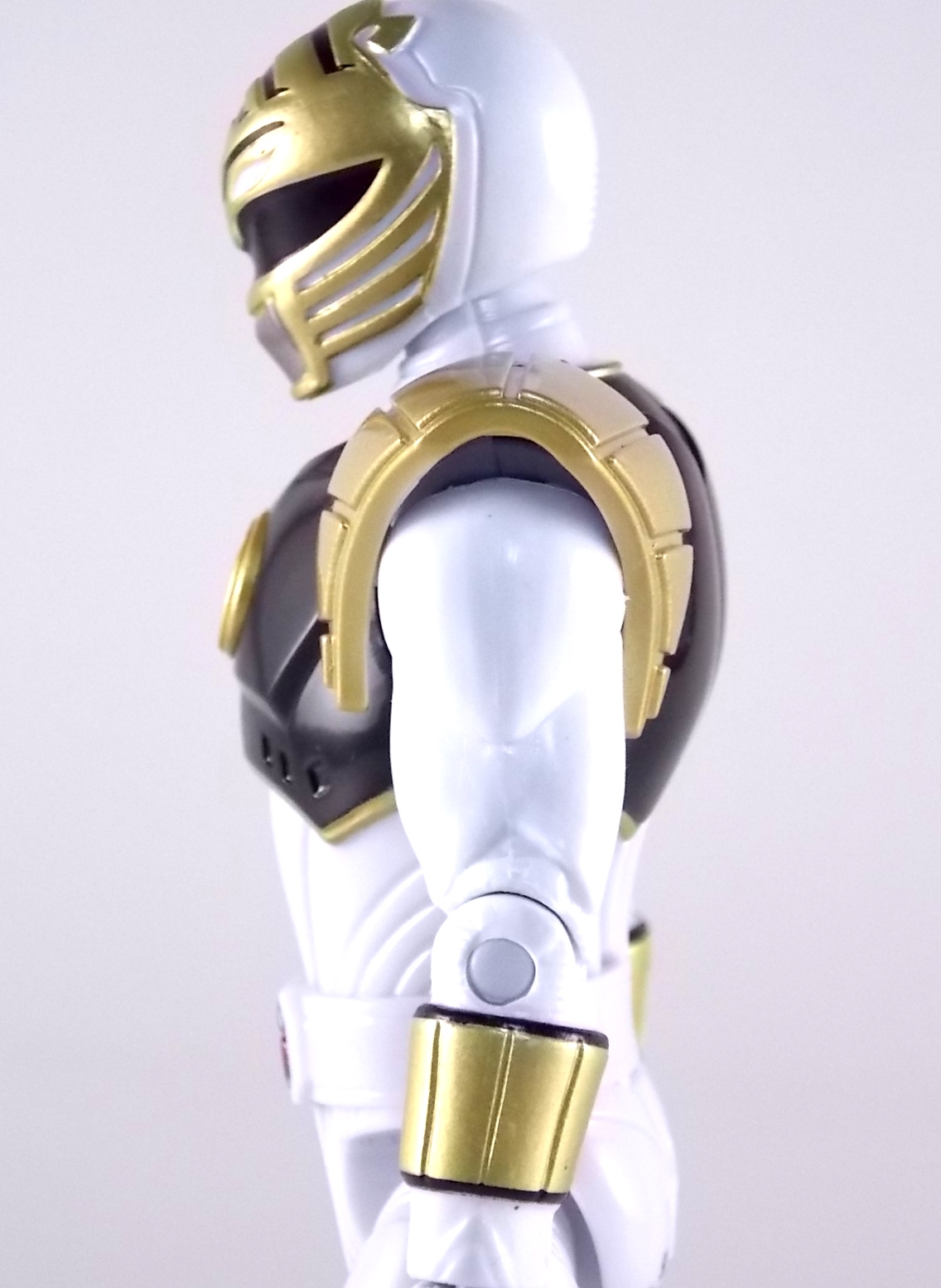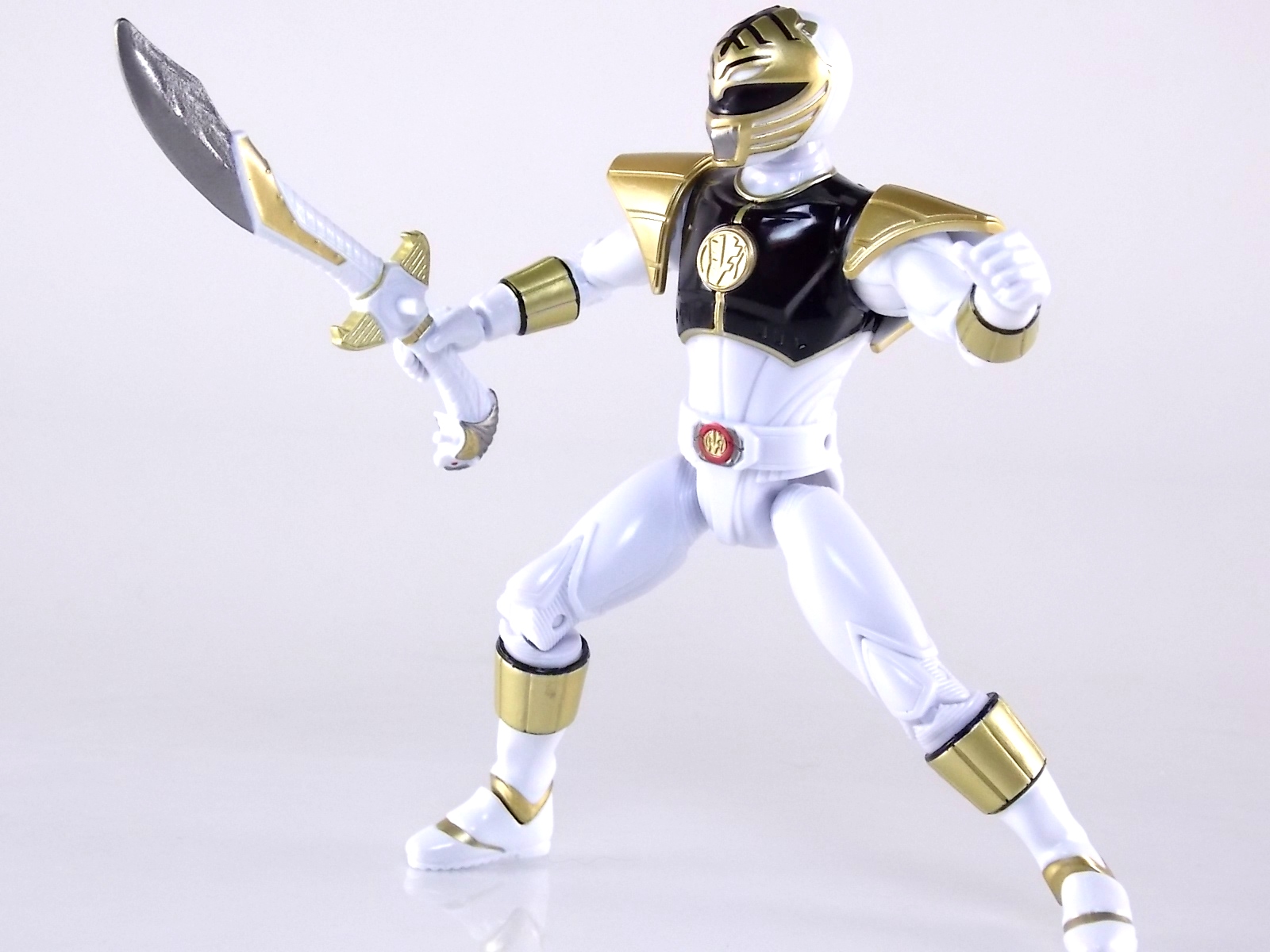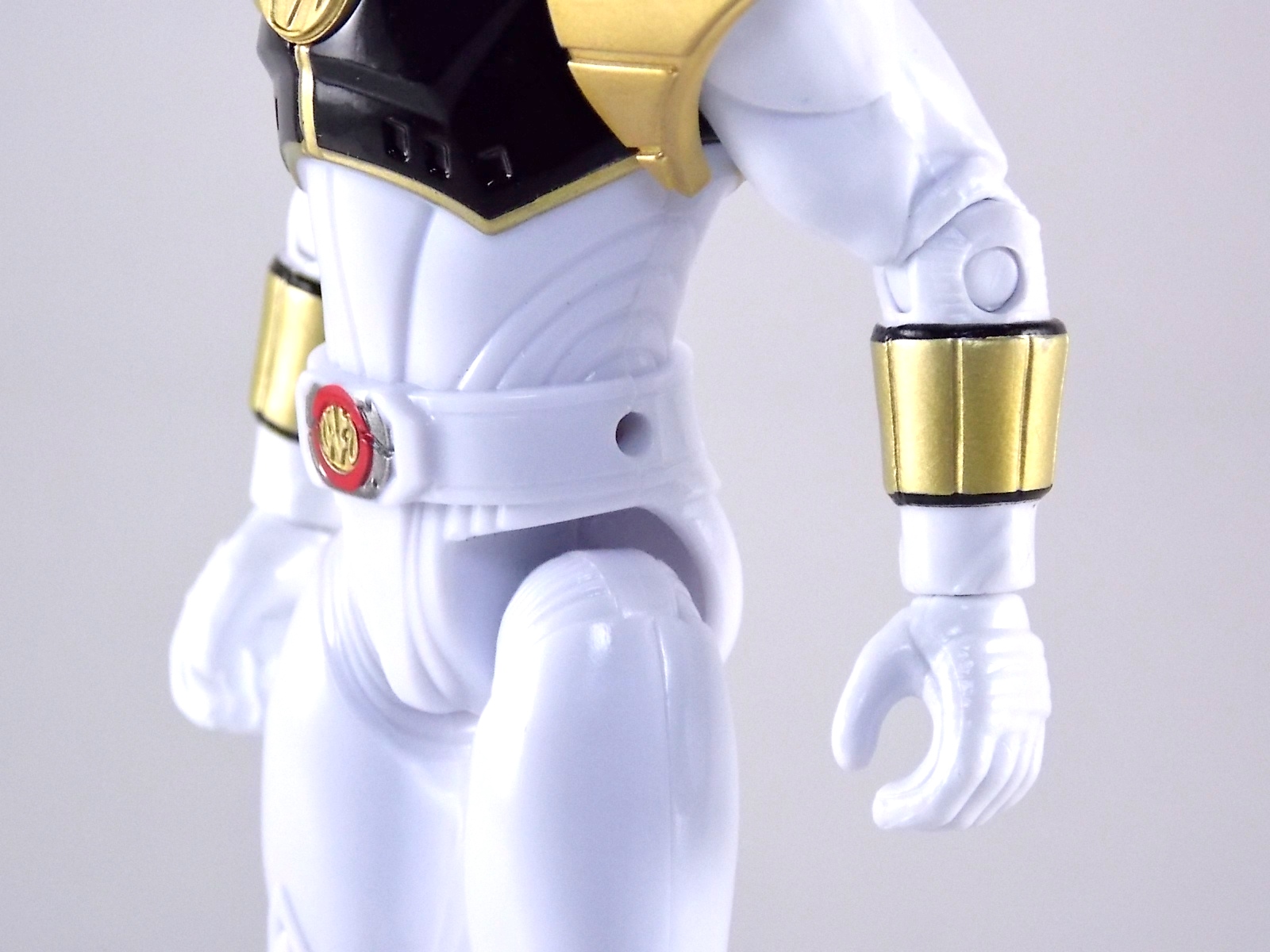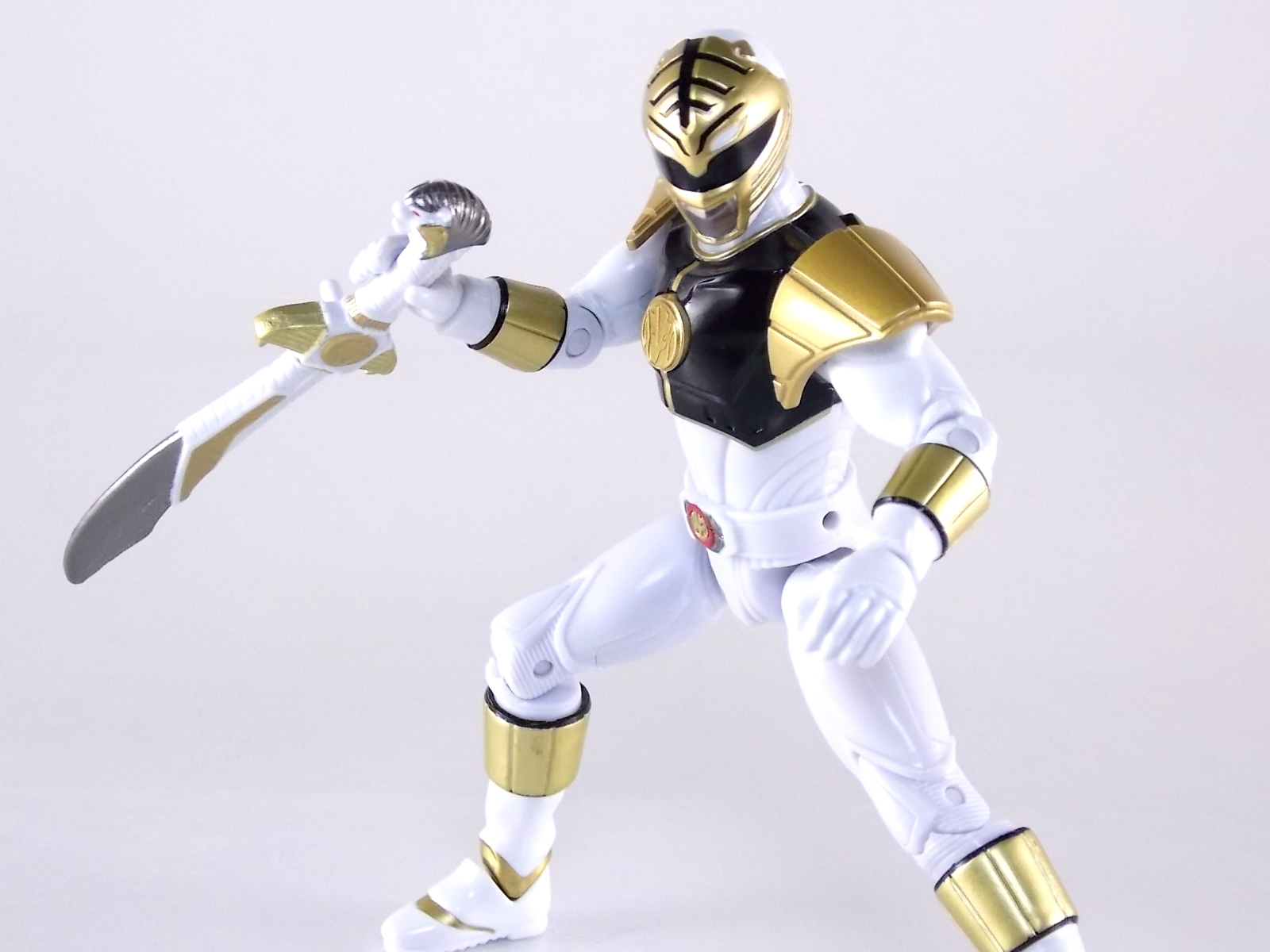 TokuNation is back with it's FINAL installment in our recent series of Mighty Morphin Power Rangers: The Movie galleries! The 7th and final figure in Bandai of America's Lecay 5" Movie line, the Movie White Ranger! Packaging If you haven't picked up a Power Rangers Movie Legacy figure by now, the Movie White Ranger follows the same basic formula. Packaged in a triangular box Bandai has done the best job they could at evoking the look of the vintage toys from the original movie toyline. The black & white color scheme may look a little more drab but it's still a great package. Showcased on the front of the box is a call out to the 1995 film itself and to further that connection on the back is a brief description of the films plot. Even going so far as to mention Ivan Ooze & Dulcea. A brief bio about the White Ranger (Tommy) is also given. Oddly the bio only makes mention of his Falconzord, when actually these figures are based on the rangers pre-ninja based suits from early into the film. The rangers received the ninja zords/powers after losing their original powers. Though the Tigerzord and other Dino & Thunder zords were never seen in the film, Tommy calls out "Tigerzord!" to morph in the initial fight, and the Tigerzord coin is still present both on his belt and chest on this figure. An oddity but not necessarily a detriment depending on how picky you are. More odd though I suppose was the total ignorance of the Thunder Zords having even existed in this films continuity. Figure As far as 5" figures go the Movie White Ranger at first glance appears to offer more than the standard. To start you should know that this line of 5" Movie figures is literally the first time ever that the actual movie designs have been put into figure form. The original toys were mere metallic repaints of the TV show toys in movie packaging. But this figure is the real deal. From a sculpt and detail perspective alone this figure is leagues beyond the generally simple toys of the normal Power Rangers retail lines. Where those 5" figures feel flat and artificially roided out, the movie rangers are covered in armored technological detailing that really goes a long way to replicating the look of the actual costumes. Since these suits were more armor than spandex they had a lot of detail to them, so I'm pleased that the toy has managed to capture that. Though finer details at least on this figure are a bit superior to the other 5 rangers released in this line. Though the head still feels a little undefined. On the articulation front the figure has much of what we've come to expect. Hips that swing forward/back & side to side. Knees & shin swivels with surprisingly decent rocker ankles. No waist joint sadly. The arms however are as bad as I've come to expect generally. Simple shoulders that move forward & back and can't properly stretch out to allow the arm a full range of up/down movement. Though it must be pointed out that the shoulder armor is hinged to move up and down a little bit to make this more manageable. Already an improvement on the core 5 rangers. Elbow articulation is limited to a 90 degree angle only, and the wrists while on ball joints don't have much clearance to make use of them, they also pop off. A lot. The arms are still kind of frustrating to me but this figure succeeds in having a slightly better version of them. The head is on a fairly decent ball joint that allows for a good bit of tilting in all the primary directions too. And after seeing this same design 6 times over it's still about as serviceable as when I first encountered it. Also a peg hole is built into the left side of the belt area to accommodate the included accessory, or a similar one from another 5" Ranger figure. While I don't own the 5" Legacy MMPR TV White Ranger to compare this figure too, I did have the S.H. Figuarts Kiba Ranger on hand for a general comparison. Accessories The Legacy 5" Movie White Ranger includes a mere single accessory. Though arguably this figure has the most appropriate accessory placement of any of the Movie Legacy figures: 1 - Saba. The patented sidekick and trademark special weapon of the White ranger. Honestly this is a pretty great accessory, it's detailed pretty nicely, painted very very well and is just about the right scale to the figure. It has a peg built into it to allow you to store it on the figures hip which is odd. I would have thought a holster would have been more appropriate, especially considering the other 5 rangers have them. And that's it. The Movie White Ranger comes only with Saba. Unlike the other 5 figures in this line I'm okay with this. Tommy only ever used Saba in both the TV show and Movie. He didn't use a Power Blaster and had no other additional weapons or powers exclusive to him for the film. Would it have been nice for a Blaster & Holster to be thrown in as bonuses? Sure. But in this case I'm not bothered by the lack of them either. Final Thoughts And that's that! After 7 long reviews and galleries we've officially taken a look at Bandai of America's ENTIRE Legacy offering for the original Mighty Morphin Power Rangers Movie! It's easy for me to admit that a majority (all but one of these figures) were quite disappointing to me personally. What's more odd is that the White Ranger would wind up being the one not only with the best design and QC but the one I liked the most. This figure seems to have a bit more thought put into than the other 5 rangers or Ivan. To check out our previous gallery/reviews of the other Movie Legacy 5" figures follow the helpful links below: Legacy 5" Movie Red Ranger Gallery Legacy 5" Movie Black Ranger Gallery Legacy 5" Movie Pink Ranger Gallery Legacy 5" Movie Blue Ranger Gallery Legacy 5" Movie Yellow Ranger Gallery Legacy 5" Movie Ivan Ooze Gallery May the power protect you!