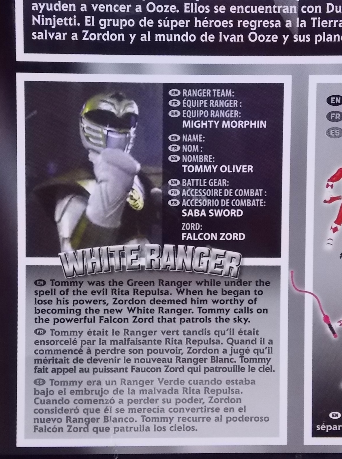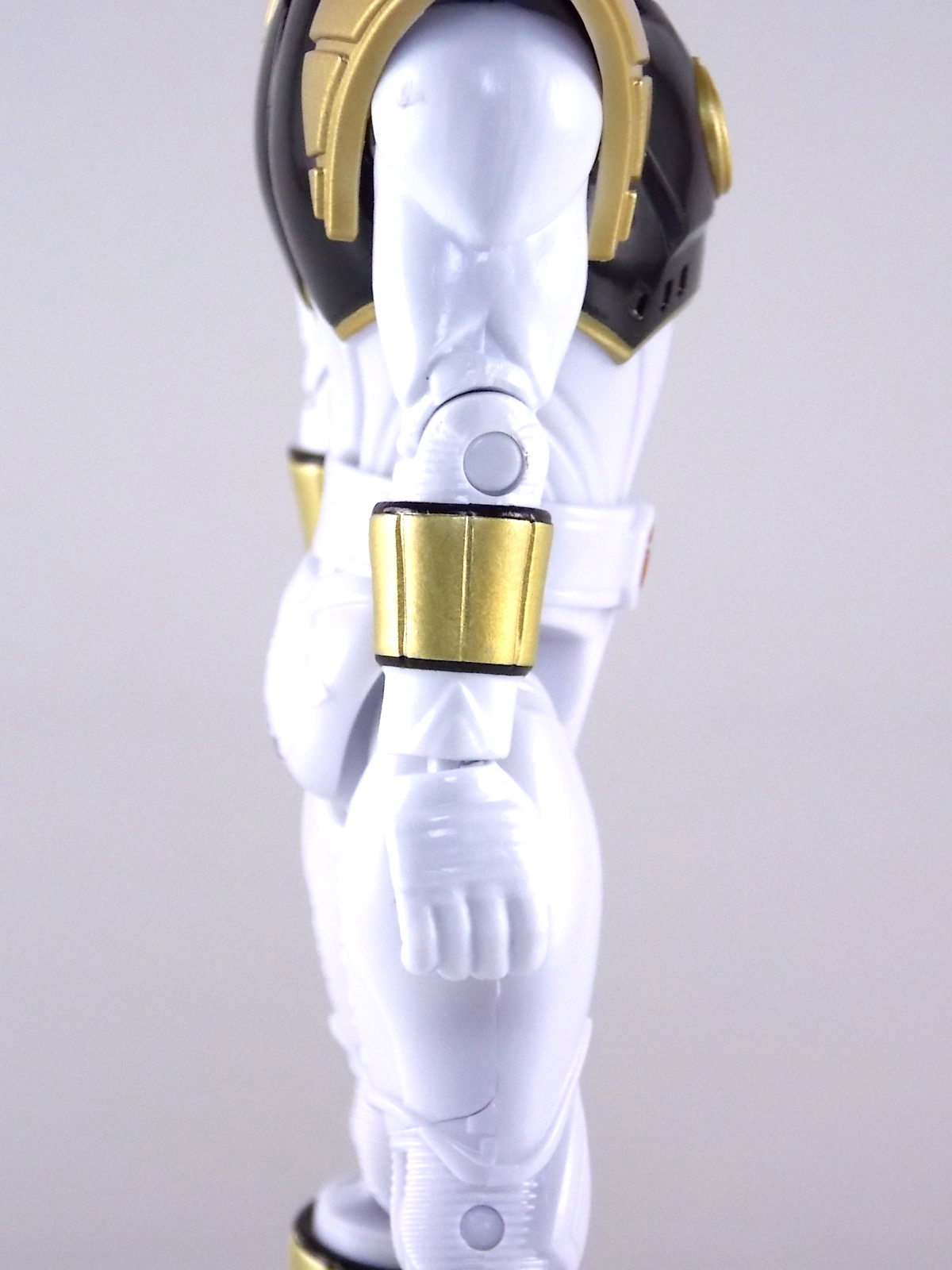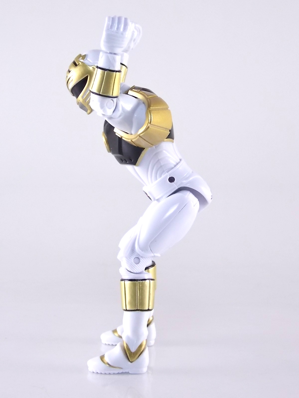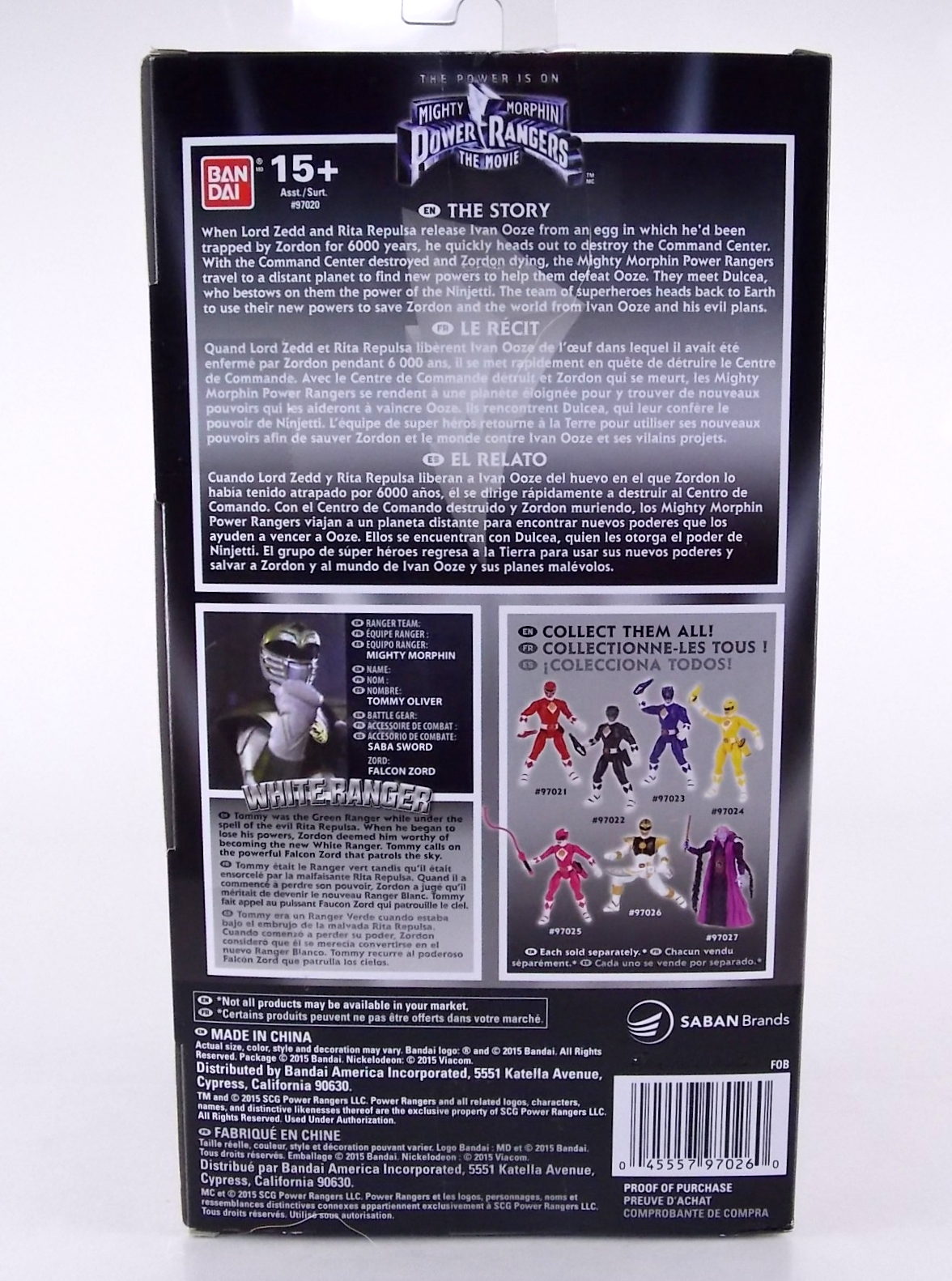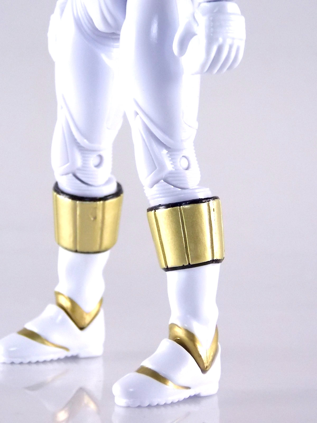 TokuNation is back with it's FINAL installment in our recent series of Mighty Morphin Power Rangers: The Movie galleries! The 7th and final figure in Bandai of America's Lecay 5" Movie line, the Movie White Ranger! Packaging If you haven't picked up a Power Rangers Movie Legacy figure by now, the Movie White Ranger follows the same basic formula. Packaged in a triangular box Bandai has done the best job they could at evoking the look of the vintage toys from the original movie toyline. The black & white color scheme may look a little more drab but it's still a great package. Showcased on the front of the box is a call out to the 1995 film itself and to further that connection on the back is a brief description of the films plot. Even going so far as to mention Ivan Ooze & Dulcea. A brief bio about the White Ranger (Tommy) is also given. Oddly the bio only makes mention of his Falconzord, when actually these figures are based on the rangers pre-ninja based suits from early into the film. The rangers received the ninja zords/powers after losing their original powers. Though the Tigerzord and other Dino & Thunder zords were never seen in the film, Tommy calls out "Tigerzord!" to morph in the initial fight, and the Tigerzord coin is still present both on his belt and chest on this figure. An oddity but not necessarily a detriment depending on how picky you are. More odd though I suppose was the total ignorance of the Thunder Zords having even existed in this films continuity. Figure As far as 5" figures go the Movie White Ranger at first glance appears to offer more than the standard. To start you should know that this line of 5" Movie figures is literally the first time ever that the actual movie designs have been put into figure form. The original toys were mere metallic repaints of the TV show toys in movie packaging. But this figure is the real deal. From a sculpt and detail perspective alone this figure is leagues beyond the generally simple toys of the normal Power Rangers retail lines. Where those 5" figures feel flat and artificially roided out, the movie rangers are covered in armored technological detailing that really goes a long way to replicating the look of the actual costumes. Since these suits were more armor than spandex they had a lot of detail to them, so I'm pleased that the toy has managed to capture that. Though finer details at least on this figure are a bit superior to the other 5 rangers released in this line. Though the head still feels a little undefined. On the articulation front the figure has much of what we've come to expect. Hips that swing forward/back & side to side. Knees & shin swivels with surprisingly decent rocker ankles. No waist joint sadly. The arms however are as bad as I've come to expect generally. Simple shoulders that move forward & back and can't properly stretch out to allow the arm a full range of up/down movement. Though it must be pointed out that the shoulder armor is hinged to move up and down a little bit to make this more manageable. Already an improvement on the core 5 rangers. Elbow articulation is limited to a 90 degree angle only, and the wrists while on ball joints don't have much clearance to make use of them, they also pop off. A lot. The arms are still kind of frustrating to me but this figure succeeds in having a slightly better version of them. The head is on a fairly decent ball joint that allows for a good bit of tilting in all the primary directions too. And after seeing this same design 6 times over it's still about as serviceable as when I first encountered it. Also a peg hole is built into the left side of the belt area to accommodate the included accessory, or a similar one from another 5" Ranger figure. While I don't own the 5" Legacy MMPR TV White Ranger to compare this figure too, I did have the S.H. Figuarts Kiba Ranger on hand for a general comparison. Accessories The Legacy 5" Movie White Ranger includes a mere single accessory. Though arguably this figure has the most appropriate accessory placement of any of the Movie Legacy figures: 1 - Saba. The patented sidekick and trademark special weapon of the White ranger. Honestly this is a pretty great accessory, it's detailed pretty nicely, painted very very well and is just about the right scale to the figure. It has a peg built into it to allow you to store it on the figures hip which is odd. I would have thought a holster would have been more appropriate, especially considering the other 5 rangers have them. And that's it. The Movie White Ranger comes only with Saba. Unlike the other 5 figures in this line I'm okay with this. Tommy only ever used Saba in both the TV show and Movie. He didn't use a Power Blaster and had no other additional weapons or powers exclusive to him for the film. Would it have been nice for a Blaster & Holster to be thrown in as bonuses? Sure. But in this case I'm not bothered by the lack of them either. Final Thoughts And that's that! After 7 long reviews and galleries we've officially taken a look at Bandai of America's ENTIRE Legacy offering for the original Mighty Morphin Power Rangers Movie! It's easy for me to admit that a majority (all but one of these figures) were quite disappointing to me personally. What's more odd is that the White Ranger would wind up being the one not only with the best design and QC but the one I liked the most. This figure seems to have a bit more thought put into than the other 5 rangers or Ivan. To check out our previous gallery/reviews of the other Movie Legacy 5" figures follow the helpful links below: Legacy 5" Movie Red Ranger Gallery Legacy 5" Movie Black Ranger Gallery Legacy 5" Movie Pink Ranger Gallery Legacy 5" Movie Blue Ranger Gallery Legacy 5" Movie Yellow Ranger Gallery Legacy 5" Movie Ivan Ooze Gallery May the power protect you!