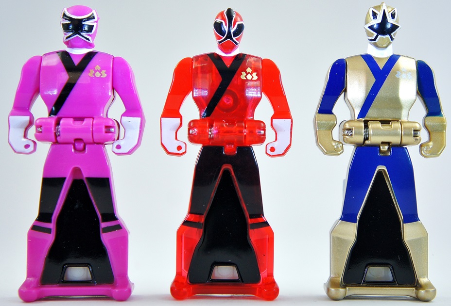 Be sure to check out all of our previous galleries at the links below! - Power Morphicon Exclusive Ranger Keys - Titanium Ranger & Wolf Ranger - Zeo Ranger Keys - Set A & B - Lost Galaxy Ranger Keys Set B - Operation Overdrive Ranger Keys Set B - Wild Force Ranger Keys Set B And now on to the Samurai Ranger Keys Set B gallery and review! Right off the bat these keys stand out from the others because of the higher quality paint applications, specifically on their helmets (they have the black symbols as expected but they're also outlined in white). This is a nice touch considering some of the other keys released in this line (looking at you SPD!) couldn't even get the numbers on the suits highlighted correctly. In specific - the Gold Samurai Ranger Key really, really stands out of the group. The gold and blue combination just pops and really makes you take notice. Sadly - the weakest key in the group belongs to the Pink Samurai Ranger Key. The paint app on her helmet is off (and in the other packages I own it is off as well). And when she's next to the Red Samurai Ranger Key she comes across as rather plain because he's all flashy with the translucent plastic (which helps the key "pop" quite a bit). PRO'S!