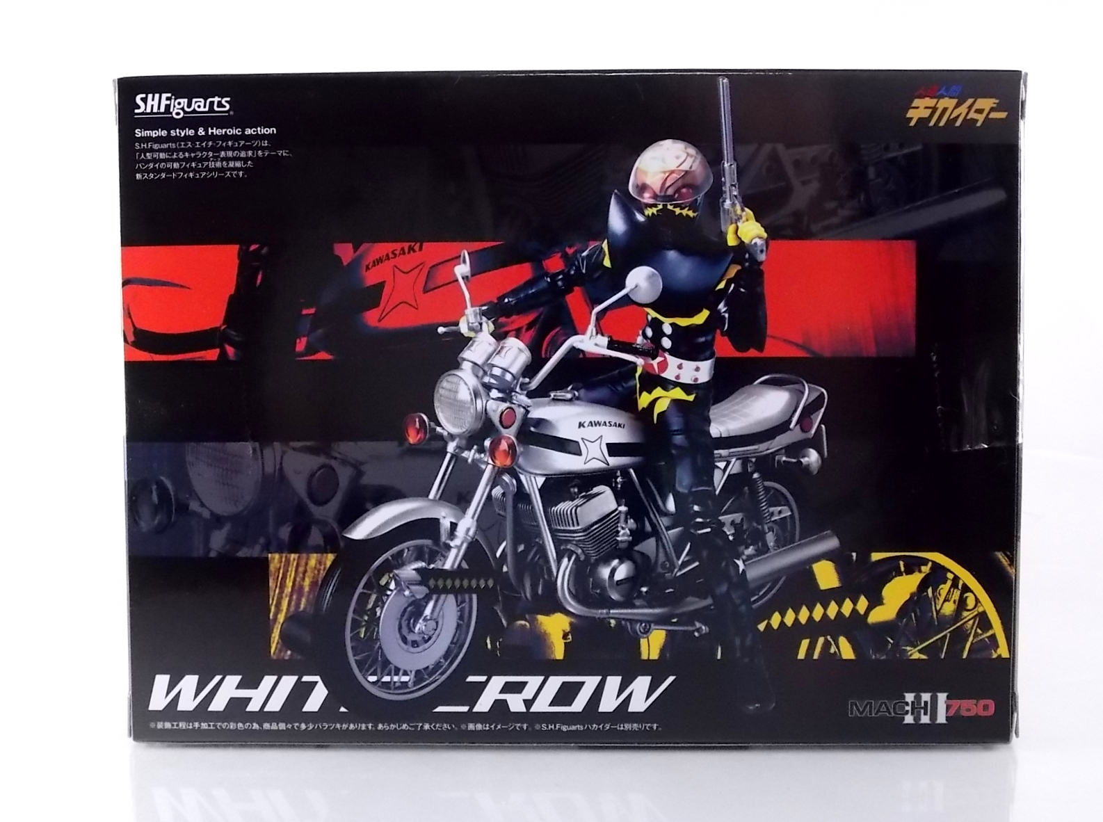 If there's one thing the original Hakaider had going for him to set himself apart from his successors it's this classic machine. The S.H. Figuarts White Crow! Based on a modified Kawasaki H1 Mach III, the White Crow was a fearsome ride for 1972. And even today it's a glorious toy. Read below and check out the gallery attached!