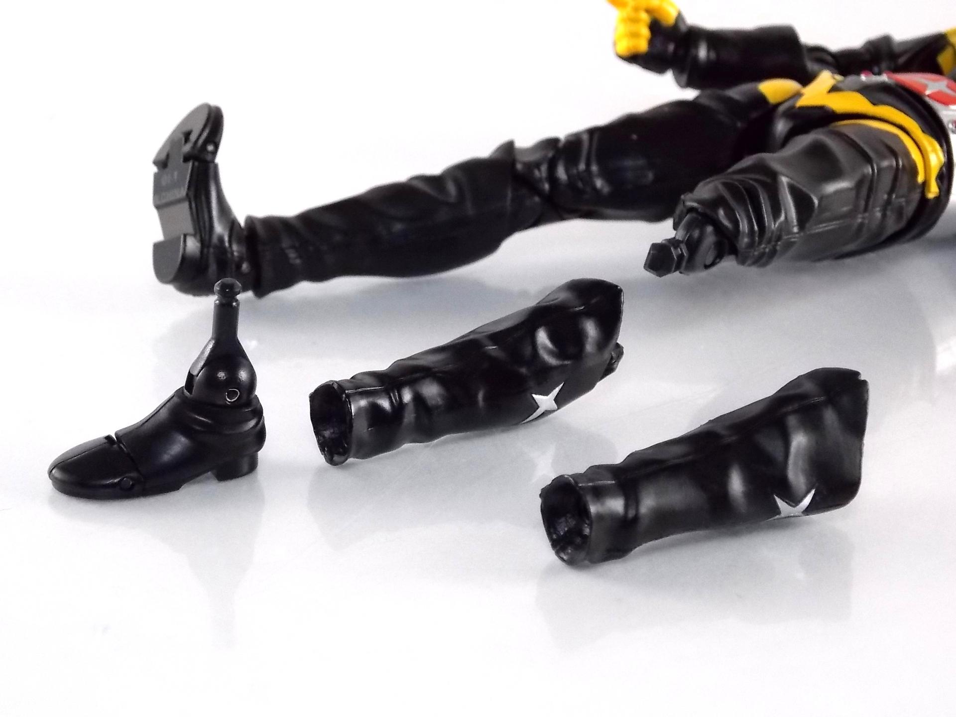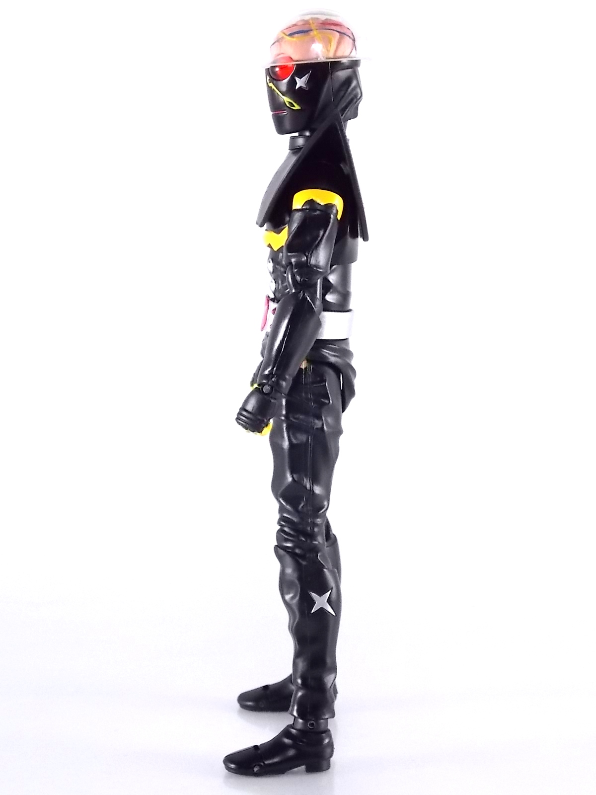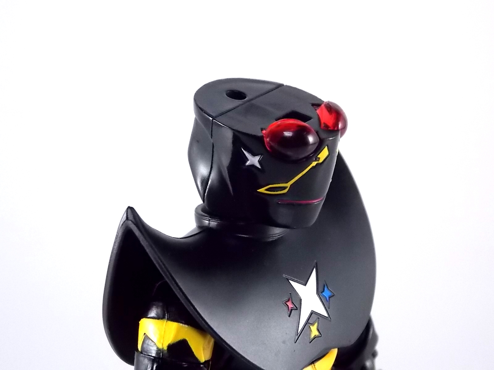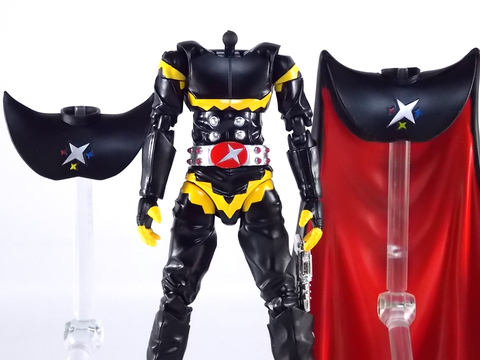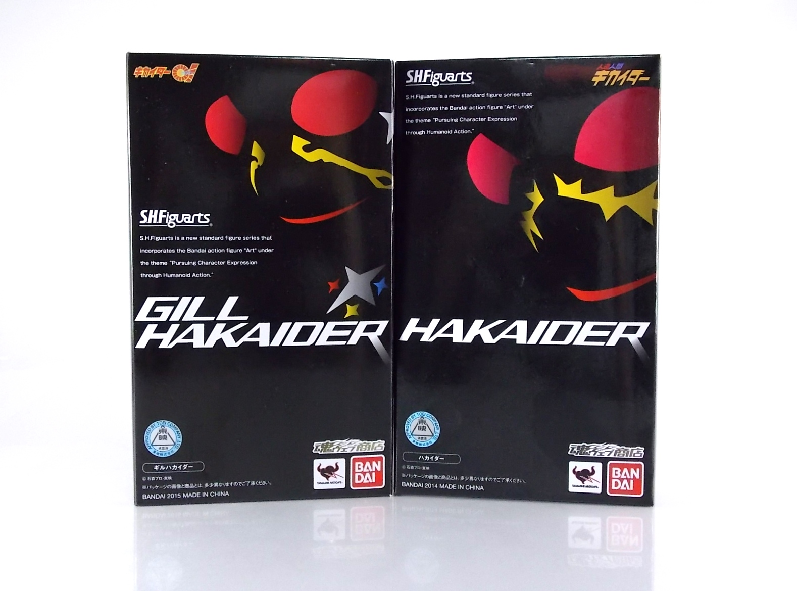 S.H. Figuarts Gill Hakaider! Released as a companion piece to the recent S.H. Figuarts Kikaider 01, the evil android Hakaider was originally created by Dr. Komyoji to destroy Kikaider. Of course this was while under coercion from Professor Gill & DARK. Though Komoyoji built the Android known as Saburo his brain would later be implanted into it by Professor Gill, thus creating the original monster we knew. This figure specifically represents what happened after the fall of DARK, when Professor Gill successfully escaped his headquarters destruction by transplanting his own brain into the Hakaider body, creating Gill Hakaider! The villainous leader of SHADOW who would dog Kikaider 01 throughout his own series! Packaging The packaging is all business as usual. The Gill Hakaider's box is modeled specifically after Saburo Hakaider's but is in line with the rest of the Kikaider release. Very cool minimalist artwork with one dynamic box shot on the back, but nothing new to see. Main Figure After the extensive wait endured by many for an S.H.Figuarts Kikaider, a beloved hero by Japanese and western fans alike, the turn around to get his arch nemesis Hakaider was comparatively quick. Getting this repaint/slight retool of him however took longer. Despite the only differences really being some paint apps and some additional accessories, Gill Hakaider was release nearly 5 months after Hakaider. As a slight repaint a bulk of my review will be identical to Hakaider's. As many recent sentai & rider S.H.Figuarts releases have done, Gill Hakaider features gorgeously sculpted in "fabric" details. The real suit was a bit of a leathery vinyl material and while that kind of look can't be entirely replicated in plastic, this is an excellent attempt to do so. Since Hakaider's primarily black as well there aren't very many paint apps to worry about, but what's there is done just right. The difference with Gill vs standard hakaider is the newly painted Hakaider emblem on his chest accompanied by 3 multi-colored stars. And the lines down his cheeks are of a thinner and altogether different design. The QC on these paint apps is just as top notch as the original release though. The real excellence of this figure is all in the head though. Not only is Gill Hakaider's brain sculpted beautifully, the electrical wires are painted as well, and the skull cap is removable! And the brain is too! That's right, Gill Hakaider's brain is entirely removable to replicate any and all wacky mad doctor scenarios you wish! This is an incredible bonus feature of the figures design. Meanwhile the other incredible bonus of how the head is designed is that Hakaiders' eyes have incredible light piping. Since the skull cap is open and clear his eyes capture a ton of light and almost appear to glow artificially. Perhaps the only complaint I can levy against the figure is the shoulder design. Though the shoulder pads are accurate to the suit, they are molded as one gigantic piece that stretches across the chest. It can angle upward somewhat on either side to give the arms a bit more room, but ultimately this shoulder/chest piece hybrid interferes with the arms movement a bit. But this is an issue I experienced with the original figure as well. Otherwise this figure is pretty excellent and a wonderful companion/rival piece to Kikaider 01 that's very much on par with his quality. Accessories Unlike the other releases in the Kikaider subline so far, Gill Hakaider boasts an impressive accessory selection: 4 - full sets of extra hands. Sadly they don't seem to be intelligent choices for hands though. As with Hakaider, Gill Hakider suffers from having only one left hand to hold his gun and no real right hand for it. And he includes a right hand to hold his flute staff but it doesn't very well and there's no left hand laternative. 1 - Hakaider Shot handgun. A beautiful silver chromed handgun that's as comedically long as it is in the show. It looks like something the Joker would be packing except Hakaider's gun is deadly and awesome. The next accessory is directly tied to the gun. 1 - replacement shin. This shin can be attached to by removing the previous one at the knee and ankle joints. The advantage of this one is that it has a built in holster for the Hakaider Shot. I love that this is included but my Hakaider is almost always holding the Shot so it's just a bonus to me. But a welcome bonus none the less. 1- cape/mantle. To use this simply pull Gill Hakaider's head off at the neck joint and pull his chest/shoulder armor off, swap it for this one and bingo you have an awesome cape. Sadly as is the case with practically all figuarts of characters who should have cloth capes, he does not. So it's statically posed and a bit back heavy. Not so bad that you can't pose Gill with it, but cumbersome. It still manages to give him a devilish and menacing look that I love. The cape itself is actually more associated with the animated version of Gill Hakaider from the Kikaider 01 OVA. But it's still a cool bonus to see here. 1 - flute/staff. Though we've seen several toku characters, mostly heroes, over the years use flutes Gill's is far from heroic. An evil staff that seems pretty ornate at first, it has a sharpened for skewering enemies and when played as a flute can control mechanical life forms, as it's been used to control Kikaider on more than one occasion. The toy version here looks great and even has small sculpted in finger depressions to replicate the flute playing. Though sadly he doesn't have a hand that's really designed properly enough to hold it correctly, you can still pull of some decent poses. This release sets itself apart from all the other Kikaider releases so far. Not only does it have the most accessories quantity wise but it also has arguably the best selection generally speaking. Even going so far as to throw in something from the characters animated counterpart in the form of his cape. Final Thoughts While the sculpt and paint apps