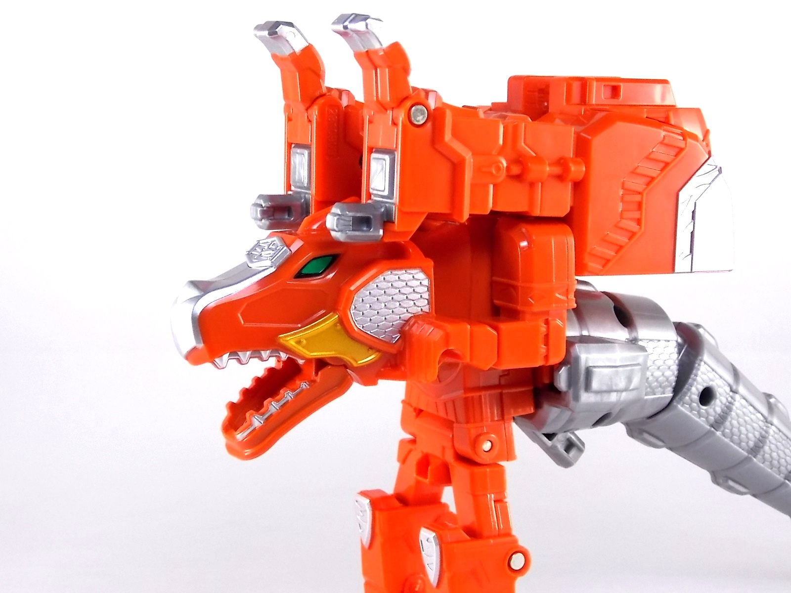 It's strength is in the combined mode, but even then it's still disappointing. I do like the Abaranger/Dino Thunder nod with the angry looking red eyes, but looking at the rest of the figure it's like ... why did they think this would sell? Is the B team on Super Sentai and the A team now working on US Power Rangers toys?