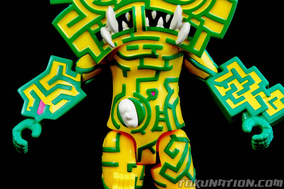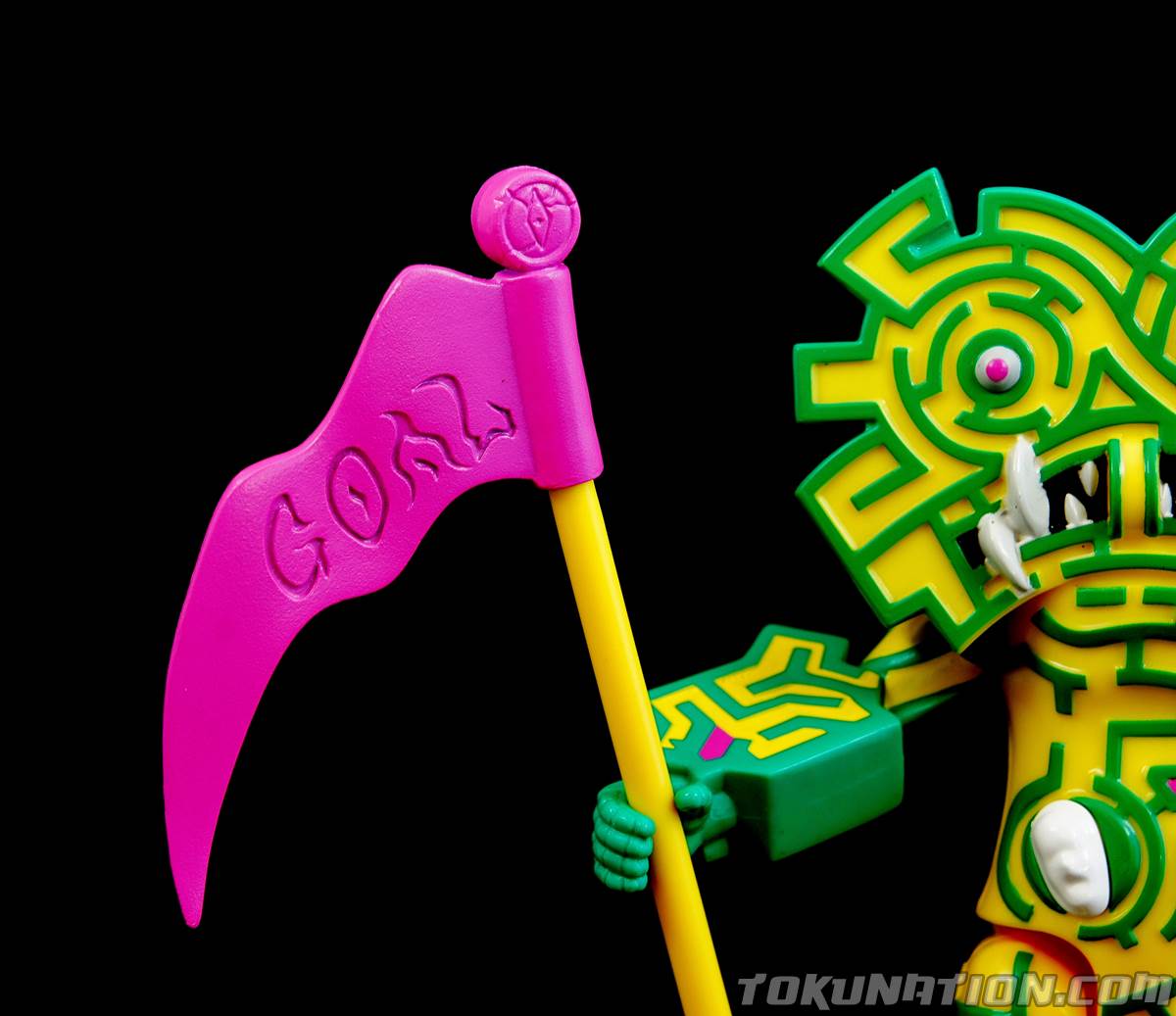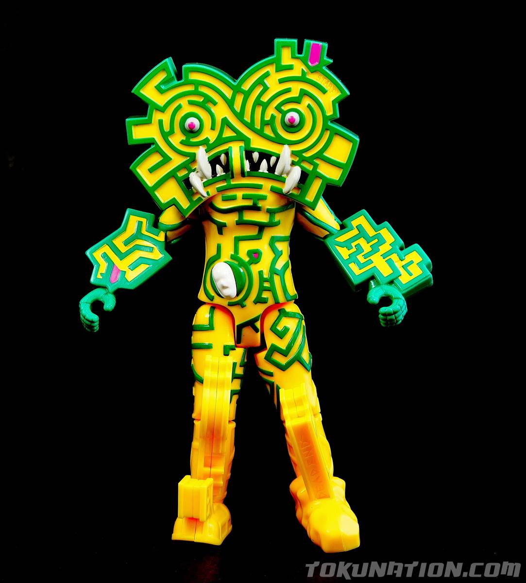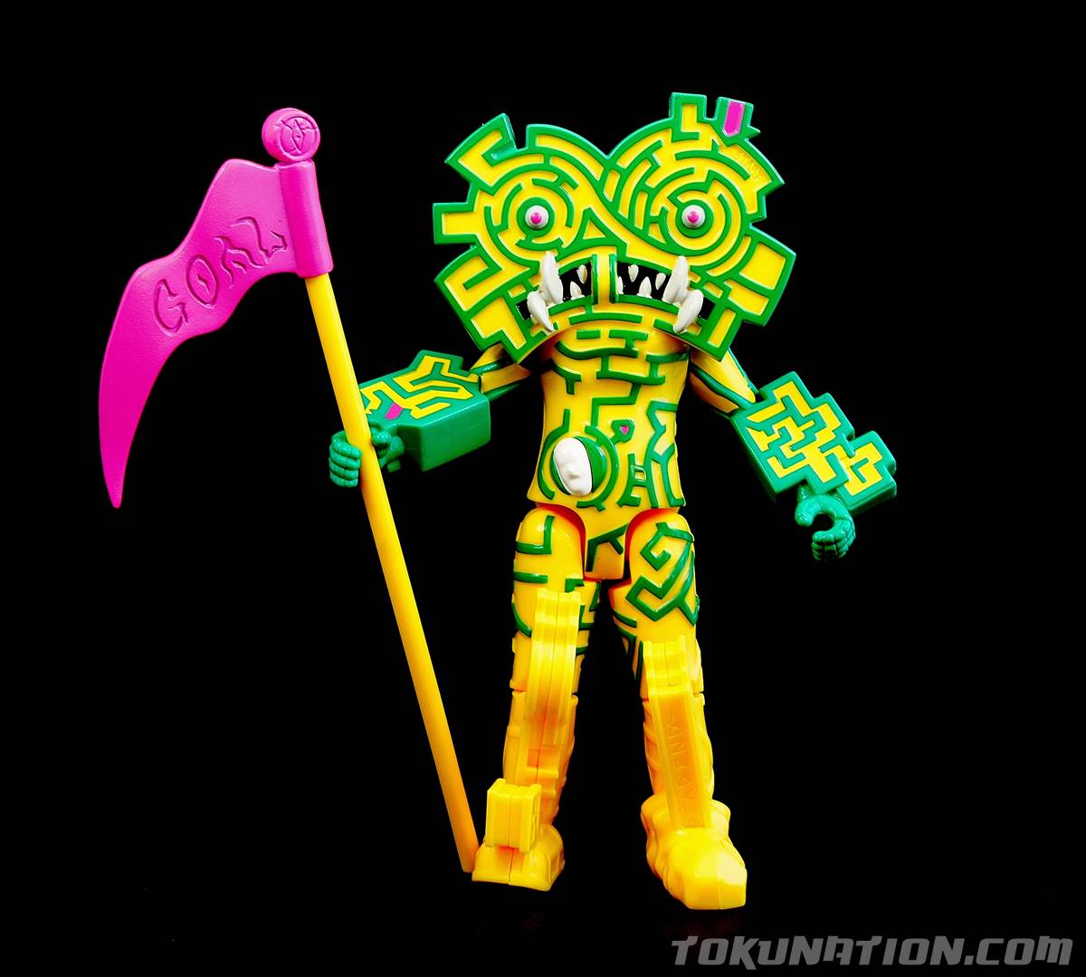 In the latest wave of Power Rangers Dino Charge 5" figures hitting stores now we have some new villains included based on popular demand by fans to Bandai America, who have listened and thus released some villain figures. The first figure we'll be looking at is none other than Puzzler! The Figure The thing that should strike you immediately about this figure is the incredible amount of detail that went in to the sculpting of the mold. It is a BEAUTIFUL looking figure. The biggest downside is the articulation - as in, bendable knees, legs that can move forward and backward, and two arms that can move up or down (to a point). And that's it. Six points of articulation. It's like a large version of Star Wars The Force Awakens 3.75 figures with one bonus piece of articulation. The Accessory You get a flag on a pole that says "GOAL" on it. The flag is sculpted to look like it is waving in the wind. At the very least they look to have painted the flag purple while leaving the stick the stock yellow plastic color. This one is quick and easy. The Good!