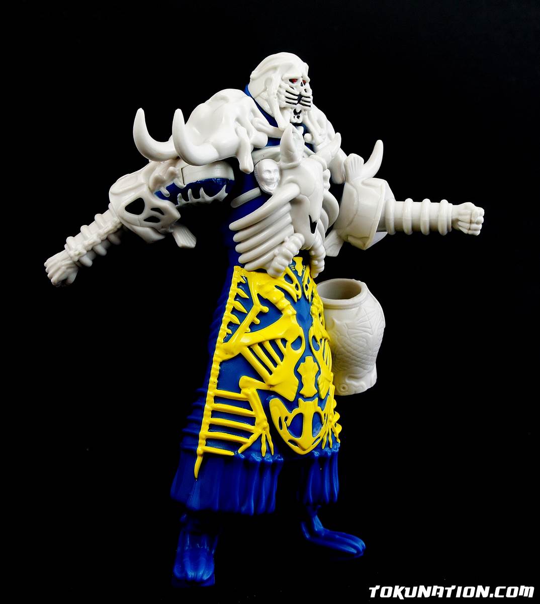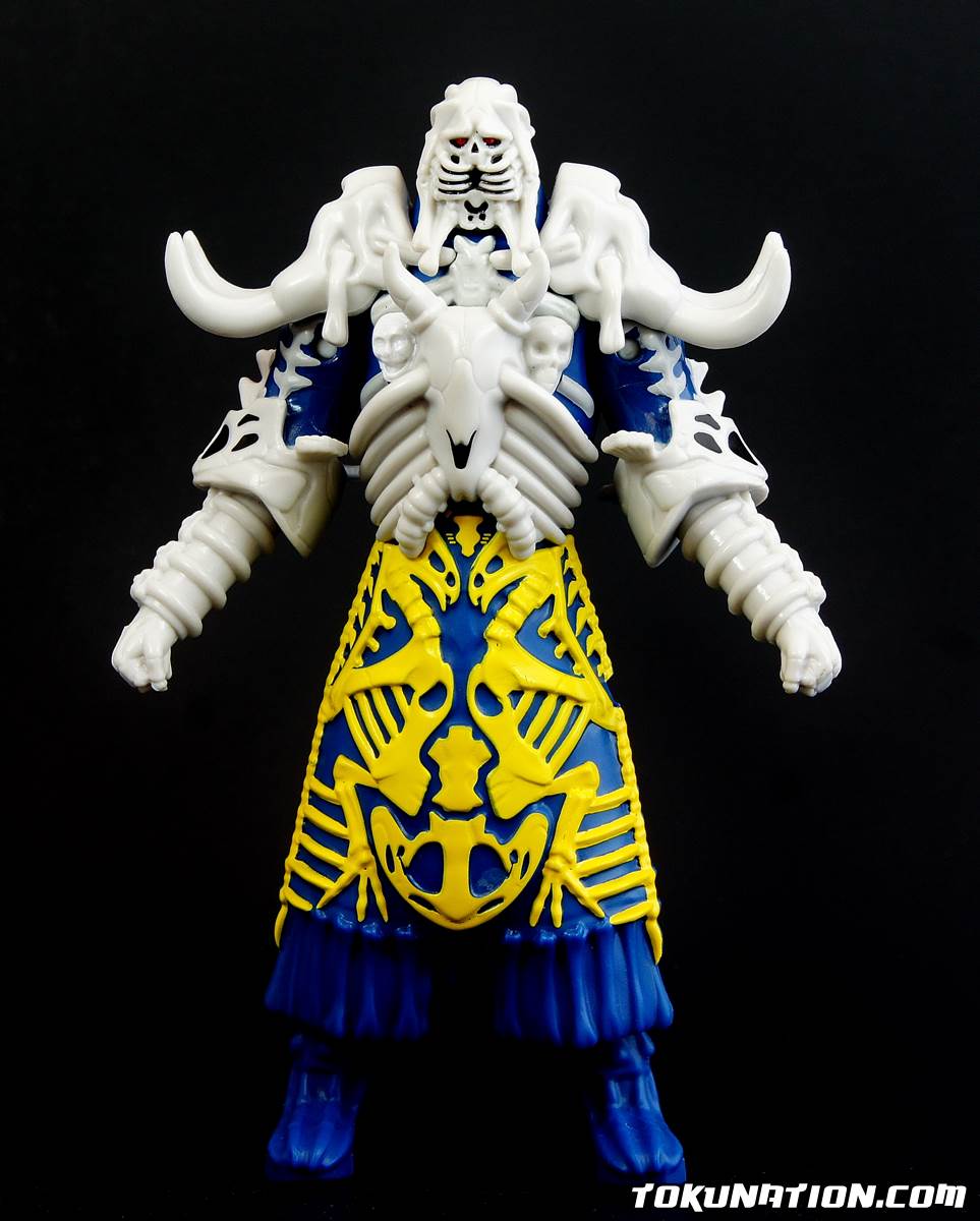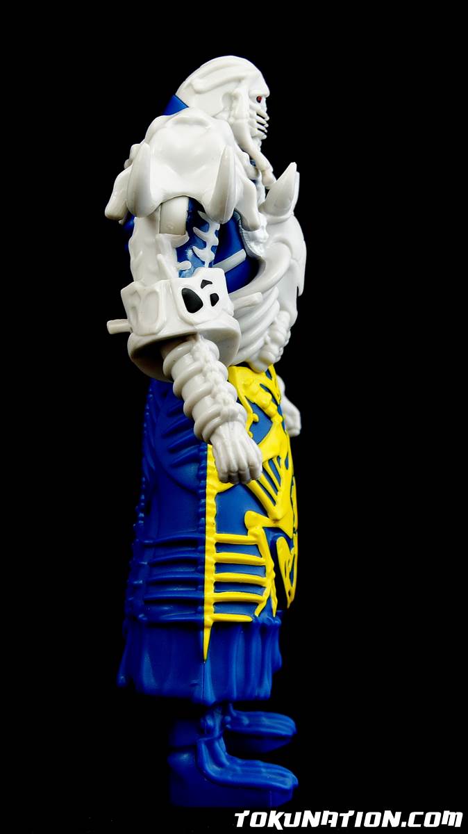 The Power Rangers Dino Charge five-inch toy line continues on with more villains! This is an important event in the franchise's toy line history as this is the first time in nearly a decade or so since we've received various "monsters of the day" as actual action figures. With these figures trickling out we managed to grab them all - and we're going to review each and every single one of them! The Figure Let's just start off with what everyone is curious about - articulation. Bones features 6.250 points of articulation. His arms move up, down, forward, and backwards. He has two shin joints that allow for 360 degree movement. And the ".250" comes from the head as it does move but due to the shoulder gear only about 5 to 10 degrees in either direction. However this figure is absolutely gorgeous. The sheer amount of detailing in the mold is astounding. Could it be better? Yeah, if it was a S.H. Figuart probably. But for Bandai America this thing is as close to masterpiece sculpting as you'll ever see. The head sculpt is damn impressive, to the point that the red eyes even have black pupils put on. What this figure lacks in articulation it absolutely makes up in how it looks. It is easily one of the most impressive looking figures out of Bandai America in the last 5 years if not longer. The Accessory Bones comes with his bucket'o'bones, minus the bones. When he pulls out someone's backbone it goes in to this bucket. It is highly detailed (but not painted) and aside from a piece or two of leftover melted plastic it looks fantastic. I was half tempted during the gallery to rip off some Vivix body parts and put them in there for show. The bucket attaches via a rough 3 to 4mm peg (not a 5mm peg) and can spin all around. The Good!