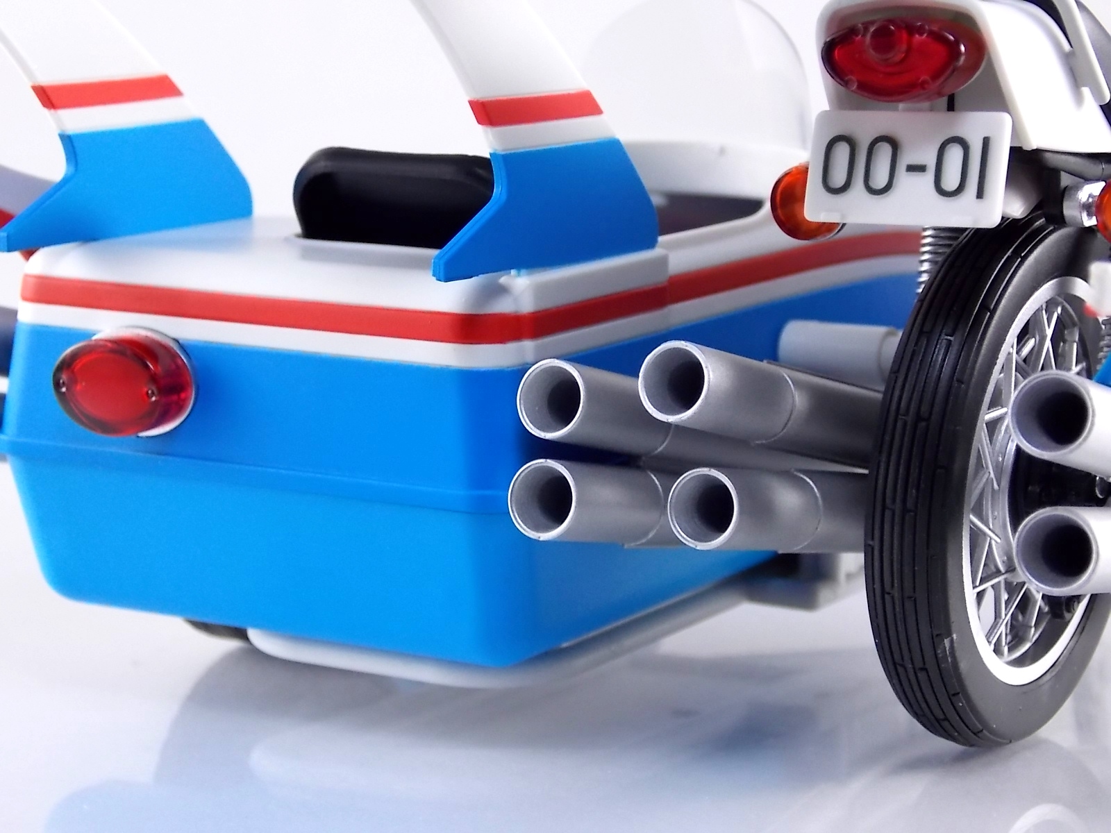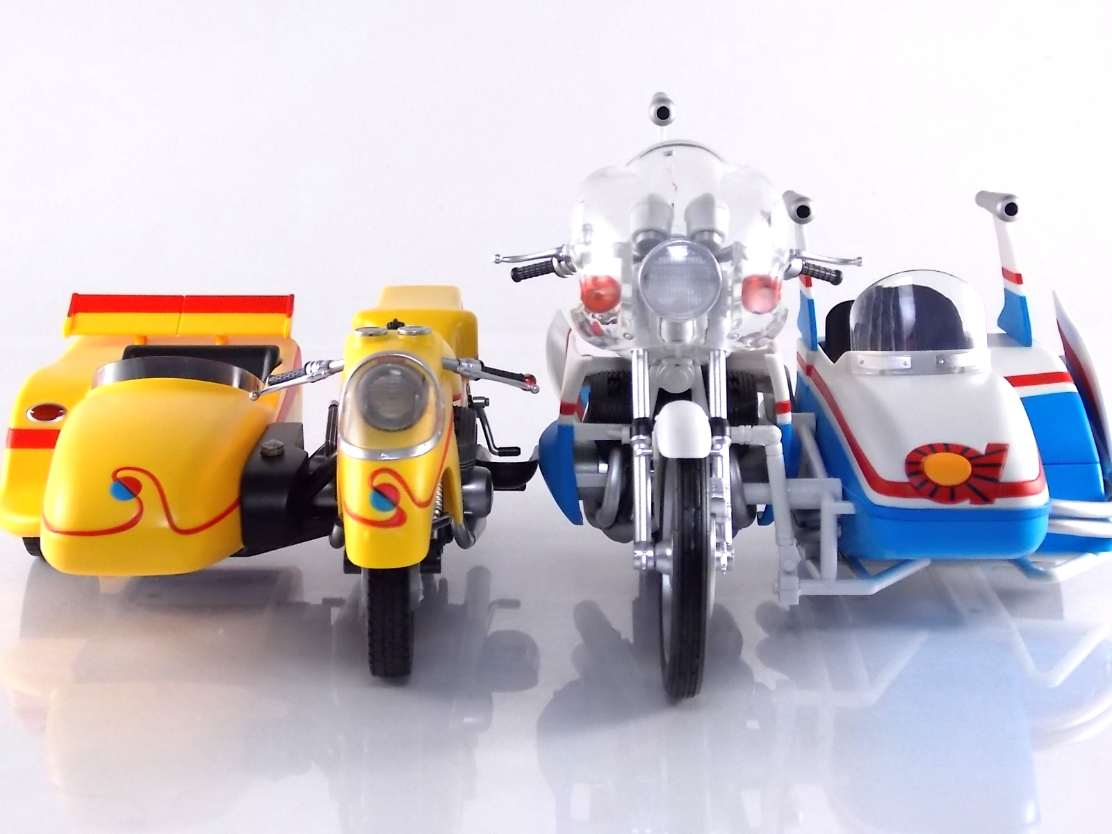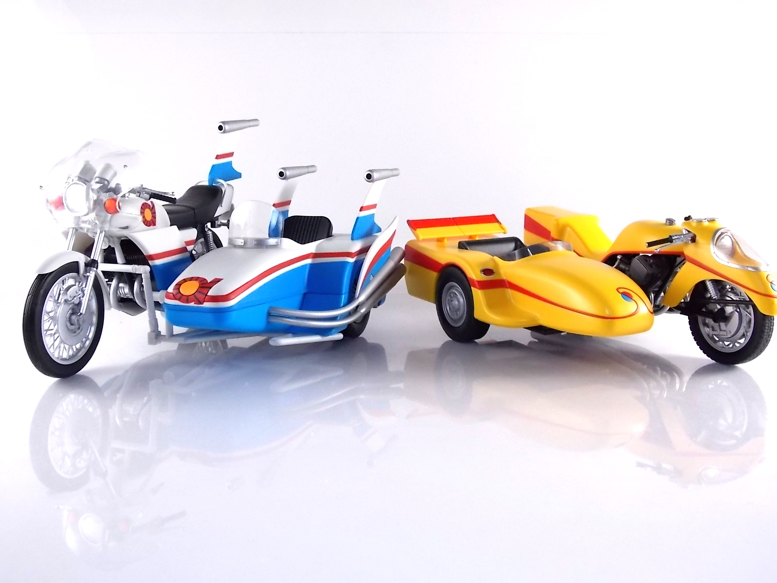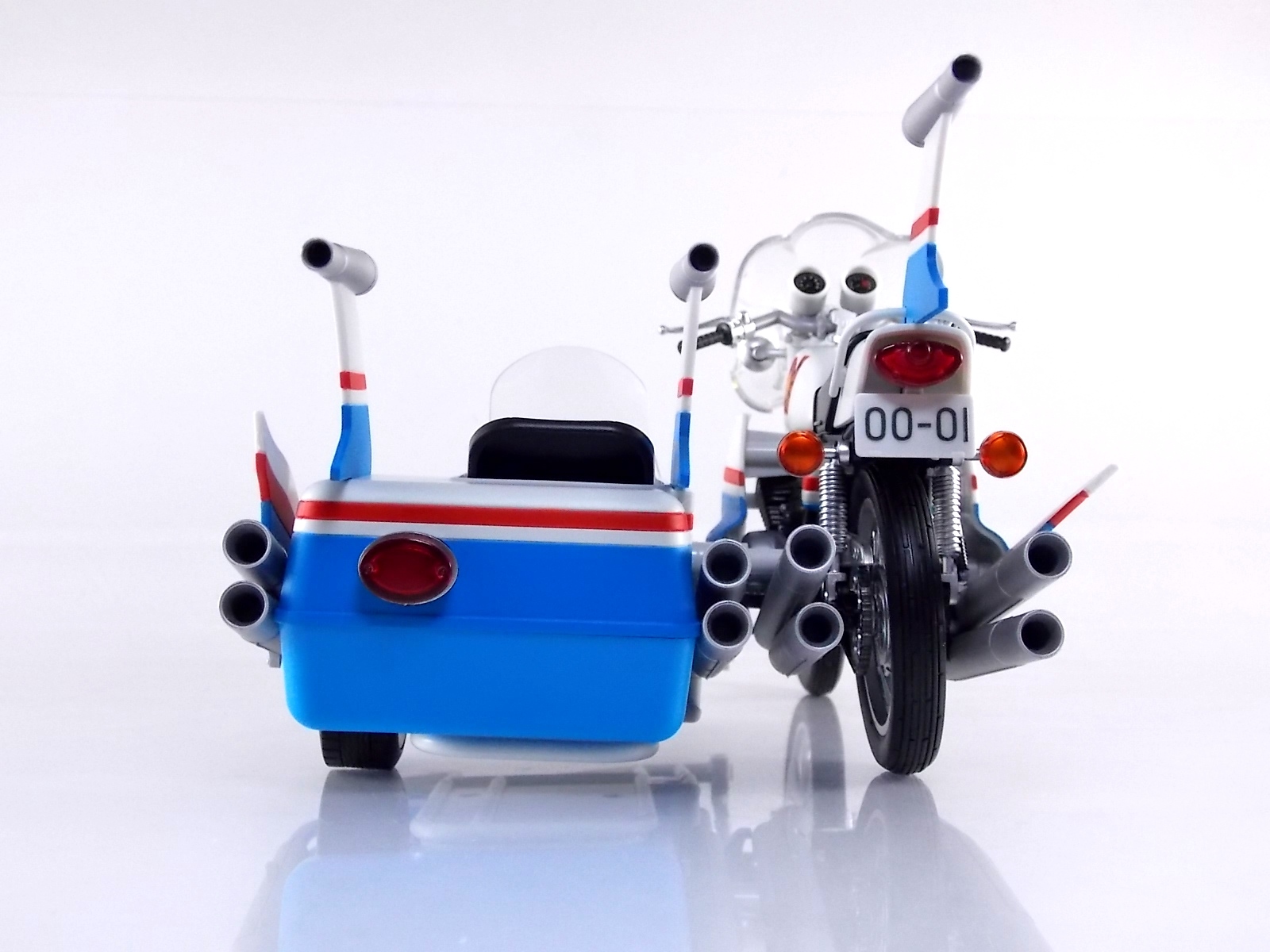 Befor checking out the below gallery, please be sure to check out all of our previous Kikaider related galleries as well! S.H. Figuarts Kikaider S.H. Figuarts Hakaider S.H. Figuarts Kikaider's Side Machine S.H. Figuarts Hakaider's White Crow S.H. Figuarts Kikaider 01 S.H. Figuarts Gill Hakaider S.H. Figuarts Hakaider Squad (Red/Blue/Silver) Packaging It's all business as usual with this release. The Double Machine comes in the same type of box as all of the other Kikaider & Hakaider releases in the line. Same gorgeous minimalist art on the box and sleek packaging all around. Only difference here is the size. Due to the Double Machines' size the box is basically about as large as the Hakaider Squad 3-pack. Main Figure The main event so to speak is here! The Double Machine itself is an impressive follow up to the older model Side Machine. Both Machines clearly share basic design choices that unite them in the same family of vehicles. The Side Machine was of course based on a Kawasaki GT 500 Mach III, though the Double Machine's heritage is a bit more dubious to my knowledge. The Double Machine comes packed as one gigantic piece. The only assembly necessary is the 3 spoilers that are included detached. 2 of them plug onto the sidecar and one on the main bike. With that little bit done we've got the completed Double Machine! Obviously the immediate take away is that this sucker is huge. Significantly larger than even the Side Machine which is itself a huge bike. Both of them share the unique honor of being the only side-car bikes in the entire S.H. Figuarts toyline. On top of this the Double Machine simply is a more extravagant vehicle. There are quite a few more ornamentation's and paint apps applied here than on most Figuarts bikes. That's just a product of the time in which this bike was designed. 70's toku is a hell of a drug. As is though the Double Machine is just gorgeous. And frankly mine is flawless. Very impressed with the QC on this thing. The paint is crisp, the molding is sharp. No scratches on the windshield. The Kikaider 01 emblems look gorgeous. And all the right details are sculpted in. The Double Machine is likely the best detailed bike I've seen in the S.H. Figuarts line. It just screams 70's in all the best ways and looks even better when you put Kikaider 01 on it. Obviously this is just a bike so it doesn't do much on it's own. If you don't own 01 then there's not much point in having this. But with at least a driver on board it looks fantastic. The side car can accommodate pretty much any other S.H. Figuart you want it to as well. I had fun putting Kikaider in there. Accessories Just the 3 above mentioned spoilers. No hands or extra handlebars or any of the usual stuff. This is an extravagant bike all it's own and Kikaider 01 already came with the hands he needed to hold the handlebars. So this is a pretty much complete package already. Final Thoughts I've been more than happy to throw myself whole-heartedly into the Kikaider subline of S.H. Figuarts. I've devoured every successive release and been left wanting more. Bandai could crank out as many Kikaider releases a year as they wanted to and I'd take them all. In the course of the last 11 months we've gotten 8, at roughly 1 new release every month or so I am totally pleased with that pace. Considering how Sentai Figuarts seem to struggle with releases and sales, I'm shocked Bandai wound up so dedicated with Kiakdier. If the quality continues at this upward trend I doubt I'll be disappointed any time soon either. While Kikaider himself was in my eyes a fairly substandard release, Hakaider was an improvement. And the trend continued from there until we're here with the gorgeous S.H. Figuarts Double Machine! While I could continue to profess my love for Kikaider figures all day long I'll just say this, a bike like this is for a completionist or a true lover of the franchise only. If you don't have an immediate and reactive desire to own the Double Machine, then you don't need it. I needed it, and I'm happy to have it for the impressive piece of toy it wound up being. If this is the last releases that Bandai chooses to end the Showa Kikaider line on then I'm certainly not disappointed. But please give us more Bandai, there are so many figures and vehicles left to do. I'll buy every one.