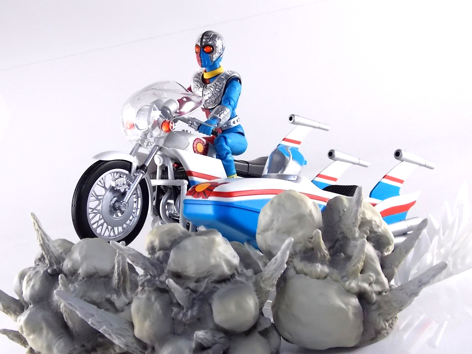 Rounding out our series of Showa Kikaider galleries is the final (so far) release in the line! S.H. Figuarts Double Machine! The personal ride of Kikaider 01 and brother unit to the original Side Machine.