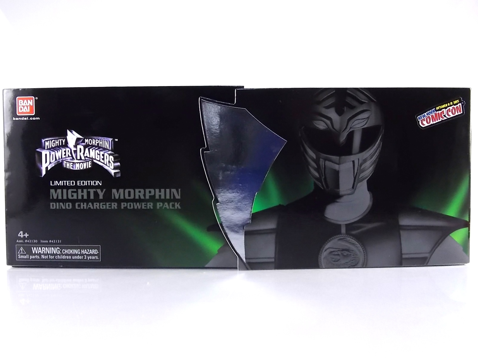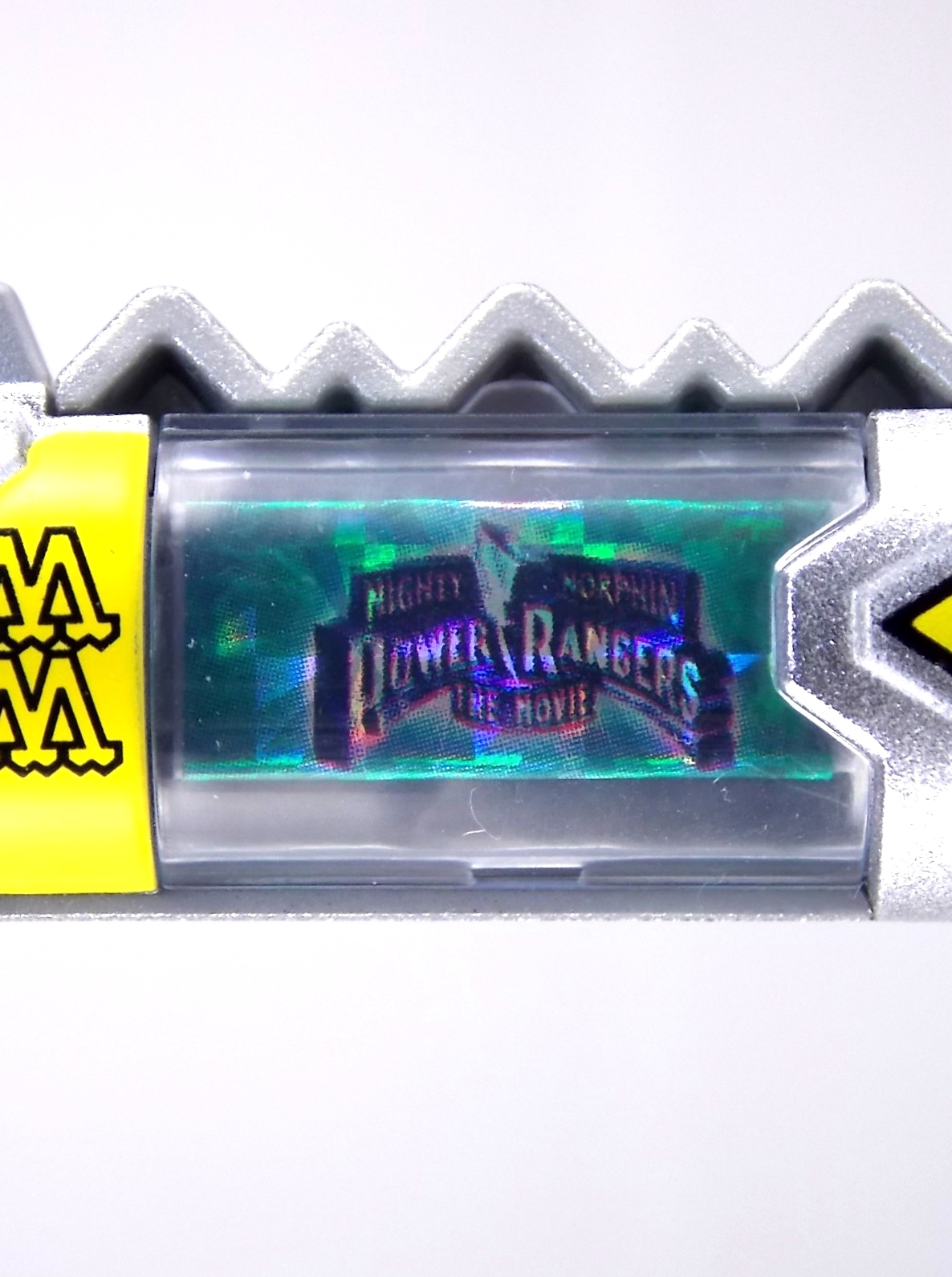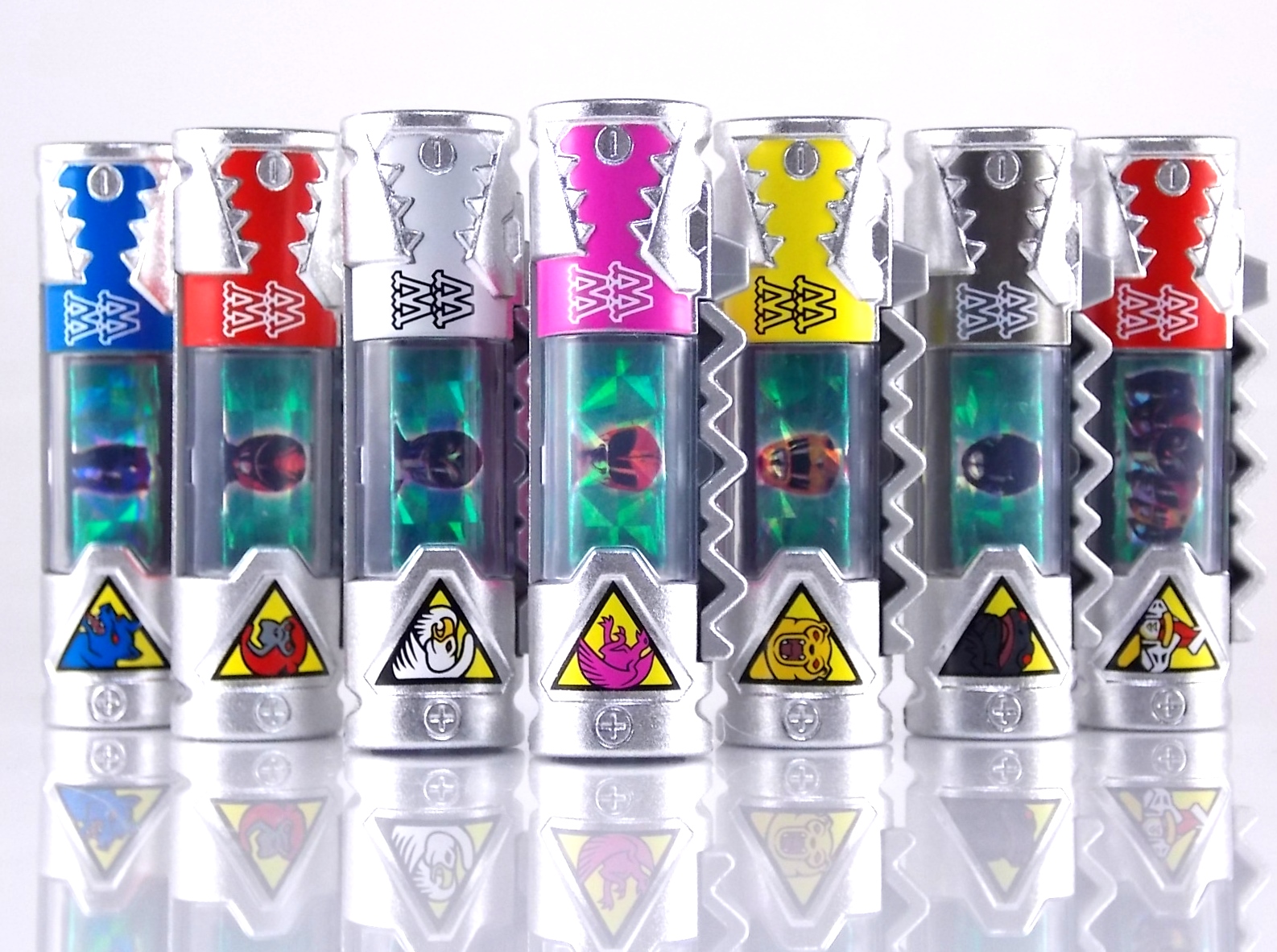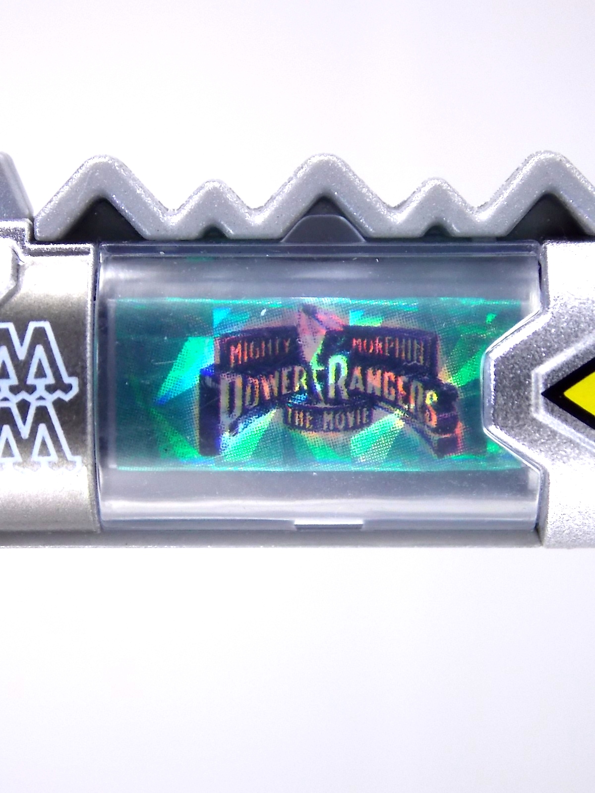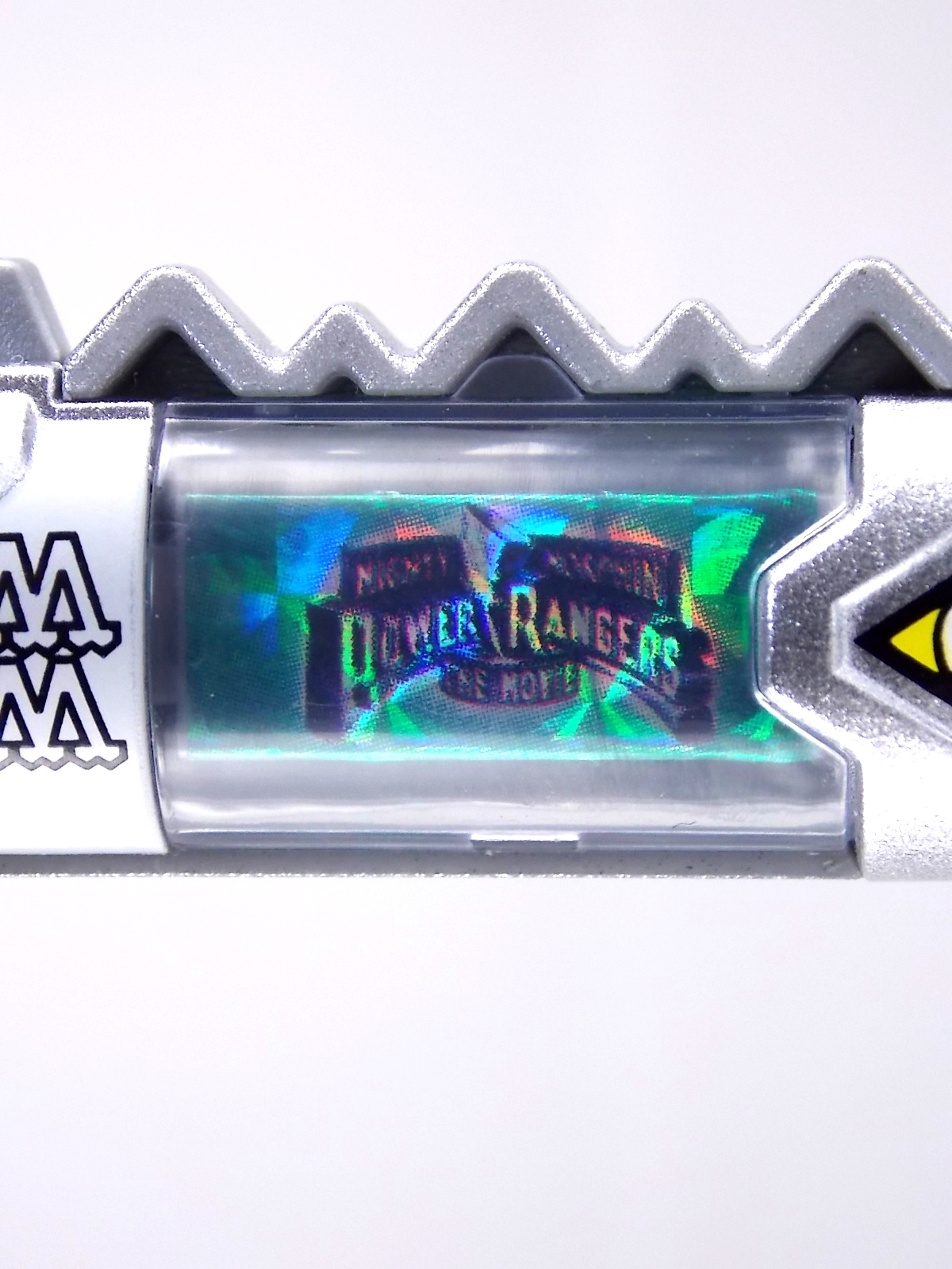 New York Comic Con 2015 may have come and gone but we've got at least one souvenir to remind us of the show. It's the Exclusive Mighty Morphin Power Rangers Movie Dino Charger Power Pack! And the accompanying Toys 'R' Us exclusive Ninja Mega Falconzord Charger as well! Read on below for a review and gallery of this exclusive grouping, and be sure to check out the brief video attached to this story to see what sounds these exclusive Dino Chargers make in the Dino Charge Morpher! ** It should be noted that technically the Megazord Charger would be the incorrect one to go with this set as it has the wrong wording of the name. That Charger is explicitly labeled as "Ninja Mega Falconzord" which is the TV version of the name. While the actual mecha featured in the movie was referred to as the "Ninja Falcon Megazord". It's minor but worth pointing out. Packaging What became the norm for Bandai America's previous Power Rangers con exclusive Ranger Key sets has now transitioned to Dino Chargers. Although this is only the 2nd set we've seen of them, I'm sure more will follow. The packaging is the same kind of long box door style box that the SDCC Mighty Morphin TV Series Dino Chargers were packaged in. Since this is Original Movie tie-in merchandise the front flaps of course feature the movie logo and White Ranger, being the most marketable member of the team. The back of the box features some nice head shot artwork of the whole team and the Ninja Megafalconzord as well as a brief overview of the Movie's plot. Open the velcro flap on the front to feast your eyes on this beautifully packaged set of Dino Chargers. As with the previous con exclusive set this is a fantastic presentation that feels the right level of fancy for an exclusive. Again we're treated to artwork of the rangers on each flap, only a bit more detailed this time. The packaging itself presents the Dino Chargers in the order that the Movie Rangers would traditionally stand when morphed such as on the DVD box art. The box has each of the rangers' names below their corresponding Charger as well. From left to right; Billy, Rocky, Tommy, Kimberly, Aisha, Adam. The 7th slot in this set is a special placeholder for the sold separately Toys 'R' Us Exclusive Ninja Megafalconzord Charger! A small flap with artwork of the Megazord is placed here to represent it until you get that one in hand, something which I already have for this review. The nice thing about this set is that it isn't taped or sealed shut. So you can easily open it to get that flap out of there once you have the final charger. The Dino Chargers themselves are packed into a small plastic tray within a cardboard insert. Dino Chargers Each of the Power Rangers Movie Dino Chargers is painted in a really gorgeous metallic silver. Something really befitting of a con exclusive pack. Much like the metallic Ranger Key sets we've gotten in recent years. Each one of the Chargers of course has it's own unique markings to go over as well. Each of them in default mode features the helmet of a movie ranger on a holofoil surface inside the middle of the charger. Standard stuff for Dino Chargers. What's really cool to see here is that each Charger has artwork on the end based on each rangers Ninjetti or Ninjazord! This is really fascinating as the Dino Charger artwork is a hold over from the Zyuden Sentai Kyoryuger collectible Zyudenchi gimmick. So seeing this set of Zords interpreted through that art style is kind of amazing. From left to right; Wolf, Ape, Falcon, Crane, Bear, Frog, & Ninja Megafalconzord head. Each of these Chargers also features what standard Dino Chargers do, and that's 3 additional images within the rotating prism. Simply press the button to cycle through each. However these are a bit more unique than cycling through active and inactive dinosaur images. Each Movie Dino Charger features the Rangers helmet at default but the 1st click brings you to their Movie exclusive weapon or power-up! But that's not all, here's the breakdown of what each Dino Charger will yield when clicked: Wolf Charger - Blue Ranger Helmet>Stega Stinger>Wolf Ninja Zord>Movie Logo Ape Charger - Red Ranger Helmet>Power Scope Helmet>Ape Ninja Zord>Movie Logo Falcon Charger - White Ranger Helmet>Saba>Ninja Falconzord>Movie Logo Crane Charger - Pink Ranger Helmet>Pterodactyl Thunder Whip>Crane Ninja Zord>Movie Logo Bear Charger - Yellow Ranger Helmet>Power Beam Helmet>Bear Ninja Zord>Movie Logo Frog Charger - Black Ranger Helmet>Movie Power/Blade Blaster>Frog Ninja Zord>Movie Logo Ninja Mega Falconzord Charger - Team Helmet Shot>White Ranger Morpher (Falcon)>Ninja Megafalconzord>Movie Logo This is a pretty creative way to get some variety out of each of these Chargers, though I can't help but feel that Black Ranger (Adam) got the short end of the stick by merely having the Power Blaster on his Charger. Though he got the shaft in the movie as well with no special weapon or power-up making an appearance. And the White Ranger Morpher being on the Megazord Charger seems a bit odd, but it works. All in all this is an excellent execution of the Dino Charger gimmick. The only other notable feature of these Movie Dino Chargers is the name of the aformentioned Ninja Zord on the back of each as well as a unique QR Code on the front of the charger. All of these chargers are of course compatible with the previously released Dino Charge Morpher and any other Dino Charger compatible toy released in this line. We'd known for some time that a some special sound effects were programmed into the Dino Charge Morpher and this set activates one. Just at the SDCC 2015 MMPR Dino Chargers did, the Mighty Morphin Power Rangers Movie Dino Chargers, all 6 in fact activate the "Comic-Con" sound byte! The separately sold Ninja Mega FalconzordCharger activates the "Legendary" sound byte much like the Dino Megazord Charger released at Toys 'R' Us earlier this year. Final Thoughts As far as convention exclusives go this is a creative 