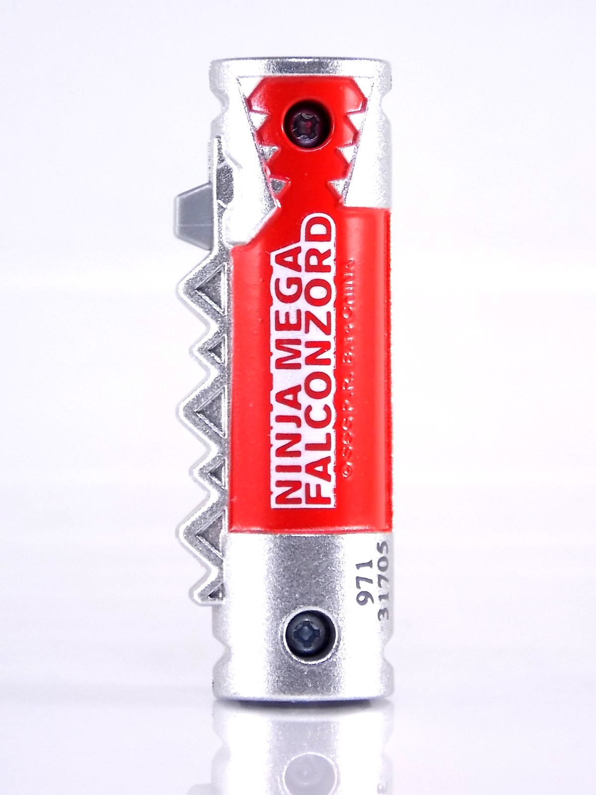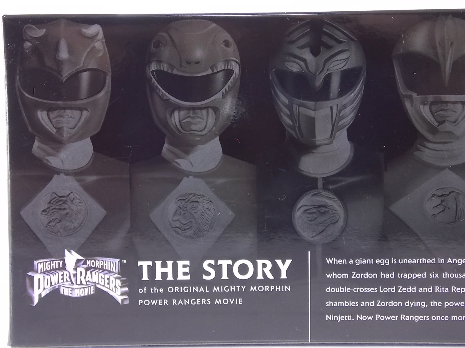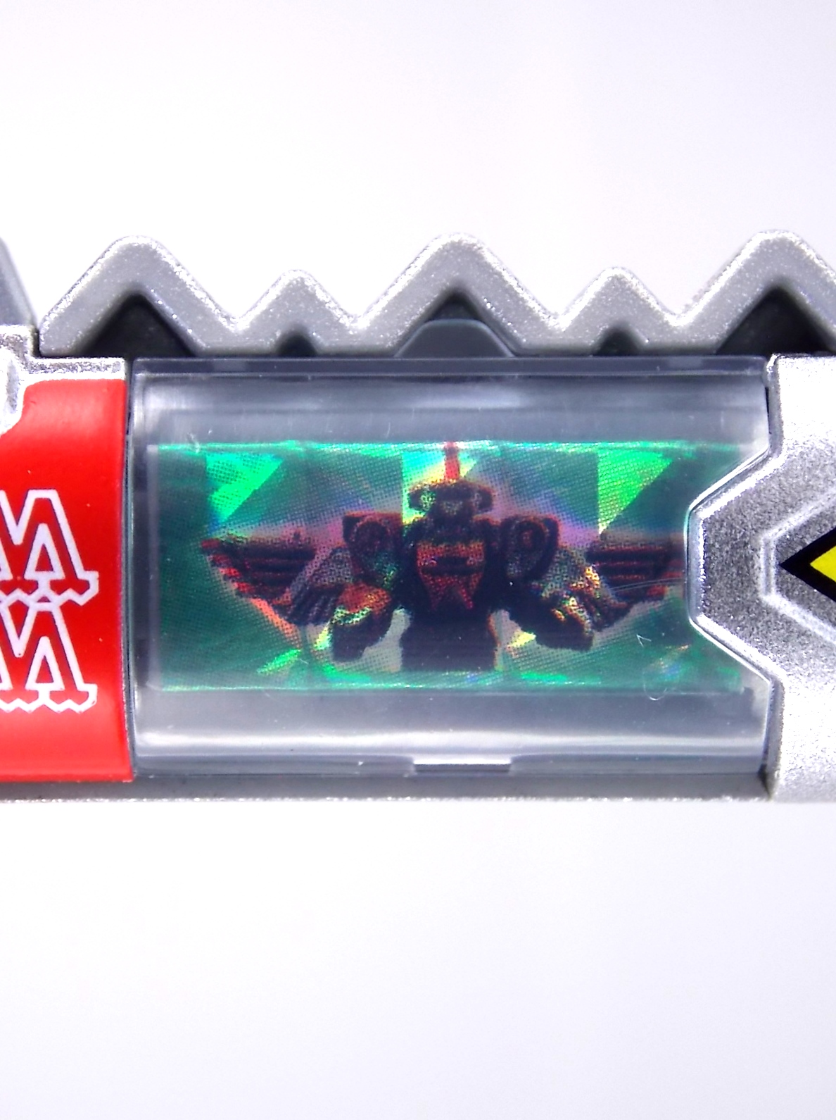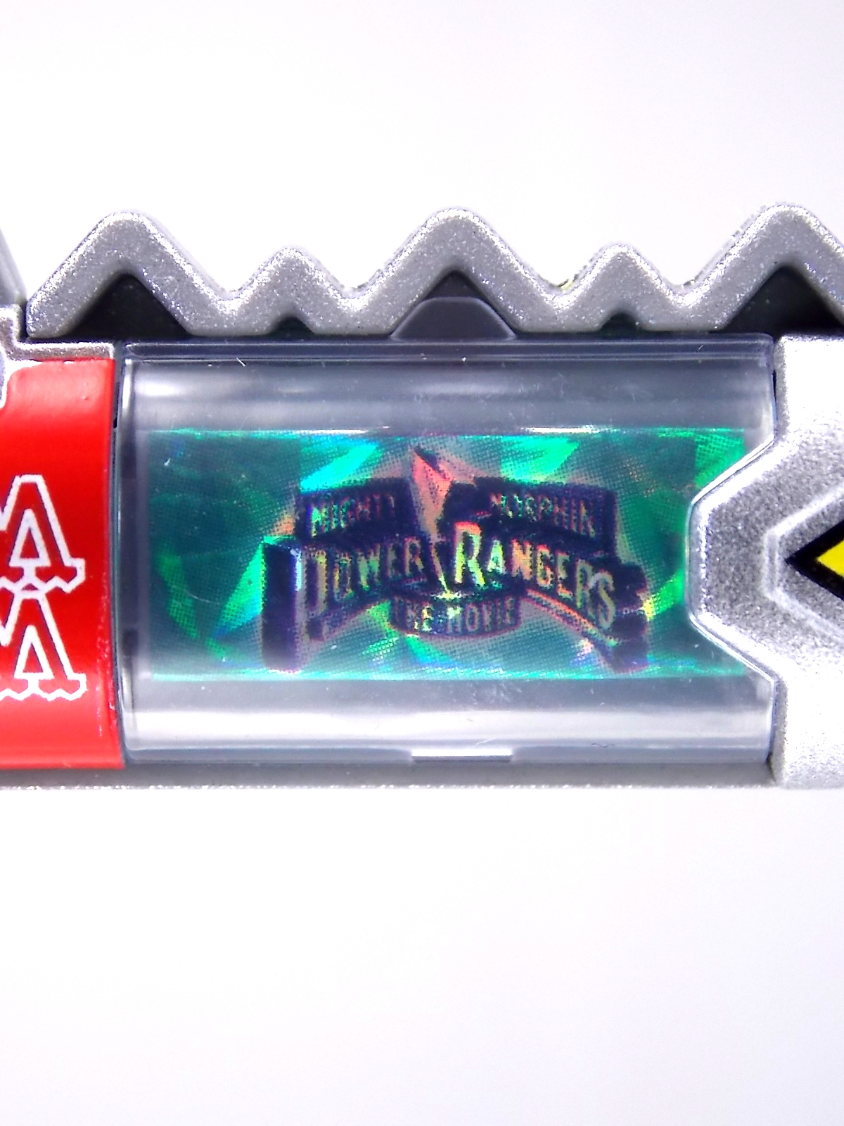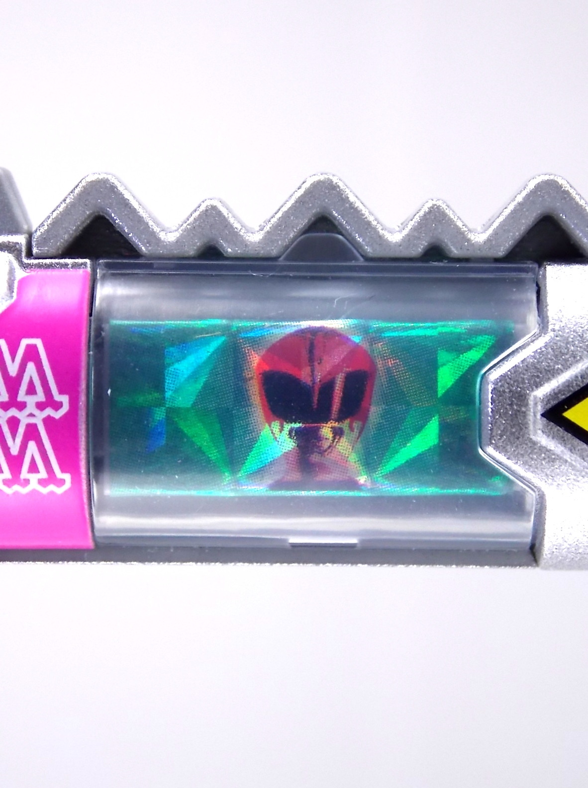 New York Comic Con 2015 may have come and gone but we've got at least one souvenir to remind us of the show. It's the Exclusive Mighty Morphin Power Rangers Movie Dino Charger Power Pack! And the accompanying Toys 'R' Us exclusive Ninja Mega Falconzord Charger as well! Read on below for a review and gallery of this exclusive grouping, and be sure to check out the brief video attached to this story to see what sounds these exclusive Dino Chargers make in the Dino Charge Morpher! ** It should be noted that technically the Megazord Charger would be the incorrect one to go with this set as it has the wrong wording of the name. That Charger is explicitly labeled as "Ninja Mega Falconzord" which is the TV version of the name. While the actual mecha featured in the movie was referred to as the "Ninja Falcon Megazord". It's minor but worth pointing out. Packaging What became the norm for Bandai America's previous Power Rangers con exclusive Ranger Key sets has now transitioned to Dino Chargers. Although this is only the 2nd set we've seen of them, I'm sure more will follow. The packaging is the same kind of long box door style box that the SDCC Mighty Morphin TV Series Dino Chargers were packaged in. Since this is Original Movie tie-in merchandise the front flaps of course feature the movie logo and White Ranger, being the most marketable member of the team. The back of the box features some nice head shot artwork of the whole team and the Ninja Megafalconzord as well as a brief overview of the Movie's plot. Open the velcro flap on the front to feast your eyes on this beautifully packaged set of Dino Chargers. As with the previous con exclusive set this is a fantastic presentation that feels the right level of fancy for an exclusive. Again we're treated to artwork of the rangers on each flap, only a bit more detailed this time. The packaging itself presents the Dino Chargers in the order that the Movie Rangers would traditionally stand when morphed such as on the DVD box art. The box has each of the rangers' names below their corresponding Charger as well. From left to right; Billy, Rocky, Tommy, Kimberly, Aisha, Adam. The 7th slot in this set is a special placeholder for the sold separately Toys 'R' Us Exclusive Ninja Megafalconzord Charger! A small flap with artwork of the Megazord is placed here to represent it until you get that one in hand, something which I already have for this review. The nice thing about this set is that it isn't taped or sealed shut. So you can easily open it to get that flap out of there once you have the final charger. The Dino Chargers themselves are packed into a small plastic tray within a cardboard insert. Dino Chargers Each of the Power Rangers Movie Dino Chargers is painted in a really gorgeous metallic silver. Something really befitting of a con exclusive pack. Much like the metallic Ranger Key sets we've gotten in recent years. Each one of the Chargers of course has it's own unique markings to go over as well. Each of them in default mode features the helmet of a movie ranger on a holofoil surface inside the middle of the charger. Standard stuff for Dino Chargers. What's really cool to see here is that each Charger has artwork on the end based on each rangers Ninjetti or Ninjazord! This is really fascinating as the Dino Charger artwork is a hold over from the Zyuden Sentai Kyoryuger collectible Zyudenchi gimmick. So seeing this set of Zords interpreted through that art style is kind of amazing. From left to right; Wolf, Ape, Falcon, Crane, Bear, Frog, & Ninja Megafalconzord head. Each of these Chargers also features what standard Dino Chargers do, and that's 3 additional images within the rotating prism. Simply press the button to cycle through each. However these are a bit more unique than cycling through active and inactive dinosaur images. Each Movie Dino Charger features the Rangers helmet at default but the 1st click brings you to their Movie exclusive weapon or power-up! But that's not all, here's the breakdown of what each Dino Charger will yield when clicked: Wolf Charger - Blue Ranger Helmet>Stega Stinger>Wolf Ninja Zord>Movie Logo Ape Charger - Red Ranger Helmet>Power Scope Helmet>Ape Ninja Zord>Movie Logo Falcon Charger - White Ranger Helmet>Saba>Ninja Falconzord>Movie Logo Crane Charger - Pink Ranger Helmet>Pterodactyl Thunder Whip>Crane Ninja Zord>Movie Logo Bear Charger - Yellow Ranger Helmet>Power Beam Helmet>Bear Ninja Zord>Movie Logo Frog Charger - Black Ranger Helmet>Movie Power/Blade Blaster>Frog Ninja Zord>Movie Logo Ninja Mega Falconzord Charger - Team Helmet Shot>White Ranger Morpher (Falcon)>Ninja Megafalconzord>Movie Logo This is a pretty creative way to get some variety out of each of these Chargers, though I can't help but feel that Black Ranger (Adam) got the short end of the stick by merely having the Power Blaster on his Charger. Though he got the shaft in the movie as well with no special weapon or power-up making an appearance. And the White Ranger Morpher being on the Megazord Charger seems a bit odd, but it works. All in all this is an excellent execution of the Dino Charger gimmick. The only other notable feature of these Movie Dino Chargers is the name of the aformentioned Ninja Zord on the back of each as well as a unique QR Code on the front of the charger. All of these chargers are of course compatible with the previously released Dino Charge Morpher and any other Dino Charger compatible toy released in this line. We'd known for some time that a some special sound effects were programmed into the Dino Charge Morpher and this set activates one. Just at the SDCC 2015 MMPR Dino Chargers did, the Mighty Morphin Power Rangers Movie Dino Chargers, all 6 in fact activate the "Comic-Con" sound byte! The separately sold Ninja Mega FalconzordCharger activates the "Legendary" sound byte much like the Dino Megazord Charger released at Toys 'R' Us earlier this year. Final Thoughts As far as convention exclusives go this is a creative 