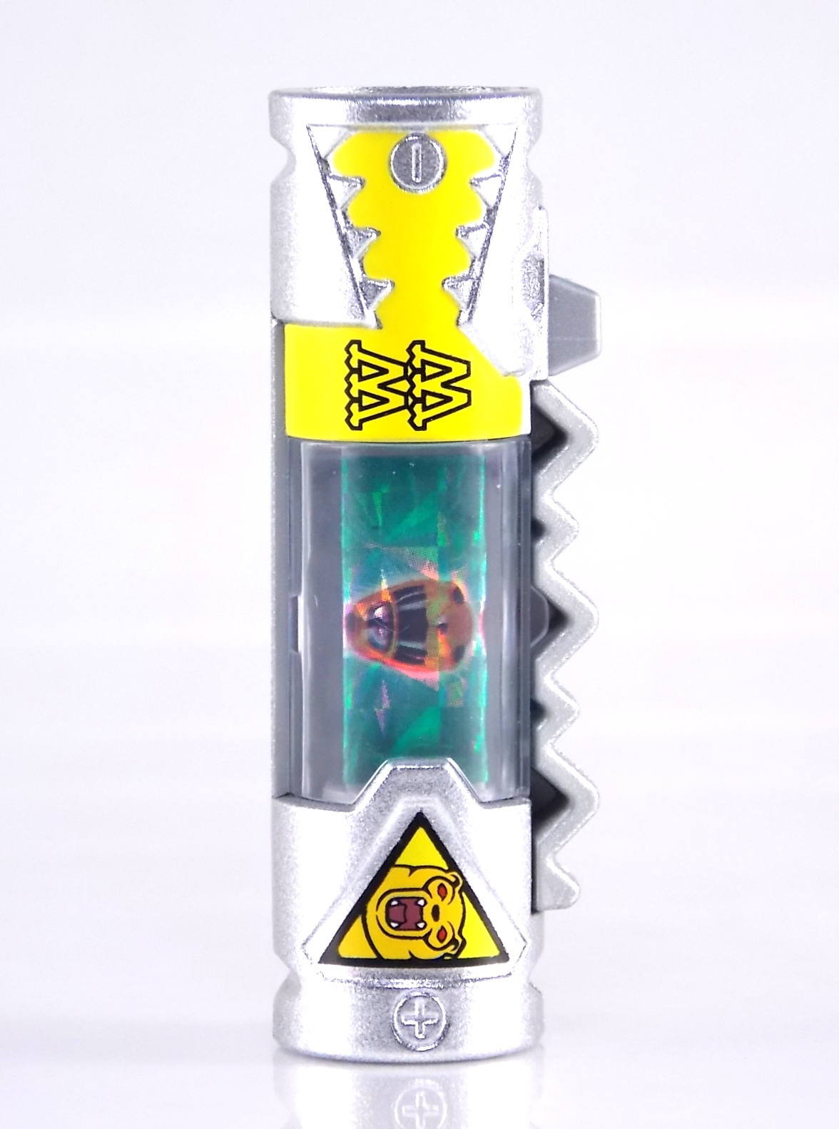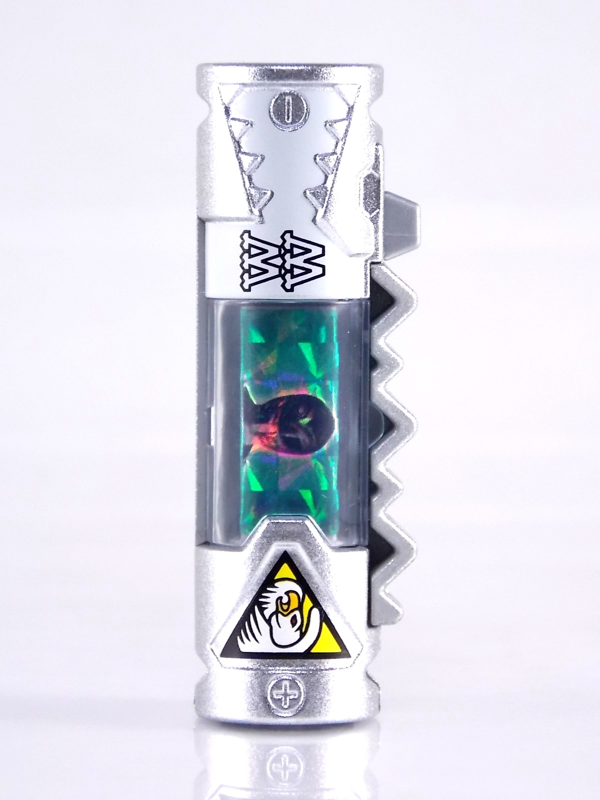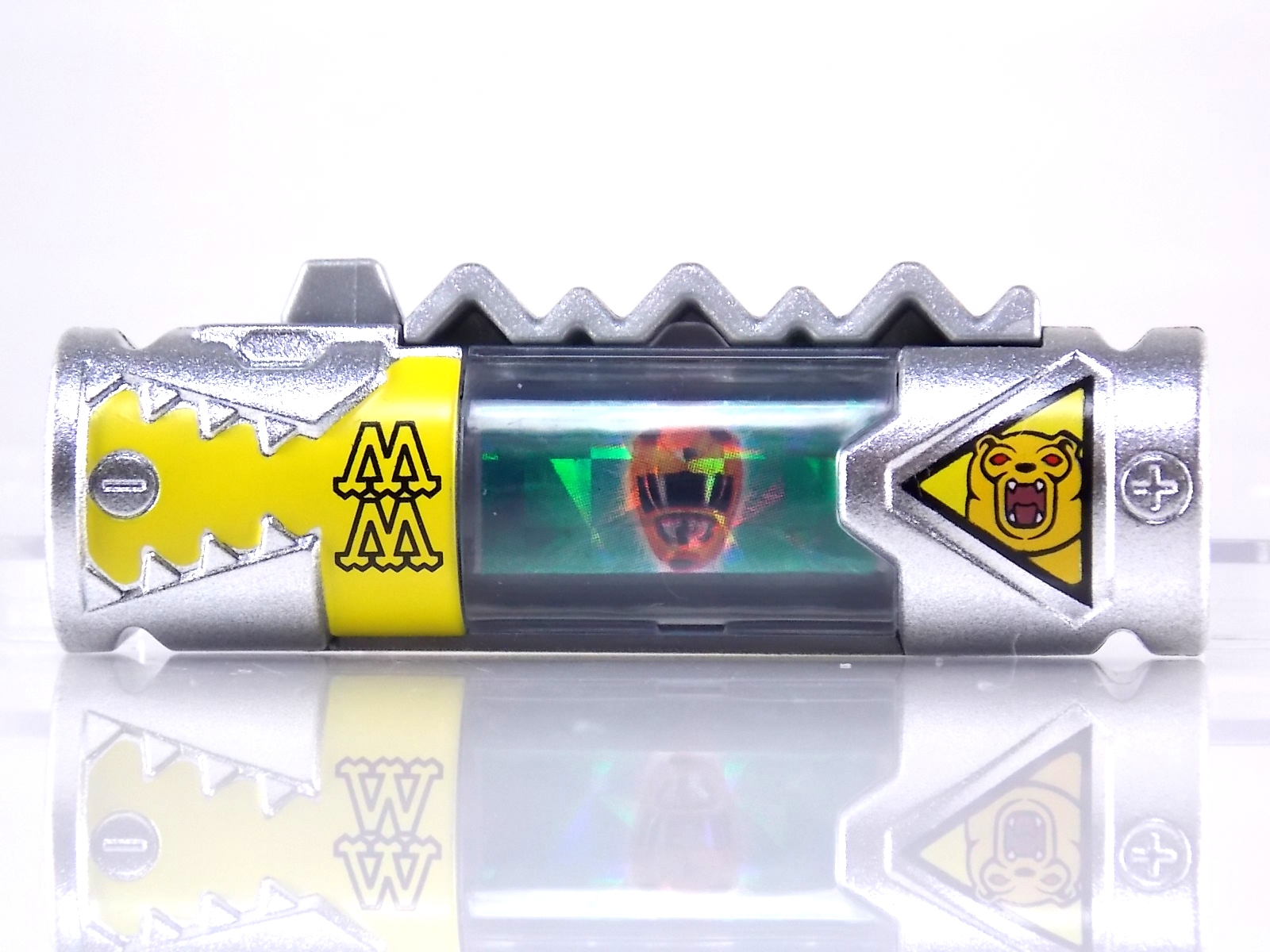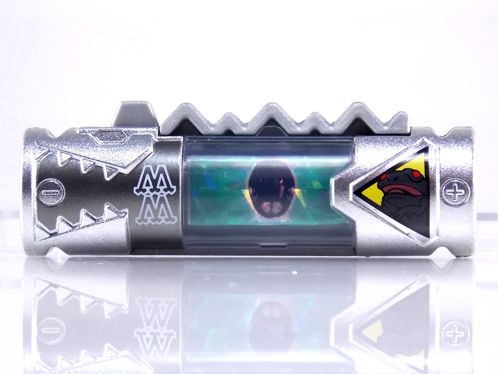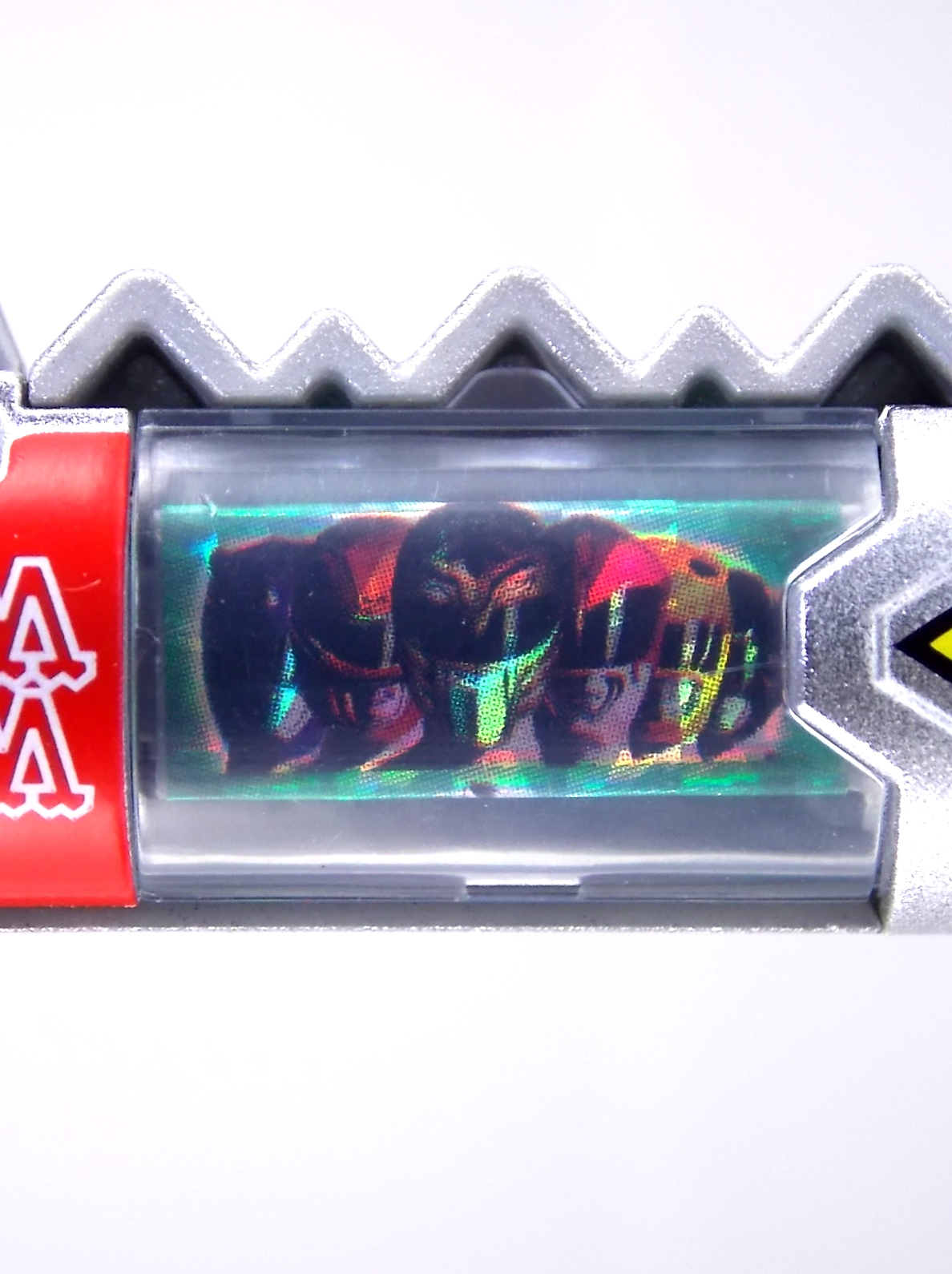New York Comic Con 2015 may have come and gone but we've got at least one souvenir to remind us of the show. It's the Exclusive Mighty Morphin Power Rangers Movie Dino Charger Power Pack! And the accompanying Toys 'R' Us exclusive Ninja Mega Falconzord Charger as well! Read on below for a review and gallery of this exclusive grouping, and be sure to check out the brief video attached to this story to see what sounds these exclusive Dino Chargers make in the Dino Charge Morpher! ** It should be noted that technically the Megazord Charger would be the incorrect one to go with this set as it has the wrong wording of the name. That Charger is explicitly labeled as "Ninja Mega Falconzord" which is the TV version of the name. While the actual mecha featured in the movie was referred to as the "Ninja Falcon Megazord". It's minor but worth pointing out. Packaging What became the norm for Bandai America's previous Power Rangers con exclusive Ranger Key sets has now transitioned to Dino Chargers. Although this is only the 2nd set we've seen of them, I'm sure more will follow. The packaging is the same kind of long box door style box that the SDCC Mighty Morphin TV Series Dino Chargers were packaged in. Since this is Original Movie tie-in merchandise the front flaps of course feature the movie logo and White Ranger, being the most marketable member of the team. The back of the box features some nice head shot artwork of the whole team and the Ninja Megafalconzord as well as a brief overview of the Movie's plot. Open the velcro flap on the front to feast your eyes on this beautifully packaged set of Dino Chargers. As with the previous con exclusive set this is a fantastic presentation that feels the right level of fancy for an exclusive. Again we're treated to artwork of the rangers on each flap, only a bit more detailed this time. The packaging itself presents the Dino Chargers in the order that the Movie Rangers would traditionally stand when morphed such as on the DVD box art. The box has each of the rangers' names below their corresponding Charger as well. From left to right; Billy, Rocky, Tommy, Kimberly, Aisha, Adam. The 7th slot in this set is a special placeholder for the sold separately Toys 'R' Us Exclusive Ninja Megafalconzord Charger! A small flap with artwork of the Megazord is placed here to represent it until you get that one in hand, something which I already have for this review. The nice thing about this set is that it isn't taped or sealed shut. So you can easily open it to get that flap out of there once you have the final charger. The Dino Chargers themselves are packed into a small plastic tray within a cardboard insert. Dino Chargers Each of the Power Rangers Movie Dino Chargers is painted in a really gorgeous metallic silver. Something really befitting of a con exclusive pack. Much like the metallic Ranger Key sets we've gotten in recent years. Each one of the Chargers of course has it's own unique markings to go over as well. Each of them in default mode features the helmet of a movie ranger on a holofoil surface inside the middle of the charger. Standard stuff for Dino Chargers. What's really cool to see here is that each Charger has artwork on the end based on each rangers Ninjetti or Ninjazord! This is really fascinating as the Dino Charger artwork is a hold over from the Zyuden Sentai Kyoryuger collectible Zyudenchi gimmick. So seeing this set of Zords interpreted through that art style is kind of amazing. From left to right; Wolf, Ape, Falcon, Crane, Bear, Frog, & Ninja Megafalconzord head. Each of these Chargers also features what standard Dino Chargers do, and that's 3 additional images within the rotating prism. Simply press the button to cycle through each. However these are a bit more unique than cycling through active and inactive dinosaur images. Each Movie Dino Charger features the Rangers helmet at default but the 1st click brings you to their Movie exclusive weapon or power-up! But that's not all, here's the breakdown of what each Dino Charger will yield when clicked: Wolf Charger - Blue Ranger Helmet>Stega Stinger>Wolf Ninja Zord>Movie Logo Ape Charger - Red Ranger Helmet>Power Scope Helmet>Ape Ninja Zord>Movie Logo Falcon Charger - White Ranger Helmet>Saba>Ninja Falconzord>Movie Logo Crane Charger - Pink Ranger Helmet>Pterodactyl Thunder Whip>Crane Ninja Zord>Movie Logo Bear Charger - Yellow Ranger Helmet>Power Beam Helmet>Bear Ninja Zord>Movie Logo Frog Charger - Black Ranger Helmet>Movie Power/Blade Blaster>Frog Ninja Zord>Movie Logo Ninja Mega Falconzord Charger - Team Helmet Shot>White Ranger Morpher (Falcon)>Ninja Megafalconzord>Movie Logo This is a pretty creative way to get some variety out of each of these Chargers, though I can't help but feel that Black Ranger (Adam) got the short end of the stick by merely having the Power Blaster on his Charger. Though he got the shaft in the movie as well with no special weapon or power-up making an appearance. And the White Ranger Morpher being on the Megazord Charger seems a bit odd, but it works. All in all this is an excellent execution of the Dino Charger gimmick. The only other notable feature of these Movie Dino Chargers is the name of the aformentioned Ninja Zord on the back of each as well as a unique QR Code on the front of the charger. All of these chargers are of course compatible with the previously released Dino Charge Morpher and any other Dino Charger compatible toy released in this line. We'd known for some time that a some special sound effects were programmed into the Dino Charge Morpher and this set activates one. Just at the SDCC 2015 MMPR Dino Chargers did, the Mighty Morphin Power Rangers Movie Dino Chargers, all 6 in fact activate the "Comic-Con" sound byte! The separately sold Ninja Mega FalconzordCharger activates the "Legendary" sound byte much like the Dino Megazord Charger released at Toys 'R' Us earlier this year. Final Thoughts As far as convention exclusives go this is a creative 