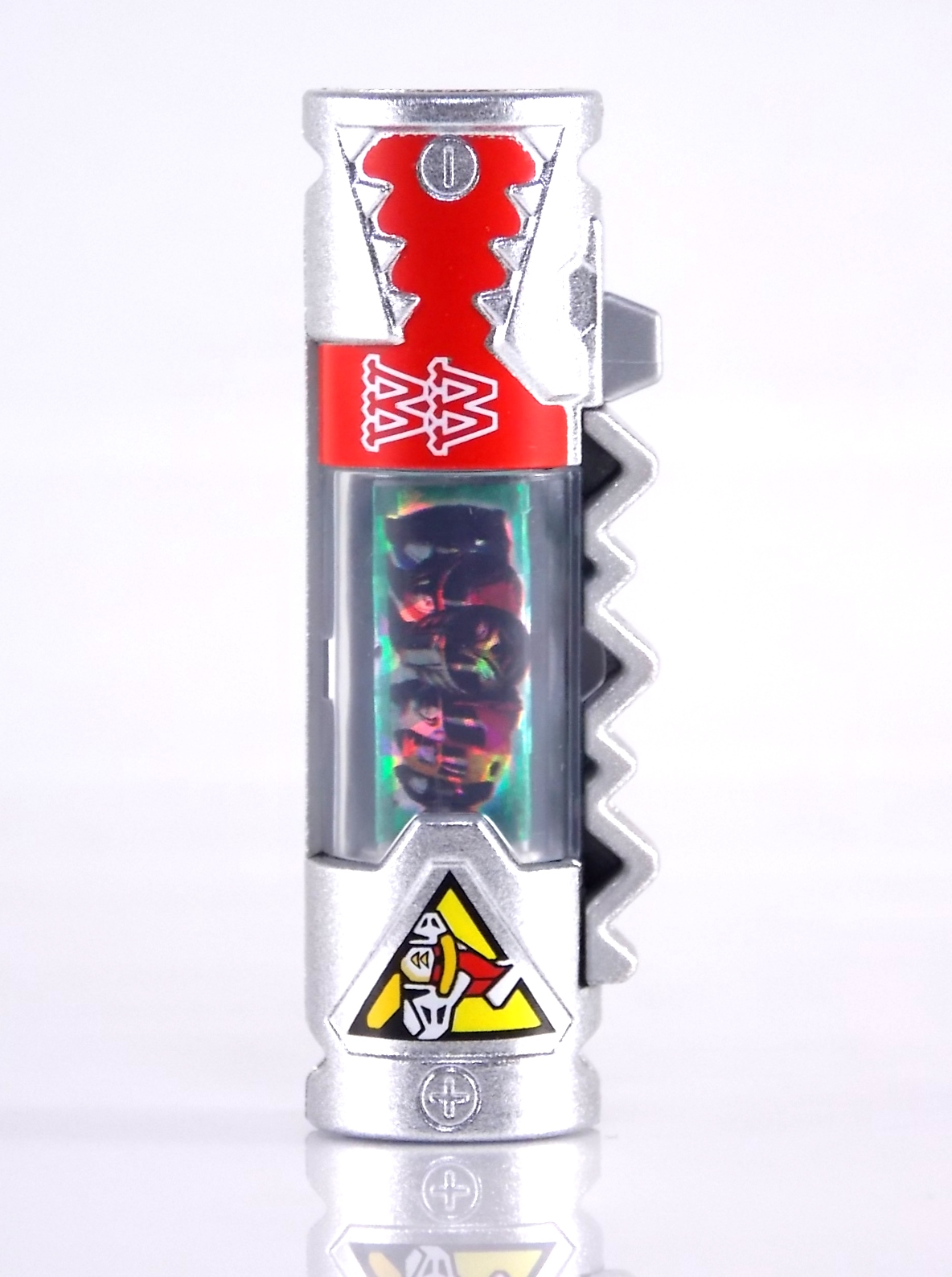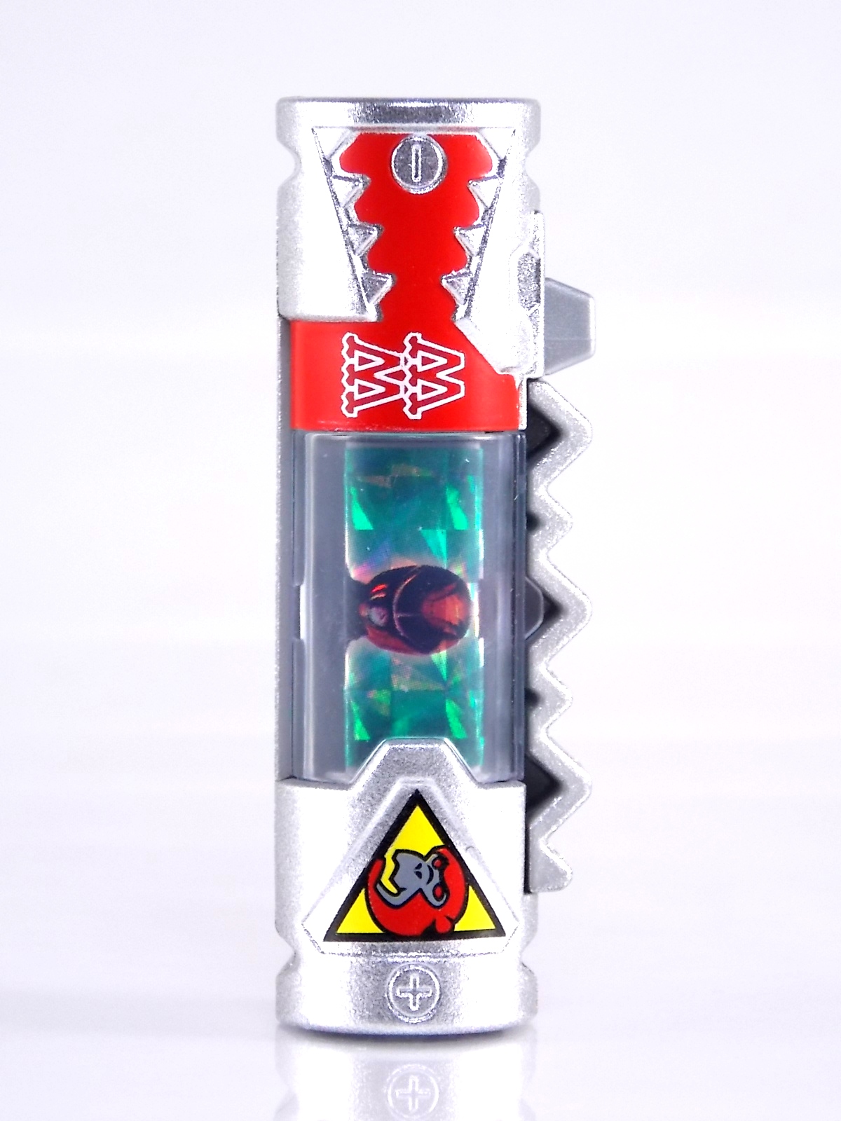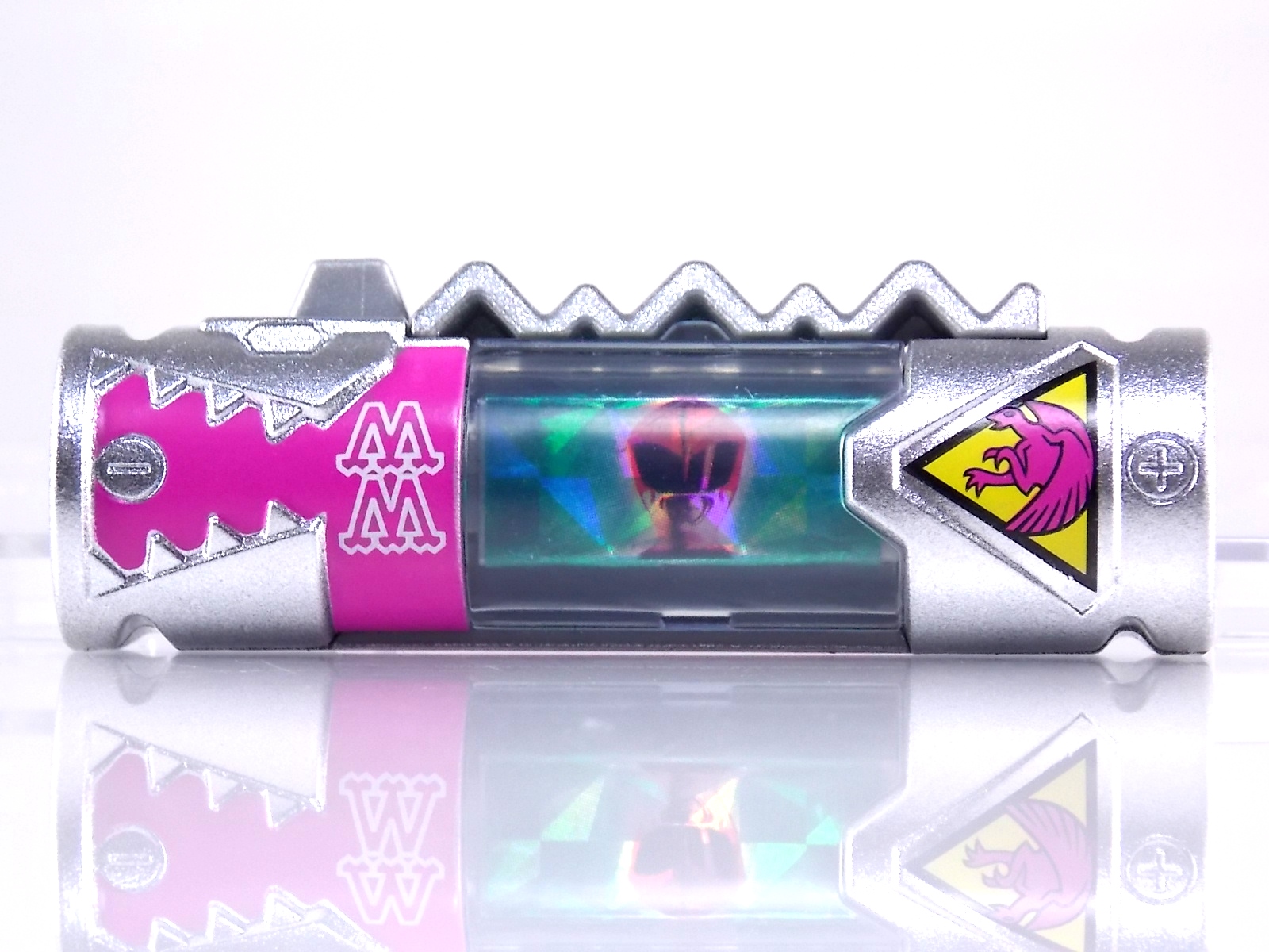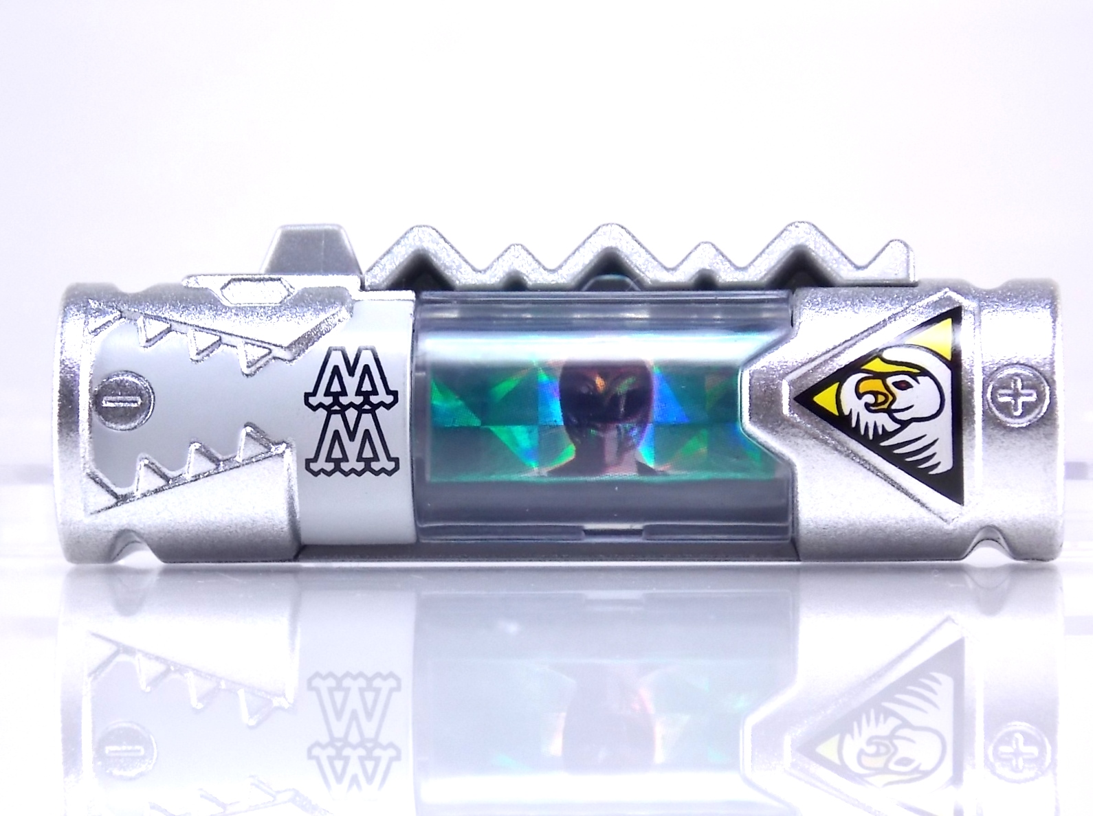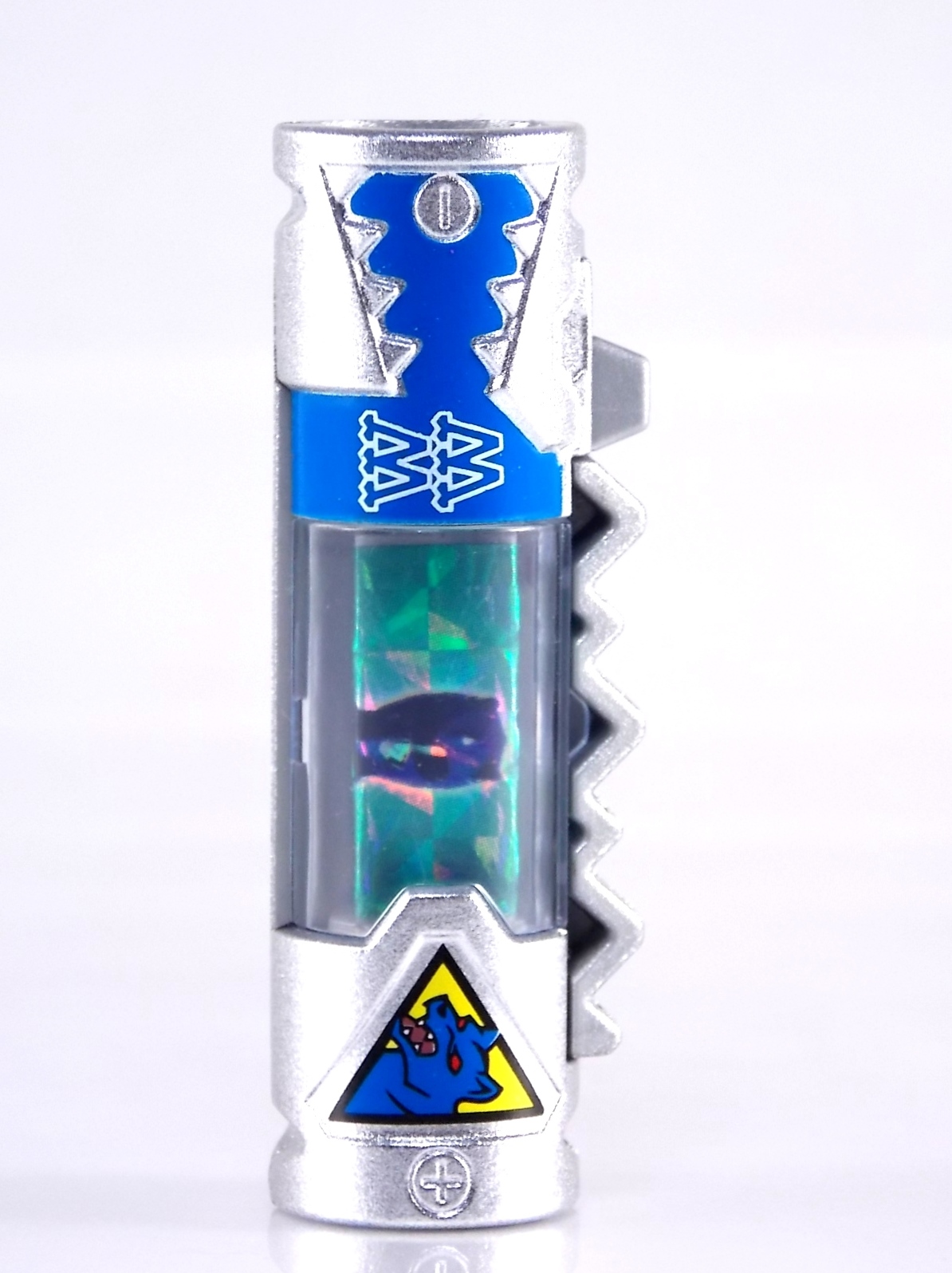 New York Comic Con 2015 may have come and gone but we've got at least one souvenir to remind us of the show. It's the Exclusive Mighty Morphin Power Rangers Movie Dino Charger Power Pack! And the accompanying Toys 'R' Us exclusive Ninja Mega Falconzord Charger as well! Read on below for a review and gallery of this exclusive grouping, and be sure to check out the brief video attached to this story to see what sounds these exclusive Dino Chargers make in the Dino Charge Morpher! ** It should be noted that technically the Megazord Charger would be the incorrect one to go with this set as it has the wrong wording of the name. That Charger is explicitly labeled as "Ninja Mega Falconzord" which is the TV version of the name. While the actual mecha featured in the movie was referred to as the "Ninja Falcon Megazord". It's minor but worth pointing out. Packaging What became the norm for Bandai America's previous Power Rangers con exclusive Ranger Key sets has now transitioned to Dino Chargers. Although this is only the 2nd set we've seen of them, I'm sure more will follow. The packaging is the same kind of long box door style box that the SDCC Mighty Morphin TV Series Dino Chargers were packaged in. Since this is Original Movie tie-in merchandise the front flaps of course feature the movie logo and White Ranger, being the most marketable member of the team. The back of the box features some nice head shot artwork of the whole team and the Ninja Megafalconzord as well as a brief overview of the Movie's plot. Open the velcro flap on the front to feast your eyes on this beautifully packaged set of Dino Chargers. As with the previous con exclusive set this is a fantastic presentation that feels the right level of fancy for an exclusive. Again we're treated to artwork of the rangers on each flap, only a bit more detailed this time. The packaging itself presents the Dino Chargers in the order that the Movie Rangers would traditionally stand when morphed such as on the DVD box art. The box has each of the rangers' names below their corresponding Charger as well. From left to right; Billy, Rocky, Tommy, Kimberly, Aisha, Adam. The 7th slot in this set is a special placeholder for the sold separately Toys 'R' Us Exclusive Ninja Megafalconzord Charger! A small flap with artwork of the Megazord is placed here to represent it until you get that one in hand, something which I already have for this review. The nice thing about this set is that it isn't taped or sealed shut. So you can easily open it to get that flap out of there once you have the final charger. The Dino Chargers themselves are packed into a small plastic tray within a cardboard insert. Dino Chargers Each of the Power Rangers Movie Dino Chargers is painted in a really gorgeous metallic silver. Something really befitting of a con exclusive pack. Much like the metallic Ranger Key sets we've gotten in recent years. Each one of the Chargers of course has it's own unique markings to go over as well. Each of them in default mode features the helmet of a movie ranger on a holofoil surface inside the middle of the charger. Standard stuff for Dino Chargers. What's really cool to see here is that each Charger has artwork on the end based on each rangers Ninjetti or Ninjazord! This is really fascinating as the Dino Charger artwork is a hold over from the Zyuden Sentai Kyoryuger collectible Zyudenchi gimmick. So seeing this set of Zords interpreted through that art style is kind of amazing. From left to right; Wolf, Ape, Falcon, Crane, Bear, Frog, & Ninja Megafalconzord head. Each of these Chargers also features what standard Dino Chargers do, and that's 3 additional images within the rotating prism. Simply press the button to cycle through each. However these are a bit more unique than cycling through active and inactive dinosaur images. Each Movie Dino Charger features the Rangers helmet at default but the 1st click brings you to their Movie exclusive weapon or power-up! But that's not all, here's the breakdown of what each Dino Charger will yield when clicked: Wolf Charger - Blue Ranger Helmet>Stega Stinger>Wolf Ninja Zord>Movie Logo Ape Charger - Red Ranger Helmet>Power Scope Helmet>Ape Ninja Zord>Movie Logo Falcon Charger - White Ranger Helmet>Saba>Ninja Falconzord>Movie Logo Crane Charger - Pink Ranger Helmet>Pterodactyl Thunder Whip>Crane Ninja Zord>Movie Logo Bear Charger - Yellow Ranger Helmet>Power Beam Helmet>Bear Ninja Zord>Movie Logo Frog Charger - Black Ranger Helmet>Movie Power/Blade Blaster>Frog Ninja Zord>Movie Logo Ninja Mega Falconzord Charger - Team Helmet Shot>White Ranger Morpher (Falcon)>Ninja Megafalconzord>Movie Logo This is a pretty creative way to get some variety out of each of these Chargers, though I can't help but feel that Black Ranger (Adam) got the short end of the stick by merely having the Power Blaster on his Charger. Though he got the shaft in the movie as well with no special weapon or power-up making an appearance. And the White Ranger Morpher being on the Megazord Charger seems a bit odd, but it works. All in all this is an excellent execution of the Dino Charger gimmick. The only other notable feature of these Movie Dino Chargers is the name of the aformentioned Ninja Zord on the back of each as well as a unique QR Code on the front of the charger. All of these chargers are of course compatible with the previously released Dino Charge Morpher and any other Dino Charger compatible toy released in this line. We'd known for some time that a some special sound effects were programmed into the Dino Charge Morpher and this set activates one. Just at the SDCC 2015 MMPR Dino Chargers did, the Mighty Morphin Power Rangers Movie Dino Chargers, all 6 in fact activate the "Comic-Con" sound byte! The separately sold Ninja Mega FalconzordCharger activates the "Legendary" sound byte much like the Dino Megazord Charger released at Toys 'R' Us earlier this year. Final Thoughts As far as convention exclusives go this is a creative 