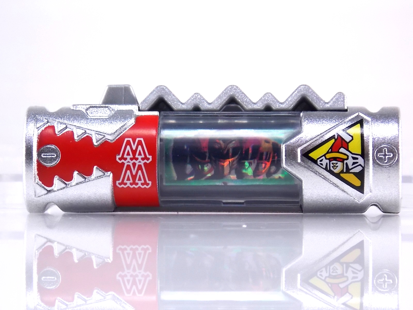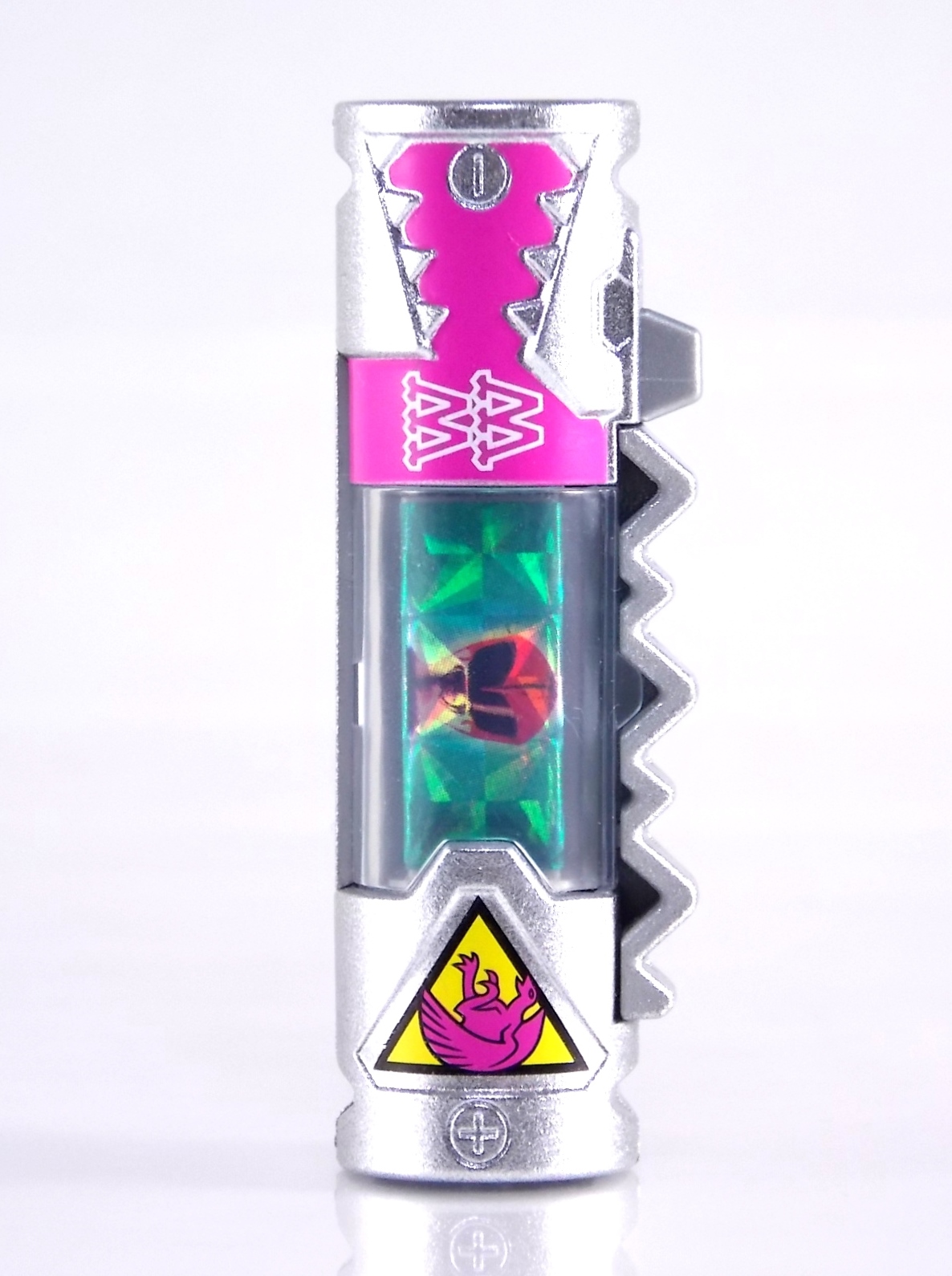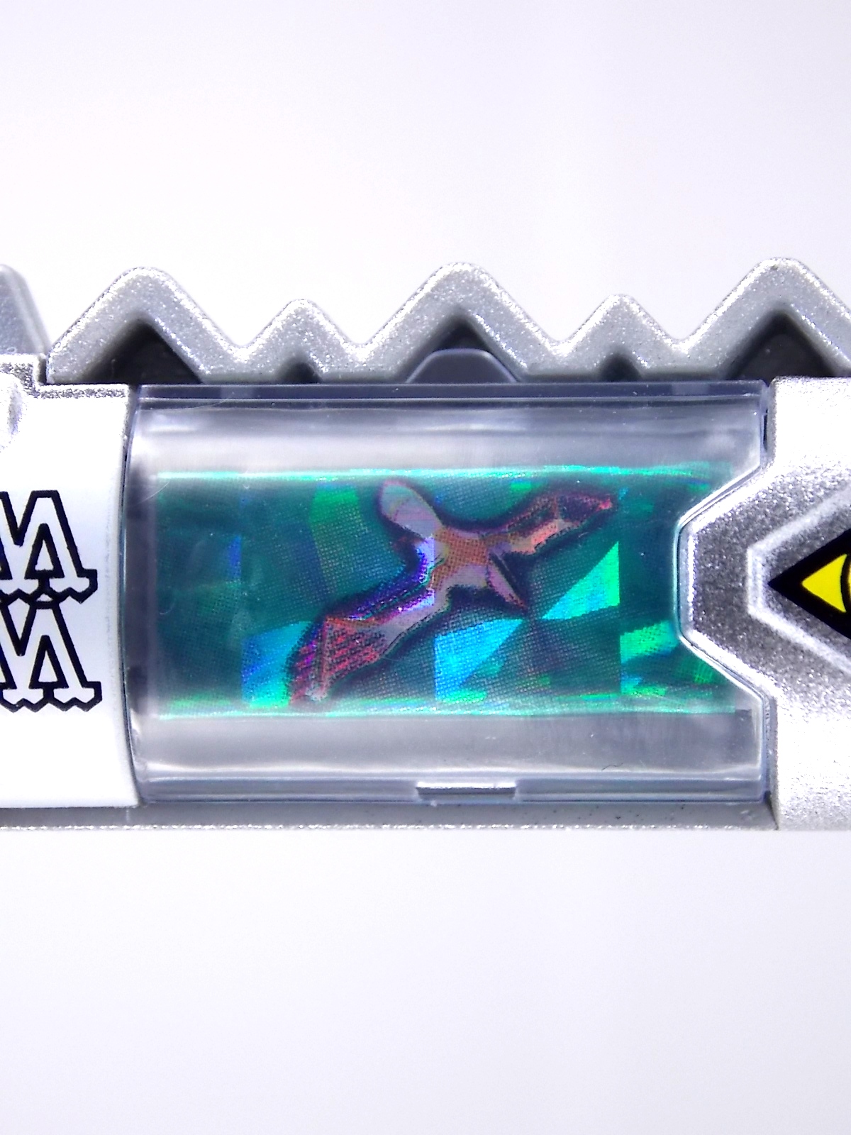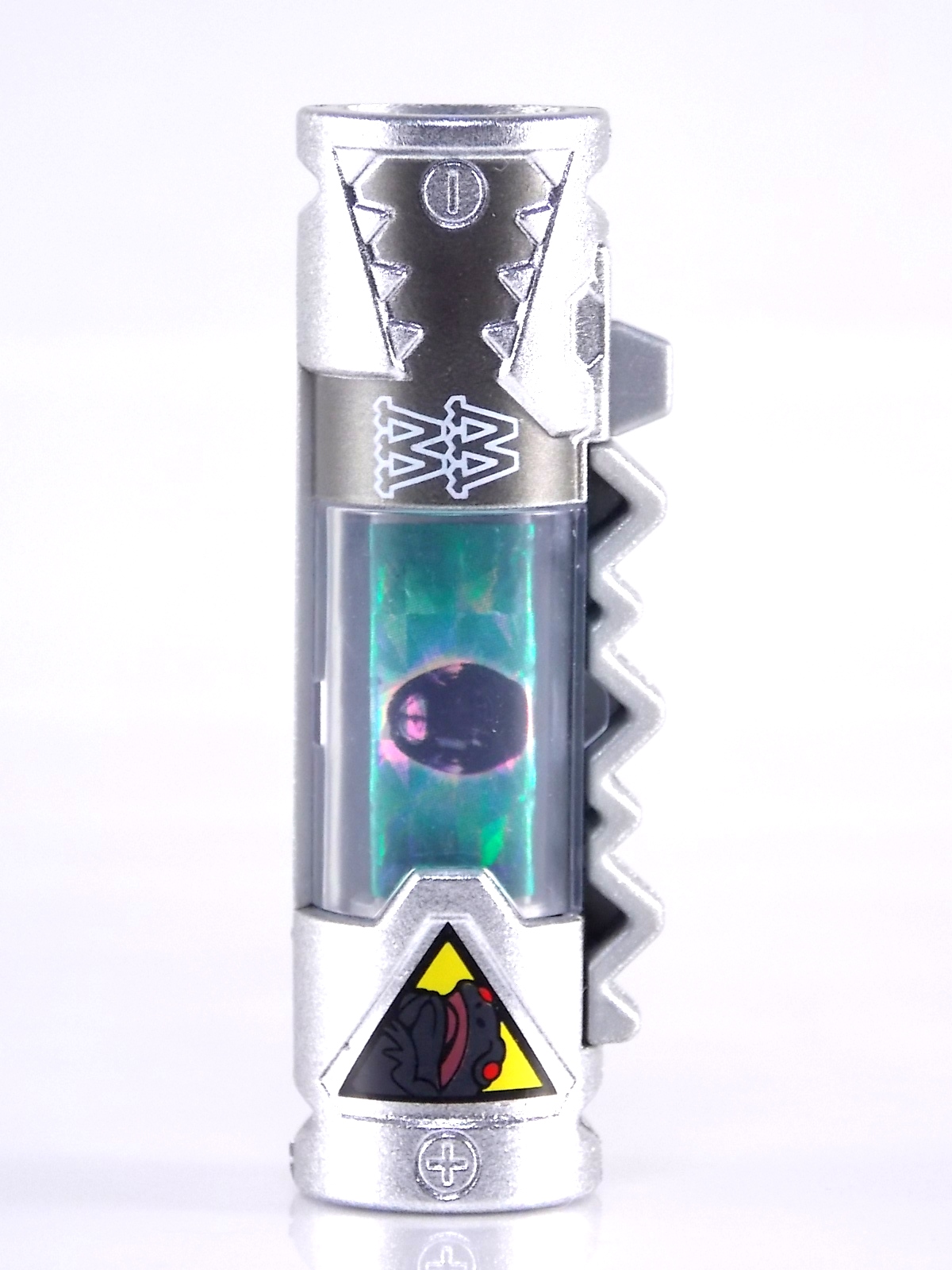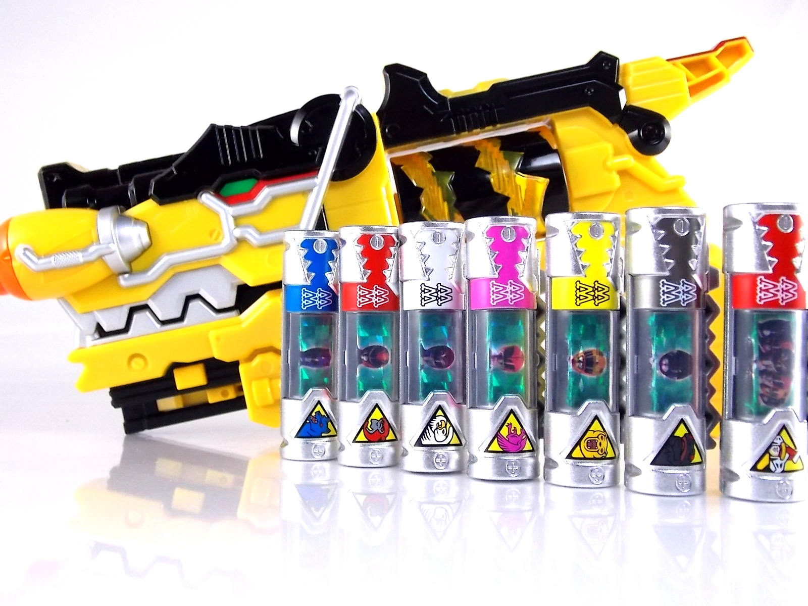 New York Comic Con 2015 may have come and gone but we've got at least one souvenir to remind us of the show. It's the Exclusive Mighty Morphin Power Rangers Movie Dino Charger Power Pack! And the accompanying Toys 'R' Us exclusive Ninja Mega Falconzord Charger as well! Read on below for a review and gallery of this exclusive grouping, and be sure to check out the brief video attached to this story to see what sounds these exclusive Dino Chargers make in the Dino Charge Morpher! ** It should be noted that technically the Megazord Charger would be the incorrect one to go with this set as it has the wrong wording of the name. That Charger is explicitly labeled as "Ninja Mega Falconzord" which is the TV version of the name. While the actual mecha featured in the movie was referred to as the "Ninja Falcon Megazord". It's minor but worth pointing out. Packaging What became the norm for Bandai America's previous Power Rangers con exclusive Ranger Key sets has now transitioned to Dino Chargers. Although this is only the 2nd set we've seen of them, I'm sure more will follow. The packaging is the same kind of long box door style box that the SDCC Mighty Morphin TV Series Dino Chargers were packaged in. Since this is Original Movie tie-in merchandise the front flaps of course feature the movie logo and White Ranger, being the most marketable member of the team. The back of the box features some nice head shot artwork of the whole team and the Ninja Megafalconzord as well as a brief overview of the Movie's plot. Open the velcro flap on the front to feast your eyes on this beautifully packaged set of Dino Chargers. As with the previous con exclusive set this is a fantastic presentation that feels the right level of fancy for an exclusive. Again we're treated to artwork of the rangers on each flap, only a bit more detailed this time. The packaging itself presents the Dino Chargers in the order that the Movie Rangers would traditionally stand when morphed such as on the DVD box art. The box has each of the rangers' names below their corresponding Charger as well. From left to right; Billy, Rocky, Tommy, Kimberly, Aisha, Adam. The 7th slot in this set is a special placeholder for the sold separately Toys 'R' Us Exclusive Ninja Megafalconzord Charger! A small flap with artwork of the Megazord is placed here to represent it until you get that one in hand, something which I already have for this review. The nice thing about this set is that it isn't taped or sealed shut. So you can easily open it to get that flap out of there once you have the final charger. The Dino Chargers themselves are packed into a small plastic tray within a cardboard insert. Dino Chargers Each of the Power Rangers Movie Dino Chargers is painted in a really gorgeous metallic silver. Something really befitting of a con exclusive pack. Much like the metallic Ranger Key sets we've gotten in recent years. Each one of the Chargers of course has it's own unique markings to go over as well. Each of them in default mode features the helmet of a movie ranger on a holofoil surface inside the middle of the charger. Standard stuff for Dino Chargers. What's really cool to see here is that each Charger has artwork on the end based on each rangers Ninjetti or Ninjazord! This is really fascinating as the Dino Charger artwork is a hold over from the Zyuden Sentai Kyoryuger collectible Zyudenchi gimmick. So seeing this set of Zords interpreted through that art style is kind of amazing. From left to right; Wolf, Ape, Falcon, Crane, Bear, Frog, & Ninja Megafalconzord head. Each of these Chargers also features what standard Dino Chargers do, and that's 3 additional images within the rotating prism. Simply press the button to cycle through each. However these are a bit more unique than cycling through active and inactive dinosaur images. Each Movie Dino Charger features the Rangers helmet at default but the 1st click brings you to their Movie exclusive weapon or power-up! But that's not all, here's the breakdown of what each Dino Charger will yield when clicked: Wolf Charger - Blue Ranger Helmet>Stega Stinger>Wolf Ninja Zord>Movie Logo Ape Charger - Red Ranger Helmet>Power Scope Helmet>Ape Ninja Zord>Movie Logo Falcon Charger - White Ranger Helmet>Saba>Ninja Falconzord>Movie Logo Crane Charger - Pink Ranger Helmet>Pterodactyl Thunder Whip>Crane Ninja Zord>Movie Logo Bear Charger - Yellow Ranger Helmet>Power Beam Helmet>Bear Ninja Zord>Movie Logo Frog Charger - Black Ranger Helmet>Movie Power/Blade Blaster>Frog Ninja Zord>Movie Logo Ninja Mega Falconzord Charger - Team Helmet Shot>White Ranger Morpher (Falcon)>Ninja Megafalconzord>Movie Logo This is a pretty creative way to get some variety out of each of these Chargers, though I can't help but feel that Black Ranger (Adam) got the short end of the stick by merely having the Power Blaster on his Charger. Though he got the shaft in the movie as well with no special weapon or power-up making an appearance. And the White Ranger Morpher being on the Megazord Charger seems a bit odd, but it works. All in all this is an excellent execution of the Dino Charger gimmick. The only other notable feature of these Movie Dino Chargers is the name of the aformentioned Ninja Zord on the back of each as well as a unique QR Code on the front of the charger. All of these chargers are of course compatible with the previously released Dino Charge Morpher and any other Dino Charger compatible toy released in this line. We'd known for some time that a some special sound effects were programmed into the Dino Charge Morpher and this set activates one. Just at the SDCC 2015 MMPR Dino Chargers did, the Mighty Morphin Power Rangers Movie Dino Chargers, all 6 in fact activate the "Comic-Con" sound byte! The separately sold Ninja Mega FalconzordCharger activates the "Legendary" sound byte much like the Dino Megazord Charger released at Toys 'R' Us earlier this year. Final Thoughts As far as convention exclusives go this is a creative 