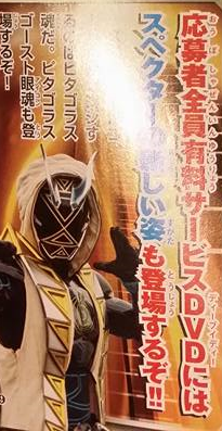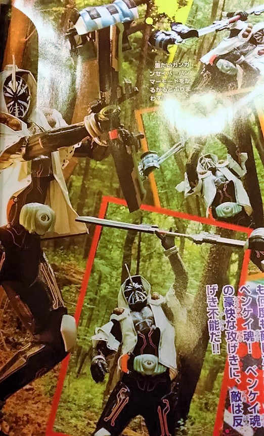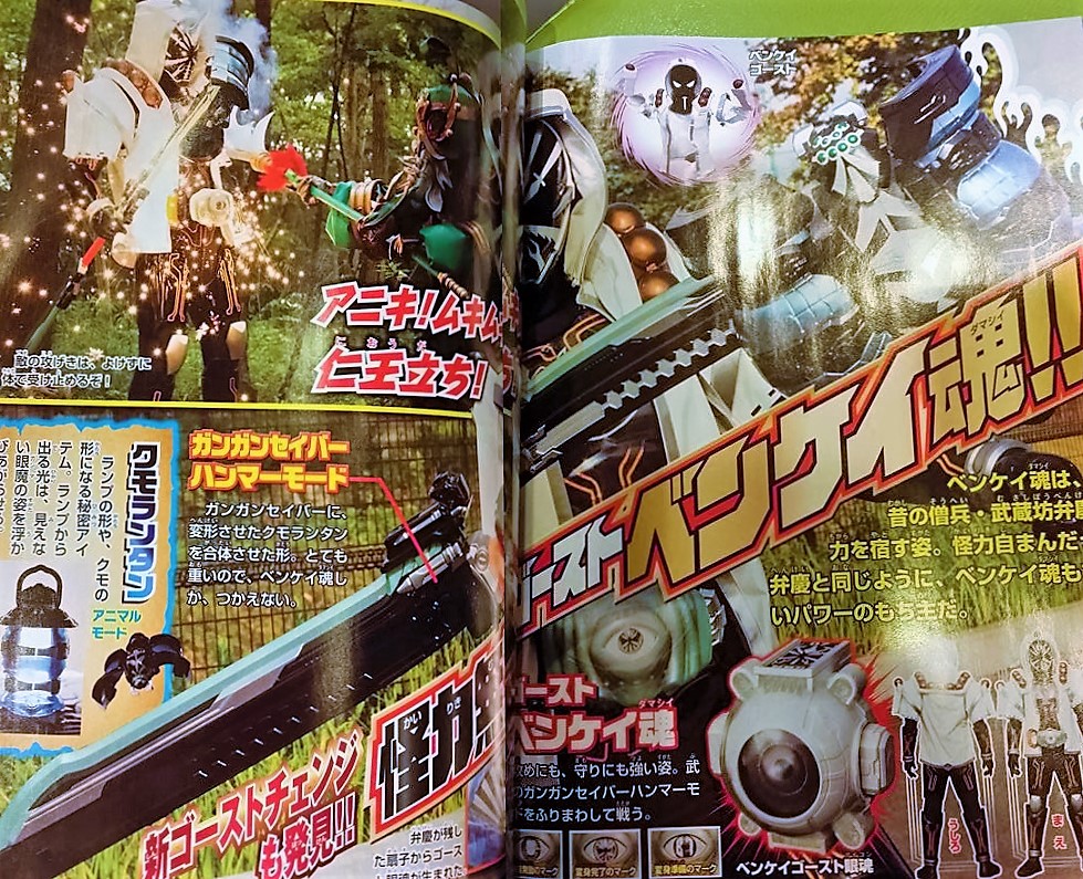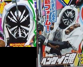 Highlights - Shurikenger to appear in Ninninger along with returning heroes Ninja Red, Hurricane Red, & Jiraiya - Ghost Tokon Boost Damashii & Benkei Damashii - DVD Exclusive Specter Pythagoras Damashii - Javelle. Uses the Ganma Transformation Eyecon to become the Superior Ganma