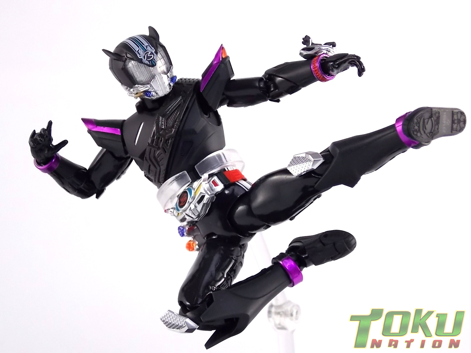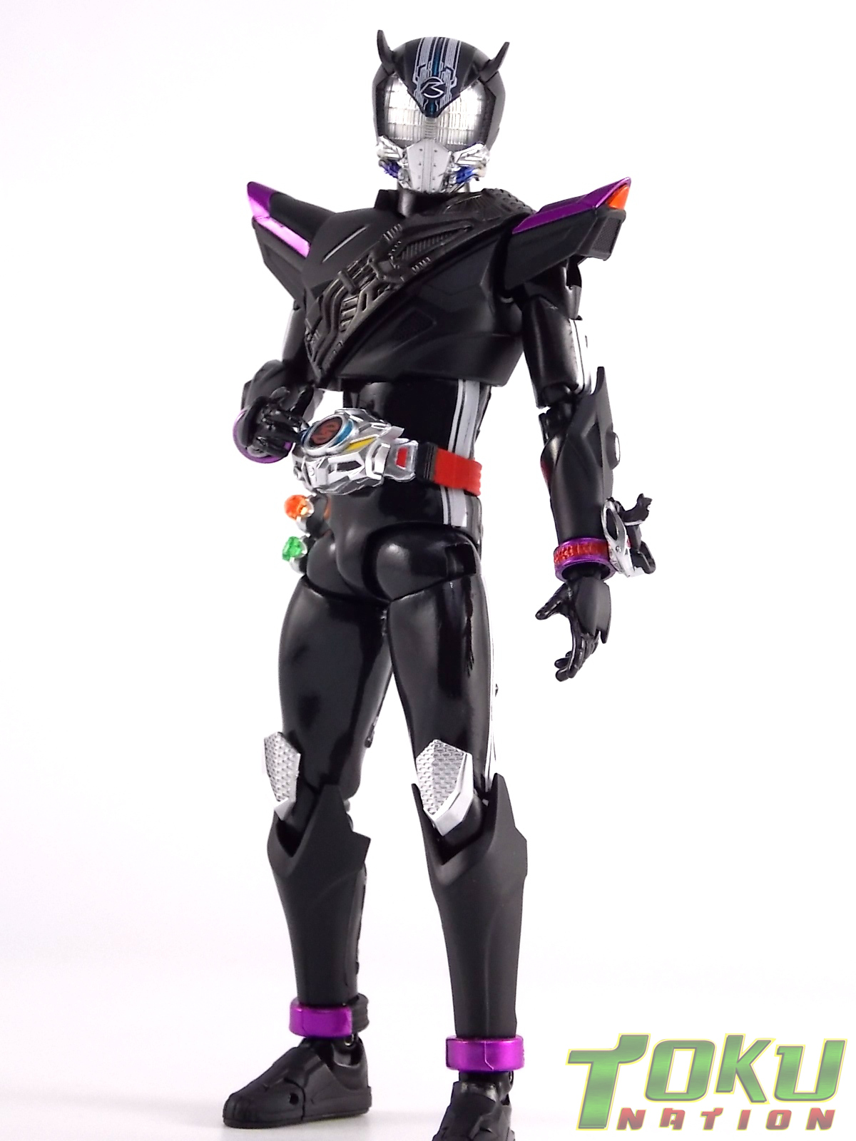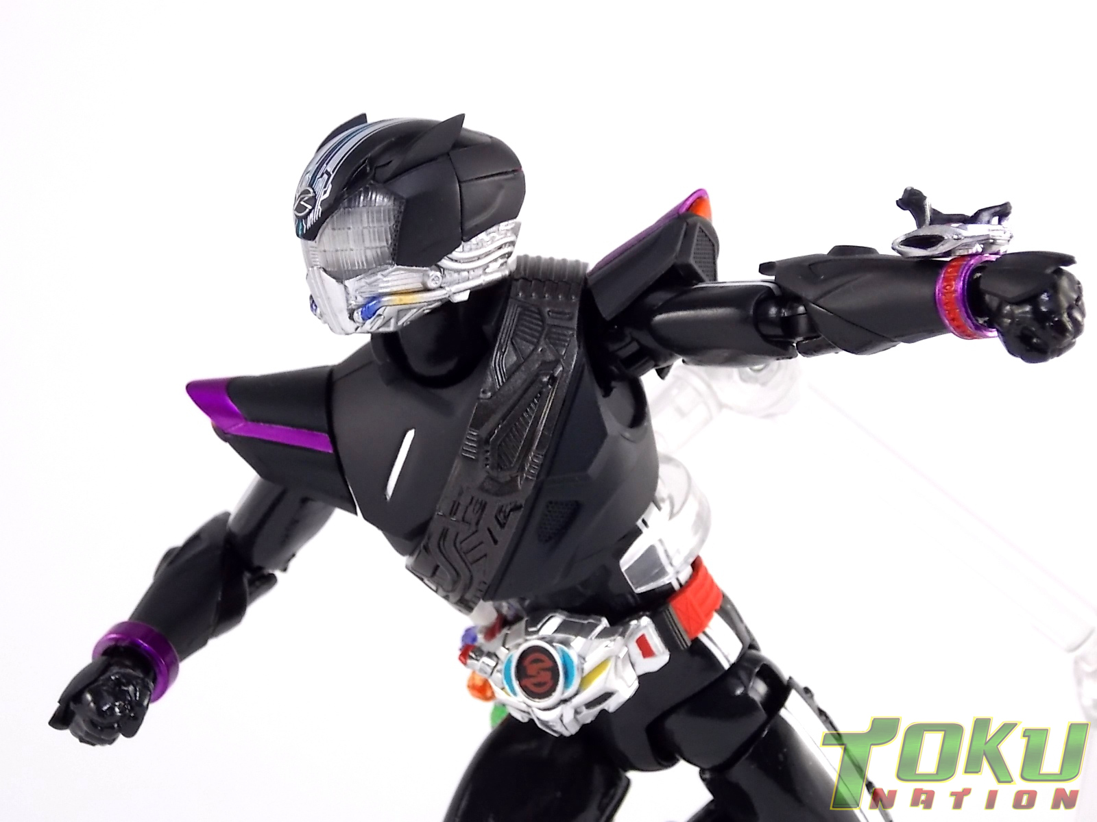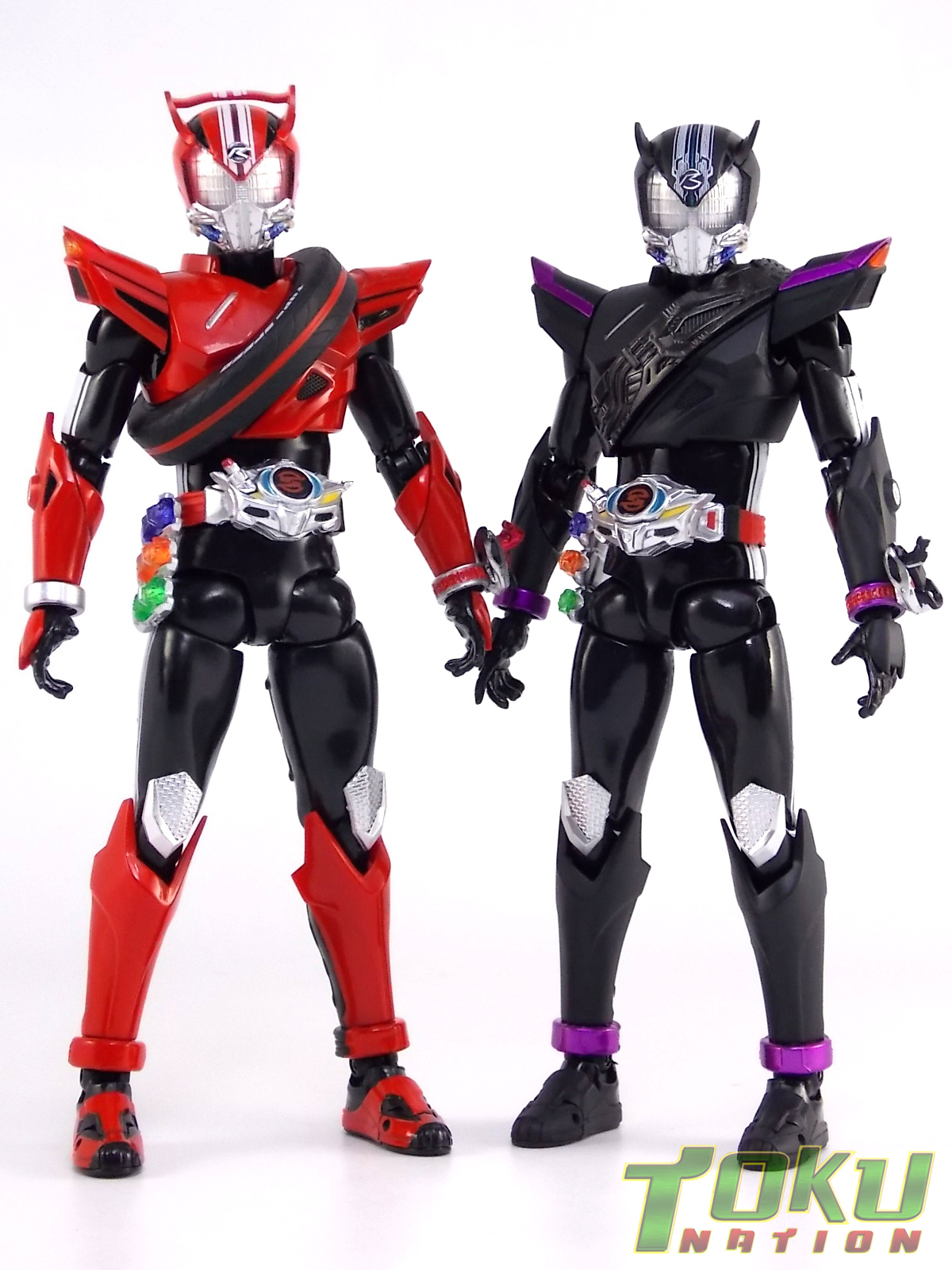 Proto-Drive is of course the first of several transformed states used by the Roidmude Chase. A form seen briefly several times throughout Kamen Rider Drive and it's various movies/specials, Proto-Drive was defeated during the Global Freeze by Heart. Chase was then reprogrammed into the Roidmude reaper, Mashin Chaser. Which you can view a gallery of here: S.H. Figuarts Mashin Chaser Gallery Packaging As has been the case with Tamashii event exclusives in years past, Proto-Drive's box is quite plain. It's the same size as a standard Drive release but has none of the usual art on the packaging. Previous exclusives like Ryuki Blank & Baron Lemon Energy shared similar departures from their series' packaging. That's not to say it isn't a nice box either however. It is. It simply doesn't fit in with other Drive boxes. But the artwork on the front of it is just gorgeous. Sadly there's no kind of artwork anywhere else on the box. Simply the name of the figure and the event on the sides and back of the box. Again this is typical, but that doesn't mean I have to like it. Main Figure In his original heroic form, Proto-Drive was the precursor to Drive Type Speed, hence the name. S.H. Figuarts Proto-Drive logically is a repaint (with slight remolds) of the Drive Type Speed Figuart accordingly. Now the differences between these 2 are minimal so the bulk of this review will echo my original. My pictures will show the differences more acutely. What I really want to emphasize is that the Drive Type Speed mold is one of my all time favorite S.H. Figuarts. It's a fantastic figure, so Proto-Drive is also fantastic. Proto-Drive is primarily painted in a gorgeous matte black finish that really makes the gloss parts of his suit pop. Making him a standout in your collection in the best way. Just gorgeous. Luckily as a figure with few paint apps, the ones that are applied are done phenomenally. One of the strongest examples of this and one of the best features of this mold is the Drive Driver itself. The Driver is wholly unchanged from the Type Speed version & like the original it's also removable! The face of the driver itself can be removed exposing the cylindrical part that displays Mr. Belt's facial expressions/Tire Koukans. From the ground up this figure was designed for cross compatibility with future Shift Car/Tire sets. However Proto-Drive deviates from Type Speed at this juncture. His standard Proto-Speed Tire cannot be removed without some degree of customization or the possibility of damage. Unlike the Type Speed's which could come apart to allow for Tire exchanges, Proto-Drive's can not. The basic structure of his body would allow for it. But the tire has been molded as one piece. The Shift Car holster looks fantastic as well. And as with the original use of the mold they're removable to emulate Tire exchanges However that doesn't serve much purpose when you can't replace the chest tire. On a related topic let's talk about the Drive Brace, where Shift Proto-Speed is pretty dismally detailed. Of course at this scale you can't expect the amazing technical detailing we see on the DX shift car. But no attempt was even made. No paint is present at all on the front end of the shift car other than matte black. Back to the Proto-Speed Tire, although it isn't functional, it's got to be mentioned that it's gorgeously sculpted. Just lots of great techy details. I can't wait to see this done up in Gold Drive colors. Or possibly even Zero Drive colors if Bandai gets ambitious. Last but not least I want to talk about Proto-Drive's head. Which deviates from Type Speeds with more antenna like protrusions on the sides than a spoiler across the top. A look which I actually think I prefer. It makes Proto-Drive look a little more squat somehow gives the head a nicer proportionate look. It has some really amazing white tech detailing come from the back and down the forehead as well. Everything else is molded just as it was on Type Speed. Finally I just want to remind everyone how fantastic this figure's articulation is. If Type Speed was perfect then Proto-Drive is more so because his tire is much smaller and doesn't get in the way nearly as much for cross arm poses and such. It's no surprise that as with Type Speed it's one of my favorite figuarts ever. Accessories Kamen Rider Proto-Drive actually comes with the exact same basic loadout of accessories as Type Speed: 2 - sets of additional hands. The same poses, hell the figure is packaged in the same plastic tray even. Drive Type Speed had the fortune of a 1st run retailer bonus in the Max Flare Tire & Effect set that really helped bump up the accessory count. It was quite easy to get and even still is. I think Proto-Drive could have benefited from a dark recolor of that set being included at the event. As is he feels a bit lite without something else. Final Thoughts While S.H. Figuarts Kamen Rider Proto-Drive is definitely just an easy repaint of a great figure, but I'm so beyond happy to have it. In my personal opinion Proto-Drive is still one of the sexiest suit designs in the entire series, right up there with Type Tridoron & Mashin Chaser. As a figure it doesn't really change much from what you get when buying Drive Type Speed though. As a limited event exclusive it may be difficult for some to purchase right now, but prices will most likely come down over time. I would definitely recommend picking Kamen Rider Proto-Drive up if you can do so for a reasonable price. It may not add much to the mix, but it looks gorgeous doing it anyway.