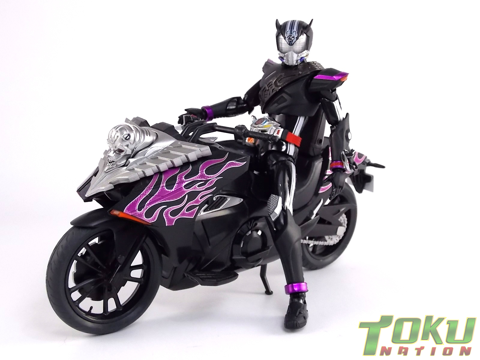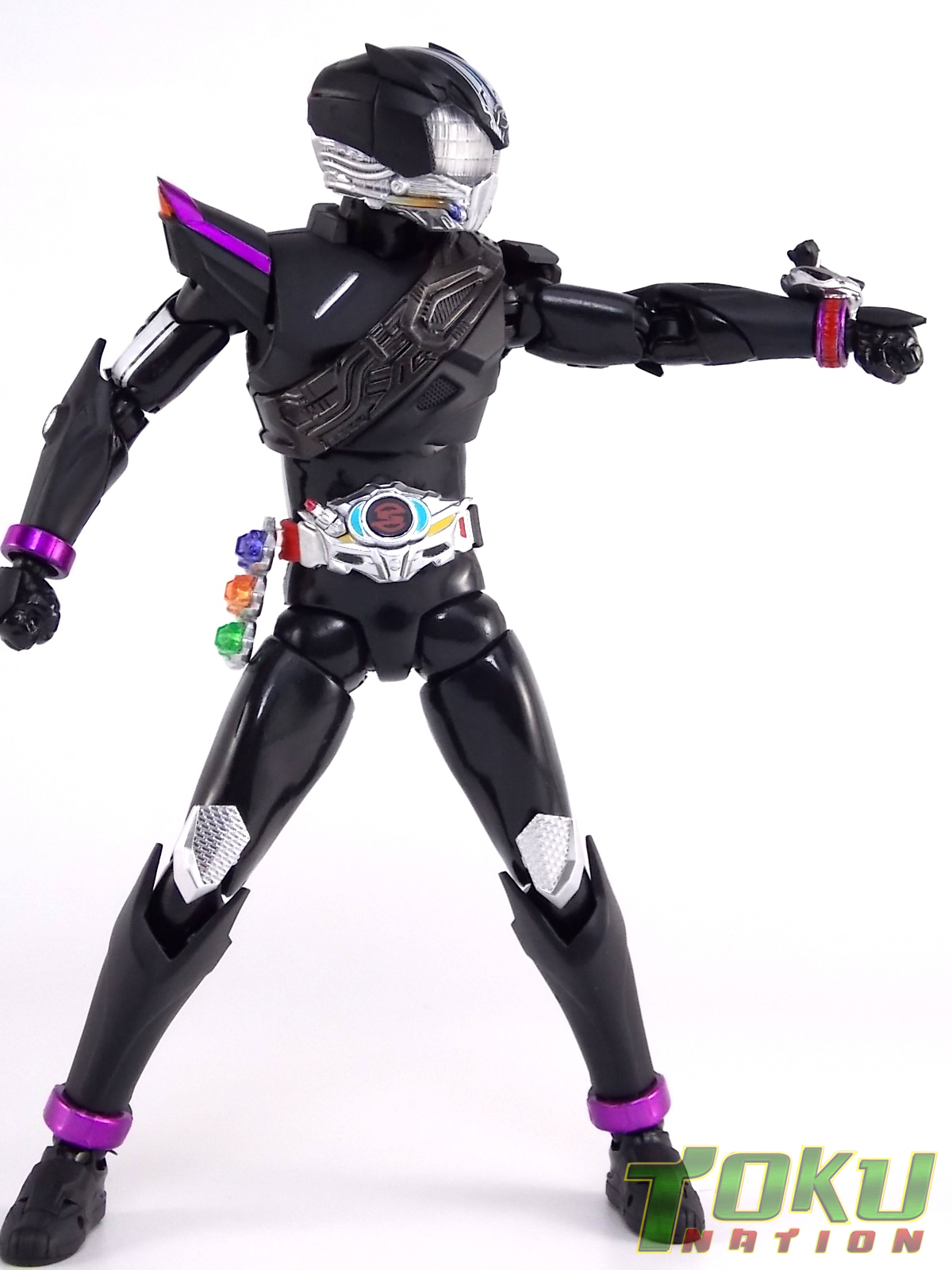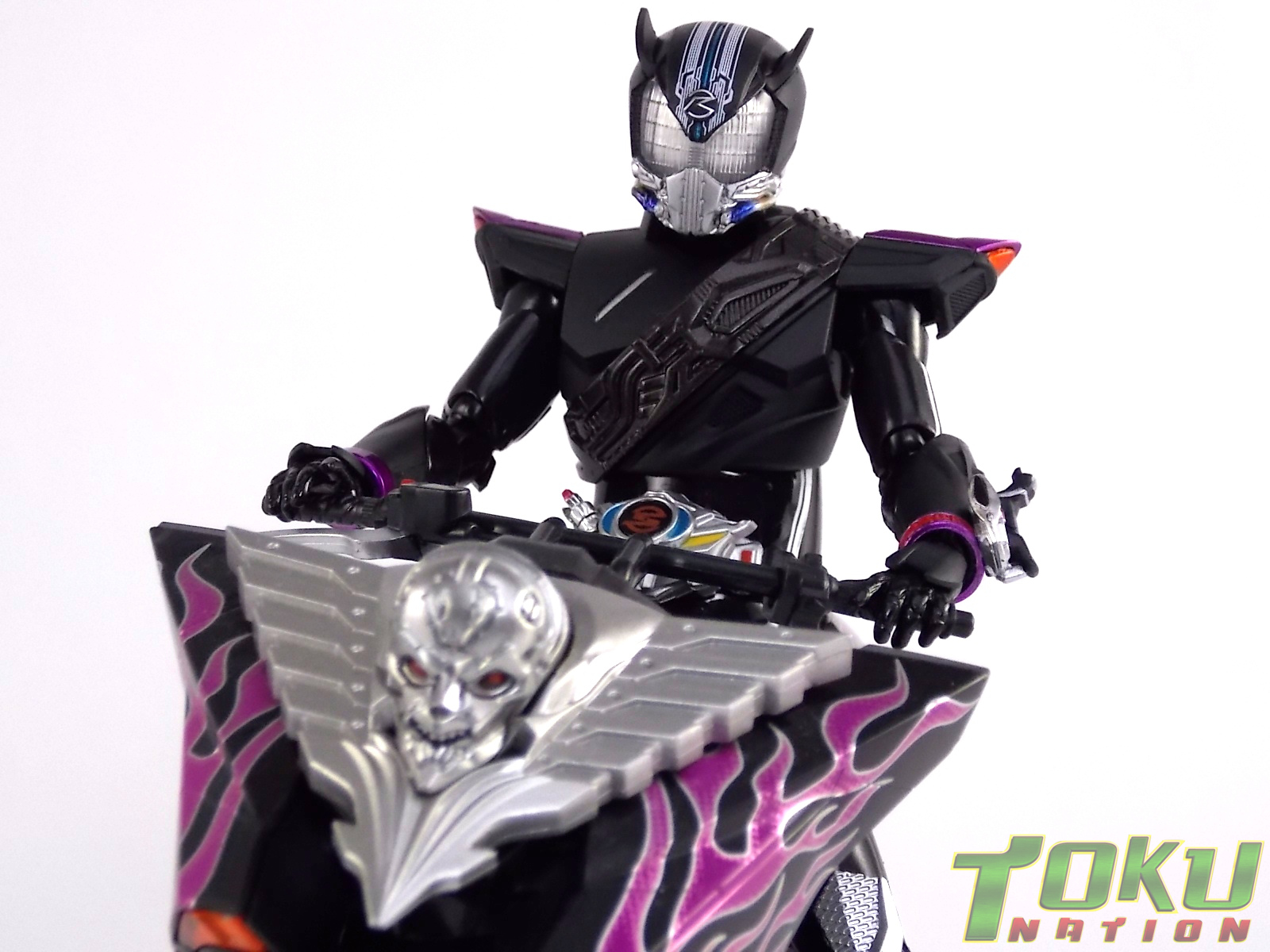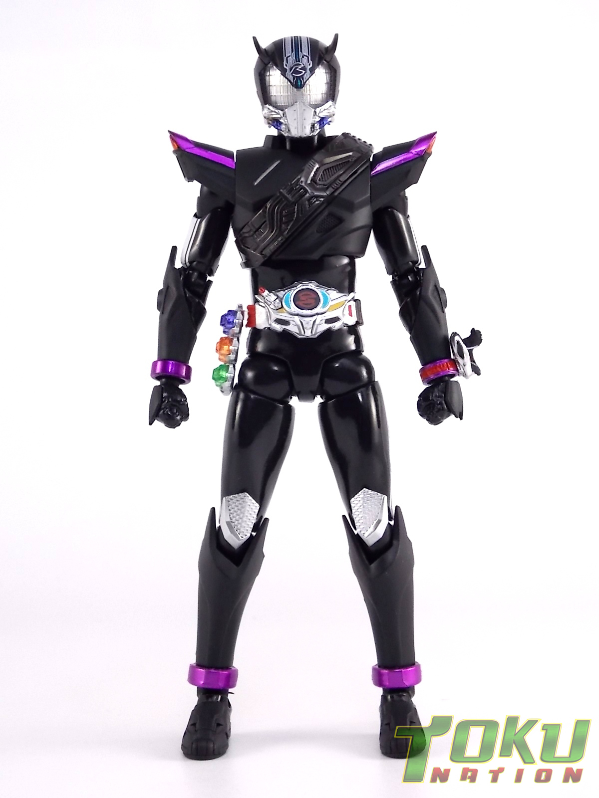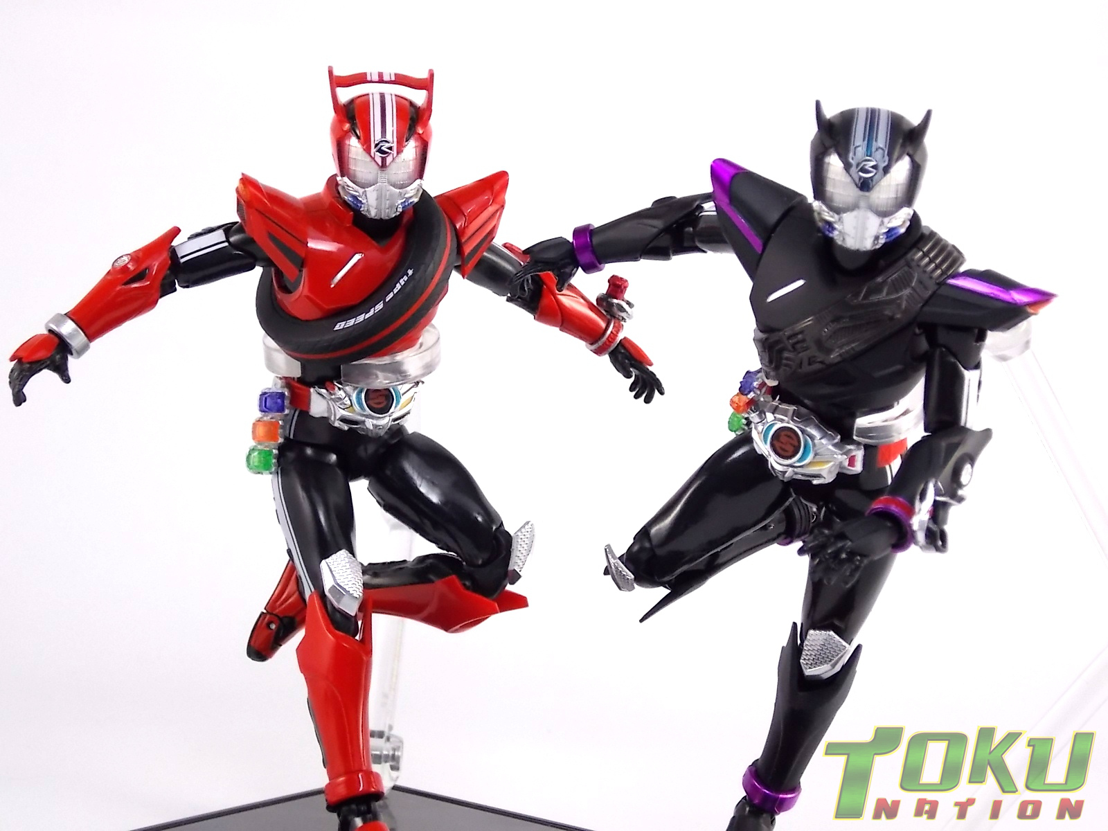 Proto-Drive is of course the first of several transformed states used by the Roidmude Chase. A form seen briefly several times throughout Kamen Rider Drive and it's various movies/specials, Proto-Drive was defeated during the Global Freeze by Heart. Chase was then reprogrammed into the Roidmude reaper, Mashin Chaser. Which you can view a gallery of here: S.H. Figuarts Mashin Chaser Gallery Packaging As has been the case with Tamashii event exclusives in years past, Proto-Drive's box is quite plain. It's the same size as a standard Drive release but has none of the usual art on the packaging. Previous exclusives like Ryuki Blank & Baron Lemon Energy shared similar departures from their series' packaging. That's not to say it isn't a nice box either however. It is. It simply doesn't fit in with other Drive boxes. But the artwork on the front of it is just gorgeous. Sadly there's no kind of artwork anywhere else on the box. Simply the name of the figure and the event on the sides and back of the box. Again this is typical, but that doesn't mean I have to like it. Main Figure In his original heroic form, Proto-Drive was the precursor to Drive Type Speed, hence the name. S.H. Figuarts Proto-Drive logically is a repaint (with slight remolds) of the Drive Type Speed Figuart accordingly. Now the differences between these 2 are minimal so the bulk of this review will echo my original. My pictures will show the differences more acutely. What I really want to emphasize is that the Drive Type Speed mold is one of my all time favorite S.H. Figuarts. It's a fantastic figure, so Proto-Drive is also fantastic. Proto-Drive is primarily painted in a gorgeous matte black finish that really makes the gloss parts of his suit pop. Making him a standout in your collection in the best way. Just gorgeous. Luckily as a figure with few paint apps, the ones that are applied are done phenomenally. One of the strongest examples of this and one of the best features of this mold is the Drive Driver itself. The Driver is wholly unchanged from the Type Speed version & like the original it's also removable! The face of the driver itself can be removed exposing the cylindrical part that displays Mr. Belt's facial expressions/Tire Koukans. From the ground up this figure was designed for cross compatibility with future Shift Car/Tire sets. However Proto-Drive deviates from Type Speed at this juncture. His standard Proto-Speed Tire cannot be removed without some degree of customization or the possibility of damage. Unlike the Type Speed's which could come apart to allow for Tire exchanges, Proto-Drive's can not. The basic structure of his body would allow for it. But the tire has been molded as one piece. The Shift Car holster looks fantastic as well. And as with the original use of the mold they're removable to emulate Tire exchanges However that doesn't serve much purpose when you can't replace the chest tire. On a related topic let's talk about the Drive Brace, where Shift Proto-Speed is pretty dismally detailed. Of course at this scale you can't expect the amazing technical detailing we see on the DX shift car. But no attempt was even made. No paint is present at all on the front end of the shift car other than matte black. Back to the Proto-Speed Tire, although it isn't functional, it's got to be mentioned that it's gorgeously sculpted. Just lots of great techy details. I can't wait to see this done up in Gold Drive colors. Or possibly even Zero Drive colors if Bandai gets ambitious. Last but not least I want to talk about Proto-Drive's head. Which deviates from Type Speeds with more antenna like protrusions on the sides than a spoiler across the top. A look which I actually think I prefer. It makes Proto-Drive look a little more squat somehow gives the head a nicer proportionate look. It has some really amazing white tech detailing come from the back and down the forehead as well. Everything else is molded just as it was on Type Speed. Finally I just want to remind everyone how fantastic this figure's articulation is. If Type Speed was perfect then Proto-Drive is more so because his tire is much smaller and doesn't get in the way nearly as much for cross arm poses and such. It's no surprise that as with Type Speed it's one of my favorite figuarts ever. Accessories Kamen Rider Proto-Drive actually comes with the exact same basic loadout of accessories as Type Speed: 2 - sets of additional hands. The same poses, hell the figure is packaged in the same plastic tray even. Drive Type Speed had the fortune of a 1st run retailer bonus in the Max Flare Tire & Effect set that really helped bump up the accessory count. It was quite easy to get and even still is. I think Proto-Drive could have benefited from a dark recolor of that set being included at the event. As is he feels a bit lite without something else. Final Thoughts While S.H. Figuarts Kamen Rider Proto-Drive is definitely just an easy repaint of a great figure, but I'm so beyond happy to have it. In my personal opinion Proto-Drive is still one of the sexiest suit designs in the entire series, right up there with Type Tridoron & Mashin Chaser. As a figure it doesn't really change much from what you get when buying Drive Type Speed though. As a limited event exclusive it may be difficult for some to purchase right now, but prices will most likely come down over time. I would definitely recommend picking Kamen Rider Proto-Drive up if you can do so for a reasonable price. It may not add much to the mix, but it looks gorgeous doing it anyway.