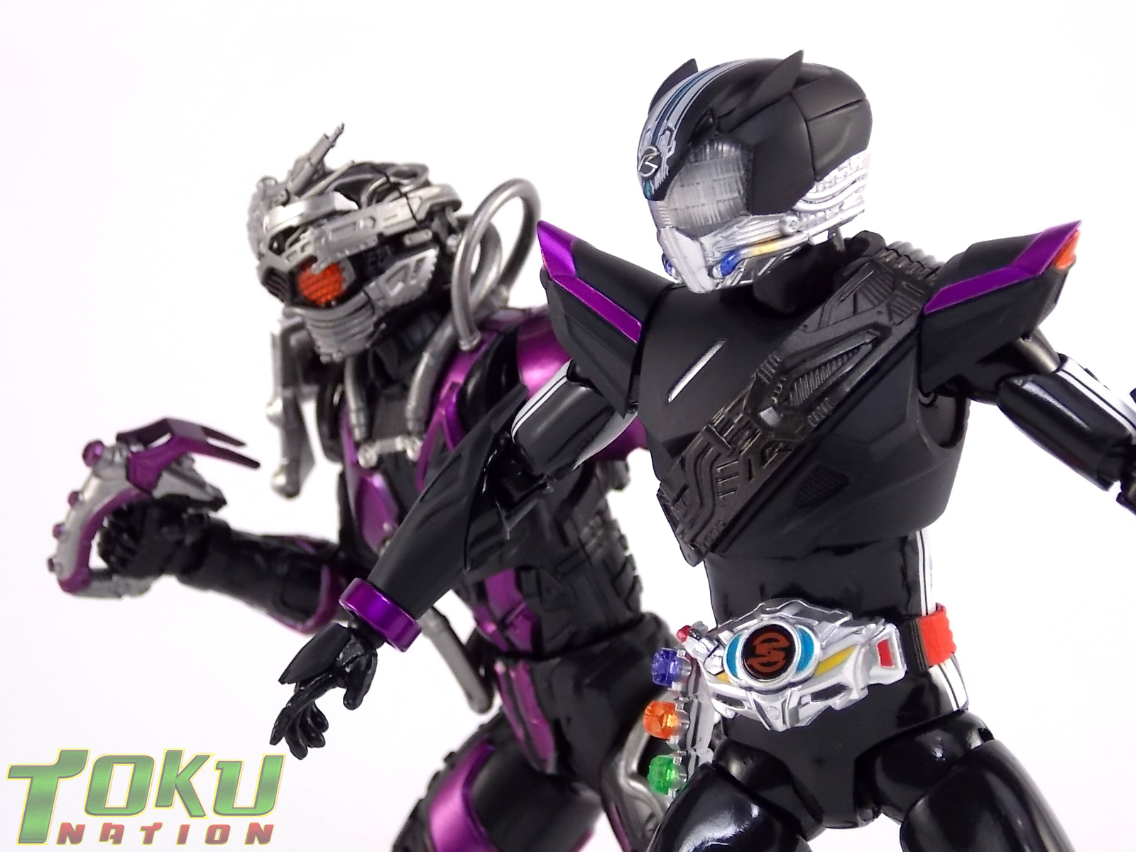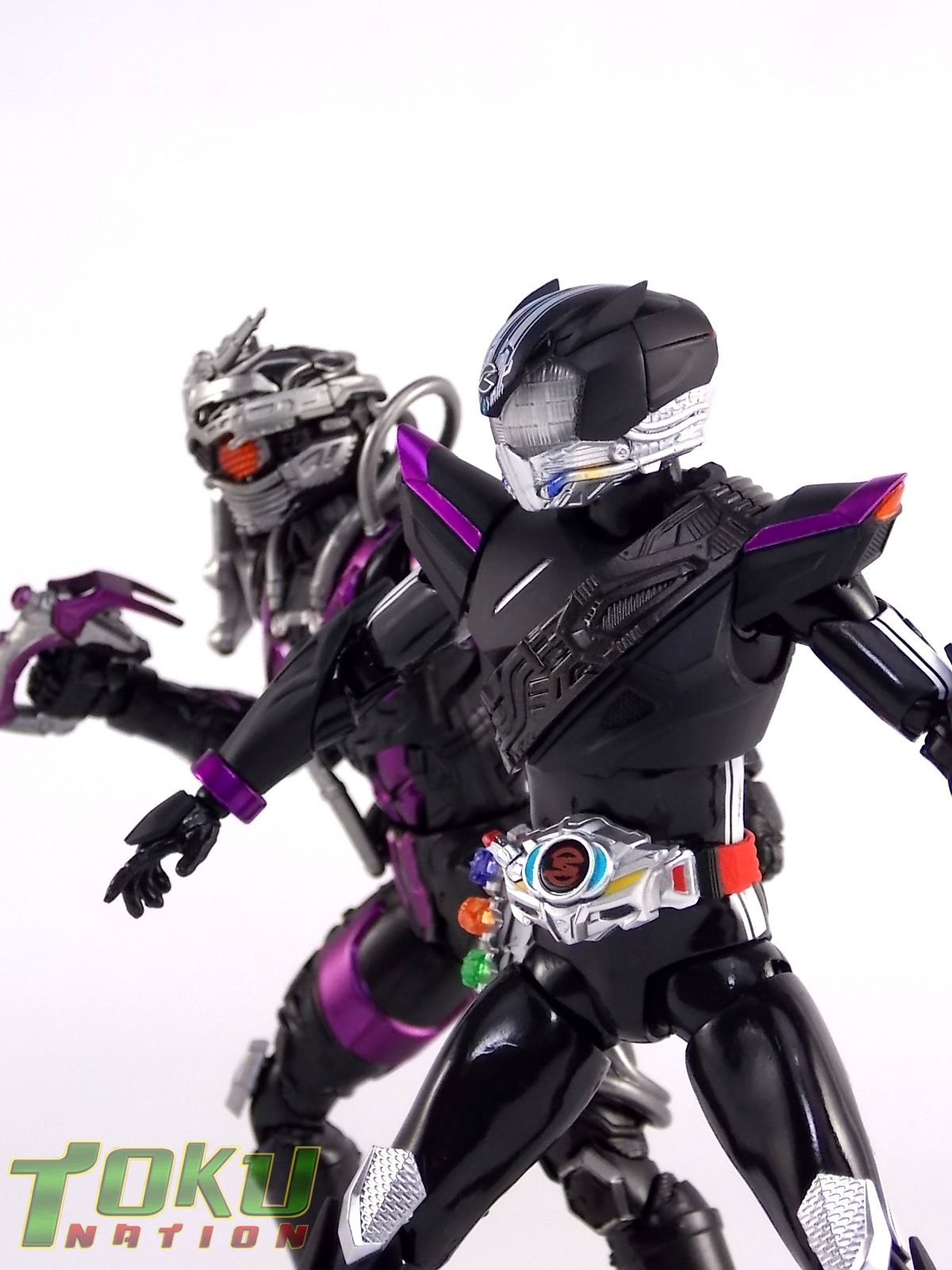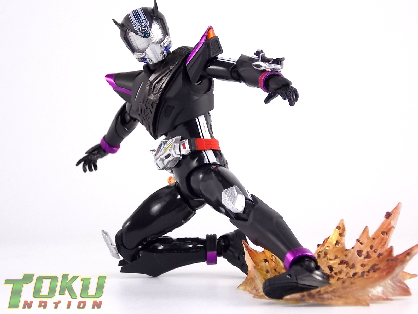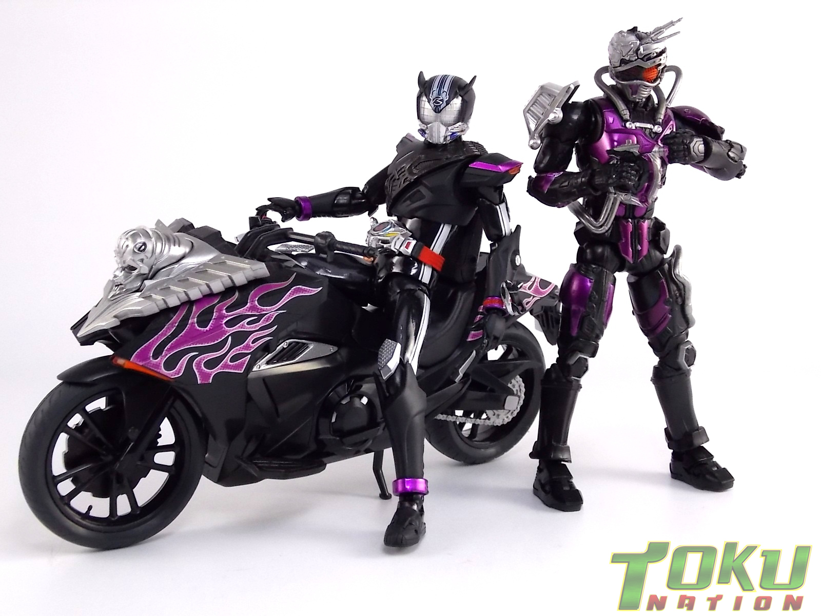 Proto-Drive is of course the first of several transformed states used by the Roidmude Chase. A form seen briefly several times throughout Kamen Rider Drive and it's various movies/specials, Proto-Drive was defeated during the Global Freeze by Heart. Chase was then reprogrammed into the Roidmude reaper, Mashin Chaser. Which you can view a gallery of here: S.H. Figuarts Mashin Chaser Gallery Packaging As has been the case with Tamashii event exclusives in years past, Proto-Drive's box is quite plain. It's the same size as a standard Drive release but has none of the usual art on the packaging. Previous exclusives like Ryuki Blank & Baron Lemon Energy shared similar departures from their series' packaging. That's not to say it isn't a nice box either however. It is. It simply doesn't fit in with other Drive boxes. But the artwork on the front of it is just gorgeous. Sadly there's no kind of artwork anywhere else on the box. Simply the name of the figure and the event on the sides and back of the box. Again this is typical, but that doesn't mean I have to like it. Main Figure In his original heroic form, Proto-Drive was the precursor to Drive Type Speed, hence the name. S.H. Figuarts Proto-Drive logically is a repaint (with slight remolds) of the Drive Type Speed Figuart accordingly. Now the differences between these 2 are minimal so the bulk of this review will echo my original. My pictures will show the differences more acutely. What I really want to emphasize is that the Drive Type Speed mold is one of my all time favorite S.H. Figuarts. It's a fantastic figure, so Proto-Drive is also fantastic. Proto-Drive is primarily painted in a gorgeous matte black finish that really makes the gloss parts of his suit pop. Making him a standout in your collection in the best way. Just gorgeous. Luckily as a figure with few paint apps, the ones that are applied are done phenomenally. One of the strongest examples of this and one of the best features of this mold is the Drive Driver itself. The Driver is wholly unchanged from the Type Speed version & like the original it's also removable! The face of the driver itself can be removed exposing the cylindrical part that displays Mr. Belt's facial expressions/Tire Koukans. From the ground up this figure was designed for cross compatibility with future Shift Car/Tire sets. However Proto-Drive deviates from Type Speed at this juncture. His standard Proto-Speed Tire cannot be removed without some degree of customization or the possibility of damage. Unlike the Type Speed's which could come apart to allow for Tire exchanges, Proto-Drive's can not. The basic structure of his body would allow for it. But the tire has been molded as one piece. The Shift Car holster looks fantastic as well. And as with the original use of the mold they're removable to emulate Tire exchanges However that doesn't serve much purpose when you can't replace the chest tire. On a related topic let's talk about the Drive Brace, where Shift Proto-Speed is pretty dismally detailed. Of course at this scale you can't expect the amazing technical detailing we see on the DX shift car. But no attempt was even made. No paint is present at all on the front end of the shift car other than matte black. Back to the Proto-Speed Tire, although it isn't functional, it's got to be mentioned that it's gorgeously sculpted. Just lots of great techy details. I can't wait to see this done up in Gold Drive colors. Or possibly even Zero Drive colors if Bandai gets ambitious. Last but not least I want to talk about Proto-Drive's head. Which deviates from Type Speeds with more antenna like protrusions on the sides than a spoiler across the top. A look which I actually think I prefer. It makes Proto-Drive look a little more squat somehow gives the head a nicer proportionate look. It has some really amazing white tech detailing come from the back and down the forehead as well. Everything else is molded just as it was on Type Speed. Finally I just want to remind everyone how fantastic this figure's articulation is. If Type Speed was perfect then Proto-Drive is more so because his tire is much smaller and doesn't get in the way nearly as much for cross arm poses and such. It's no surprise that as with Type Speed it's one of my favorite figuarts ever. Accessories Kamen Rider Proto-Drive actually comes with the exact same basic loadout of accessories as Type Speed: 2 - sets of additional hands. The same poses, hell the figure is packaged in the same plastic tray even. Drive Type Speed had the fortune of a 1st run retailer bonus in the Max Flare Tire & Effect set that really helped bump up the accessory count. It was quite easy to get and even still is. I think Proto-Drive could have benefited from a dark recolor of that set being included at the event. As is he feels a bit lite without something else. Final Thoughts While S.H. Figuarts Kamen Rider Proto-Drive is definitely just an easy repaint of a great figure, but I'm so beyond happy to have it. In my personal opinion Proto-Drive is still one of the sexiest suit designs in the entire series, right up there with Type Tridoron & Mashin Chaser. As a figure it doesn't really change much from what you get when buying Drive Type Speed though. As a limited event exclusive it may be difficult for some to purchase right now, but prices will most likely come down over time. I would definitely recommend picking Kamen Rider Proto-Drive up if you can do so for a reasonable price. It may not add much to the mix, but it looks gorgeous doing it anyway.
