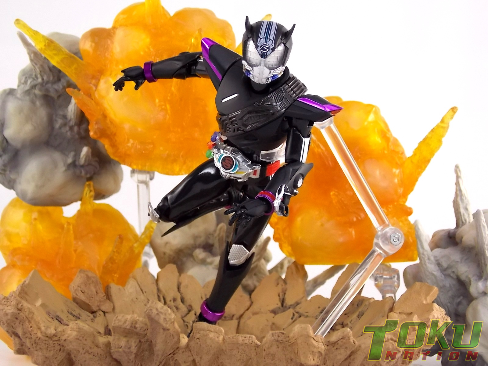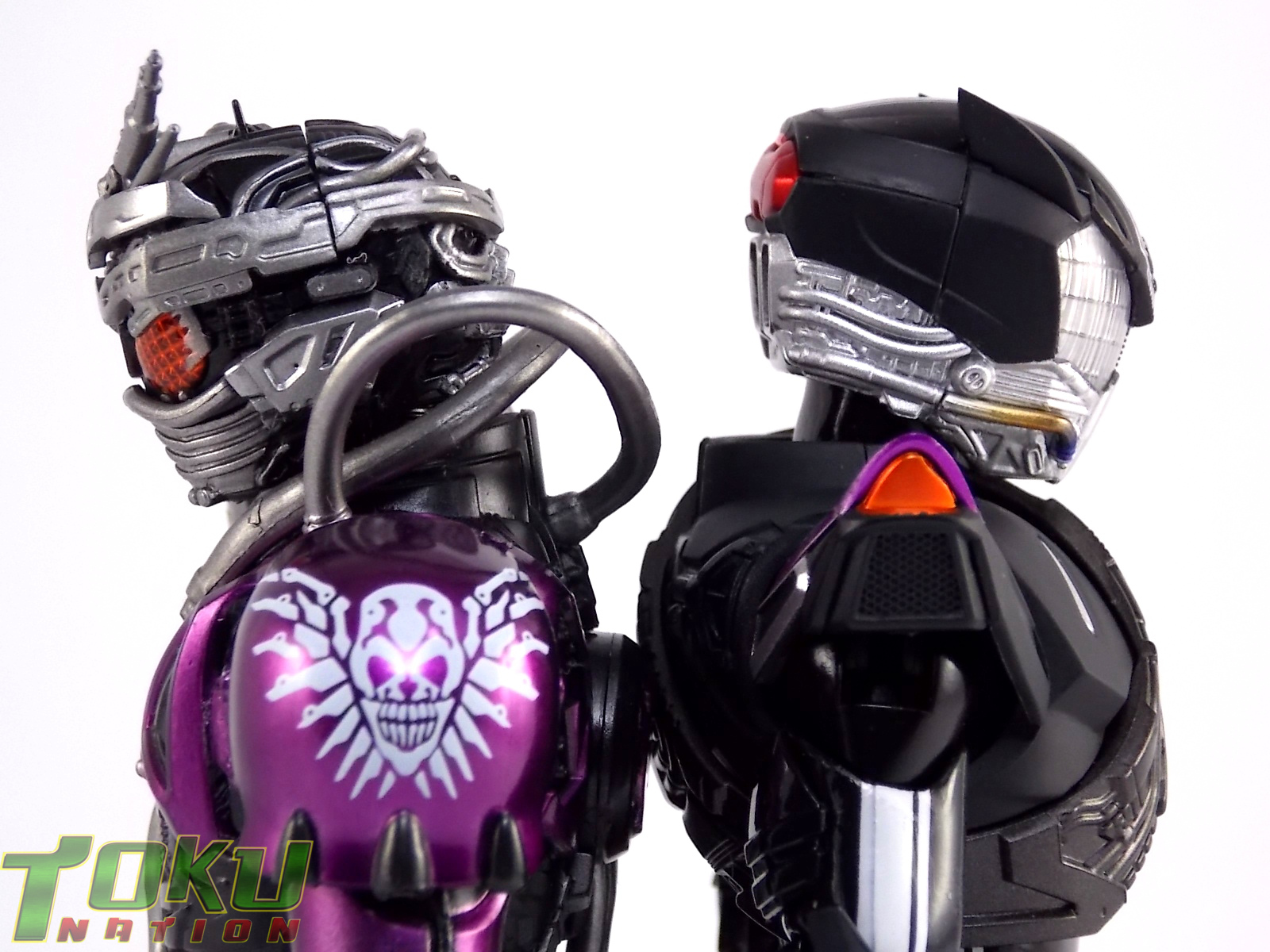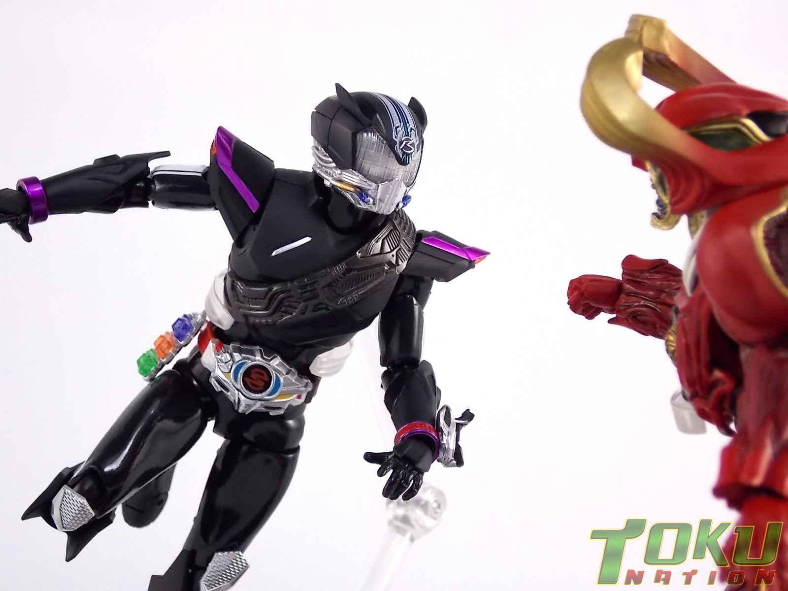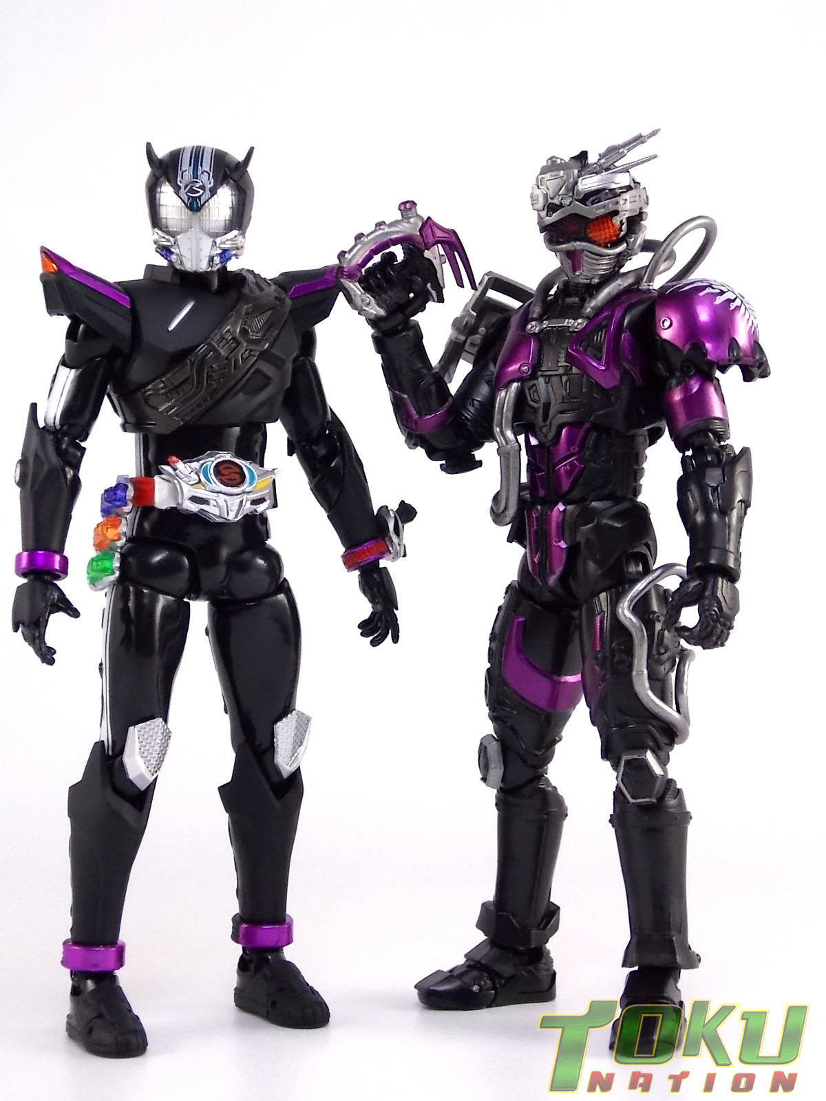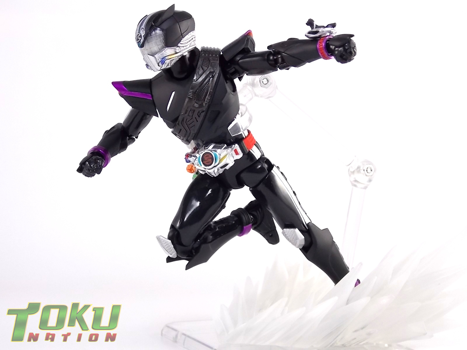 Proto-Drive is of course the first of several transformed states used by the Roidmude Chase. A form seen briefly several times throughout Kamen Rider Drive and it's various movies/specials, Proto-Drive was defeated during the Global Freeze by Heart. Chase was then reprogrammed into the Roidmude reaper, Mashin Chaser. Which you can view a gallery of here: S.H. Figuarts Mashin Chaser Gallery Packaging As has been the case with Tamashii event exclusives in years past, Proto-Drive's box is quite plain. It's the same size as a standard Drive release but has none of the usual art on the packaging. Previous exclusives like Ryuki Blank & Baron Lemon Energy shared similar departures from their series' packaging. That's not to say it isn't a nice box either however. It is. It simply doesn't fit in with other Drive boxes. But the artwork on the front of it is just gorgeous. Sadly there's no kind of artwork anywhere else on the box. Simply the name of the figure and the event on the sides and back of the box. Again this is typical, but that doesn't mean I have to like it. Main Figure In his original heroic form, Proto-Drive was the precursor to Drive Type Speed, hence the name. S.H. Figuarts Proto-Drive logically is a repaint (with slight remolds) of the Drive Type Speed Figuart accordingly. Now the differences between these 2 are minimal so the bulk of this review will echo my original. My pictures will show the differences more acutely. What I really want to emphasize is that the Drive Type Speed mold is one of my all time favorite S.H. Figuarts. It's a fantastic figure, so Proto-Drive is also fantastic. Proto-Drive is primarily painted in a gorgeous matte black finish that really makes the gloss parts of his suit pop. Making him a standout in your collection in the best way. Just gorgeous. Luckily as a figure with few paint apps, the ones that are applied are done phenomenally. One of the strongest examples of this and one of the best features of this mold is the Drive Driver itself. The Driver is wholly unchanged from the Type Speed version & like the original it's also removable! The face of the driver itself can be removed exposing the cylindrical part that displays Mr. Belt's facial expressions/Tire Koukans. From the ground up this figure was designed for cross compatibility with future Shift Car/Tire sets. However Proto-Drive deviates from Type Speed at this juncture. His standard Proto-Speed Tire cannot be removed without some degree of customization or the possibility of damage. Unlike the Type Speed's which could come apart to allow for Tire exchanges, Proto-Drive's can not. The basic structure of his body would allow for it. But the tire has been molded as one piece. The Shift Car holster looks fantastic as well. And as with the original use of the mold they're removable to emulate Tire exchanges However that doesn't serve much purpose when you can't replace the chest tire. On a related topic let's talk about the Drive Brace, where Shift Proto-Speed is pretty dismally detailed. Of course at this scale you can't expect the amazing technical detailing we see on the DX shift car. But no attempt was even made. No paint is present at all on the front end of the shift car other than matte black. Back to the Proto-Speed Tire, although it isn't functional, it's got to be mentioned that it's gorgeously sculpted. Just lots of great techy details. I can't wait to see this done up in Gold Drive colors. Or possibly even Zero Drive colors if Bandai gets ambitious. Last but not least I want to talk about Proto-Drive's head. Which deviates from Type Speeds with more antenna like protrusions on the sides than a spoiler across the top. A look which I actually think I prefer. It makes Proto-Drive look a little more squat somehow gives the head a nicer proportionate look. It has some really amazing white tech detailing come from the back and down the forehead as well. Everything else is molded just as it was on Type Speed. Finally I just want to remind everyone how fantastic this figure's articulation is. If Type Speed was perfect then Proto-Drive is more so because his tire is much smaller and doesn't get in the way nearly as much for cross arm poses and such. It's no surprise that as with Type Speed it's one of my favorite figuarts ever. Accessories Kamen Rider Proto-Drive actually comes with the exact same basic loadout of accessories as Type Speed: 2 - sets of additional hands. The same poses, hell the figure is packaged in the same plastic tray even. Drive Type Speed had the fortune of a 1st run retailer bonus in the Max Flare Tire & Effect set that really helped bump up the accessory count. It was quite easy to get and even still is. I think Proto-Drive could have benefited from a dark recolor of that set being included at the event. As is he feels a bit lite without something else. Final Thoughts While S.H. Figuarts Kamen Rider Proto-Drive is definitely just an easy repaint of a great figure, but I'm so beyond happy to have it. In my personal opinion Proto-Drive is still one of the sexiest suit designs in the entire series, right up there with Type Tridoron & Mashin Chaser. As a figure it doesn't really change much from what you get when buying Drive Type Speed though. As a limited event exclusive it may be difficult for some to purchase right now, but prices will most likely come down over time. I would definitely recommend picking Kamen Rider Proto-Drive up if you can do so for a reasonable price. It may not add much to the mix, but it looks gorgeous doing it anyway.