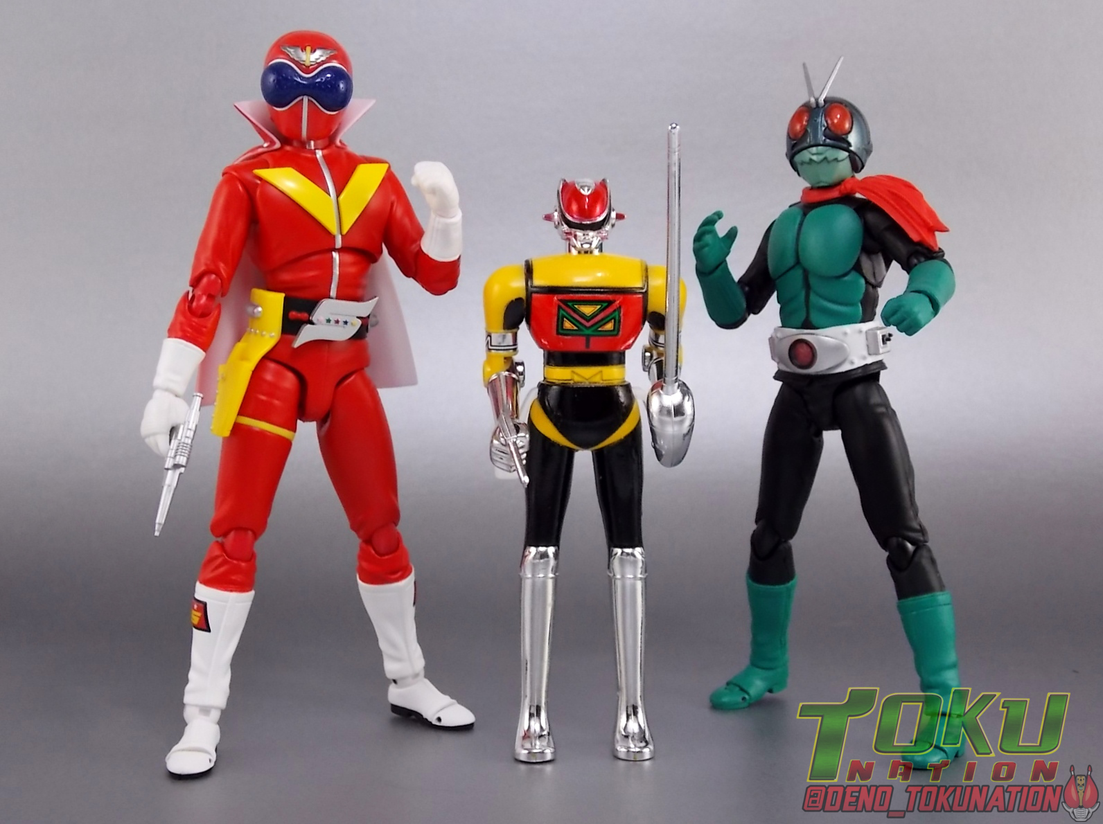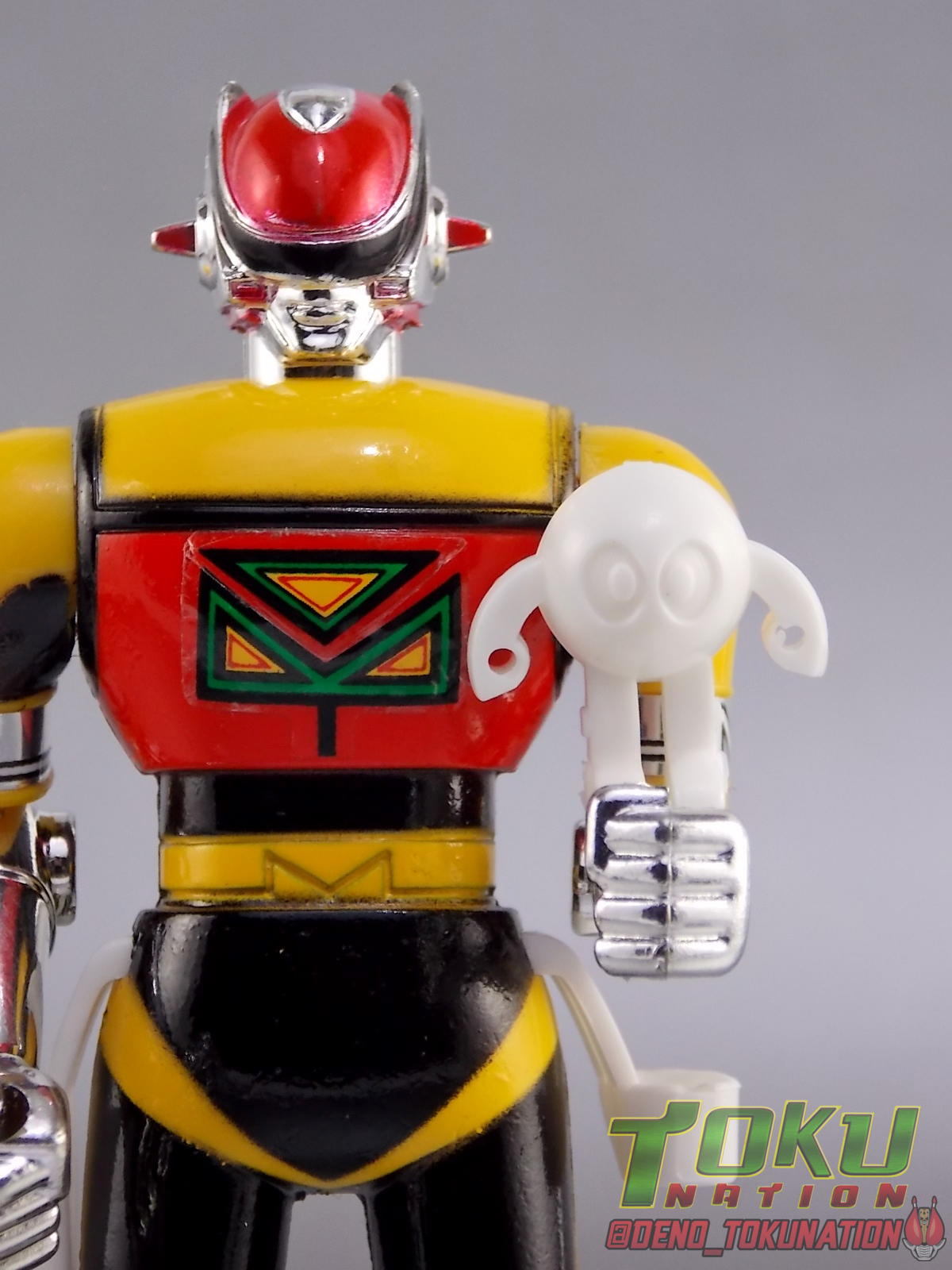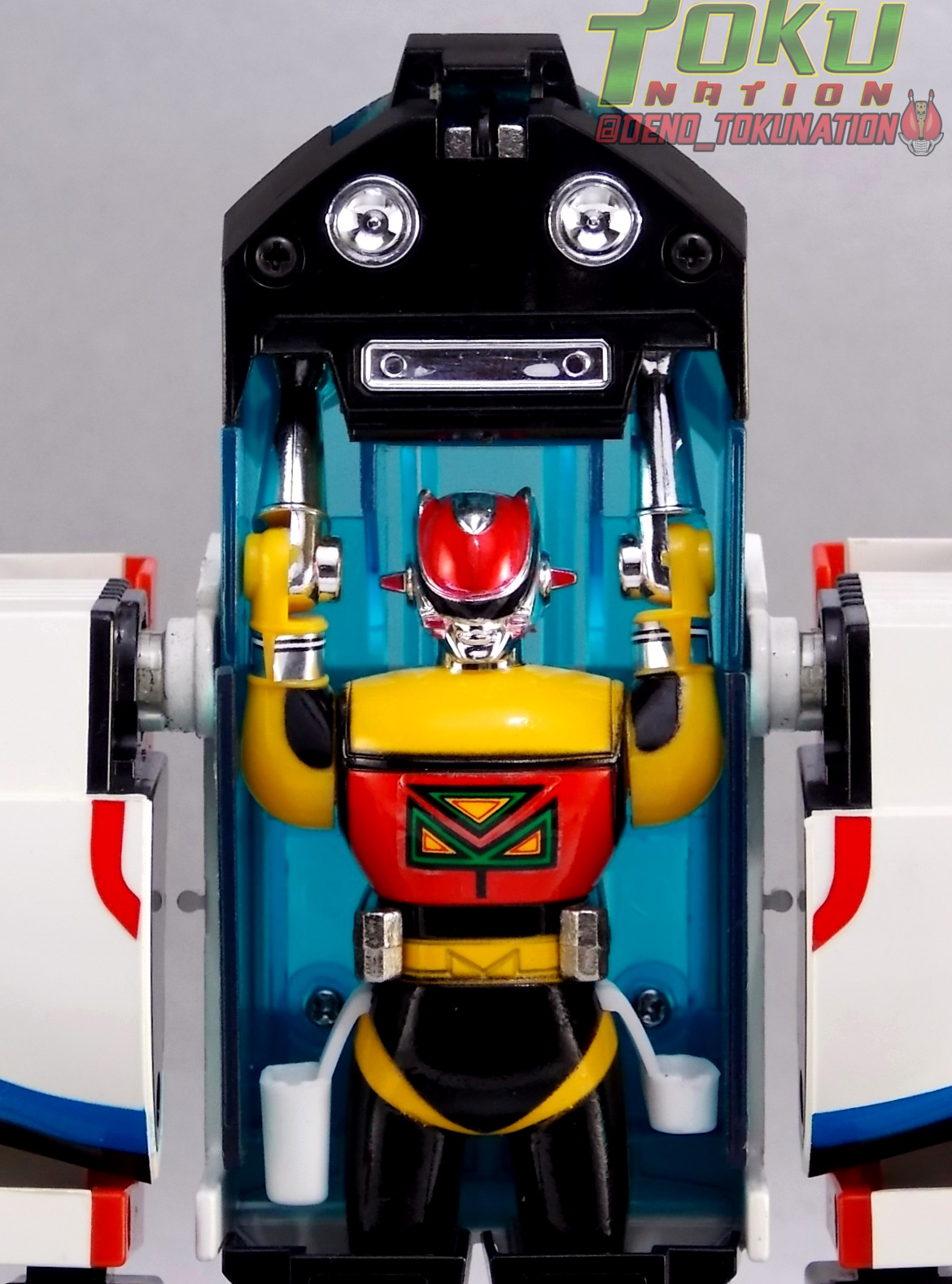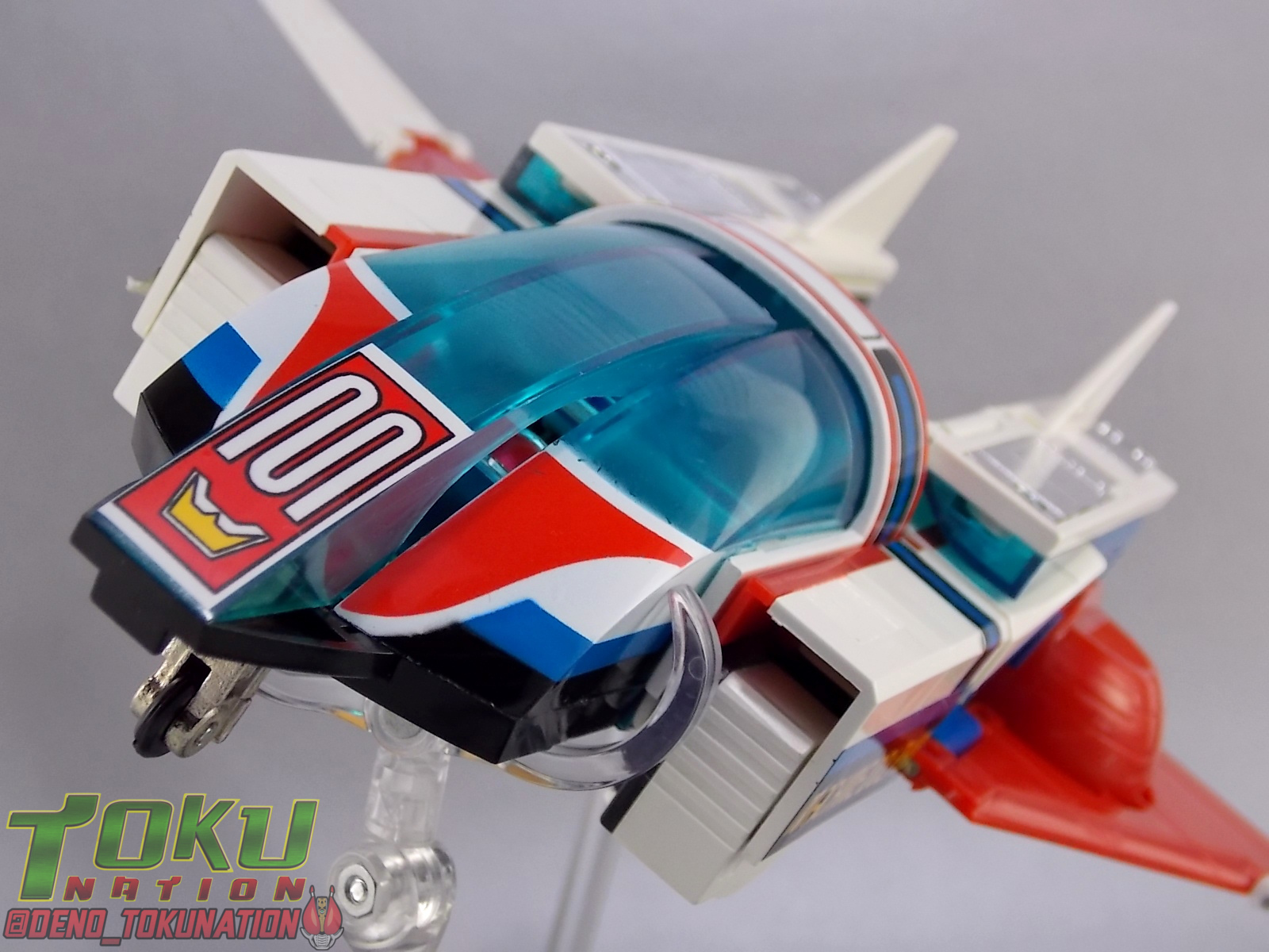 For a little background, Seiun Kamen Machineman was a series created by the late great Shotaro Ishinimori in 1984. The lead hero hails from the planet Ivy and has come to Earth to study humans for his doctoral thesis, taking on an alias as Ken Takase. Ken winds up staying on Earth much longer than he intended (36 episodes) when he discovers that the evil organization Tentacle, later Octopus, seeks to remove all children form the world. As a result he dons the technology of his home world and becomes Machineman! ![]() Machineman is a series that I, like many, have never actually gotten to watch. It's certainly not something your typical fansub groups would ever tackle, and raws aren't even something you can find normally. I've always been intrigued by the characters backstory and unique look though. So I'm happy to be able to share at least a piece of this series it with you. For additional context I've included some images from the series to illustrate a bit better some of my points. Packaging Having picked mine up some time ago, I'm afraid I don't actually have the outer box for my Godaikin Machine Dolphin. Only the styrofoam insert. That would be because technically, this is the original Japanese release. For those unaware, Godaikin was a short lived high end series of releases that came to America directly via Bandai Japan in the late 80's. These were literally the same toys released by Bandai domestically in Japan. They were even shipped to the states in their original Japanese packaging and repacked into the new Godaikin boxes stateside. So mine comes from a warehouse stock of samples that were never reboxed or circulated, hence it's near immaculate condition. Godakin didn't last long here due to it's high price point for the time but it allowed many american collectors to experience for the first time the wonder of such amazing toys as Sun Vulcan Robo, Bio Robo, Daltaneous, Combattler V, Daitetsujin 17, and many more. Many of these release still fetch incredible prices today as well. Main Figures Machineman Of the two primary components in this set, Machineman himself is the least impressive. Now of course this set was released in 1984 in Japan so I can't be too critical of it after all. So I'll try to stick to the basics. Machineman is himself a hefty little Chogokin figure. One of a similar style as those released for Super Sentai & Kamen Rider in the 80's & 90's. He's squat, bulky, and heavy with limited articulation that was excellent for the time. He has moving shoulders, elbows, and knees. The neck joint can also collapse backwards to allow him to sit in more of a piloting position when in Machine Dolphin. This figure is quite small by today's standards but still manages to look pretty great thanks to a few decent paint apps and some well applied labels for detail. You won't get any dynamic poses out of him but for what it is this is a good figure. The only weird thing is that this figure doesn't feature Machineman's iconic clear cape. It's a very weird accessory in show, as it basically looks like a shower curtain, but the toy doesn't feature it at all. On the flip side though Machineman didn't always use it either. I'd kill for a figuart of Machineman with a nice clear hinged cape. Maybe one day. Machine Dolphin By far the best part of this set is the fully transformable Machine Dolphin! This vehicle is pretty damn close to a 1:1 scale with the figure included with it. If Machineman were a bit larger or Dolphin a bit smaller it would be spot on. The Dolphin acts as an almost exo-suit/skeleton for Machineman so it's not much larger than he is, as can be seen when an actor rides in the vehicle. This is all really unique for a transforming tokusatsu mecha. Imagine a Machine Dolphin to scale with today's S.H. Figuarts line, that would be incredible. Machineman can ride in Machine Dolphin in all 3 of it's forms as well. Just insert him from the underside legs first with his neck joint rotated back, allowing him to stare through the windshield of the car. There's a very sturdy metal clasp to snap his waist into that will keep in there nice and securely. This figure is packaged in it's Jet mode, but for the sake of trasnformation ease we're beginning with the car form. Machine Dolphin is the standard super future car mode for this piece. Hailing from an alien planet it is of course a bit different compared to most vehicles. It's not quite street legal looking but it's really unique. As a Godaikin/Chogokin this figure features some die cast metal to give it some good heft. The tires are also rubber adding another layer of authenticity to it. The labels are pre-applied from the factory as well so there's nothing to worry about there. Mine does have a defective peeling label but it's really not that bad. To get Dolphin into it's flight capable form, Dolphin Jet, you need to do a little bit of transforming. First fold the wings/spoiler section down and out, which rotates the rear wheels out of sight, you'll noticed sculpted in black thrusters with small metal wheels on the rear of the car. Fold these down and the wheels become a landing gear of sorts. The engine detailing on the rear end is also hinged on panels to fold up and out to the side revealing wing tips. Moving to the front end rotate the front fenders down and into the underside of the car, then extend the center of the cockpit forward revealing the forward landing gear. This finishes off the sleek and incredible looking Dolphin Jet! It really is a gorgeous piece in this form. Perhaps my favorite way to display it. The third and by far most bizarre form for this toy is Dolphin Robo! A bipedal robot with Machineman sitting in it's abdomen. After the Jet transformation you're basically half to this form already. The rear tailwing sections are on hinged joints that swing back and inward and lock in palce. This movement reveals the fists connected to the back of the side fender. Bring the wing you folded out earlier back in and 