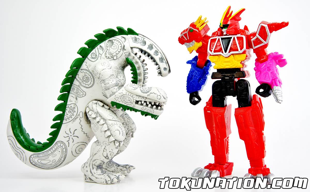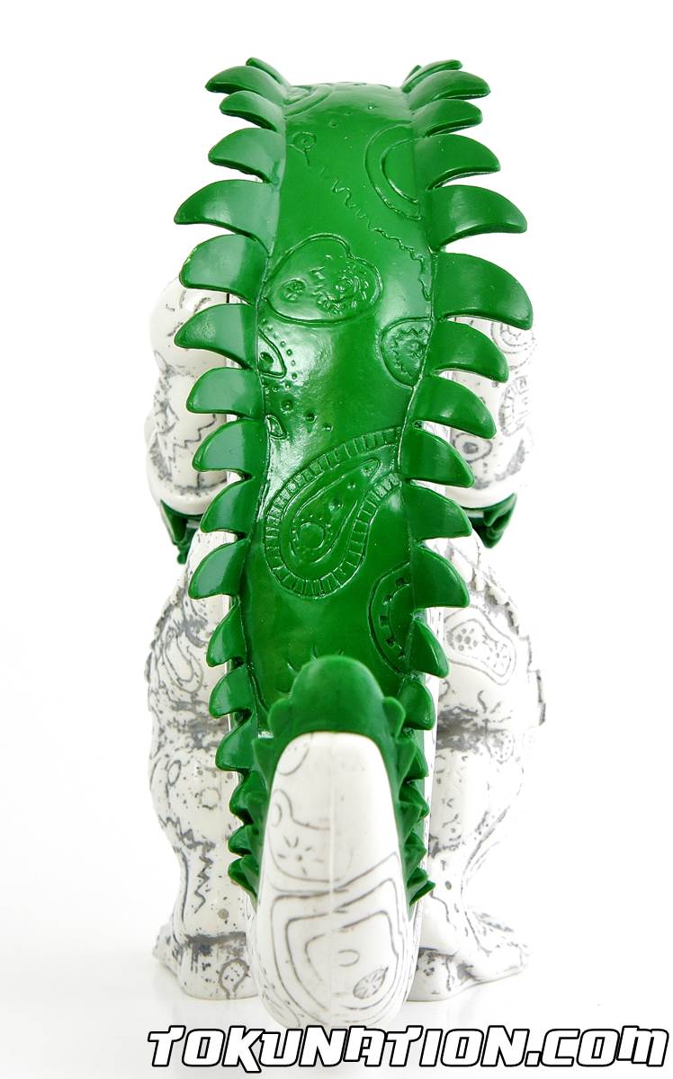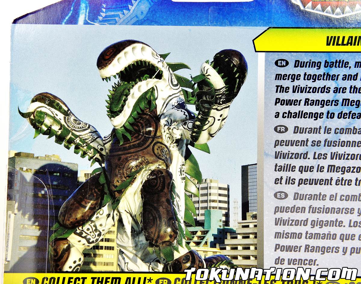 When one giant monster isn't enough, the evil foot soldiers of Sledge, known as Vivix, begin crawling on top of each other and eventually merge to form the evil giant monster known as Vivizord! These behemoth monsters have little intelligence and serve to do little more than be canon-fodder for the Dino Charge Megazord and Ptera Charge Megazord. But how does the 5" figure hold up? Let's take a look shall we? The Figure First off it's important to note that this guy is HEAVY! He is definitely not a hallow piece of plastic - he is a brick and he's ready to be cemented at the feet of the Rangers! Featuring very limited articulation (leg and arm movement ... that's it), he's still pretty beefy and has a TON of sculpting details. Say what you will about the overall look or quality of toys made by Bandai America, but lately they are knocking these sculpts for the villains OUT OF THE PARK! This is easily one of my top "WOW!" figures in terms of how it looks and the amount of details they put in to the figure. Again, you're not going to get him in to ... well, in to any pose really. But the detail on his mouth-hands (is that a term?) and his overall body will keep your occupied and is just about makes up for the lack of articulation. The Accessories Sadly, there are no accessories with the Vivizord. It could have been cool to include a little plastic mold of like two or three Vivix glued together ... but that would have probably broken the bank and caused this guy to have NO paint applications from the waist down. Easily forgivable. The Good!