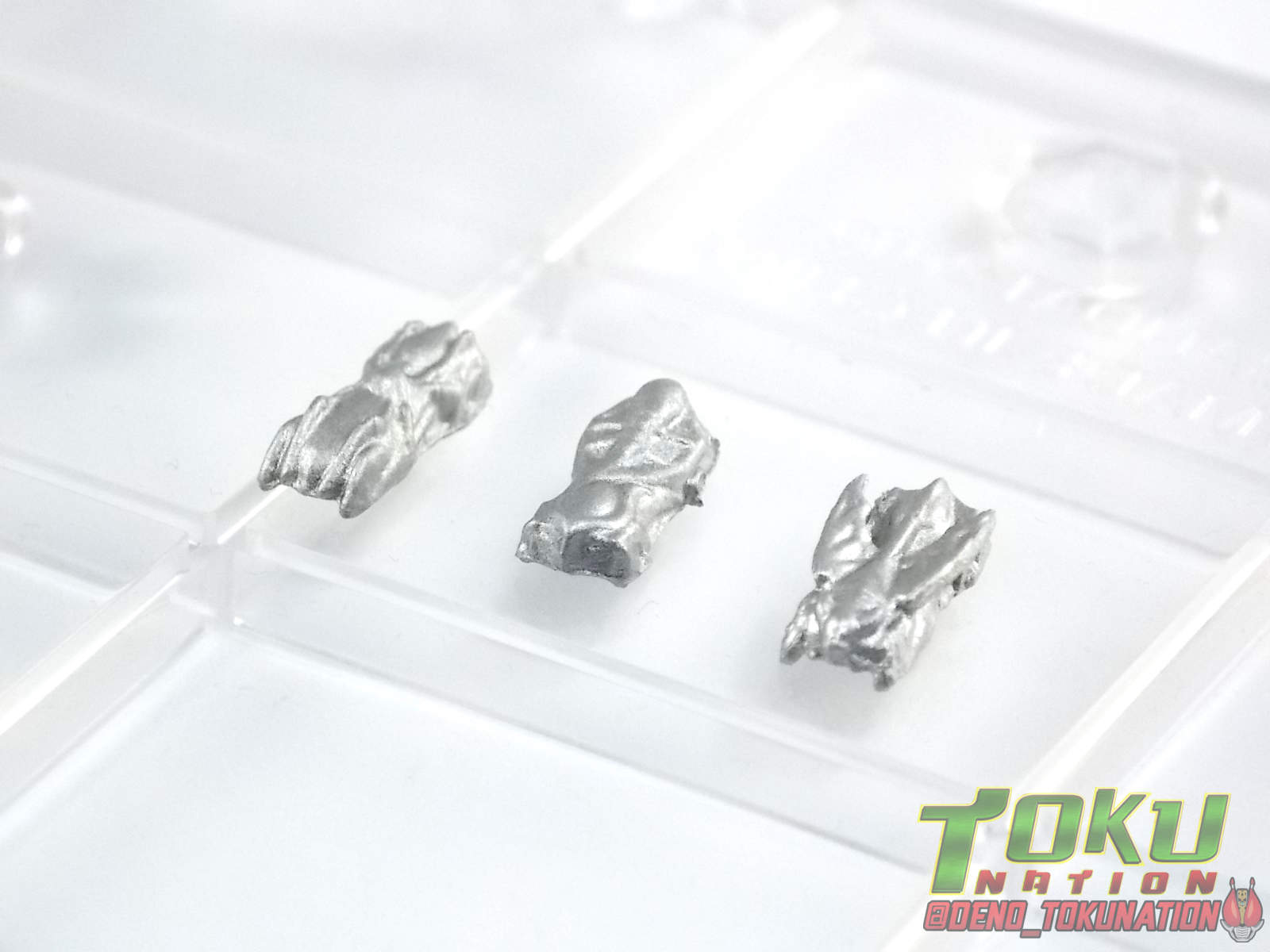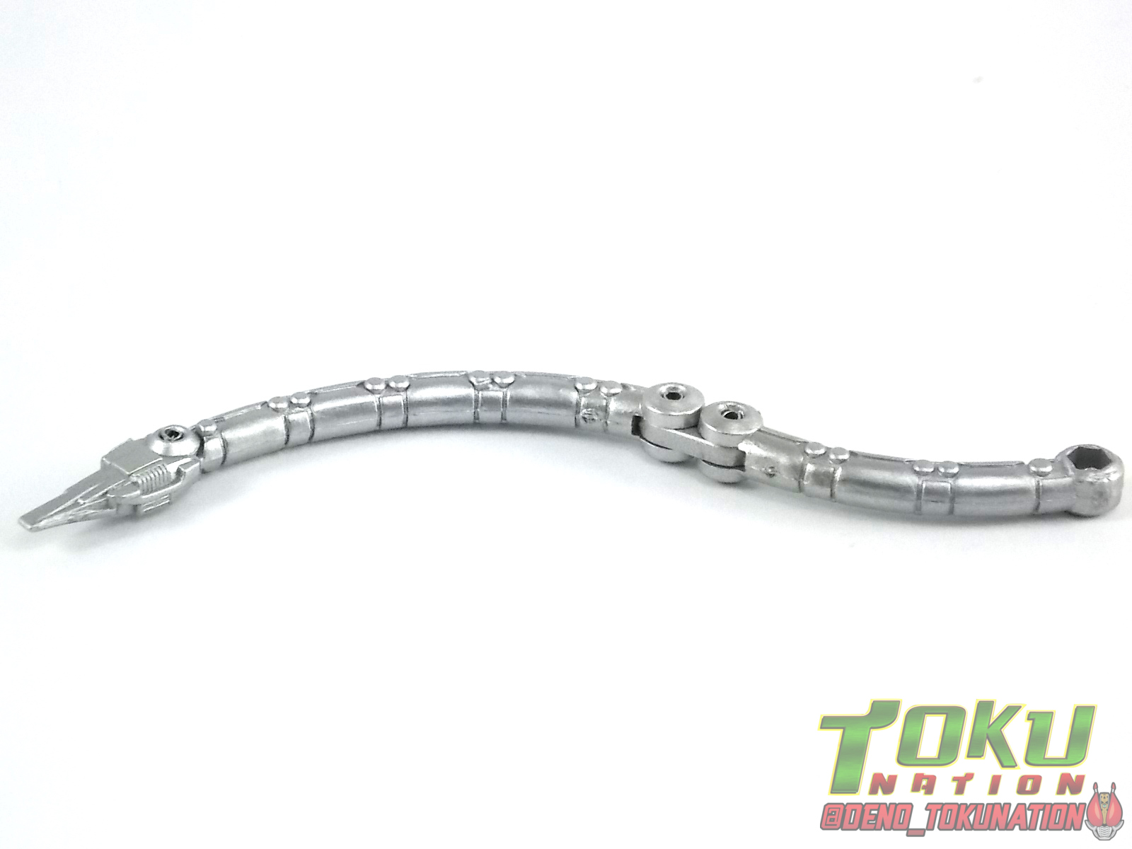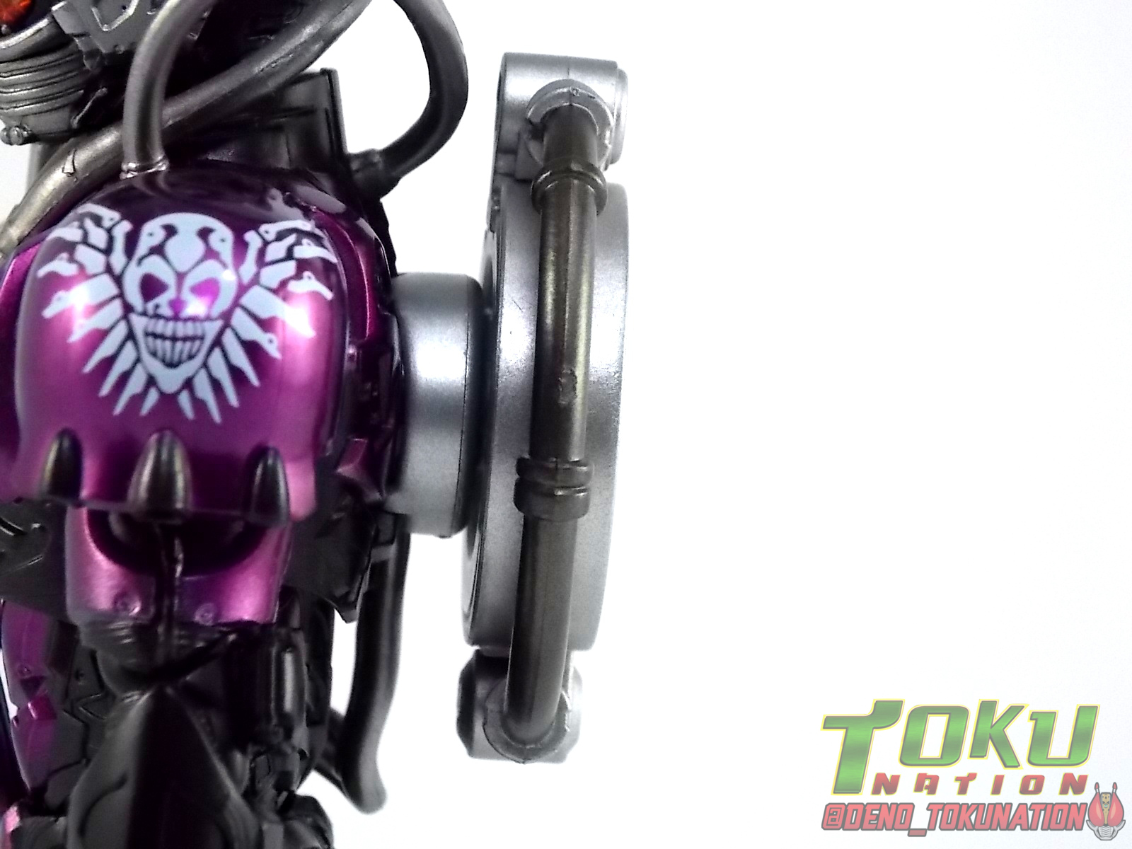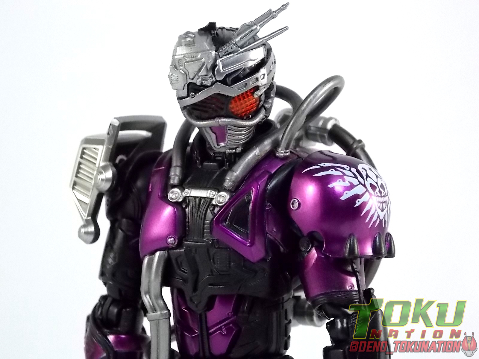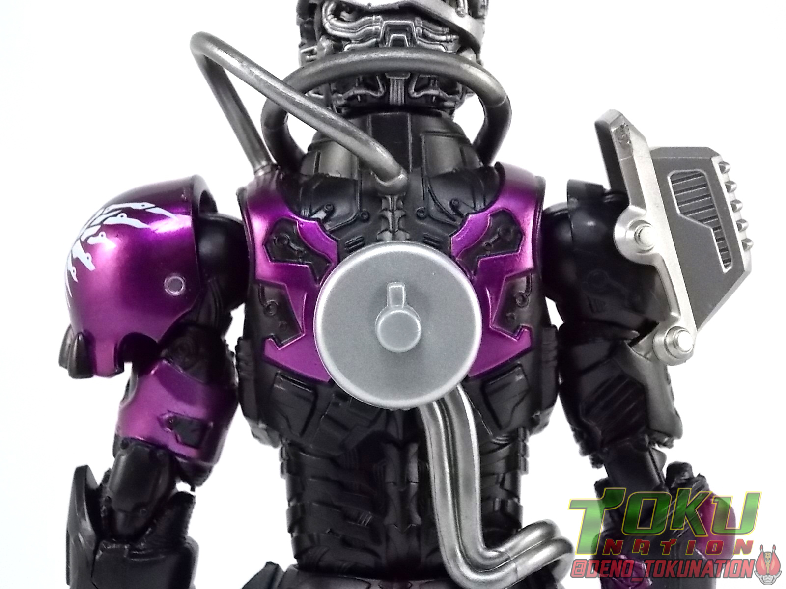 Everyone recalls the awesome abilities of our favorite Rider turned Roidmude hit man turned back to Rider right? Well sadly when S.H. Figuarts Mashin Chaser was released we of course discovered that many of his trademark weapons and accessories were not included. Or rather they simply couldn't be. Frankly it would have been too much for a standard retail release. (As clearly evidenced by this sets price) Well lucky for us Bandai finally saw fit to rectify that situation so today's gallery features the amazing S.H. Figuarts Busou Chaser accessory set! Seeing as this is an accessory set the review will be a bit more brisk. We'll simply focus on each piece individually and how they interact together as well as with Mashin Chaser. Packaging Nothing unusual here! Just a larger wider version of the Kamen Rider Drive theme of box. This one of course is so much larger in to accomodate the rather large wings included in the set. Everything's packed in one gigantic tray so be very careful when you open this set. There are several incredibly tiny pieces that could quite easily be lost when you pry apart the plastic trays. Parts Breakdown As I said above the entire point of this set is for it to interact with your S.H. Figuarts Mashin Chaser. Everything here is designed to interchange with each other to appropriately recreate the various special techniques and weapons made available to Chase by way of his Chaser Viral Cores. So let's start there. Viral Cores: You get one each of the Spider, Cobra, & Bat Viral Cores. Incredibly tiny these are at the exact same scale as Shift Cars & Signal Bikes. Accurately they're just painted in a dull silver but each has some incredible unique sculpting for something at this scale. Each can peg onto Chaser's Break Gunner by removing the guard on top first. Each corresponds to another mode for his Circular Dynamics back mounted weapons pack. To begin building the Circular Dyamics in it's standard backpack formation remove the plug from Chaser back revealing a post which you can plug the small notched gray part included with the set on. Then as pictured take the small tube and combine it with the main body of the Circular. Plug this onto Chaser's back to form the base of the assembly. Next take the weapon portion, the actual E-Circular, and plug the small version of the Tail Whipper onto it. This piece is purely aesthetic, it fills out a kind of symmetry on the opposite side of the circular playing off the tube on the other. A more realistic Tail Whipper is also included which we'll get to below. Plug this assembly onto the backpack and fold it up against Chaser's body. This creates the standard look of the pack. From the side it looks rather odd but straight on it gives Mashin Chaser some much needed bulk. And it succeeds in making him look just a bit more intimidating Now to create the first weapon, the Fang Spidey. Remove everything except the basic back plug and disassemble it. The main Circular Dynamics has a secondary groove in it that will allow you to plug it back on and let it face outward to the right arm. Now instead of the original tube used to accent the circular a larger bendable rubber one is used. This one will attach to the E-Circular itself and give it the free range of motion it needs for posing. Now wait! In order to actually use any of of these new weapons you need to use another part included in the set, the alternate forearm! Surprisingly Mashin Chasers arm can removed very easily and replaced with this one. Which is necessary because of the flat outer surface it features with a port meant to allow the E-Circular to sit flush with the arm. The look in this mode is pretty fierce. While I can't say it's perfect, the range of motion isn't hindered nearly as badly as you might think. The entire assembly can get in it's own way from time to time but all just looks badass. And the E-Circular itself is just ridiculously detailed. Just superb. To create the full Tail Whipper you just need to remove the small plug like port (which we use below) from underneath the pincers. It slides right out and allows you to plug in the larger and more accurate Tail Whipper, NOT the piece we used used for show on the backpack. This new whip has a semi-rigid wire running through it and all the components float freely around it. Allowing you to the have a fully posable and pretty firm whip for action poses. In order to utilize the final mode for the arm you can need to unplug the Tail Whipper and put the original port back in. Now we use the included Wing Sniper Effect Part to simulate a powerful attack. It's honestly not too spectacular but it gets the point across. Last but far from least is the most impressive and ambitious accessory in the entire Busou Chaser set, the Wing Sniper Wings! This huge and beautiful set of wings is just everything you could possibly want. The wings are each split into 2 large sections that can move independently of one another while each of half of the wing set is also independent allowing you create some great flight poses. When in use the other parts of this set are almost entirely taken out of play. You just need to get back down to the original Circular Dynamics parts without the weapons attached. Now remove the small pincer from the Circular and snap it into a similar groove on the back side of the wings. This gives the impression that the wings you have now transformed from the wings on the arm weapon. It's a brilliant way to simulate something that's impossible for this toy to replicate. However here's my one gripe with this entire accessory set. These hefty wings are now plugged into the the small plug on the upper back piece of the circular. This would be fine if the entire backpack could withstand the weight. I don't know if it's just mine or what but even though Mashin Chaser himself can balance with the wings on, perfectly I might add, the entire thing likes to come unplugged from his back. And plugging the wings themselves in