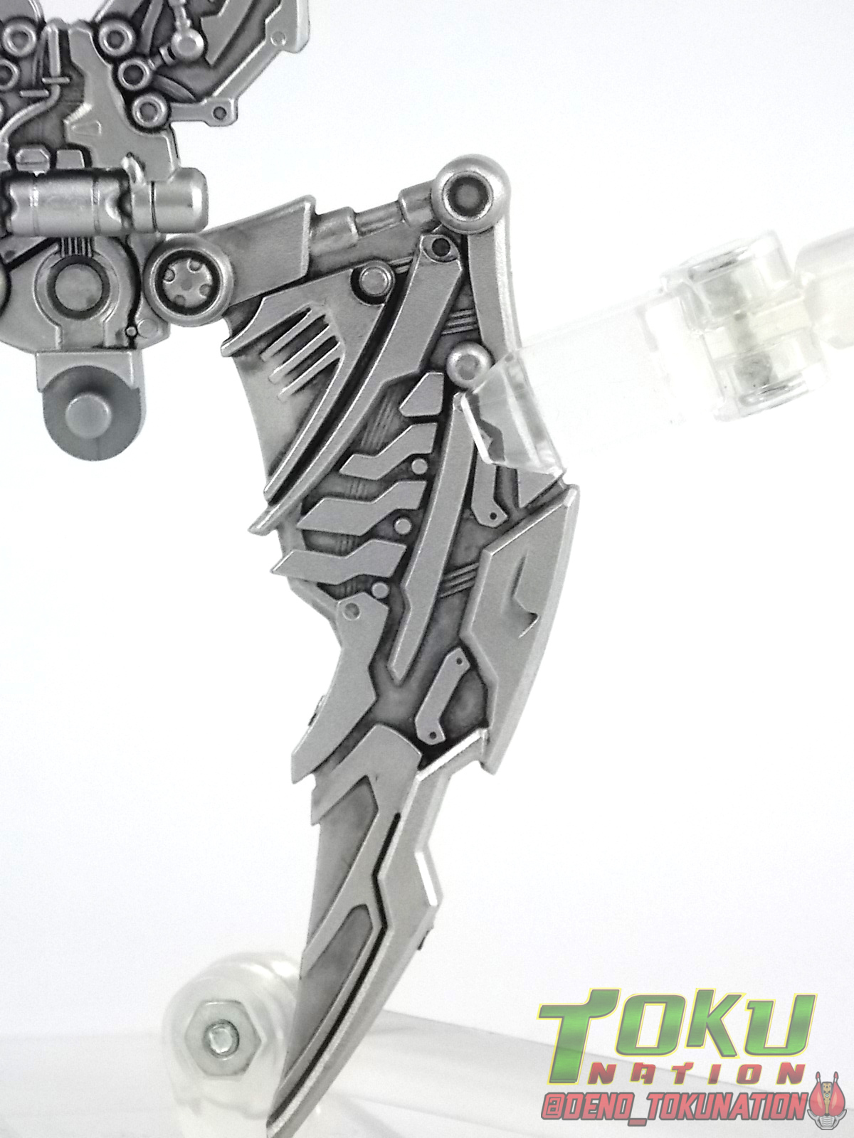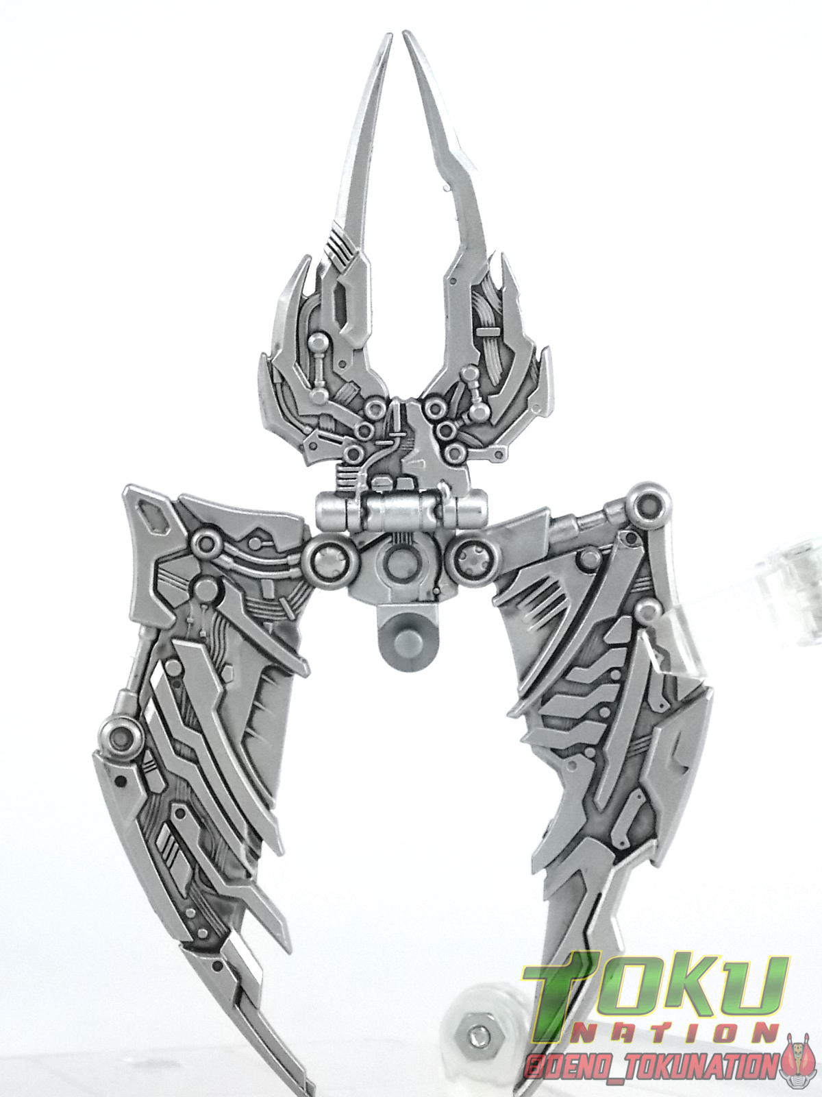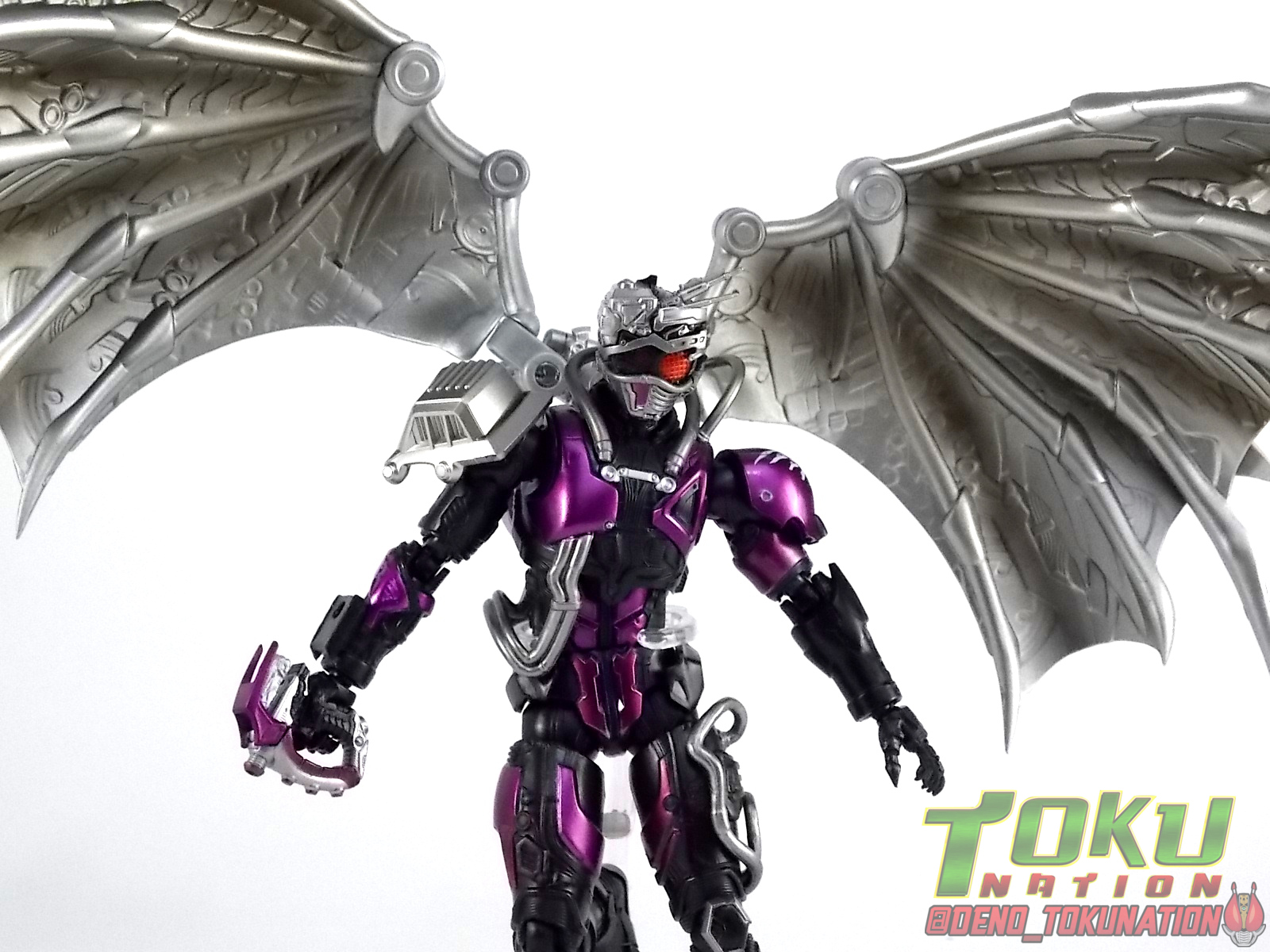 My complaining is mostly empty and more on principle rather than anything else, though, because I still don't actually like Mashin Chaser's design, or that of his weapons, so this was never something I was going to buy in any case. Really though. His weapons remind me of exaggerated Bionicle weapons, or perhaps something from the Bay Tronsformers films. Not really to my liking. For what it is, however, it's pretty cool. Definitely can't knock the toy for being accurate, the sculpting and detail look spot-on. The effect part is a great addition, and the wings look better in plastic than they did in the show. |