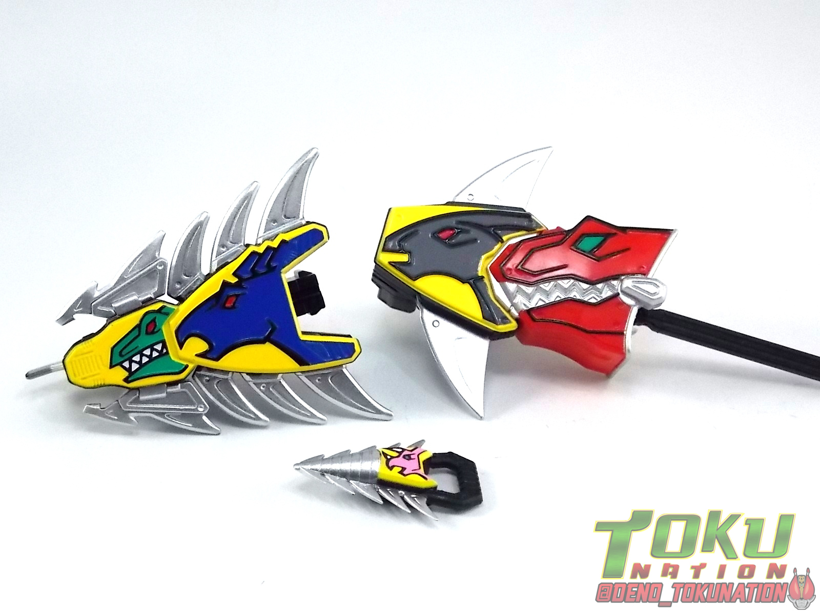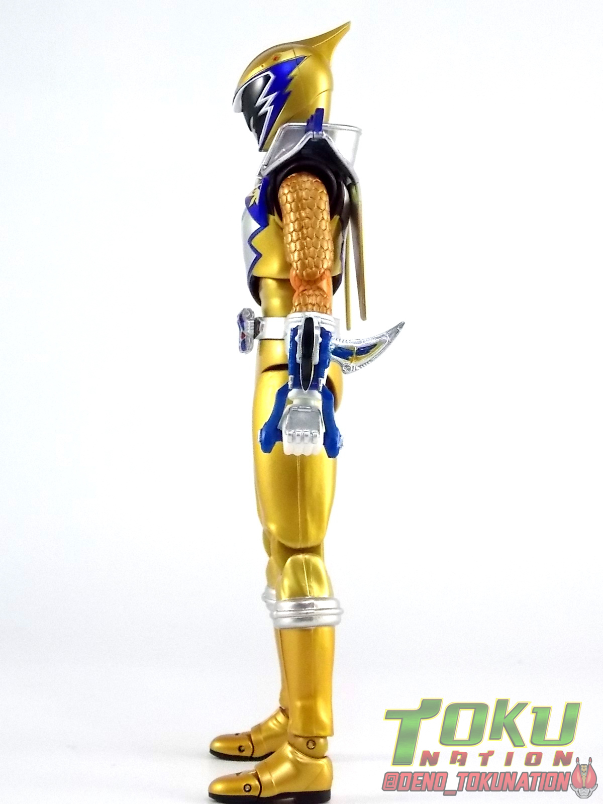 This guy is really nice. His colors are great. Gold and silver are always a winning combination, the blue just makes it all pop wonderfully. And when put next to the other five core Kyoryugers it makes for a really striking look. Especially since they lack a yellow ranger, he really fills out the palette. Very nice overall.