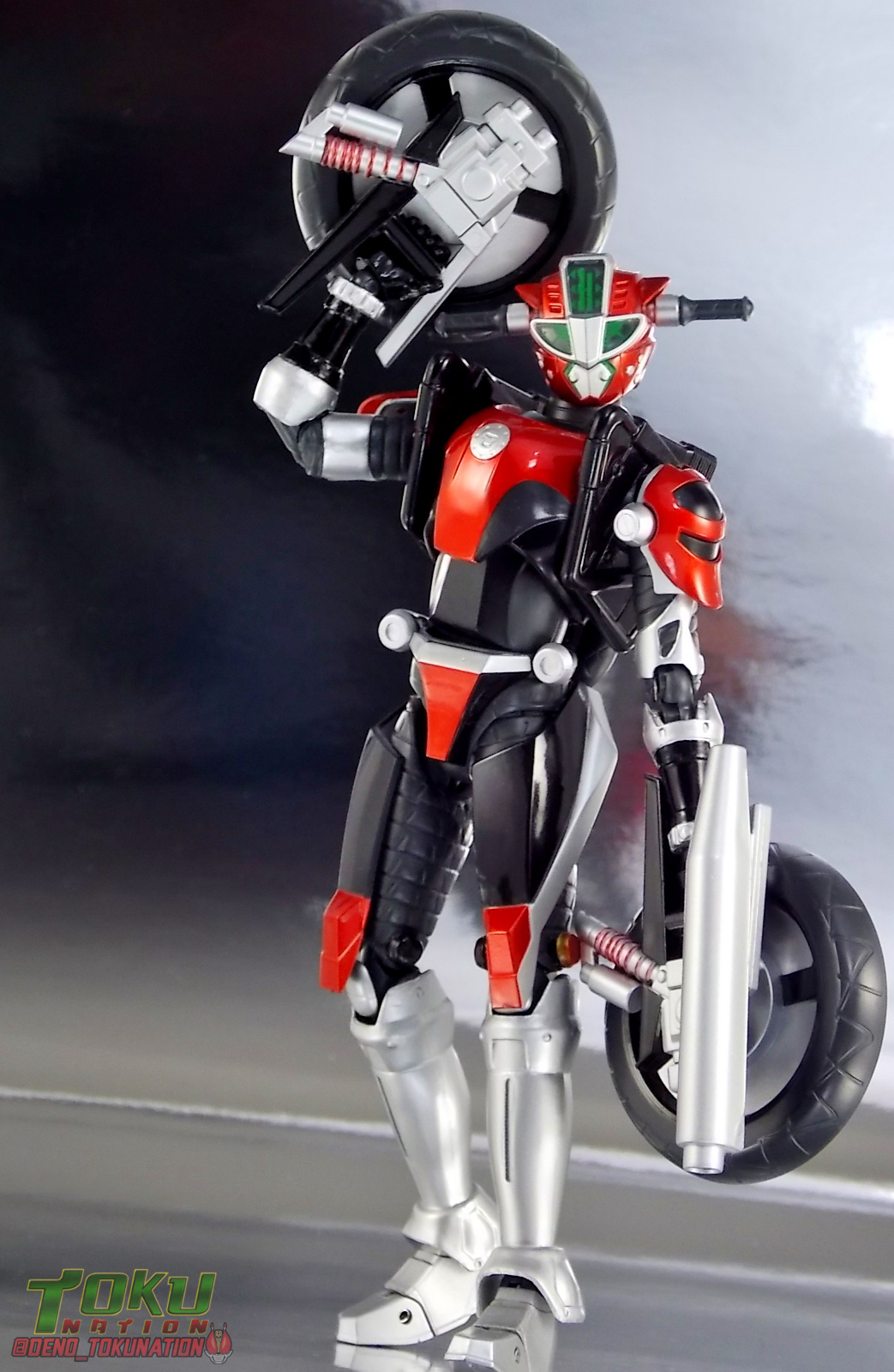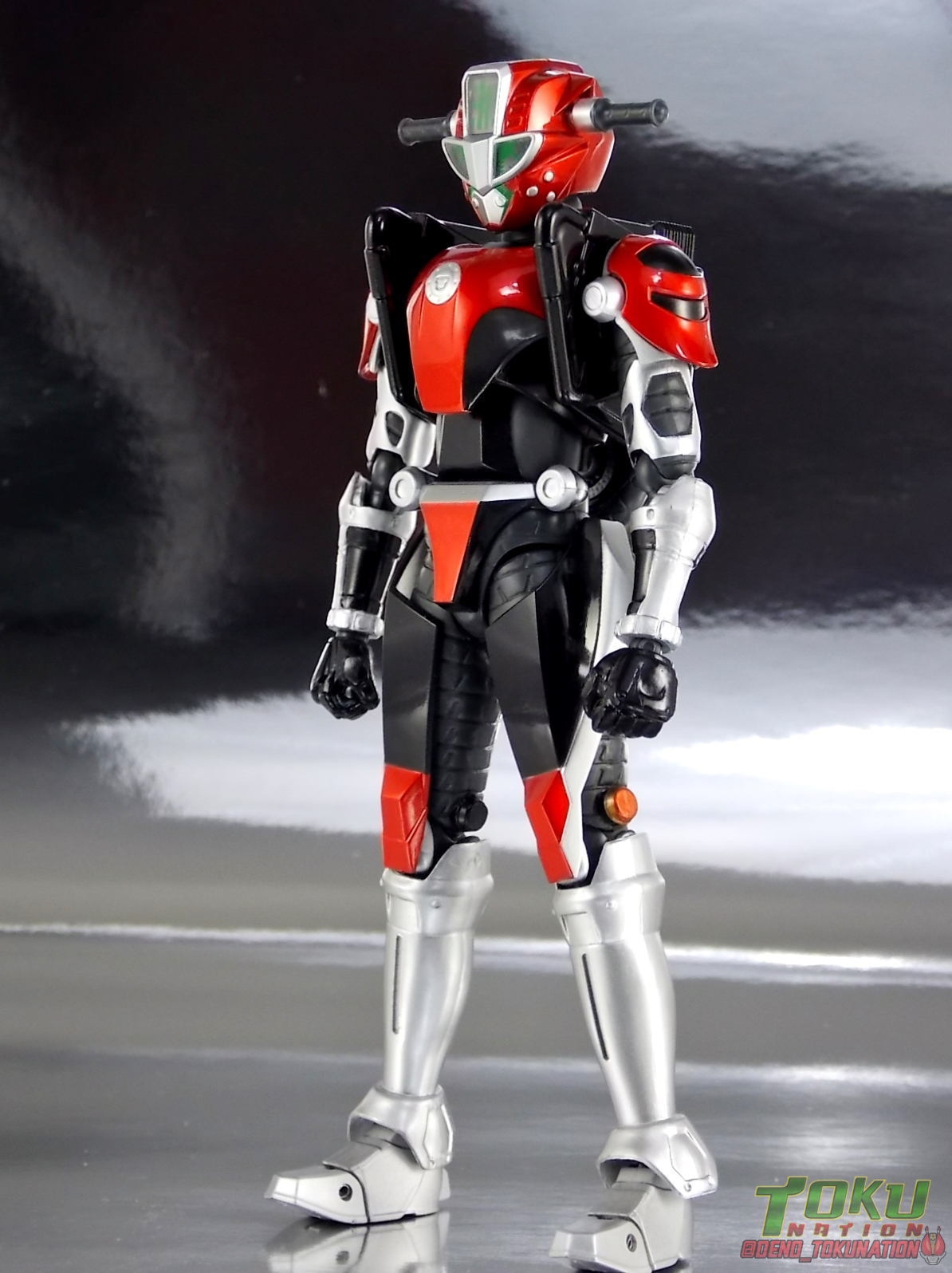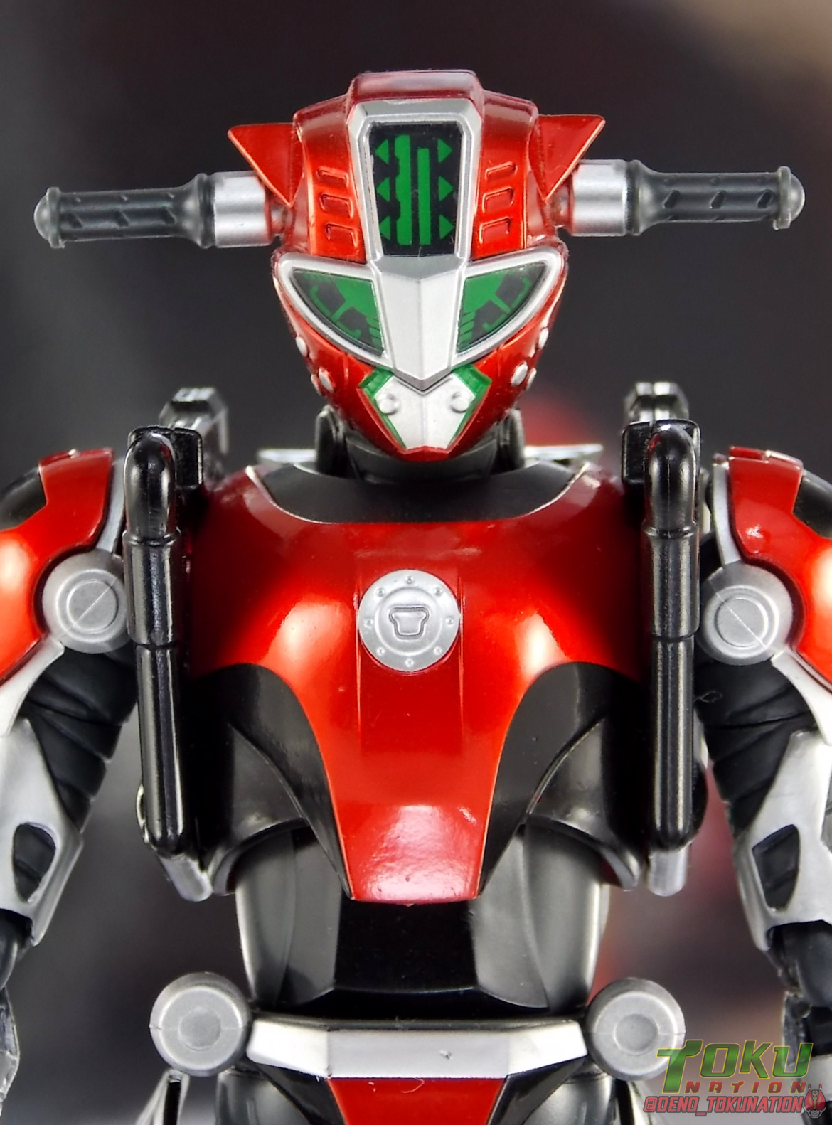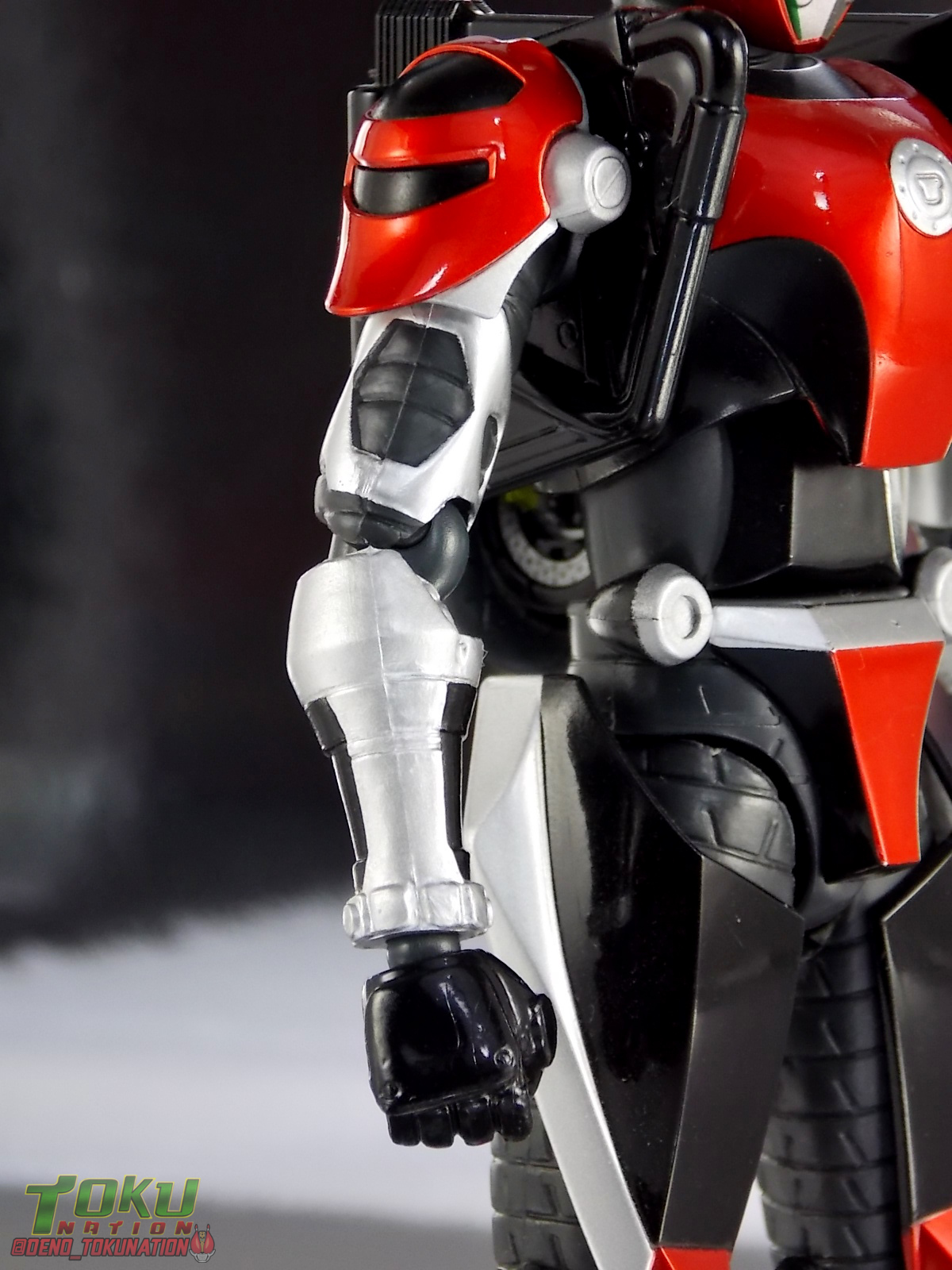 Continuing my retrospective look back at the figures released for Tokumei Sentai Go-Busters we've got another gallery 2.0 for you. Last time we caught up with a look back at S.H. Figuarts Red Buster. Today we're taking a look at his robotic partner, his buddy, S.H. Figuarts Nick Cheeda! Nick is of course the first of the 3 companion Buddyroids for the team. Uniquely of the 3 Buddyroids Nick is the only with the ability to transform, and also the only one to go out into the field regularly and face combat. While this figure can't transform into his bike mode it gets the point of Nick's fun loving directionless personality across perfectly. Read on below! Packaging As I mentioned last time, Go-Busters figuarts featured some really creative packaging. And I still think that's true. Nicks' box features all the same series hallmarks and logos as part of it's design that Red Buster did. Even that wonderful "shades" logo. The metallic reflective cardboard makes it feel premium, which in this case is beneficial as Nick was released as a Tamashii Web Exclusive. Stock photos don't offer much but frankly the figure demonstrates why, more on that below. Obviously when it comes to Japanese names the family name is spoken first followed by the first name. So Nick's name is spoken as "Cheeda Nick" and is written that way on the box. However for the sake of ease when referring to the figure, and framing it in English, I'm just gonna stick to saying Nick Cheeda. Main Figure S.H. Figuarts Nick Cheeda is a brand new mold when compared to Red Buster. They share no similar parts at all. Most of the time when a figuarts subline begins you get several figures with similar design and new tooling. But because of how radically different each of the Buddyroids are, their molding is totally unique to them. This probably explains why all 3 became Web Exclusives, but then again so were Blue & Yellow Busters. In any case Nick is a refresher after Red Buster. However in much the same Red Buster suffered from design deficiencies so too does Nick. For starters Nick has very odd legs. While the design of this figure is truly faithful, it doen't attempt to fix the design to work in toy form. The figure doesn't take into account how everything functions on a human wearing a suit as opposed to a toy with limited mobility. Nick has toes that curve upwards in their resting position. Meaning with the added weight on his back this makes for precarious posing, even for basic generic stances. The hips likewise have large silver/black protrusions that impact the waist and keep the legs from reaching a full range of motion. You can either get some pretty boring poses out of them or you have to work the protrusions past the waist for crazy leg splits. There's not much of an in-between. Add on top of this that the hips themselves are rather loose and you see the main problem with the figure. Making up for this the torso components are actually really great. Again this is a faithful sculpt. Nick has a nice floating upper torso that can angle out pretty well, the black struts/shoulders don't really impact that. Surprisingly he has much better arm movement than Red Buster himself thanks to higned shoulder pads and improved elbow joints. The plastic tolerances seem to be greatly improved as well. The headsculpt is totally on point too. Nick's head & face is of course what becomes his motorcycle modes' handlebars & gauges. Now this figure can't transform into that mode but the detailing is present that would make you believe it could. Nick's eyes and forehead are actually painted then overlayed with translucent plastic to give the gauges an authentic look. And yes of course, as you can see below, Nick can reach up and 'rev' his own handlebars. On his back you'll also see sculpted in details that mimic the front wheel and nose of his motorcycle mode. Albeit in a mass shifted and slimmed down form. Though this is accurate to the show suit as well. While Nick Cheeda is far from perfect, this figure winds up having a pretty deep personality. You can jut hear Nick shouting "Hiromu!" when posed running. A Tamashii Stage & some effect parts go a long way to complementing this figure. A quick comparison VS the old retail toy transforming MBAF Nick Cheeda, shows that S.H. Figuarts Nick Cheeda is indeed the winner. And Nick can ride himself (sort of). Accessories Nick includes just a few essential accessories: 2 - open "holding things" hands. Included to use the following weapons. 2 - Rear Wheel Guns. These weapons are rarely used by Nick in show but necessary for inclusion with this figure. They make up the missing mass lost in the transition from his bike to Buddyroid mode. When transforming in show Nick usually just uses some CGI magic to go from bike to complete robot without these guns showing up much. Technically they should always be present but oh well. The only difference between the two is that the left hand gun has a removable exhaust pipe that you'll need to pop off to get it in his hand. It plugs back on securely. They can be a little difficult to get into his fists but once there they're nice and secure. They're a little large and clunky but you can get some decent poses out of them. The only limitation is the design of Nick himself. Honestly the Buddyroids didn't use many items or accessories in show. So I was never surprised by how little Nick came with. This figure predates the now semi-typical trend of transforming characters getting figuarts that actually can transform. Nick came out long before the like of Auto Vaijin or the soon to be release Dragranzer. So it's understandable he can't transform, but I would have gladly paid more for a figure that could. Final Thoughts As with Red Buster, even after all these years flaws & all, I'm still more than happy to own S.H. Figuarts Nick Cheeda. Tokumei Sentai Go-Busters is still one of my favorite shows ever so I'm happy to have these figures. Even knowing the team will never be complet