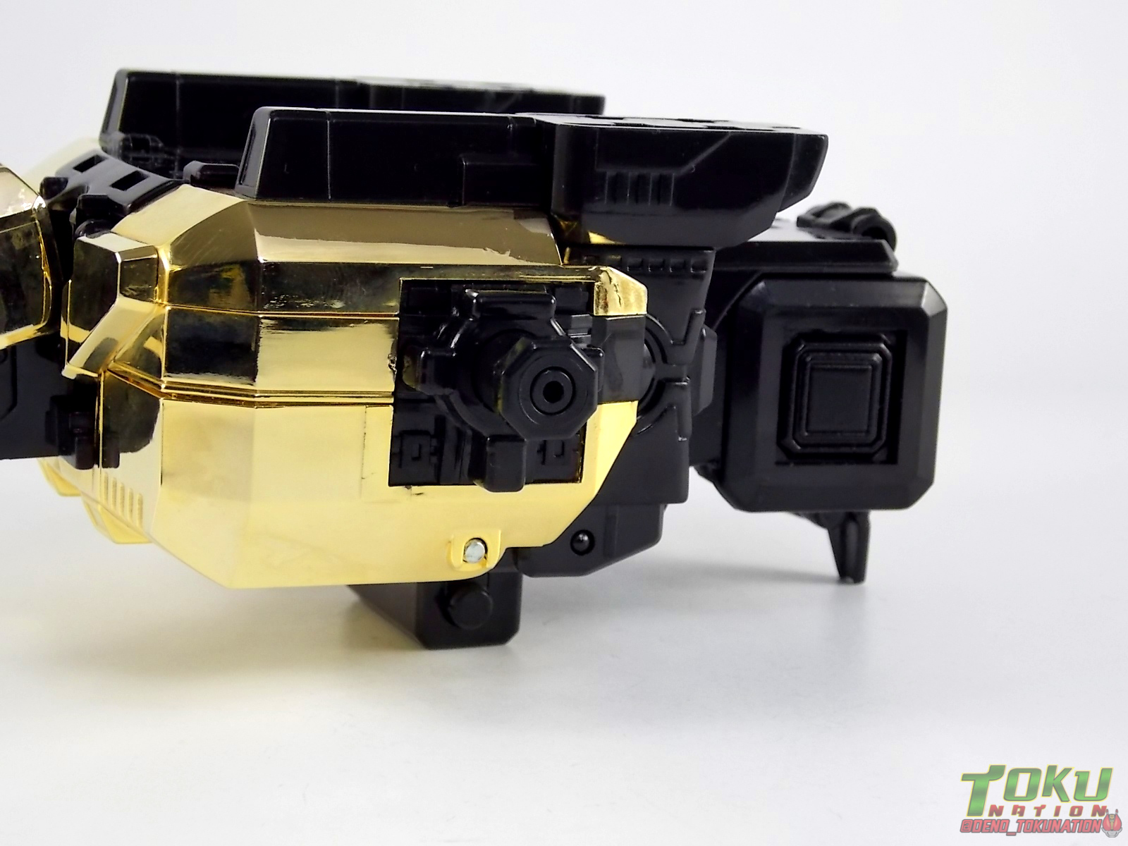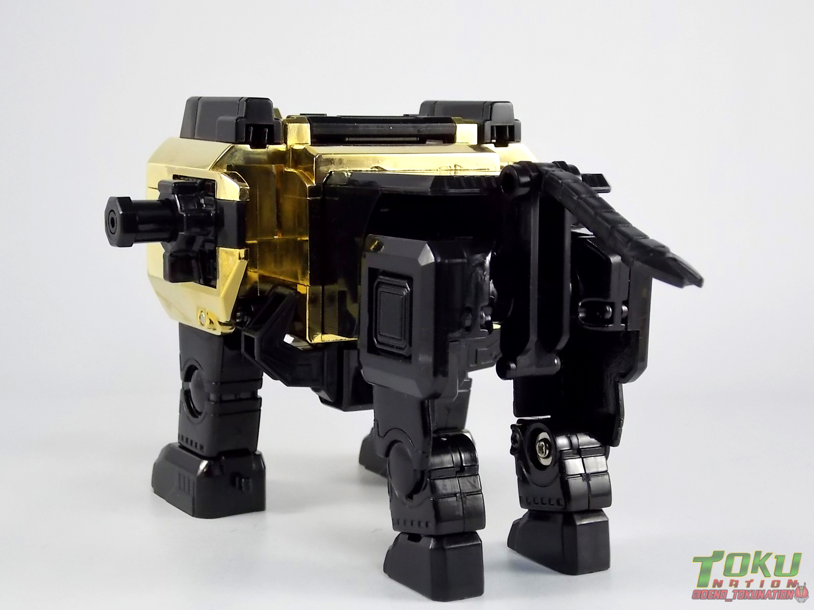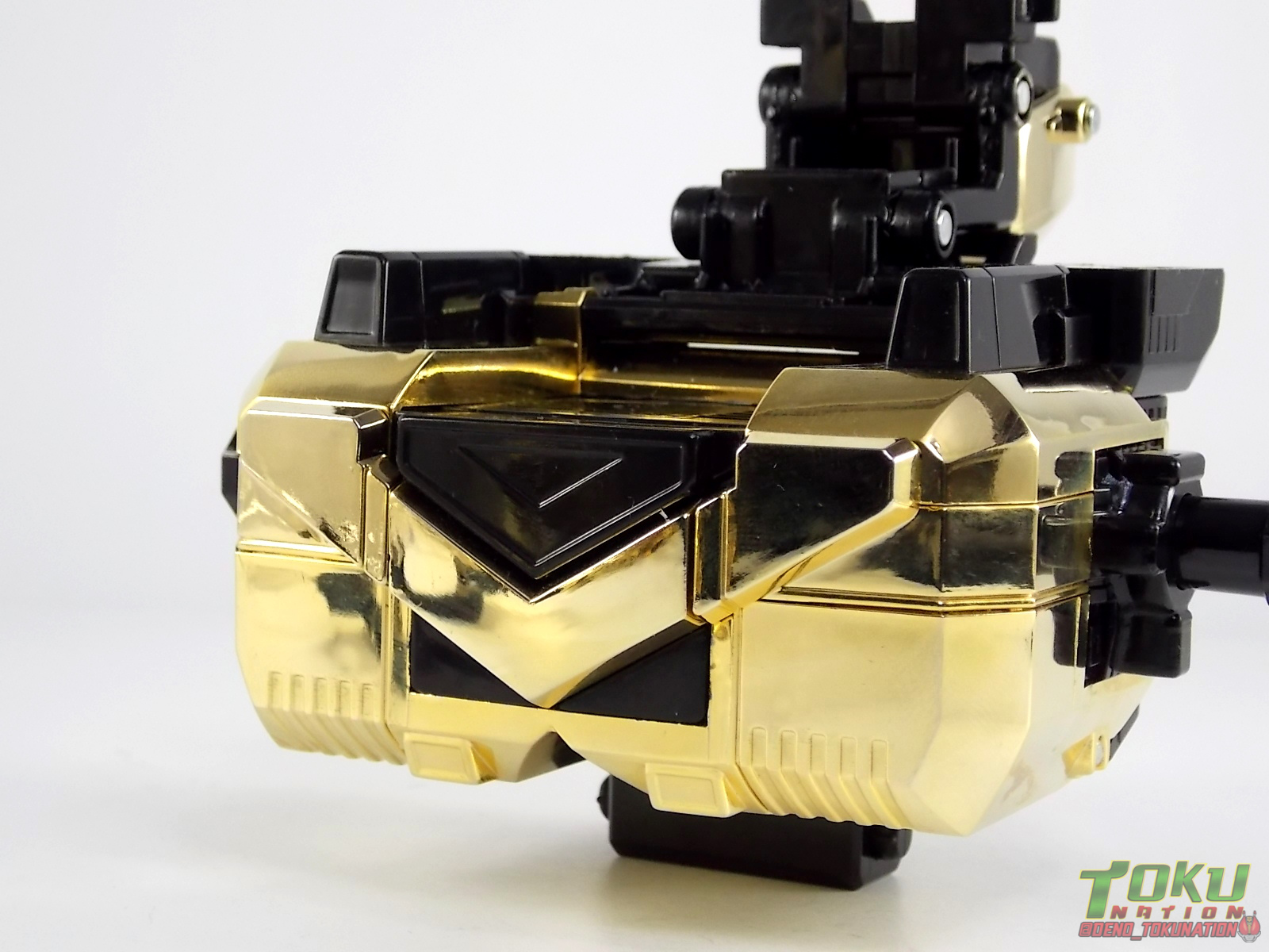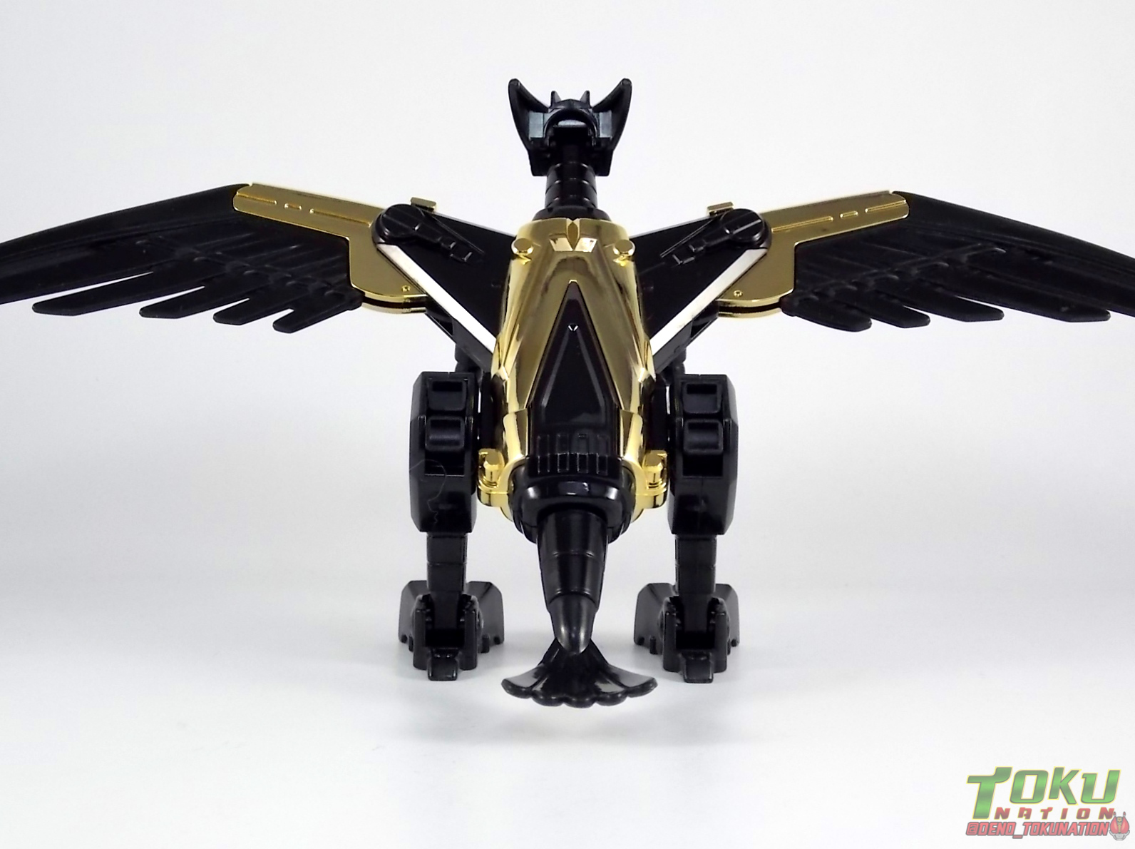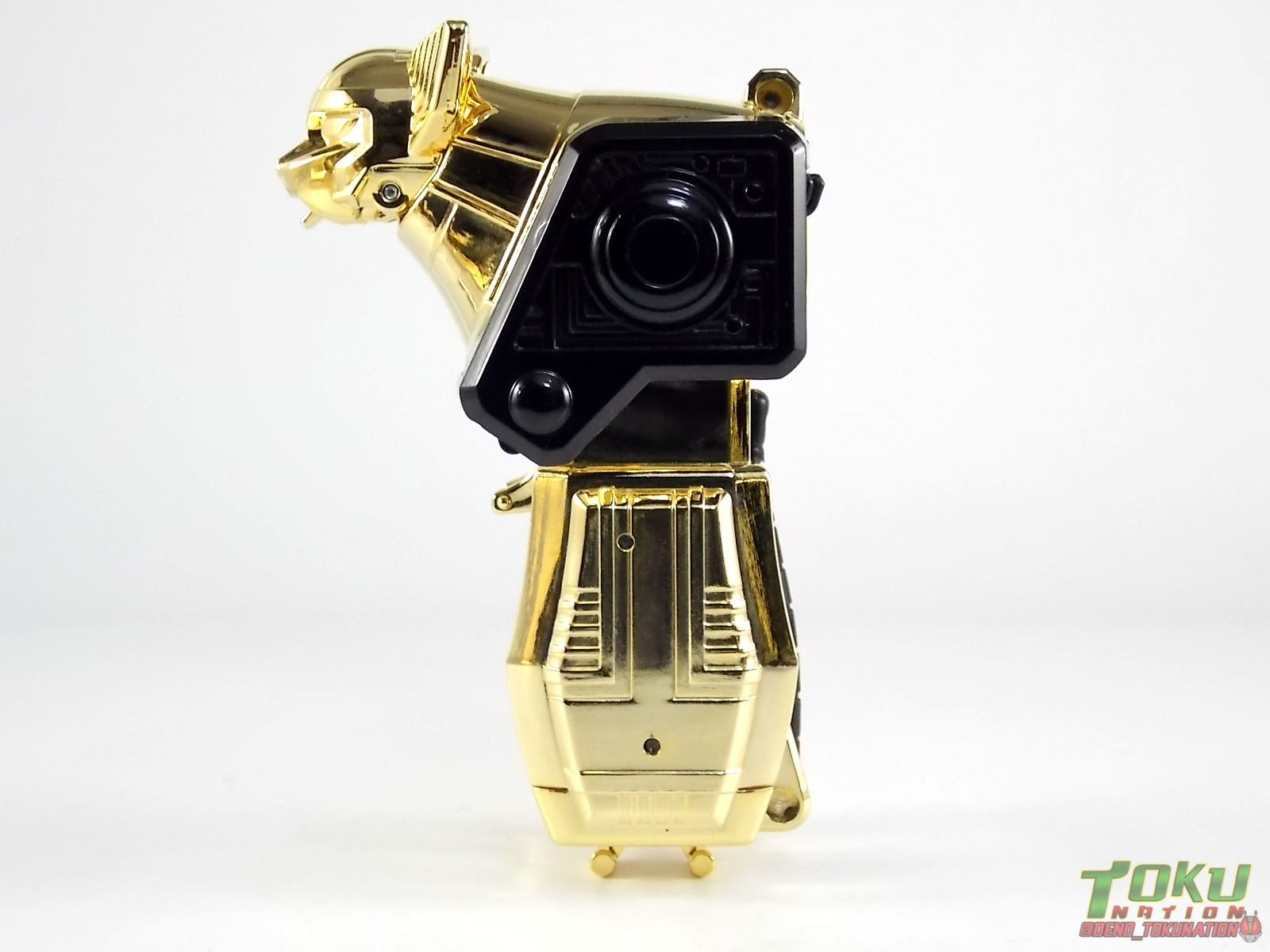 So what do we know about it? As far as anyone knows an extremely limited number of Gold Galaxy Megazords were produced. In similar fashion to Lucky Draw releases from Bandai Japan, this set exists only in double digit numbers. Originally thought to have only been manufactured in a run of less than 10, in recent years it's come to light that as many as 15+ of these gorgeous sets were produced. Originally sold as FAO Schwartz exclusives each Gold Galaxy Megazord included a Certificate for the buyer as "proof" of their ownership of the set. The one included with my Megazord is luckily still blank. After the initial FAO Schwartz run a handful of these Megazords were given away some years later as prizes. These sets rarely turn up for sale and often for staggering prices. Though there aren't many of them left in circulation, prices can range anywhere from about the $500 mark to upwards of $1500 and beyond in some earlier documented sales. I simply lucked into finding this set for an absurdly good deal. And I could not pass up the opportunity to share an incredible piece of Power Rangers & toy collecting history with the community. So here we are! Below you'll find a quick overview of each component and the combined form with photo comparisons to Black GingaiOh for reference. I hope you enjoy it! Packaging As with most special color releases in toy lines, the Gold Galaxy Megazord comes packaged in the same box as the original release, though with significantly altered colors. The entire packaging is done up in black & gray with gold accents. The stock images of the toys show them in their true black & gold colors but everything else is muted. Including the cross-sells for the Stratoforce & Centaurus Megazords on the side. The inner packaging is the exact same styrofoam tray as the normal Galaxy Megazord. The packaging as a whole is of course totally different from either of the original Japanese GingaiOh releases. The box and styrofoam were re-designed to be a few inches shorter and more compact for US store shelves. I have to mention that it's a little difficult to determine exactly which surfaces are true 14K Gold or vacuum metalized gold chrome. While undoubtedly the actual diecast components that are gold have the 14K plating, that my not necessarily be true for the rest of everything. Regardless the gold looks identical on nearly every surface where it's present. Components Gorilla We'll kick the review proper off with the Gorilla Galactabeast. In this rendition of the figure, nearly every visible surface is golden. The only portions of this figure not covered in gold in one form or another are the forearm and the top of the shoulder area. Even the underside of the feet where the Megazord fists are stored is golden. Now of course this presents a fairly wide spread fingerprint issue. LOL. Once transformed for its part of the Megazord combination you can see the exposed thighs are actually black as well as the small hinges the Gorilla arms rotate on. As you can see the Black Starbeast Gingarilla has a radically different color scheme with a much more vibrant gold, though much less of it. As with all the figures in these 2 sets, this pair couldn't be more different. Down to an including the shade of gold used. Condor Perhaps the most bland member of this team is the Condor Galactabeast. With no paint applications whatsoever this figure can look rather boring. The Gold applications are limited to the wing hinges, as well as the back plate and the underside of the bird beneath the black diecast chest plate. This gold is only visible when the Condor is used for it's crossbow mode. Between these two figures, the Black Starbeast Gingalcon is the clear winner with the additional paint apps, though it lacks somewhat in gold. At least on these two the gold chrome appears to be nearly the same color. Lion The Lion Galactabeast has a nice liberal gold chrome application applied to the section that becomes the Galaxy Megazord head as well as it's chest/shoulders. Because of the where the gold is located it can be difficult to transform the lion without getting a number of finger prints on it. Interestingly when transforming it to the chest component the chunk that slides forward to fill out the gap left by the head is mostly black with gold trim. More interesting is that the head features the only paint app in the entire set, the Galaxy Megazords' eyes are painted blue! Likely to make them distinguishable in the sea of gold chrome. The Lion itself could have benefited from some eye paint apps. Again the contrast between this piece and its' Black Starbeast Gingaleon counterpart is striking. Wildcat With the Wildat Galactabeast we come to the figure that relates most to it's Black GingaiOh counterpart, Black Starbeast Gingat. These two are practically inverses of one another. Where a part is golden on Wildcat, it's black or grey on Gingat. Tail, front hips, legs, head. It's just a really poignant comparison between these two. Wildcat indeed looks great with all that gold, it just needs a few paint apps to break things up. As is the only non-gold components at all are the toes, tail, and front hips. Even when you use the Gorilla's fist on it for combined mode those too are solid gold. Wolf The Wolf Galactabeast is basically identical to the Wildcat in design. And shares a similar type of inversion with it's Black Starbeast Gingaverick counterpart. This piece features gold and black applied in all the same places, has an identical transformation and fist as well as the aforementioned lack of paint apps. Galaxy Megazord When fully combined into the Gold Galaxy Megazord this set really shines. Literally. The black accents that do exist serve to break up the monotony of the color scheme decently enough and help unify the design more. Disappointingly the Galaxy Megazord Saber included with this set is only cast in an incredibly dull black plastic with no gold plating or paint at all. However this doesn't detra