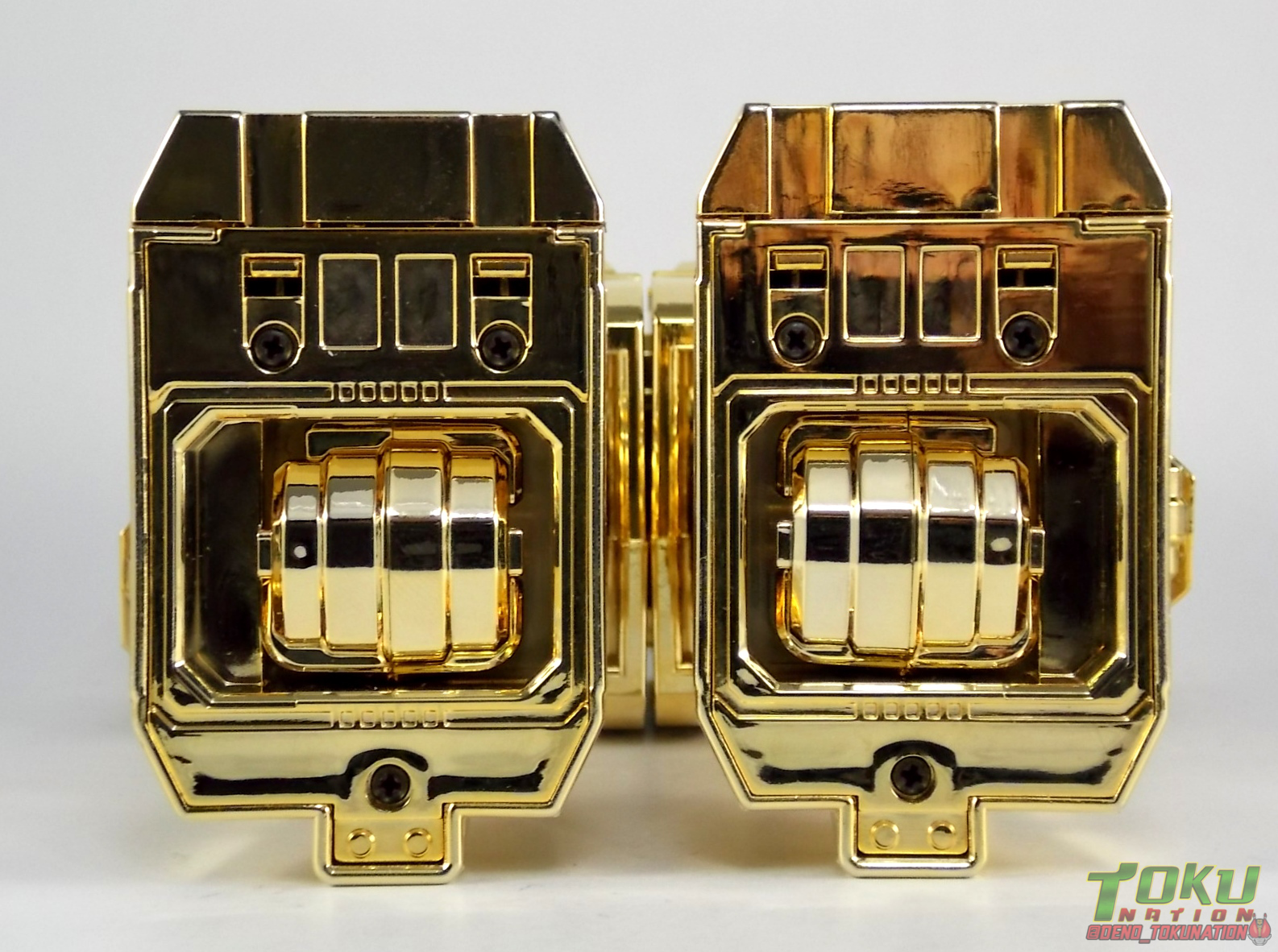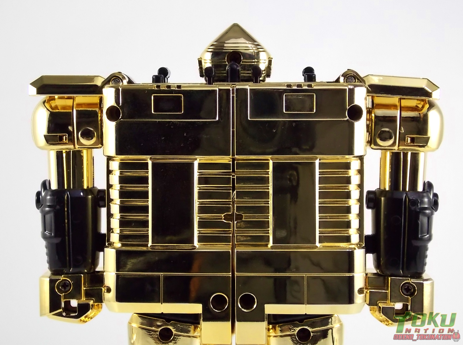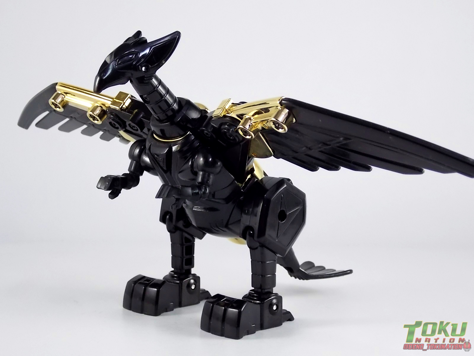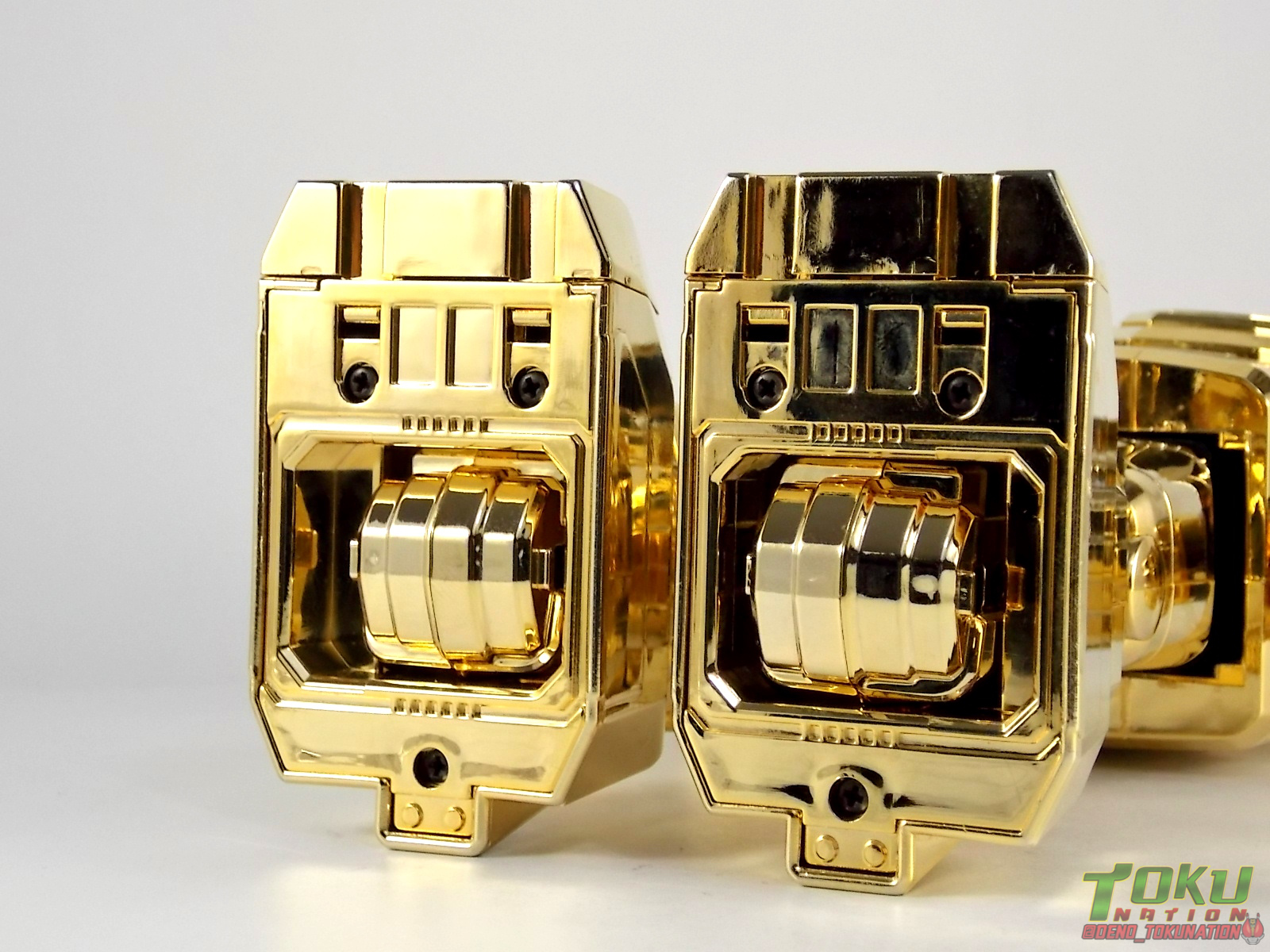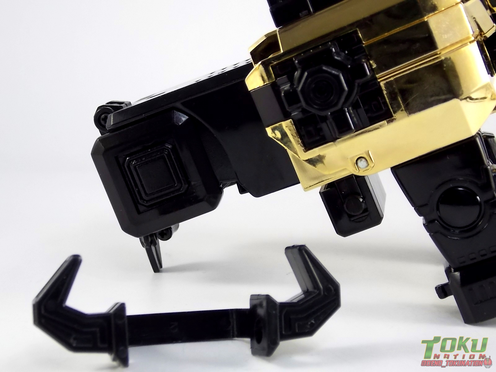 So what do we know about it? As far as anyone knows an extremely limited number of Gold Galaxy Megazords were produced. In similar fashion to Lucky Draw releases from Bandai Japan, this set exists only in double digit numbers. Originally thought to have only been manufactured in a run of less than 10, in recent years it's come to light that as many as 15+ of these gorgeous sets were produced. Originally sold as FAO Schwartz exclusives each Gold Galaxy Megazord included a Certificate for the buyer as "proof" of their ownership of the set. The one included with my Megazord is luckily still blank. After the initial FAO Schwartz run a handful of these Megazords were given away some years later as prizes. These sets rarely turn up for sale and often for staggering prices. Though there aren't many of them left in circulation, prices can range anywhere from about the $500 mark to upwards of $1500 and beyond in some earlier documented sales. I simply lucked into finding this set for an absurdly good deal. And I could not pass up the opportunity to share an incredible piece of Power Rangers & toy collecting history with the community. So here we are! Below you'll find a quick overview of each component and the combined form with photo comparisons to Black GingaiOh for reference. I hope you enjoy it! Packaging As with most special color releases in toy lines, the Gold Galaxy Megazord comes packaged in the same box as the original release, though with significantly altered colors. The entire packaging is done up in black & gray with gold accents. The stock images of the toys show them in their true black & gold colors but everything else is muted. Including the cross-sells for the Stratoforce & Centaurus Megazords on the side. The inner packaging is the exact same styrofoam tray as the normal Galaxy Megazord. The packaging as a whole is of course totally different from either of the original Japanese GingaiOh releases. The box and styrofoam were re-designed to be a few inches shorter and more compact for US store shelves. I have to mention that it's a little difficult to determine exactly which surfaces are true 14K Gold or vacuum metalized gold chrome. While undoubtedly the actual diecast components that are gold have the 14K plating, that my not necessarily be true for the rest of everything. Regardless the gold looks identical on nearly every surface where it's present. Components Gorilla We'll kick the review proper off with the Gorilla Galactabeast. In this rendition of the figure, nearly every visible surface is golden. The only portions of this figure not covered in gold in one form or another are the forearm and the top of the shoulder area. Even the underside of the feet where the Megazord fists are stored is golden. Now of course this presents a fairly wide spread fingerprint issue. LOL. Once transformed for its part of the Megazord combination you can see the exposed thighs are actually black as well as the small hinges the Gorilla arms rotate on. As you can see the Black Starbeast Gingarilla has a radically different color scheme with a much more vibrant gold, though much less of it. As with all the figures in these 2 sets, this pair couldn't be more different. Down to an including the shade of gold used. Condor Perhaps the most bland member of this team is the Condor Galactabeast. With no paint applications whatsoever this figure can look rather boring. The Gold applications are limited to the wing hinges, as well as the back plate and the underside of the bird beneath the black diecast chest plate. This gold is only visible when the Condor is used for it's crossbow mode. Between these two figures, the Black Starbeast Gingalcon is the clear winner with the additional paint apps, though it lacks somewhat in gold. At least on these two the gold chrome appears to be nearly the same color. Lion The Lion Galactabeast has a nice liberal gold chrome application applied to the section that becomes the Galaxy Megazord head as well as it's chest/shoulders. Because of the where the gold is located it can be difficult to transform the lion without getting a number of finger prints on it. Interestingly when transforming it to the chest component the chunk that slides forward to fill out the gap left by the head is mostly black with gold trim. More interesting is that the head features the only paint app in the entire set, the Galaxy Megazords' eyes are painted blue! Likely to make them distinguishable in the sea of gold chrome. The Lion itself could have benefited from some eye paint apps. Again the contrast between this piece and its' Black Starbeast Gingaleon counterpart is striking. Wildcat With the Wildat Galactabeast we come to the figure that relates most to it's Black GingaiOh counterpart, Black Starbeast Gingat. These two are practically inverses of one another. Where a part is golden on Wildcat, it's black or grey on Gingat. Tail, front hips, legs, head. It's just a really poignant comparison between these two. Wildcat indeed looks great with all that gold, it just needs a few paint apps to break things up. As is the only non-gold components at all are the toes, tail, and front hips. Even when you use the Gorilla's fist on it for combined mode those too are solid gold. Wolf The Wolf Galactabeast is basically identical to the Wildcat in design. And shares a similar type of inversion with it's Black Starbeast Gingaverick counterpart. This piece features gold and black applied in all the same places, has an identical transformation and fist as well as the aforementioned lack of paint apps. Galaxy Megazord When fully combined into the Gold Galaxy Megazord this set really shines. Literally. The black accents that do exist serve to break up the monotony of the color scheme decently enough and help unify the design more. Disappointingly the Galaxy Megazord Saber included with this set is only cast in an incredibly dull black plastic with no gold plating or paint at all. However this doesn't detra
