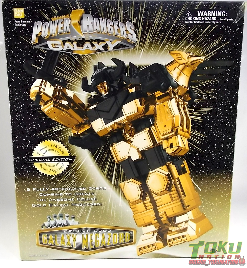 Yeah I can't quite get my head around it either. As far as Bandai America Black/Gold/Special release Megazords go this thing had only been the 2nd one released. Black & Gold Megazord came out here in 1994 and Gold Galaxy came out in 1999, quickly followed by the Astro Galactic Megazord. It's weird that for just the 2nd special release ever they waited nearly 5 years, and went with Lost Galaxy, AND used real 14K gold for the set. It's just wacky.