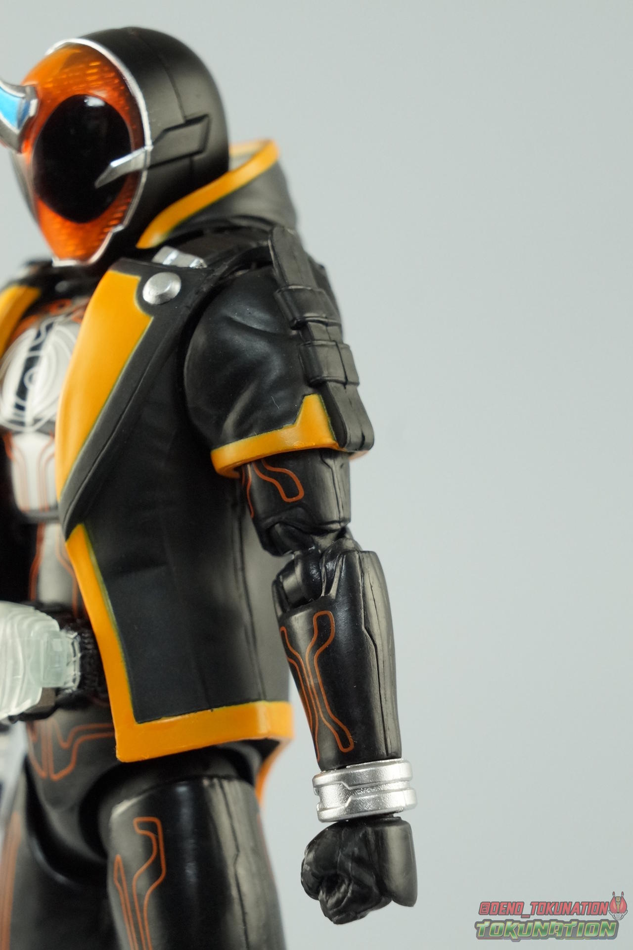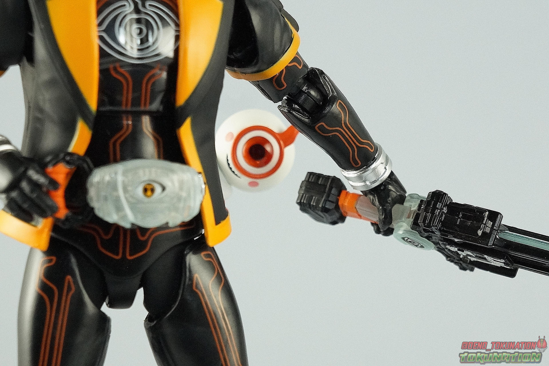I don't know how caught up on Ghost you are (and I'm a few weeks behind, myself, so perhaps you're even more so.) I was ready to give up on the show early on, but I felt it improved dramatically after its first story arc. It might be worth revisiting if you gave up. Then again, if you're caught up and still not liking it, I totally understand. The shoulders are so interesting. You can get perfect, gapless shoulder alignment, but only with the arms in specific positions. My only real complaints are the ankles and wrists, but that's not a complaint specific to this figure: MANY Figuarts suffer from hands molded in a way that limits how much you can do with the ball joint. Some Figuarts are perfect, but others are shockingly limited, and it's wholly unnecessary. Like you, I enjoy this figure significantly more than I'd expected, although it's not perfect. I'd nitpick the limited range of additional hands - non-SS Rider Figuarts have not been great about expressive hands, lately - but that clamshell is FULL. Still, I don't love the idea of waiting for an additional form to get should'a-been-basic hands like "focusing" hands. This is also the second release I've picked up that contained more accessories in a taped-on baggie, the other being Lord Baron. I'm not a fan, even though I see the necessity in both cases. My favorite part of your galleries is always the shots toward the end. So clever! |