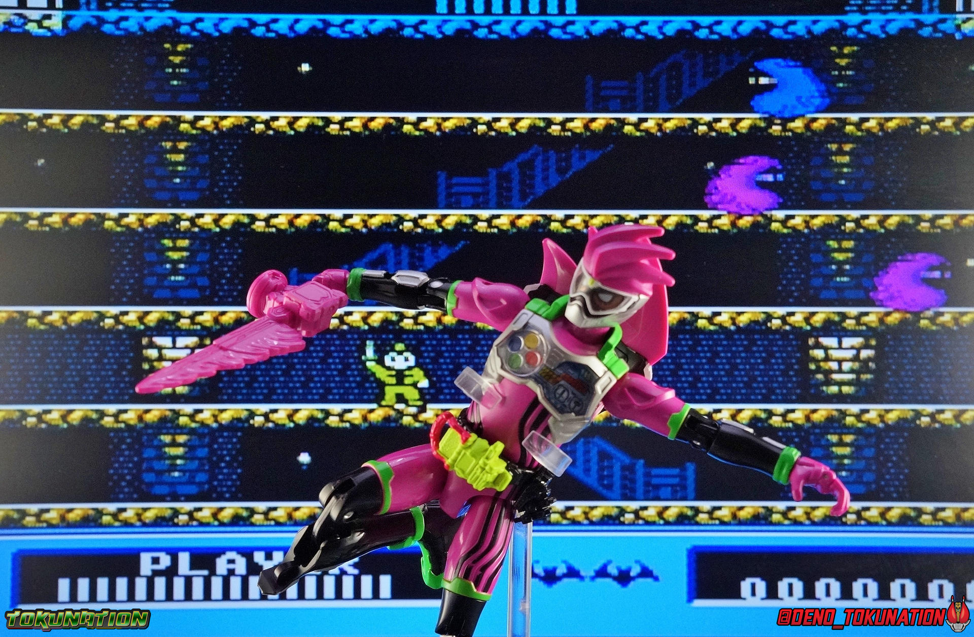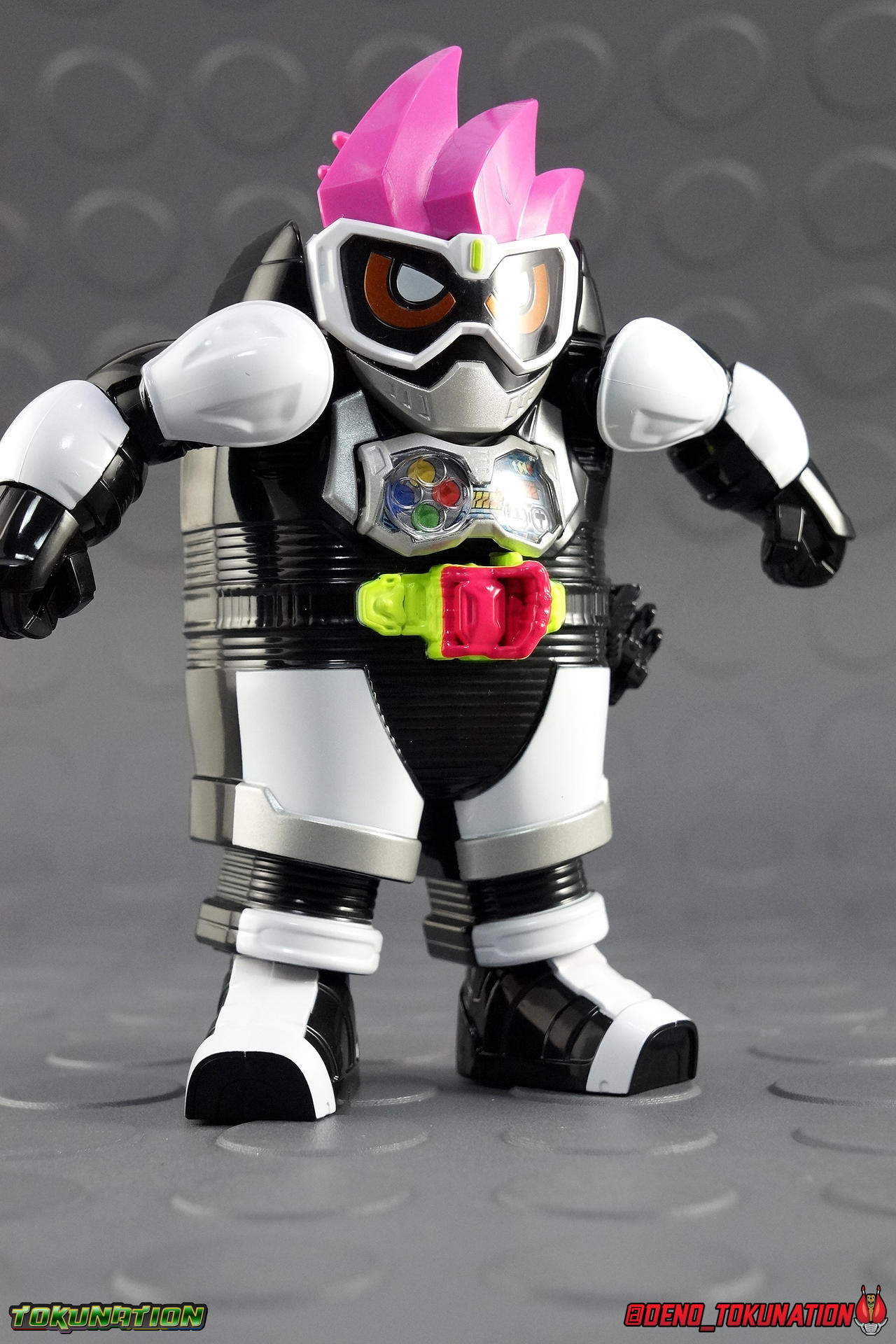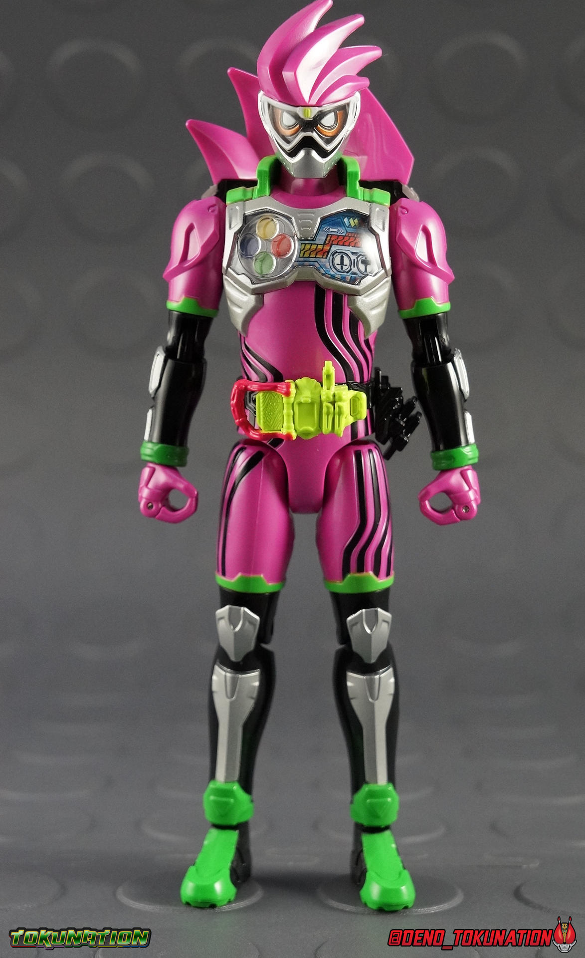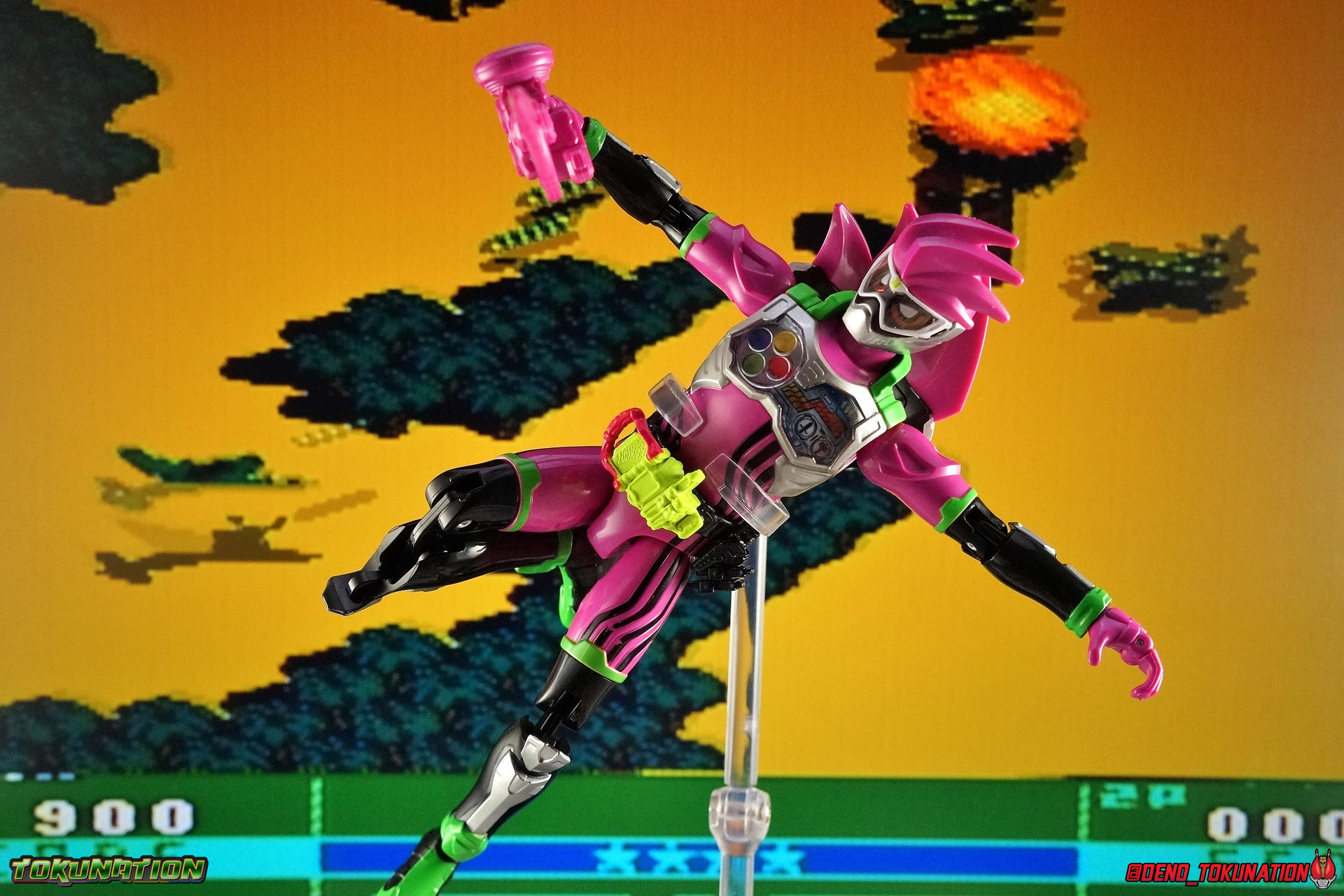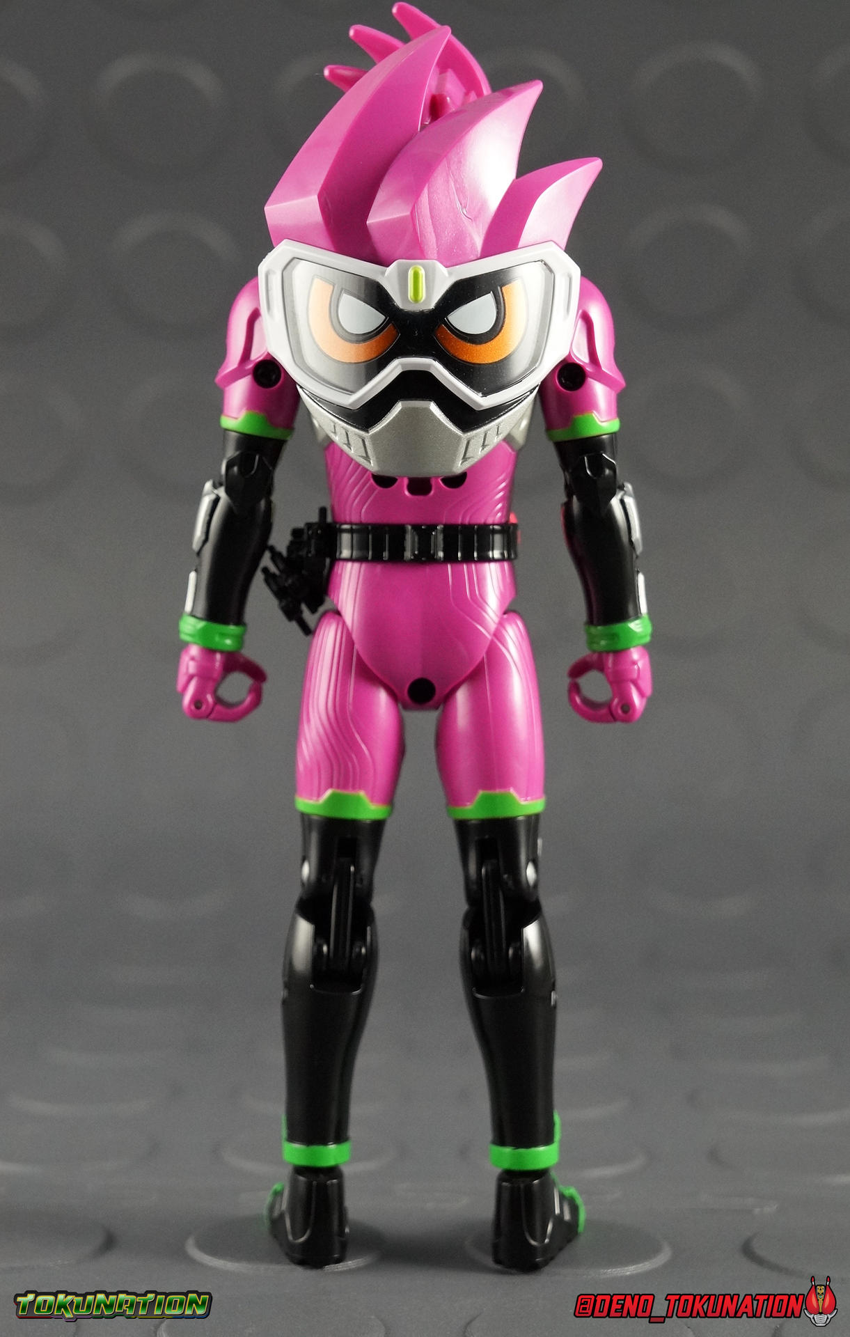 After what's seemed like forever, the first wave of Kamen Rider Ex-Aid merchandise has made it out into the wild and we now have our very first review of it! Kicking off our year with Ex-Aid we've got a gallery of the first release in the "gimmick line" of figures for this year. Level Up Rider (LVUR) 01 Kamen Rider Ex-Aid Level 1! To be accurate this figure is called that, but can transform into Ex-Aids more standard Level 2 form. Think of Level 1 as an equivalent to Kuuga Growing Form or Den-O Plat Form. A pre-form of sorts. ***This review will be split across 3 posts. Below I've taken a look at the Level 1 form on it's own as well then Level 2 after. Packaging For a series as wacky looking and themed as Ex-Aid the packaging is perfectly in line with it. Some nice 8-bit style graphics, bright gaudy colors, what you expect from this show. Though it is a little more toned down looking than I expected. I always enjoy a nice box design. Not much to discuss here otherwise, just the usual type of stock photos & packaging cross sells. Ex-Aid Level 1 (shell) The simplest part of this review focuses on the least complex piece of this set, Ex-Aid Level 1. We know now that Premium Bandai is going to be releasing what they've dubbed a Full Action version of the Level 1 figure. A fully poseable alternative to what we have here. And what we have here is a hollow shell that can't do much of anything. It can't even be bothered to look terribly accurate to the show design actually. Thanks in no small part to the gigantic open back half and the large black protruding panels that are meant to "hide" the core figure being plugged on the back. Level 1's articulation is entirely limited to the arms which rotate 360 on a rather loose ball joint. This is mostly useless though as they impact the shell a lot. Frankly they just aren't useful at all, they may as well have not even been articulated. The fists are also on a 360 swivel, but ultimately for no point. Seeing as the rest of the figure can't do anything, the arms can't emote enough to make Ex-Aid Level 1 look like he's doing much. I've included comparison shots of this form with vintage DX Superchange Kabutack & DX Magnet Change Robotack (in bot forms) below. This series' theme of SD forms that undergo super transformations into more humanoid ones clearly takes inspiration from these classic Metal Heroes. If only the toyline itself had taken more as well. This shell is pretty pathetic when compared to these 2 excellent 17 year old toys. Level 1 is ultimately kind of a nothing figure. What sucks even more is that Ex-Aid is the only rider from this series to include the Level 1 shell. If you buy any of the future LVUR releases you have to share their Level 1 forms with this figure. That's a pretty big miss for this years gimmick. More on that bellow. Ex-Aid Level 2 (Main Figure) Dai Henshin! Ex-Aid Level 2 is sort of the main event of this set. Generally these gimmick style figure that Bandai pumps out every year are the same at a base body level. And I think that can mostly be said for this year too. We have the rotating waste but no abs, the rotating shoulders with bicep swivel, the "2-digit" finger joints, the 45 degree hips and ball jointed ankles. What is new this year is the addition of double jointed knees. Now these were only implemented to accommodate the figure's transformation, generously so-called that. That joint helps you fold the legs up against the chest and connect Level 2 to the inside of the Level 1 shell. be careful however, when you press these legs up against themselves the black paint on the pink thighs can and will flake off easily. This figures also features several hard points for attaching later Level upgrades to the main body. But there's nothing to do with them currently. But frankly that's the only point where this figure really diverges from base gimmick figures we've had in previous lines. Ex-Aid Level 2 doesn't do anything else terribly original. The chest plate and Level 1 face are removable as is the Gamer Drive but 2 out of 3 of those are just for transformation purposes. The chest plat does look quite nice, the head has a great design as well. But this figure still suffers from weak hand joints and articulation cuts that are so close to being useful, but fall short. Legs that don't have a terribly great range already can't make use of the extra knee joint for much of anything. Much like the first entry in the Ghost Change line last year, this figure feels like it was poorly thought out, Bandai just needed something on the shelves. You can still get a decent range of motion out of it, but for the normal retail price of this set, 4536 yen, you may feel like you haven't gotten your monies' worth. Accessories Ex-Aid Level 1/2 includes only 2 accessories: 1 - Gashacon Breaker (Hammer Mode) 1 - Gashacon Breaker (Blade Mode) Neither of these accessories is properly painted, in fact they're each cast in 100% pink plastic. Not unusual at all for gimmick line figures. Just noticeable when it's a giant solid hunk of pink plastic. The Hammer is actually too heavy for the weak finger joints to maintain very well. It tends to fall out rather easily. The Blade is less of a nuisance but the weak joints strike again I'm afraid. Typical of this type of figure really. Final Thoughts Level Up Rider Ex-Aid Level 1 needed to do one thing to ensure this was a successful line, have a fun gimmick. Sadly it doesn't. Because the gimmick is never properly realized. It's no Armor Change, No Tire Koukan, it's not even Ghost Change. This gimmick has cross compatibility sure, but it's a total ripoff. In order to display the level 1 form of any other rider you need a shell, the shells only come with Ex-Aid himself. You'd need to buy this figure somewhere around 4 or 5 additional times right now. Between the figuarts 3-pack that features Ex-Aid Level 2 & the Premium Bandai Level 1 figure, the Level Up Rider series will probably be one of the more quickly