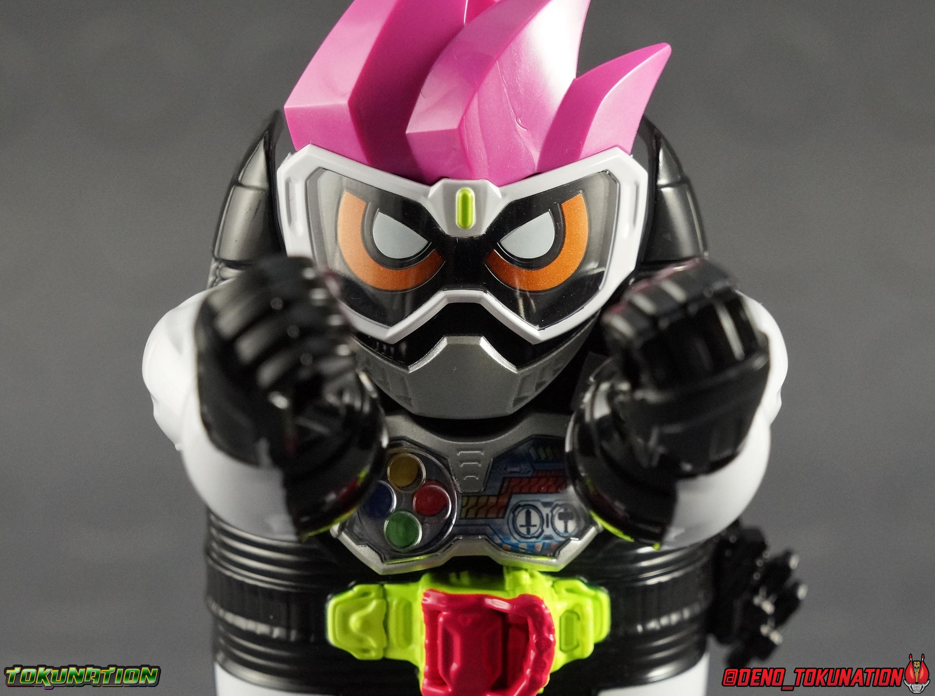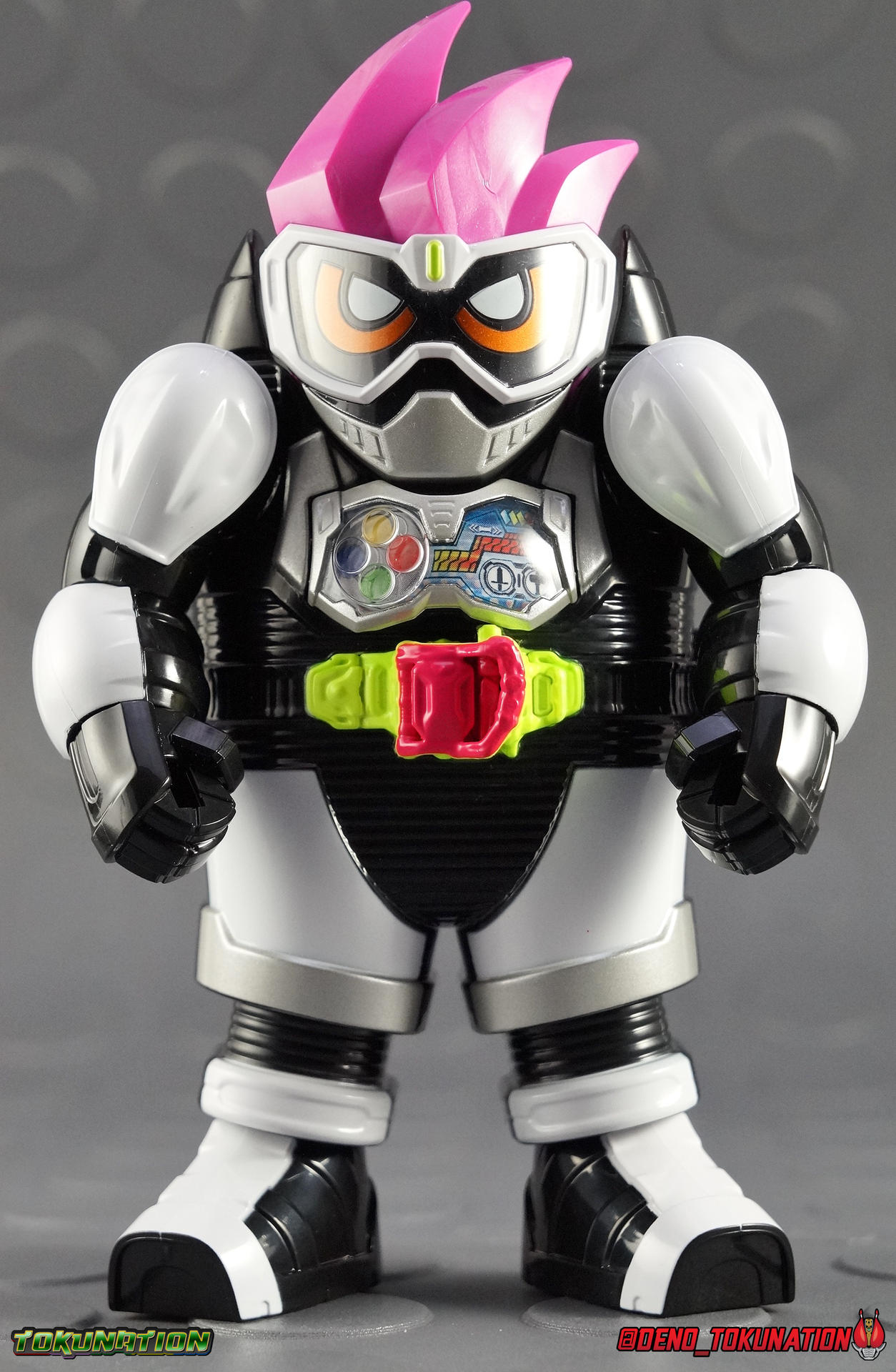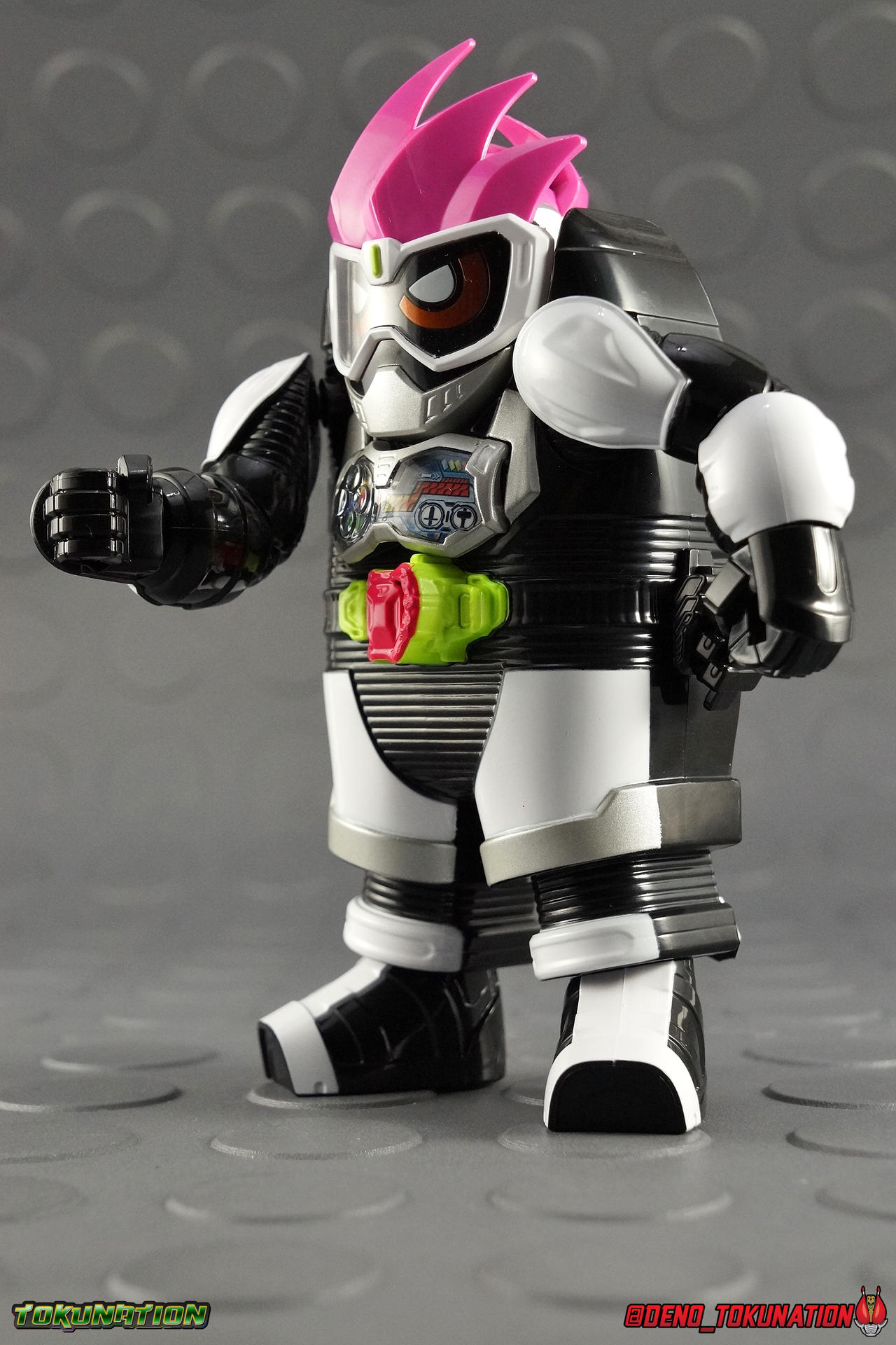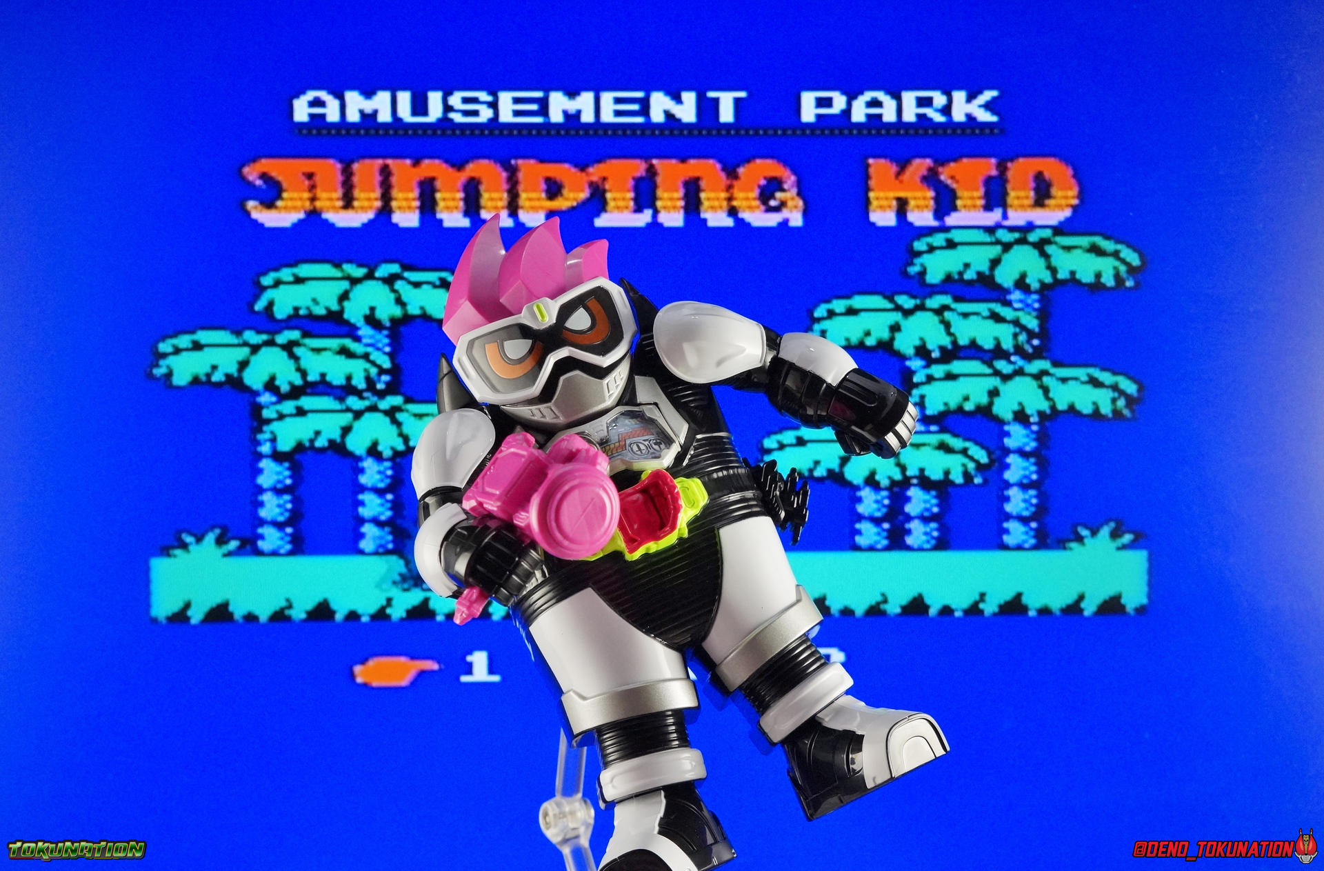 After what's seemed like forever, the first wave of Kamen Rider Ex-Aid merchandise has made it out into the wild and we now have our very first review of it! Kicking off our year with Ex-Aid we've got a gallery of the first release in the "gimmick line" of figures for this year. Level Up Rider (LVUR) 01 Kamen Rider Ex-Aid Level 1! To be accurate this figure is called that, but can transform into Ex-Aids more standard Level 2 form. Think of Level 1 as an equivalent to Kuuga Growing Form or Den-O Plat Form. A pre-form of sorts. ***This review will be split across 3 posts. Below I've taken a look at the Level 1 form on it's own as well then Level 2 after. Packaging For a series as wacky looking and themed as Ex-Aid the packaging is perfectly in line with it. Some nice 8-bit style graphics, bright gaudy colors, what you expect from this show. Though it is a little more toned down looking than I expected. I always enjoy a nice box design. Not much to discuss here otherwise, just the usual type of stock photos & packaging cross sells. Ex-Aid Level 1 (shell) The simplest part of this review focuses on the least complex piece of this set, Ex-Aid Level 1. We know now that Premium Bandai is going to be releasing what they've dubbed a Full Action version of the Level 1 figure. A fully poseable alternative to what we have here. And what we have here is a hollow shell that can't do much of anything. It can't even be bothered to look terribly accurate to the show design actually. Thanks in no small part to the gigantic open back half and the large black protruding panels that are meant to "hide" the core figure being plugged on the back. Level 1's articulation is entirely limited to the arms which rotate 360 on a rather loose ball joint. This is mostly useless though as they impact the shell a lot. Frankly they just aren't useful at all, they may as well have not even been articulated. The fists are also on a 360 swivel, but ultimately for no point. Seeing as the rest of the figure can't do anything, the arms can't emote enough to make Ex-Aid Level 1 look like he's doing much. I've included comparison shots of this form with vintage DX Superchange Kabutack & DX Magnet Change Robotack (in bot forms) below. This series' theme of SD forms that undergo super transformations into more humanoid ones clearly takes inspiration from these classic Metal Heroes. If only the toyline itself had taken more as well. This shell is pretty pathetic when compared to these 2 excellent 17 year old toys. Level 1 is ultimately kind of a nothing figure. What sucks even more is that Ex-Aid is the only rider from this series to include the Level 1 shell. If you buy any of the future LVUR releases you have to share their Level 1 forms with this figure. That's a pretty big miss for this years gimmick. More on that bellow. Ex-Aid Level 2 (Main Figure) Dai Henshin! Ex-Aid Level 2 is sort of the main event of this set. Generally these gimmick style figure that Bandai pumps out every year are the same at a base body level. And I think that can mostly be said for this year too. We have the rotating waste but no abs, the rotating shoulders with bicep swivel, the "2-digit" finger joints, the 45 degree hips and ball jointed ankles. What is new this year is the addition of double jointed knees. Now these were only implemented to accommodate the figure's transformation, generously so-called that. That joint helps you fold the legs up against the chest and connect Level 2 to the inside of the Level 1 shell. be careful however, when you press these legs up against themselves the black paint on the pink thighs can and will flake off easily. This figures also features several hard points for attaching later Level upgrades to the main body. But there's nothing to do with them currently. But frankly that's the only point where this figure really diverges from base gimmick figures we've had in previous lines. Ex-Aid Level 2 doesn't do anything else terribly original. The chest plate and Level 1 face are removable as is the Gamer Drive but 2 out of 3 of those are just for transformation purposes. The chest plat does look quite nice, the head has a great design as well. But this figure still suffers from weak hand joints and articulation cuts that are so close to being useful, but fall short. Legs that don't have a terribly great range already can't make use of the extra knee joint for much of anything. Much like the first entry in the Ghost Change line last year, this figure feels like it was poorly thought out, Bandai just needed something on the shelves. You can still get a decent range of motion out of it, but for the normal retail price of this set, 4536 yen, you may feel like you haven't gotten your monies' worth. Accessories Ex-Aid Level 1/2 includes only 2 accessories: 1 - Gashacon Breaker (Hammer Mode) 1 - Gashacon Breaker (Blade Mode) Neither of these accessories is properly painted, in fact they're each cast in 100% pink plastic. Not unusual at all for gimmick line figures. Just noticeable when it's a giant solid hunk of pink plastic. The Hammer is actually too heavy for the weak finger joints to maintain very well. It tends to fall out rather easily. The Blade is less of a nuisance but the weak joints strike again I'm afraid. Typical of this type of figure really. Final Thoughts Level Up Rider Ex-Aid Level 1 needed to do one thing to ensure this was a successful line, have a fun gimmick. Sadly it doesn't. Because the gimmick is never properly realized. It's no Armor Change, No Tire Koukan, it's not even Ghost Change. This gimmick has cross compatibility sure, but it's a total ripoff. In order to display the level 1 form of any other rider you need a shell, the shells only come with Ex-Aid himself. You'd need to buy this figure somewhere around 4 or 5 additional times right now. Between the figuarts 3-pack that features Ex-Aid Level 2 & the Premium Bandai Level 1 figure, the Level Up Rider series will probably be one of the more quickly