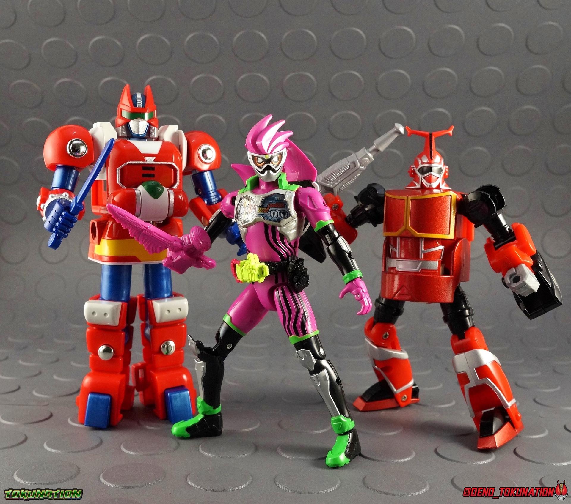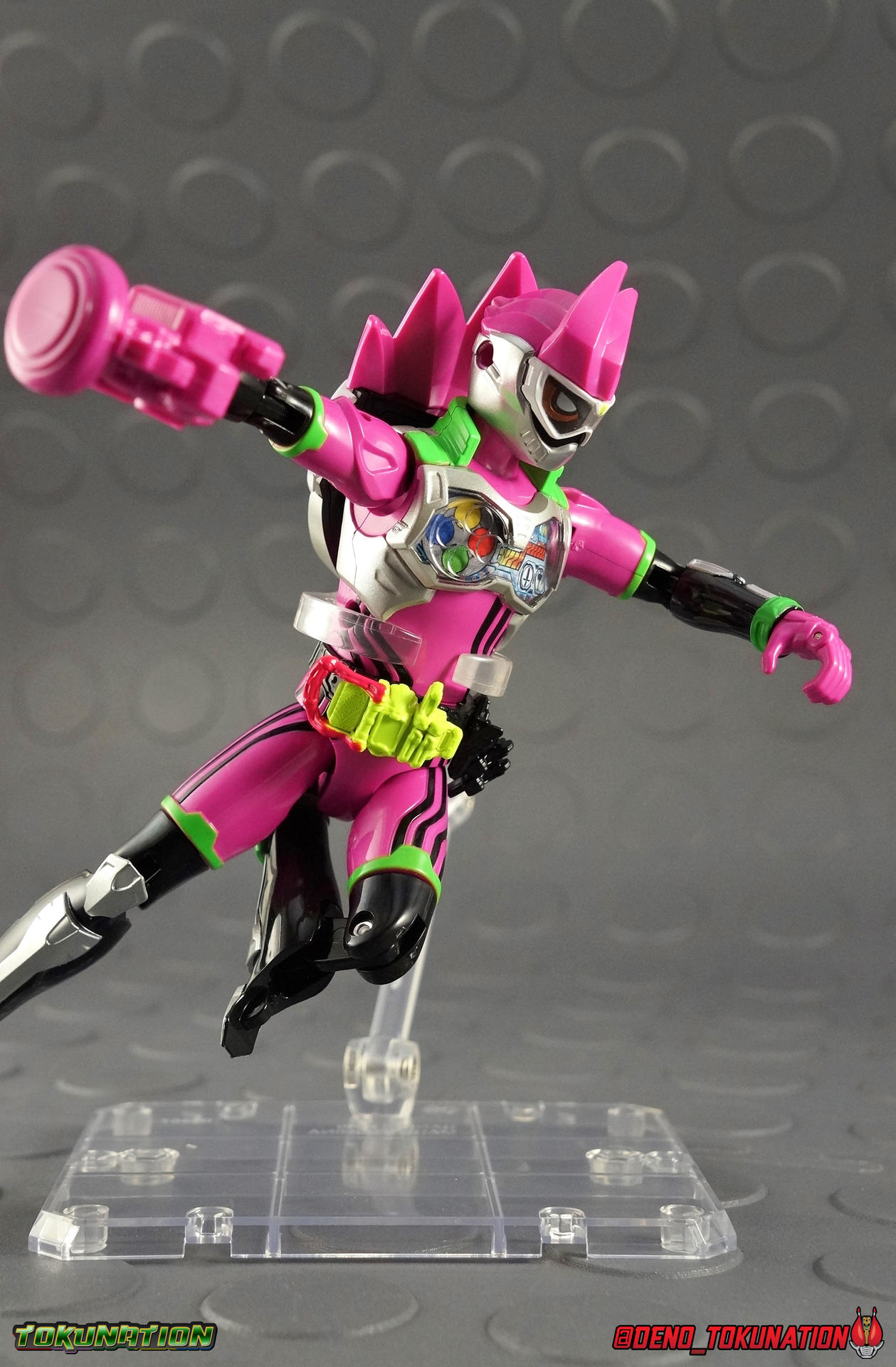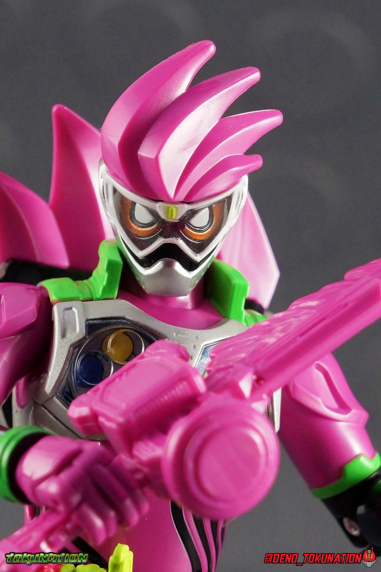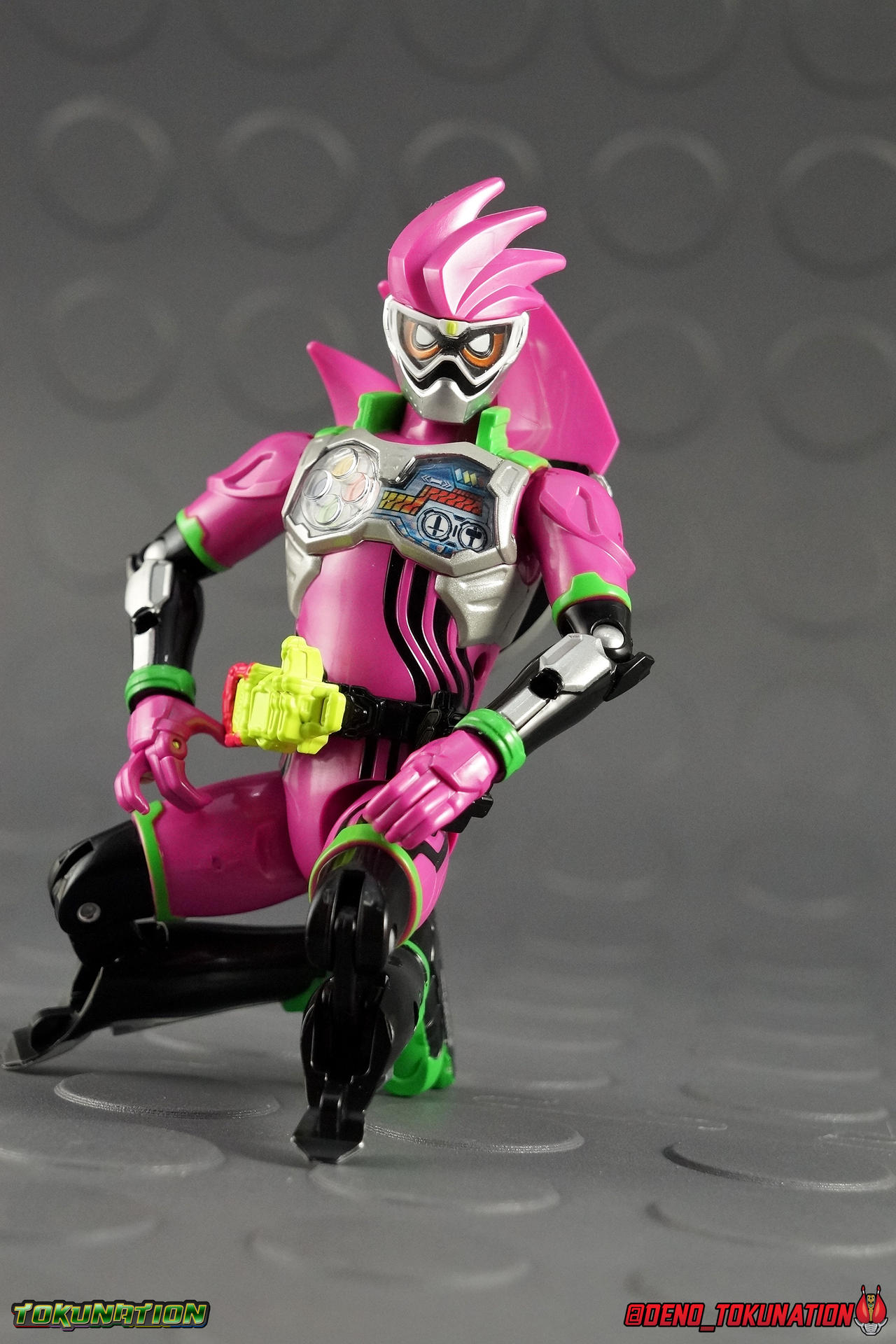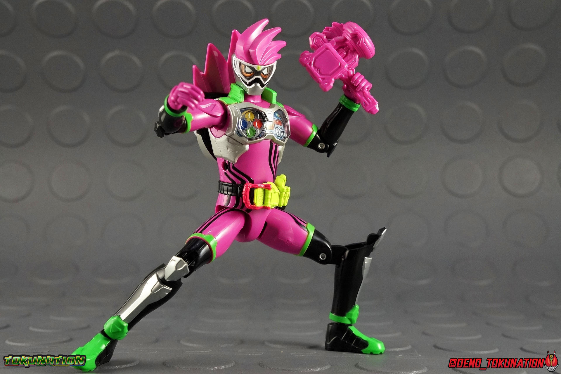 After what's seemed like forever, the first wave of Kamen Rider Ex-Aid merchandise has made it out into the wild and we now have our very first review of it! Kicking off our year with Ex-Aid we've got a gallery of the first release in the "gimmick line" of figures for this year. Level Up Rider (LVUR) 01 Kamen Rider Ex-Aid Level 1! To be accurate this figure is called that, but can transform into Ex-Aids more standard Level 2 form. Think of Level 1 as an equivalent to Kuuga Growing Form or Den-O Plat Form. A pre-form of sorts. ***This review will be split across 3 posts. Below I've taken a look at the Level 1 form on it's own as well then Level 2 after. Packaging For a series as wacky looking and themed as Ex-Aid the packaging is perfectly in line with it. Some nice 8-bit style graphics, bright gaudy colors, what you expect from this show. Though it is a little more toned down looking than I expected. I always enjoy a nice box design. Not much to discuss here otherwise, just the usual type of stock photos & packaging cross sells. Ex-Aid Level 1 (shell) The simplest part of this review focuses on the least complex piece of this set, Ex-Aid Level 1. We know now that Premium Bandai is going to be releasing what they've dubbed a Full Action version of the Level 1 figure. A fully poseable alternative to what we have here. And what we have here is a hollow shell that can't do much of anything. It can't even be bothered to look terribly accurate to the show design actually. Thanks in no small part to the gigantic open back half and the large black protruding panels that are meant to "hide" the core figure being plugged on the back. Level 1's articulation is entirely limited to the arms which rotate 360 on a rather loose ball joint. This is mostly useless though as they impact the shell a lot. Frankly they just aren't useful at all, they may as well have not even been articulated. The fists are also on a 360 swivel, but ultimately for no point. Seeing as the rest of the figure can't do anything, the arms can't emote enough to make Ex-Aid Level 1 look like he's doing much. I've included comparison shots of this form with vintage DX Superchange Kabutack & DX Magnet Change Robotack (in bot forms) below. This series' theme of SD forms that undergo super transformations into more humanoid ones clearly takes inspiration from these classic Metal Heroes. If only the toyline itself had taken more as well. This shell is pretty pathetic when compared to these 2 excellent 17 year old toys. Level 1 is ultimately kind of a nothing figure. What sucks even more is that Ex-Aid is the only rider from this series to include the Level 1 shell. If you buy any of the future LVUR releases you have to share their Level 1 forms with this figure. That's a pretty big miss for this years gimmick. More on that bellow. Ex-Aid Level 2 (Main Figure) Dai Henshin! Ex-Aid Level 2 is sort of the main event of this set. Generally these gimmick style figure that Bandai pumps out every year are the same at a base body level. And I think that can mostly be said for this year too. We have the rotating waste but no abs, the rotating shoulders with bicep swivel, the "2-digit" finger joints, the 45 degree hips and ball jointed ankles. What is new this year is the addition of double jointed knees. Now these were only implemented to accommodate the figure's transformation, generously so-called that. That joint helps you fold the legs up against the chest and connect Level 2 to the inside of the Level 1 shell. be careful however, when you press these legs up against themselves the black paint on the pink thighs can and will flake off easily. This figures also features several hard points for attaching later Level upgrades to the main body. But there's nothing to do with them currently. But frankly that's the only point where this figure really diverges from base gimmick figures we've had in previous lines. Ex-Aid Level 2 doesn't do anything else terribly original. The chest plate and Level 1 face are removable as is the Gamer Drive but 2 out of 3 of those are just for transformation purposes. The chest plat does look quite nice, the head has a great design as well. But this figure still suffers from weak hand joints and articulation cuts that are so close to being useful, but fall short. Legs that don't have a terribly great range already can't make use of the extra knee joint for much of anything. Much like the first entry in the Ghost Change line last year, this figure feels like it was poorly thought out, Bandai just needed something on the shelves. You can still get a decent range of motion out of it, but for the normal retail price of this set, 4536 yen, you may feel like you haven't gotten your monies' worth. Accessories Ex-Aid Level 1/2 includes only 2 accessories: 1 - Gashacon Breaker (Hammer Mode) 1 - Gashacon Breaker (Blade Mode) Neither of these accessories is properly painted, in fact they're each cast in 100% pink plastic. Not unusual at all for gimmick line figures. Just noticeable when it's a giant solid hunk of pink plastic. The Hammer is actually too heavy for the weak finger joints to maintain very well. It tends to fall out rather easily. The Blade is less of a nuisance but the weak joints strike again I'm afraid. Typical of this type of figure really. Final Thoughts Level Up Rider Ex-Aid Level 1 needed to do one thing to ensure this was a successful line, have a fun gimmick. Sadly it doesn't. Because the gimmick is never properly realized. It's no Armor Change, No Tire Koukan, it's not even Ghost Change. This gimmick has cross compatibility sure, but it's a total ripoff. In order to display the level 1 form of any other rider you need a shell, the shells only come with Ex-Aid himself. You'd need to buy this figure somewhere around 4 or 5 additional times right now. Between the figuarts 3-pack that features Ex-Aid Level 2 & the Premium Bandai Level 1 figure, the Level Up Rider series will probably be one of the more quickly