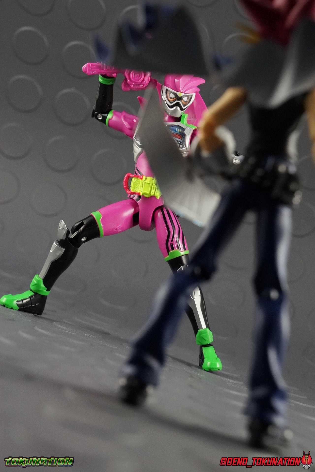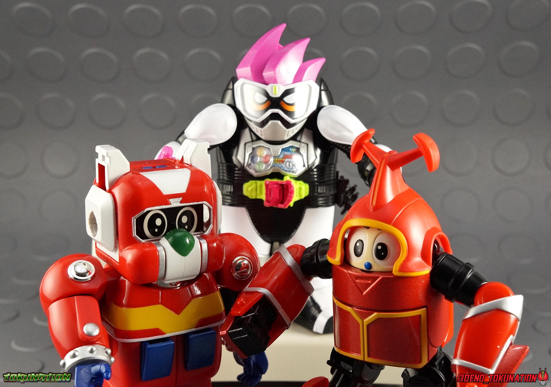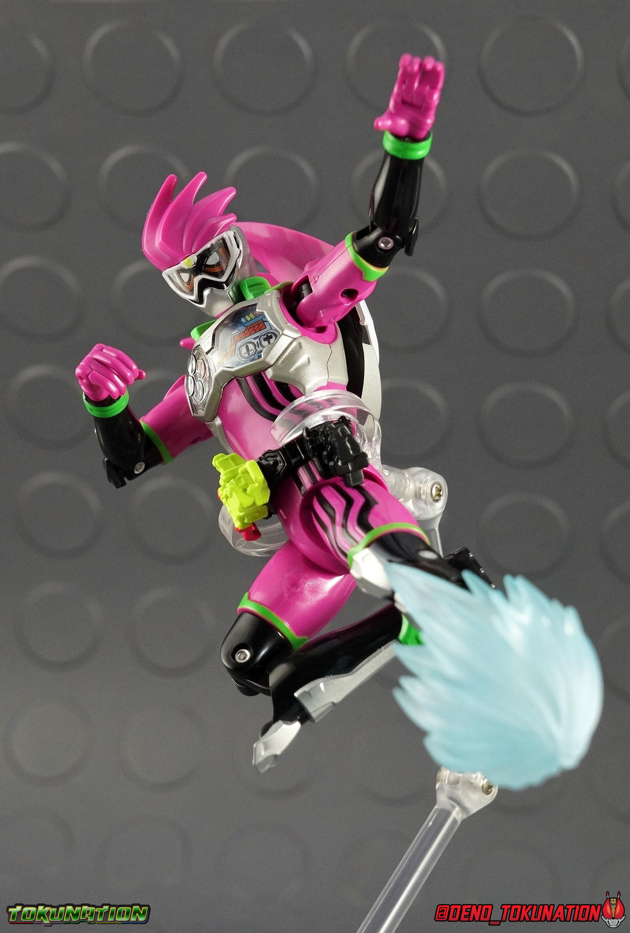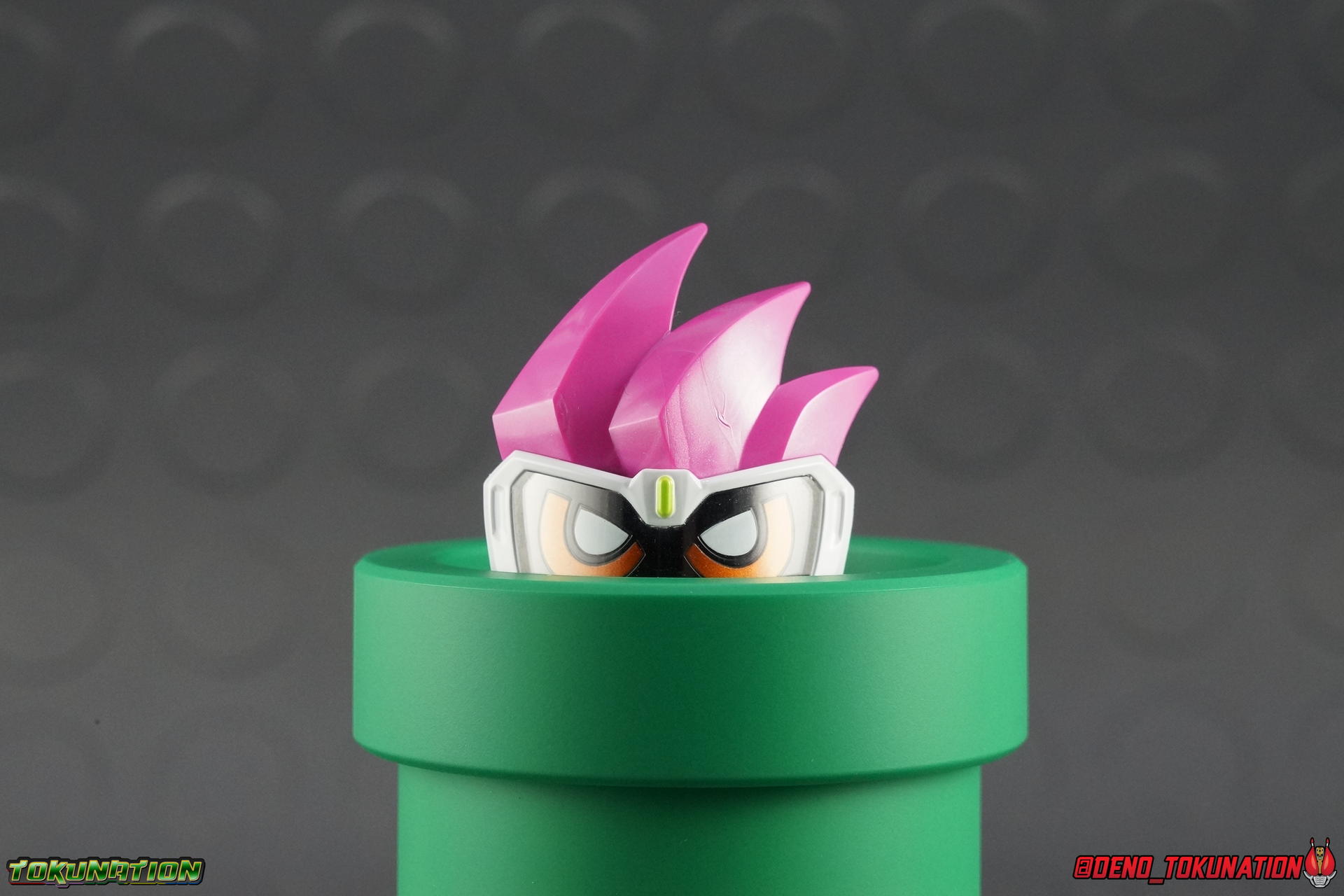 After what's seemed like forever, the first wave of Kamen Rider Ex-Aid merchandise has made it out into the wild and we now have our very first review of it! Kicking off our year with Ex-Aid we've got a gallery of the first release in the "gimmick line" of figures for this year. Level Up Rider (LVUR) 01 Kamen Rider Ex-Aid Level 1! To be accurate this figure is called that, but can transform into Ex-Aids more standard Level 2 form. Think of Level 1 as an equivalent to Kuuga Growing Form or Den-O Plat Form. A pre-form of sorts. ***This review will be split across 3 posts. Below I've taken a look at the Level 1 form on it's own as well then Level 2 after. Packaging For a series as wacky looking and themed as Ex-Aid the packaging is perfectly in line with it. Some nice 8-bit style graphics, bright gaudy colors, what you expect from this show. Though it is a little more toned down looking than I expected. I always enjoy a nice box design. Not much to discuss here otherwise, just the usual type of stock photos & packaging cross sells. Ex-Aid Level 1 (shell) The simplest part of this review focuses on the least complex piece of this set, Ex-Aid Level 1. We know now that Premium Bandai is going to be releasing what they've dubbed a Full Action version of the Level 1 figure. A fully poseable alternative to what we have here. And what we have here is a hollow shell that can't do much of anything. It can't even be bothered to look terribly accurate to the show design actually. Thanks in no small part to the gigantic open back half and the large black protruding panels that are meant to "hide" the core figure being plugged on the back. Level 1's articulation is entirely limited to the arms which rotate 360 on a rather loose ball joint. This is mostly useless though as they impact the shell a lot. Frankly they just aren't useful at all, they may as well have not even been articulated. The fists are also on a 360 swivel, but ultimately for no point. Seeing as the rest of the figure can't do anything, the arms can't emote enough to make Ex-Aid Level 1 look like he's doing much. I've included comparison shots of this form with vintage DX Superchange Kabutack & DX Magnet Change Robotack (in bot forms) below. This series' theme of SD forms that undergo super transformations into more humanoid ones clearly takes inspiration from these classic Metal Heroes. If only the toyline itself had taken more as well. This shell is pretty pathetic when compared to these 2 excellent 17 year old toys. Level 1 is ultimately kind of a nothing figure. What sucks even more is that Ex-Aid is the only rider from this series to include the Level 1 shell. If you buy any of the future LVUR releases you have to share their Level 1 forms with this figure. That's a pretty big miss for this years gimmick. More on that bellow. Ex-Aid Level 2 (Main Figure) Dai Henshin! Ex-Aid Level 2 is sort of the main event of this set. Generally these gimmick style figure that Bandai pumps out every year are the same at a base body level. And I think that can mostly be said for this year too. We have the rotating waste but no abs, the rotating shoulders with bicep swivel, the "2-digit" finger joints, the 45 degree hips and ball jointed ankles. What is new this year is the addition of double jointed knees. Now these were only implemented to accommodate the figure's transformation, generously so-called that. That joint helps you fold the legs up against the chest and connect Level 2 to the inside of the Level 1 shell. be careful however, when you press these legs up against themselves the black paint on the pink thighs can and will flake off easily. This figures also features several hard points for attaching later Level upgrades to the main body. But there's nothing to do with them currently. But frankly that's the only point where this figure really diverges from base gimmick figures we've had in previous lines. Ex-Aid Level 2 doesn't do anything else terribly original. The chest plate and Level 1 face are removable as is the Gamer Drive but 2 out of 3 of those are just for transformation purposes. The chest plat does look quite nice, the head has a great design as well. But this figure still suffers from weak hand joints and articulation cuts that are so close to being useful, but fall short. Legs that don't have a terribly great range already can't make use of the extra knee joint for much of anything. Much like the first entry in the Ghost Change line last year, this figure feels like it was poorly thought out, Bandai just needed something on the shelves. You can still get a decent range of motion out of it, but for the normal retail price of this set, 4536 yen, you may feel like you haven't gotten your monies' worth. Accessories Ex-Aid Level 1/2 includes only 2 accessories: 1 - Gashacon Breaker (Hammer Mode) 1 - Gashacon Breaker (Blade Mode) Neither of these accessories is properly painted, in fact they're each cast in 100% pink plastic. Not unusual at all for gimmick line figures. Just noticeable when it's a giant solid hunk of pink plastic. The Hammer is actually too heavy for the weak finger joints to maintain very well. It tends to fall out rather easily. The Blade is less of a nuisance but the weak joints strike again I'm afraid. Typical of this type of figure really. Final Thoughts Level Up Rider Ex-Aid Level 1 needed to do one thing to ensure this was a successful line, have a fun gimmick. Sadly it doesn't. Because the gimmick is never properly realized. It's no Armor Change, No Tire Koukan, it's not even Ghost Change. This gimmick has cross compatibility sure, but it's a total ripoff. In order to display the level 1 form of any other rider you need a shell, the shells only come with Ex-Aid himself. You'd need to buy this figure somewhere around 4 or 5 additional times right now. Between the figuarts 3-pack that features Ex-Aid Level 2 & the Premium Bandai Level 1 figure, the Level Up Rider series will probably be one of the more quickly