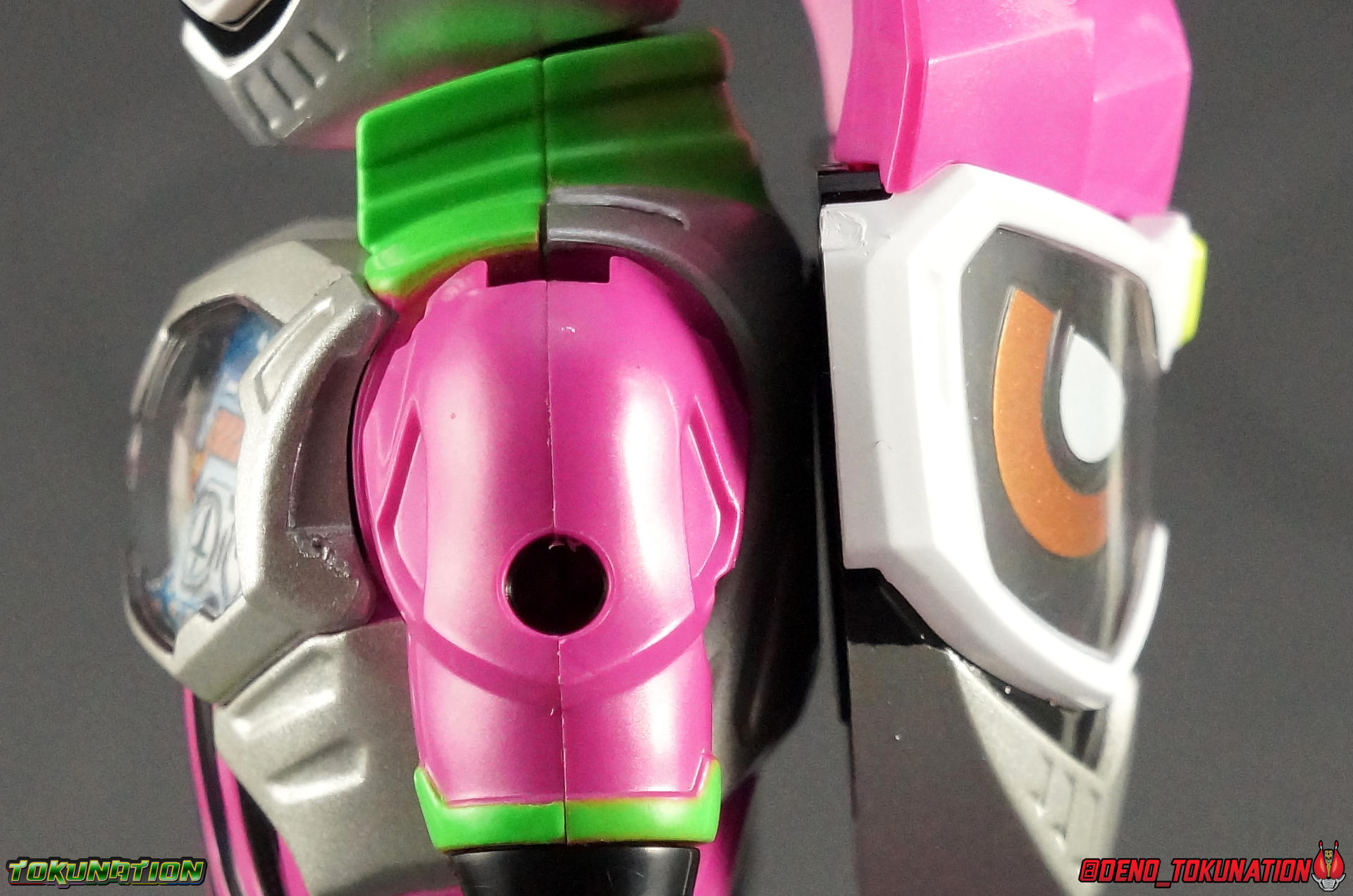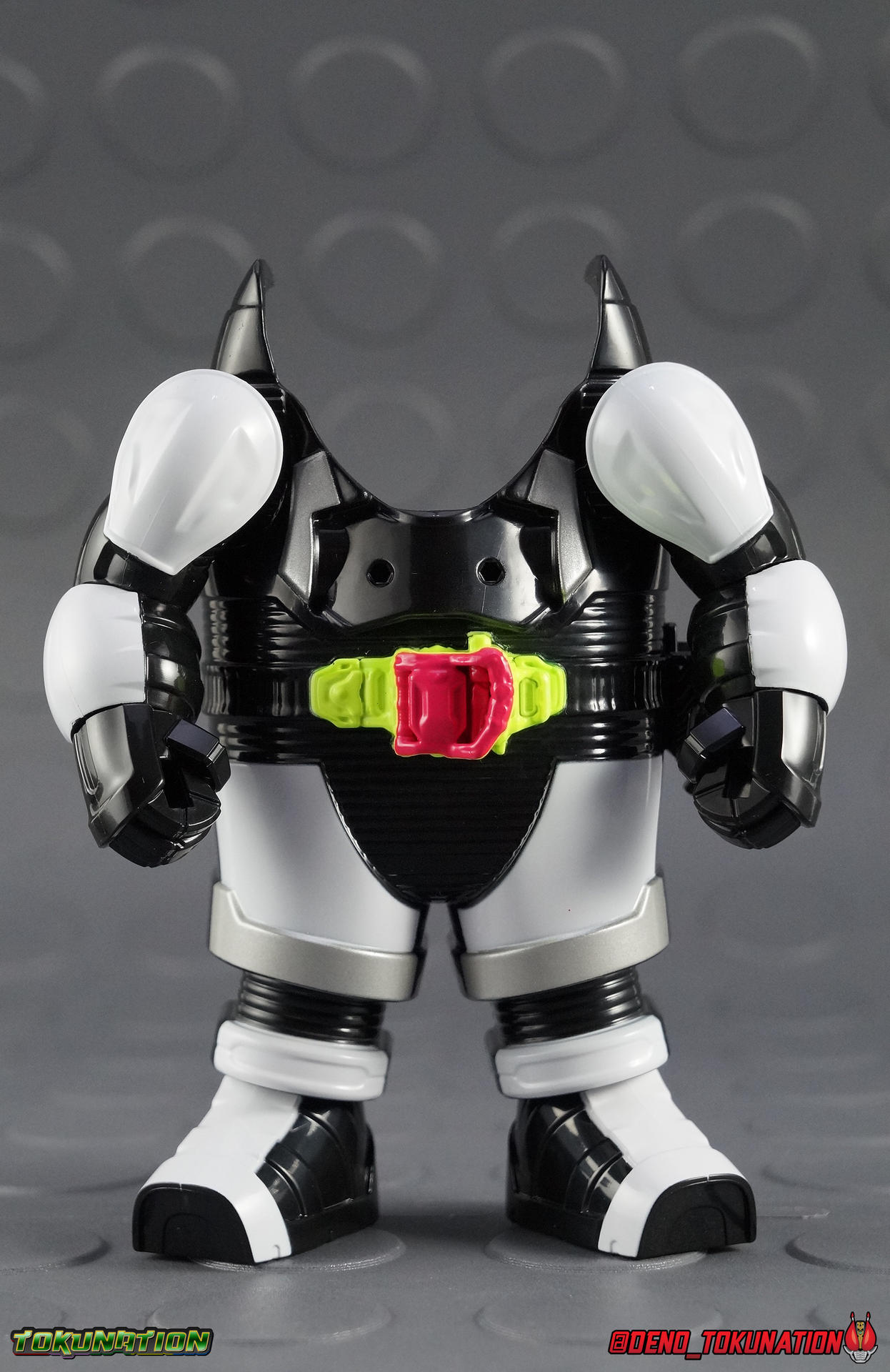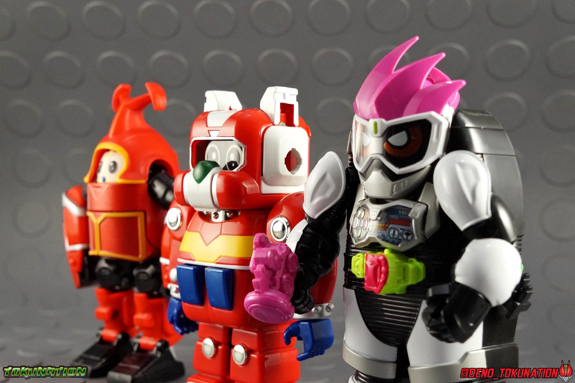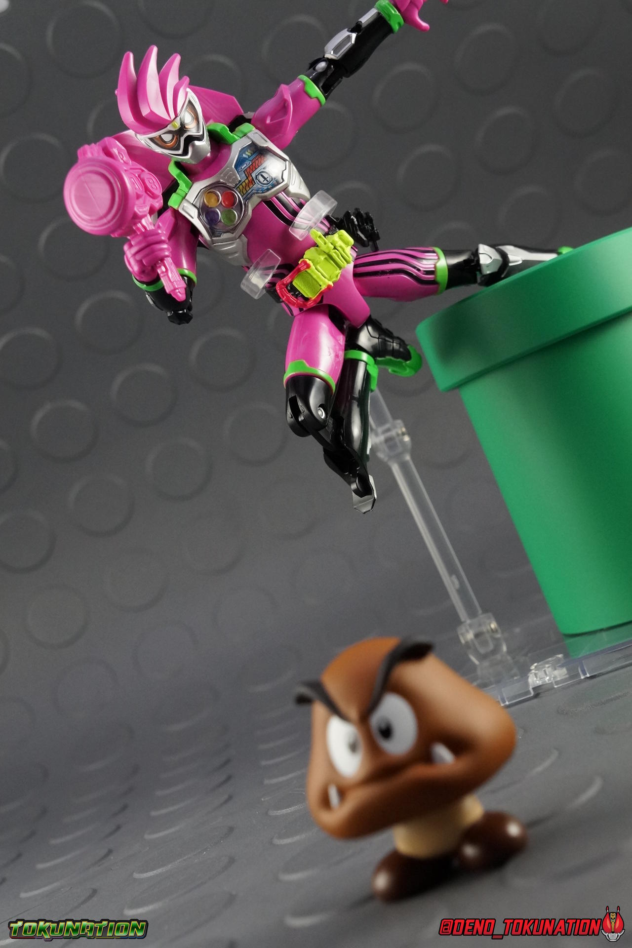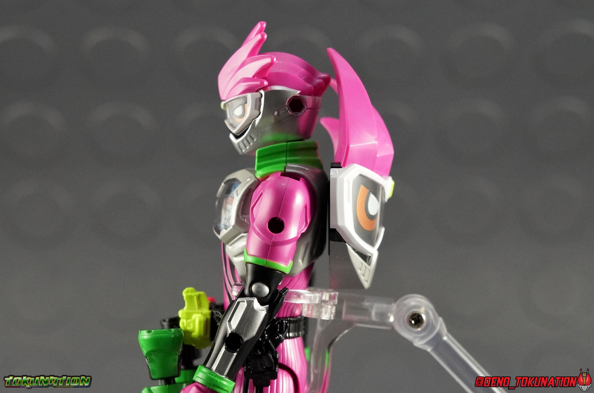 After what's seemed like forever, the first wave of Kamen Rider Ex-Aid merchandise has made it out into the wild and we now have our very first review of it! Kicking off our year with Ex-Aid we've got a gallery of the first release in the "gimmick line" of figures for this year. Level Up Rider (LVUR) 01 Kamen Rider Ex-Aid Level 1! To be accurate this figure is called that, but can transform into Ex-Aids more standard Level 2 form. Think of Level 1 as an equivalent to Kuuga Growing Form or Den-O Plat Form. A pre-form of sorts. ***This review will be split across 3 posts. Below I've taken a look at the Level 1 form on it's own as well then Level 2 after. Packaging For a series as wacky looking and themed as Ex-Aid the packaging is perfectly in line with it. Some nice 8-bit style graphics, bright gaudy colors, what you expect from this show. Though it is a little more toned down looking than I expected. I always enjoy a nice box design. Not much to discuss here otherwise, just the usual type of stock photos & packaging cross sells. Ex-Aid Level 1 (shell) The simplest part of this review focuses on the least complex piece of this set, Ex-Aid Level 1. We know now that Premium Bandai is going to be releasing what they've dubbed a Full Action version of the Level 1 figure. A fully poseable alternative to what we have here. And what we have here is a hollow shell that can't do much of anything. It can't even be bothered to look terribly accurate to the show design actually. Thanks in no small part to the gigantic open back half and the large black protruding panels that are meant to "hide" the core figure being plugged on the back. Level 1's articulation is entirely limited to the arms which rotate 360 on a rather loose ball joint. This is mostly useless though as they impact the shell a lot. Frankly they just aren't useful at all, they may as well have not even been articulated. The fists are also on a 360 swivel, but ultimately for no point. Seeing as the rest of the figure can't do anything, the arms can't emote enough to make Ex-Aid Level 1 look like he's doing much. I've included comparison shots of this form with vintage DX Superchange Kabutack & DX Magnet Change Robotack (in bot forms) below. This series' theme of SD forms that undergo super transformations into more humanoid ones clearly takes inspiration from these classic Metal Heroes. If only the toyline itself had taken more as well. This shell is pretty pathetic when compared to these 2 excellent 17 year old toys. Level 1 is ultimately kind of a nothing figure. What sucks even more is that Ex-Aid is the only rider from this series to include the Level 1 shell. If you buy any of the future LVUR releases you have to share their Level 1 forms with this figure. That's a pretty big miss for this years gimmick. More on that bellow. Ex-Aid Level 2 (Main Figure) Dai Henshin! Ex-Aid Level 2 is sort of the main event of this set. Generally these gimmick style figure that Bandai pumps out every year are the same at a base body level. And I think that can mostly be said for this year too. We have the rotating waste but no abs, the rotating shoulders with bicep swivel, the "2-digit" finger joints, the 45 degree hips and ball jointed ankles. What is new this year is the addition of double jointed knees. Now these were only implemented to accommodate the figure's transformation, generously so-called that. That joint helps you fold the legs up against the chest and connect Level 2 to the inside of the Level 1 shell. be careful however, when you press these legs up against themselves the black paint on the pink thighs can and will flake off easily. This figures also features several hard points for attaching later Level upgrades to the main body. But there's nothing to do with them currently. But frankly that's the only point where this figure really diverges from base gimmick figures we've had in previous lines. Ex-Aid Level 2 doesn't do anything else terribly original. The chest plate and Level 1 face are removable as is the Gamer Drive but 2 out of 3 of those are just for transformation purposes. The chest plat does look quite nice, the head has a great design as well. But this figure still suffers from weak hand joints and articulation cuts that are so close to being useful, but fall short. Legs that don't have a terribly great range already can't make use of the extra knee joint for much of anything. Much like the first entry in the Ghost Change line last year, this figure feels like it was poorly thought out, Bandai just needed something on the shelves. You can still get a decent range of motion out of it, but for the normal retail price of this set, 4536 yen, you may feel like you haven't gotten your monies' worth. Accessories Ex-Aid Level 1/2 includes only 2 accessories: 1 - Gashacon Breaker (Hammer Mode) 1 - Gashacon Breaker (Blade Mode) Neither of these accessories is properly painted, in fact they're each cast in 100% pink plastic. Not unusual at all for gimmick line figures. Just noticeable when it's a giant solid hunk of pink plastic. The Hammer is actually too heavy for the weak finger joints to maintain very well. It tends to fall out rather easily. The Blade is less of a nuisance but the weak joints strike again I'm afraid. Typical of this type of figure really. Final Thoughts Level Up Rider Ex-Aid Level 1 needed to do one thing to ensure this was a successful line, have a fun gimmick. Sadly it doesn't. Because the gimmick is never properly realized. It's no Armor Change, No Tire Koukan, it's not even Ghost Change. This gimmick has cross compatibility sure, but it's a total ripoff. In order to display the level 1 form of any other rider you need a shell, the shells only come with Ex-Aid himself. You'd need to buy this figure somewhere around 4 or 5 additional times right now. Between the figuarts 3-pack that features Ex-Aid Level 2 & the Premium Bandai Level 1 figure, the Level Up Rider series will probably be one of the more quickly