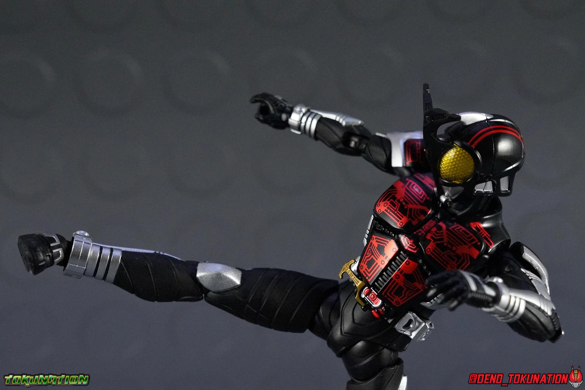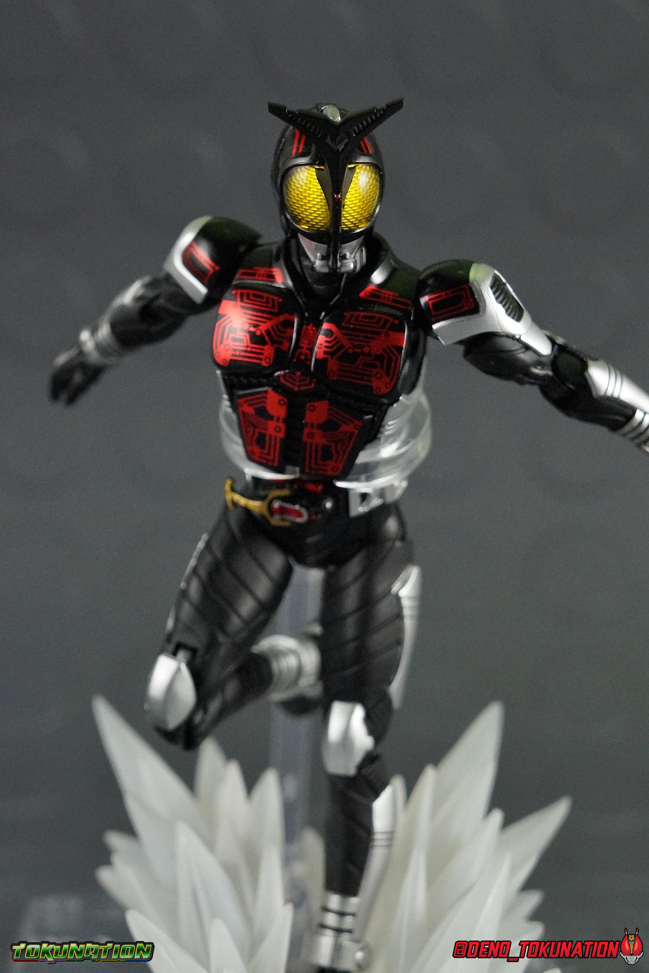 Late last month we took a look back at an older release in anticipation of this one. Several years ago the original S.H. Figuarts Kamen Rider Dark Kabuto was released. An inferior figure fitting for a time when this line had yet to achieve the levels of accuracy and proportionality that it has today. The original Dark Kabuto suffered from all the ailments of the original Kabuto line. But now we get to examine the long awaited successor to that figuart, today's subject is S.H. Figuarts Shinkocchou Seihou Kamen Rider Dark Kabuto! Packaging The wonderful premium Shinkocchou Seihou packaging returns! If you've seen either of my recent reviews for Seihou Kuuga Ultimate or Seihou Gattack then you know I love this packaging, but it also isn't very different from release to release. Main Figure Frankly this review will be very similar to that of Seihou Kabuto (which I reviewed well over 2 years ago) and my Seihou Gattack review from earlier this month. Dark Kabuto shares the exact same basic body with both of these releases. But of course is most similar to Kabuto as a straight up repaint of him. Looking back at my review of the original Dark Kabuto release there were some big & persistent issues. Issues that make those original Kabuto figures kind of eyesores in a modern collection. Straight to the point Shinkocchou Seihou Dark Kabuto fixes every single one of them and looks dead on show accurate while doing it. Even after this molds' 3rd outing (with possibly 2 more coming up in the teased Hooper Bros) it still brings the S.H. Figuarts lines' A-game. Unlike Gattack, I wasn't particularly excited for Dark Kabuto. More just perplexed that it took 2 years to get such an easy repaint to release. But I still couldn't be happier with this figuart. Just like Kabuto, the articulation is nuts on this thing. The style of hips originally implemented in this mold provide a wide and balanced motion that allows you to replicate some of Dark Kabuto's most iconic poses & attacks. Though I do still think any standing kick looks pretty goofy in figure form. I would say the hips are limited only by their design as they do impact the waist assembly a little more prematurely than I'd like. The arms are free of nearly all obstruction thanks to wonderfully hinged shoulder pads. The waist/ab area has incredible flexibility as well. The lower abdominal plate can actually angle out & forward a decent amount which is still weird but really cool. The pectoral plates can also twist and angle up in a way that I can't say I've found beneficial yet, but is still really interesting. The same type of peg style hands featured on Kabuto & Gattack are present here. They're still odd, I still don't like them, and I still don't get why they are so infrequently used. Not every S.S. Figuart has them, just the Kabuto line releases. And both Gattack & Dark Kabuto don't even include the hand tree to store them. As I said way back when with Kabuto, I just don't the benefit of this type of hand. They're fine, they get the job done, but I can't help but feel something is lost without a ball joint in the wrist. But that's a very minor nitpick I have with these figures. The final redeaming traits of this release, that truly set it light years ahead of the original release are the paint apps and the head. The intricate panel details on the front and back torso armor are just fantastic. The original release painted these red lines in a very flat red, whereas here Bandai has opted for a very nice metallic color. And the designs themselves appear to be much more accurate this time. As for the head, wow. Just like S.S. Kabuto this head is dead on. The original Kabuto & Dark Kabuto releases had undersized, narrow & improperly colored heads that just made you laugh. Now we have the proper full form helmet with the correct compound eye colors. I swear in the right light that Dark Kabuto's eyes literally glow. It's eerie how the evil riders like Dark Kabuto & Gold Drive have such fantastic eyes.... Accessories The exact same breakdown as S.S. Kabuto save one item: 3.5 - sets of additional hands. All straight repacks of what Kabuto included, just no hand tree to store them on this time for some reason. 1 - ZECT Kunai Gun (Gun/Ax Mode). Generally associated with the Masked Form of a Rider, this weapon is still a nice inclusion. It easily could have been overlooked. But as with everything else about this figure, it's a straight repack & repaint of Shinkocchou Seihou Kabuto. The Ax mode is literally the gun flipped sideways so it doesn't do anything, nor does it need to. This version is a slightly different but much more accurate mold compared to the original release with more paint apps. 1 - ZECT Kunai Gun (Kunai Mode). The most used version of this weapon, the Kunai mode looks the best as well. It tends to be the standard weapon used by both Kabuto & Dark Kabuto, when they actually bother to use weapons at all. This version is a slightly different but much more accurate mold compared to the original release with more paint apps. And that's it. Not terribly surprising given the nature of this release as a pure repaint. It includes a complete repack of S.S. Kabuto's accessories minus the hand tree for storage. Not a a bad assortment at all. Final Thoughts At the end of the day this is an incredibly solidly built figure. One that is so so deserving of a place in your collection. If you have the means to track one down I would HIGHLY recommend picking up S.H. Figuarts Shinkocchou Seihou Kamen Rider Dark Kabuto. Don't waste your money on the original release, even as cheap as it is now, not when you can own this wonderful upgrade instead.