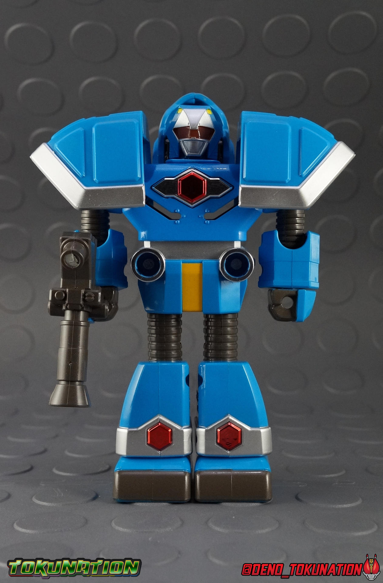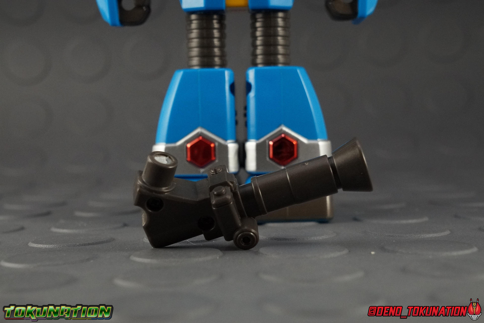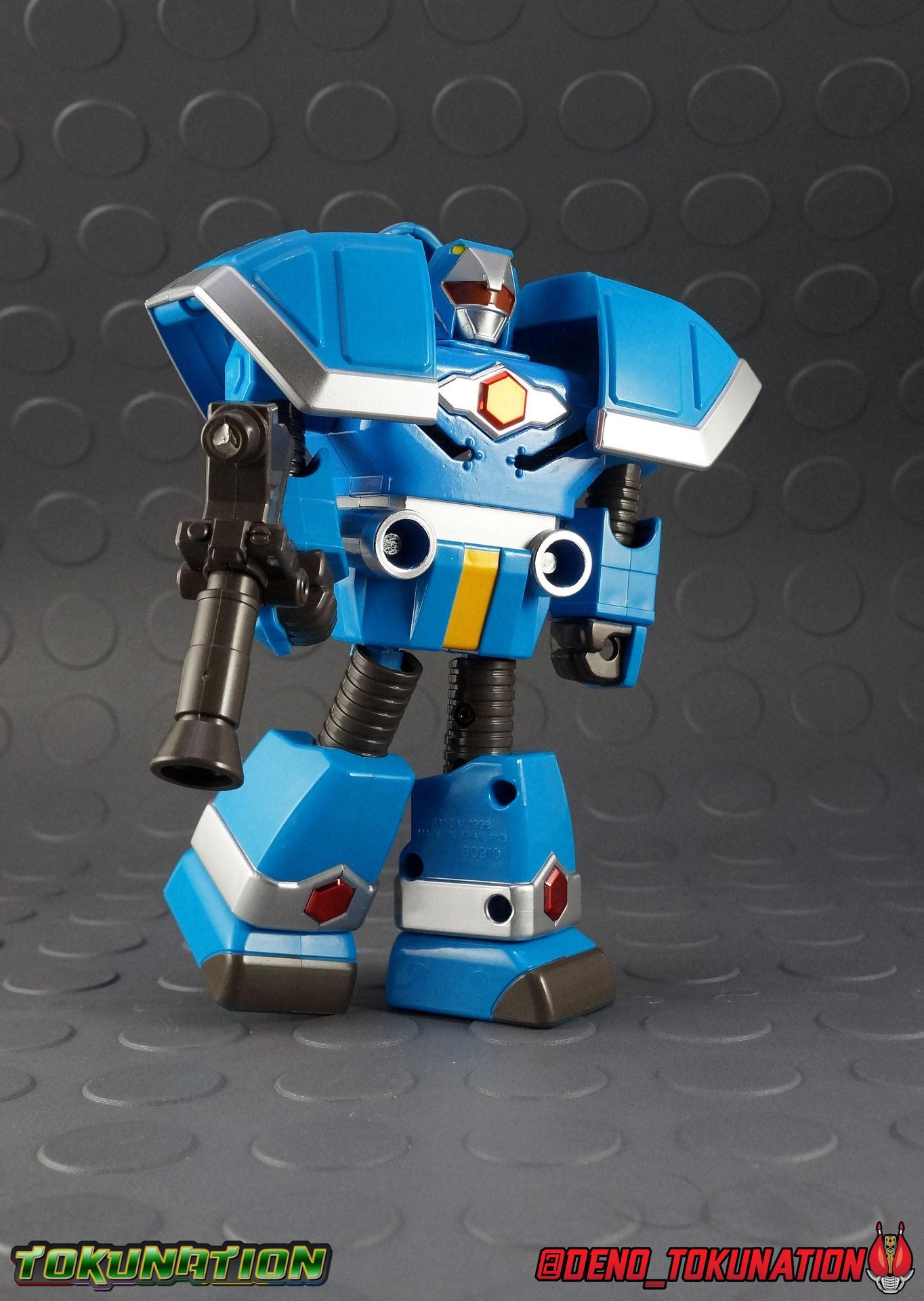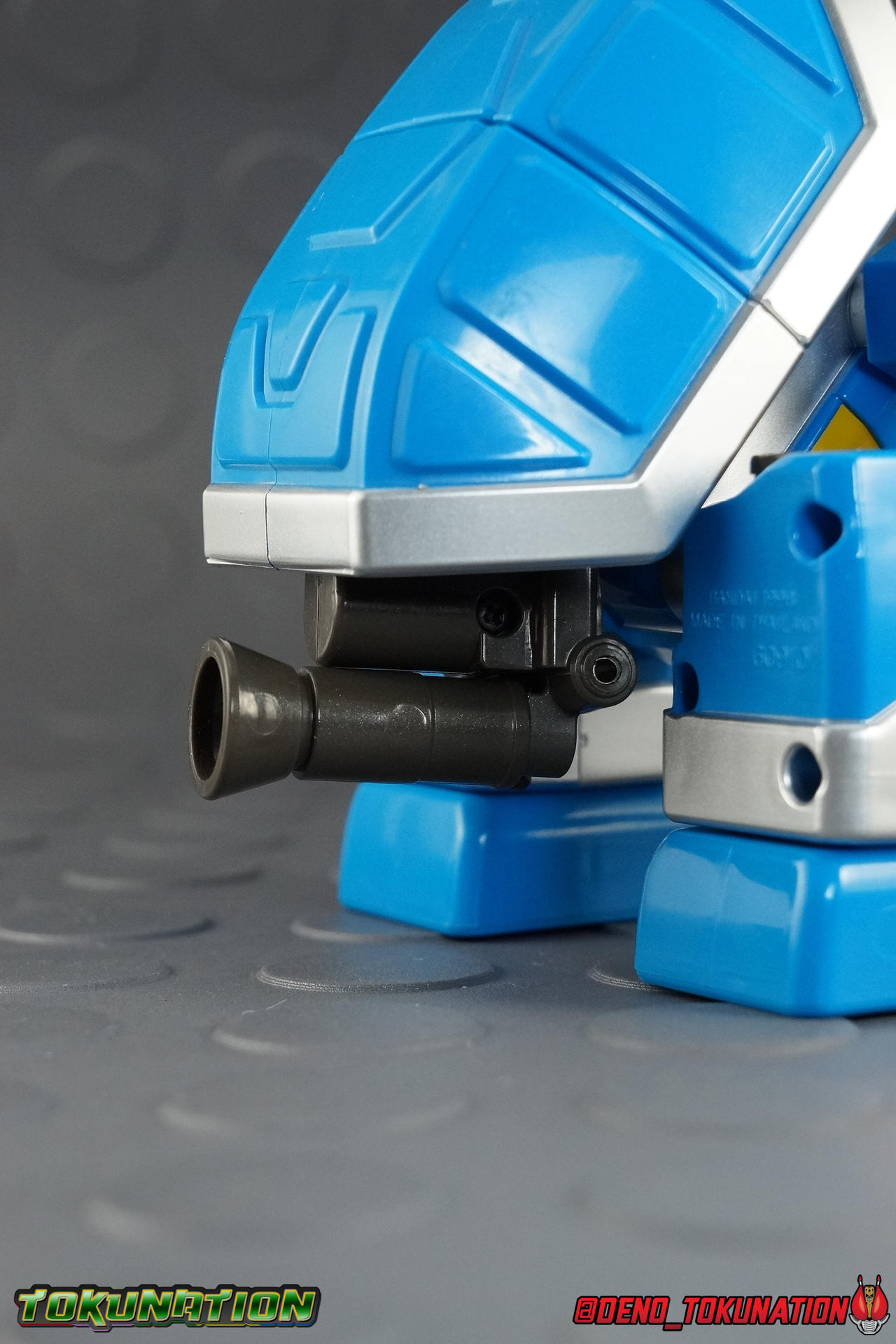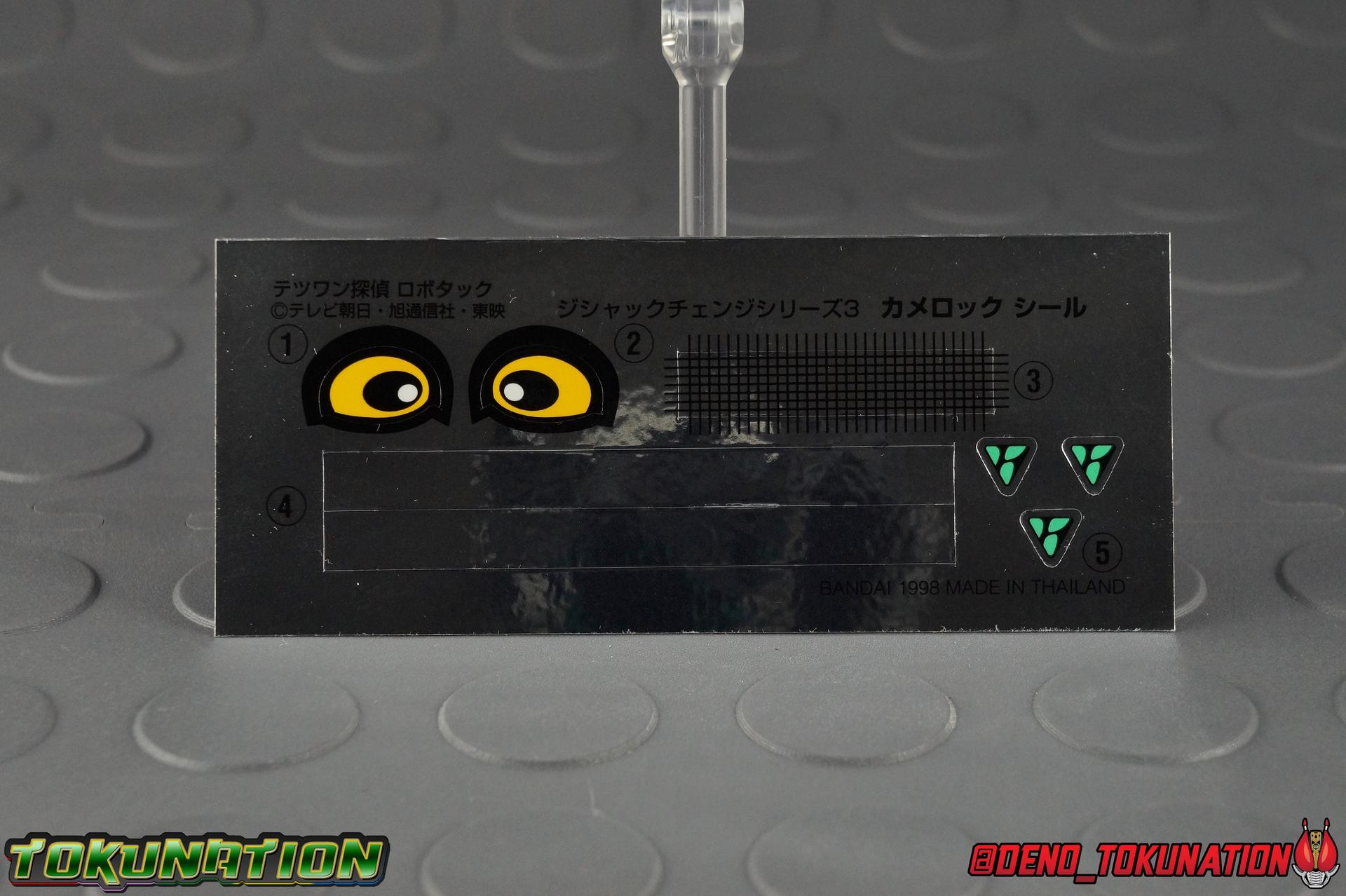 ** For a broader explanation of the series itself, feel free to read through my previous Robotack gallery linked to above. Packaging Basically we have the exact same style box & styrofoam tray that Robotack did. The only difference for Kamerock are the release number, colors, and stock photos. Just superficial stuff really. Differing from the Kabutack releases of the previous year, Magnet Change figures are larger and heftier. So the heavy duty styrofoam is welcome to support the weight. Kamerock (like all other releases in this line) comes packaged in his Super Mode. We'll take him back to Normal Mode first to get the review underway though. I should mention that also a small label sheet meant to accessorize the figure is included, though I've never actually used them. i've been waiting to have repros made for years, eventually I'll get around to it. A flyer advertising the Land Tool mail away exclusive is also included (a figure which I have). These were the good old days of toku toys though. When you collected points to mail away for new figures. Lastly a toy catalog, is included. It features contemporary toku releases from Seiju Sentai Gingaman, Tetsuwan Tantei Robotack, Ultraman Dyna, & Godzilla. Main Figure Basically this line is almost identical across the board. If you checked out my last gallery then you know that all of these figures featured a revolutionary transformation system called Magnet Change/ジシャックチェンジ. You begin with 7 components, legs arms head tail & torso. Each of the sockets on the central body has a port with a magnetic plate in it. The corresponding limbs likewise have a magnet of the opposite polarity. But to get started we'll need to remove the Super Mode head and collapse the turtle shell together. Now each of the limbs can be plugged in normally. But make sure to collapse the legs and rotate the feet the proper direction first, as well as rotating the arms. Kamerock is an upright turtle so he needs to be angled properly. His appropriately, and incredibly named gun, the Kamerazooka, will fold up to form a tail of sorts in one shoulder socket while the combo Normal/Super head will go in the other for this modes head. Kamerock Normal Mode is a short squat robot known as a Wonder Turtle type in the shows terminology. A fun and cute design that definitely played well with children in the 90's. In this form he can't do much other than rotate his arms. Which have I mentioned is incredible? There are grooves on the limbs and sockets that hold the cylinder in the shoulder in a locked position but the arms can rotate on an axis on the end. It's just a genius design. I also have to mention this figure is HEAVY. A majority of the torso is solid painted diecast metal. Imagine the difference between early G1 Transformers and current lines like Titans Return. Then you'll understand just how radically different the construction of this toyline is in comparison. To get Kamerock into Super Mode detach everything again and start fresh. Unlike Robotack the transformation isn't quite as complex, but still very fun. The legs just need to be unlocked & extended fully up. Then the toes need to be rotated pointing out the same direction as the knee pad, then just plug them into the bottom of the torso. Next pull apart the halves of the turtle shell upand diagonally until they lock securely in place. The arms can just plugged into the shoulder sockets as they don't really transform. Then attach the turtle head to the center of the back and rotate the robot mode head down into the neck cavity. Arm him with the Kamerazooka and that's Kamerock Super Mode! In this form Kamerock stands significantly taller and has some really chunky proportions, unlike Robotack, who looks generally more heroic. As with all of the other figures in this line he towers over many more modern figures and even his contemporaries. The previous years' Kabutack line was overall much smaller. But Kamerock Super Mode just looks awesome. Find me a better more awesome looking turtle robot, I challenge you! But seriously this is the figures' strongest form. Unlike Robotack who's honestly quite good in either mode, Kamerack has a mostly forgettable Normal Mode but a very nice looking Super Mode. Articulation is basically non-existent though, being limited to the elbows and some minor use in the knees. Really he's a brick, but a gorgeous, hefty, sturdy brick. Another of my favorite vintage pieces. The Magnet Change gimmick of the line also winds up on full display with these figures in their Super Modes as everyone can interchange limbs freely. I've included some shots of Kamerock's budy Robotack below to showcase how the 2 look when magnet changed. The Magnet Change gimmick is a brilliant precursor to the types of form switching that abound in tokusatsu toys today, and for me it's sorely missed. However it also doesn't work very well in any of the characters Normal Modes as you'll see below. Accessories Technically there aren't really any accessories included with Kamerock. All of his "parts" are integral to both modes. But the Kamerazooka can technically be considered one. While it's not a terribly powerful looking sidearm, it's befitting of Kamerock's Super Mode. It kind of looks like a bubble gun to me honestly. None of these figures really have true accessories but there is an accessory set with Mimeena and the Power Arms which includes weapons that can be used by any compatible figure. Final Thoughts The toyline of Tetsuwan Tantei Robotack is still one of my all time favorites. The engineering of Magnet Change gimmick still blows me away. And while Kamerock may not be as complex or satisfying as the figure that started the line, he's more than deserving of a spot in your collection. This line is fantastic.