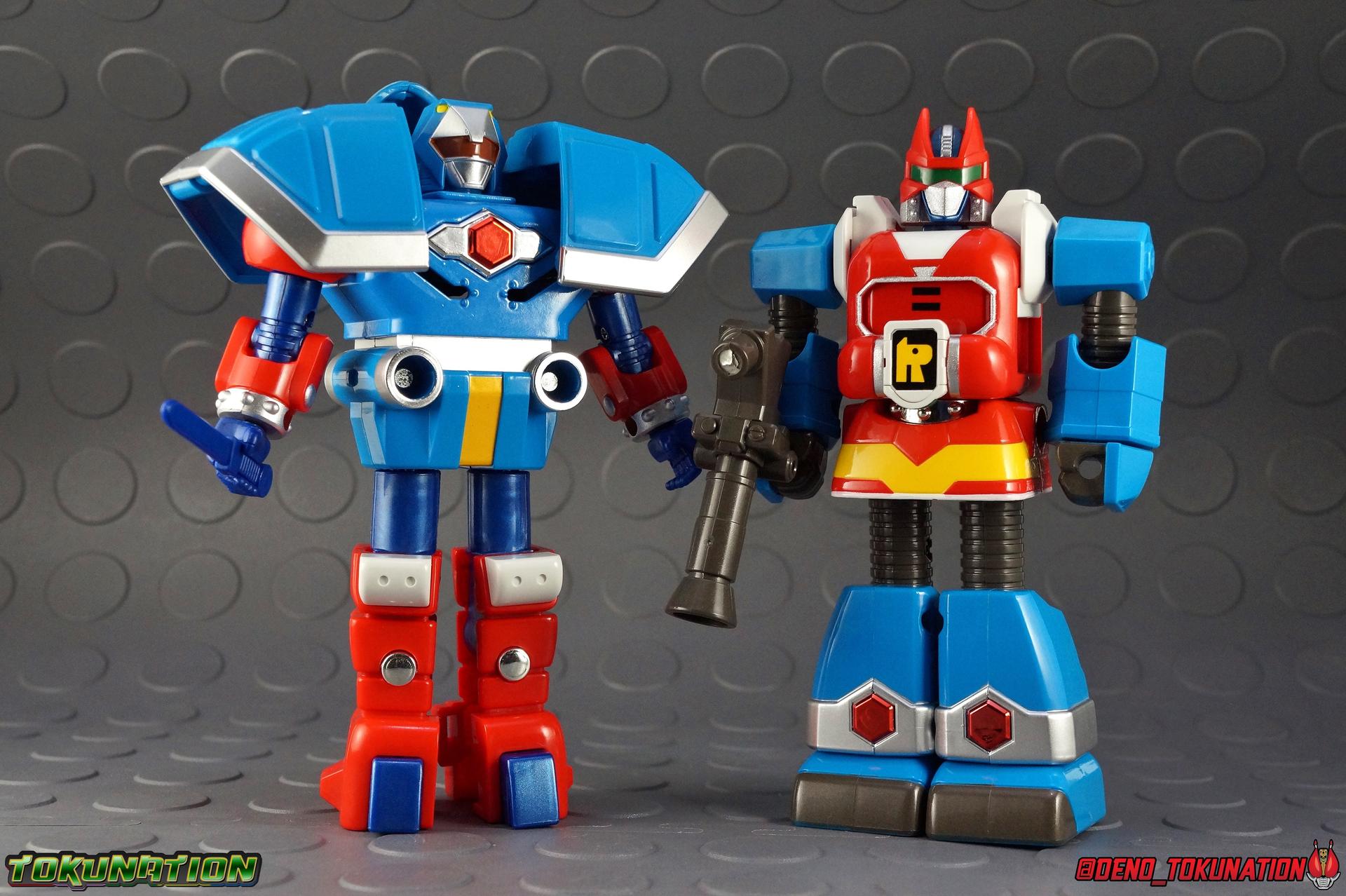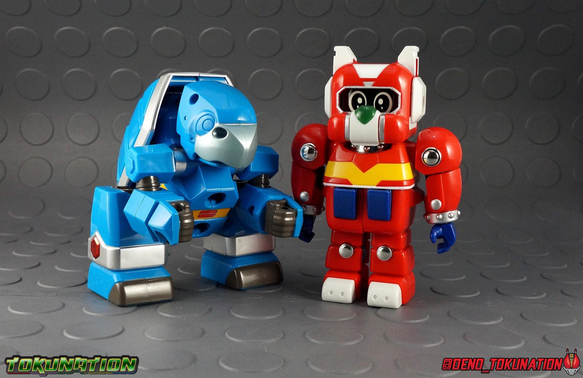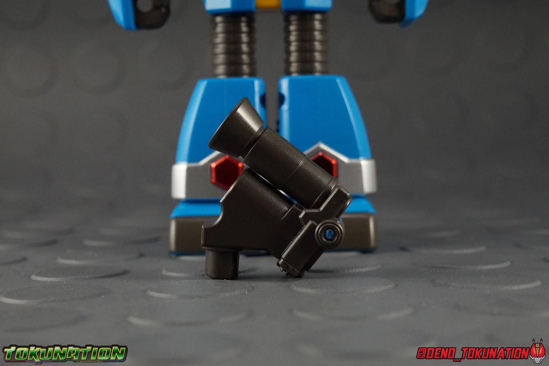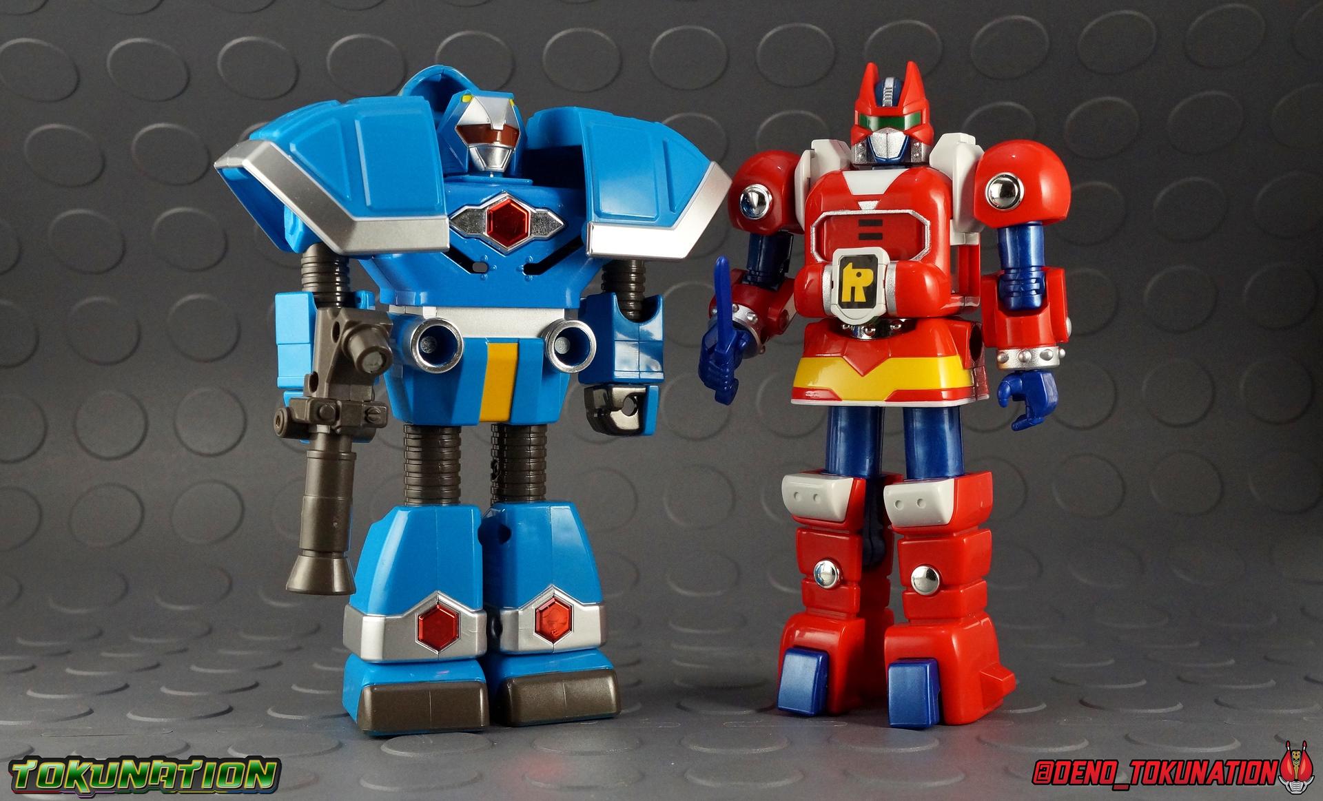 ** For a broader explanation of the series itself, feel free to read through my previous Robotack gallery linked to above. Packaging Basically we have the exact same style box & styrofoam tray that Robotack did. The only difference for Kamerock are the release number, colors, and stock photos. Just superficial stuff really. Differing from the Kabutack releases of the previous year, Magnet Change figures are larger and heftier. So the heavy duty styrofoam is welcome to support the weight. Kamerock (like all other releases in this line) comes packaged in his Super Mode. We'll take him back to Normal Mode first to get the review underway though. I should mention that also a small label sheet meant to accessorize the figure is included, though I've never actually used them. i've been waiting to have repros made for years, eventually I'll get around to it. A flyer advertising the Land Tool mail away exclusive is also included (a figure which I have). These were the good old days of toku toys though. When you collected points to mail away for new figures. Lastly a toy catalog, is included. It features contemporary toku releases from Seiju Sentai Gingaman, Tetsuwan Tantei Robotack, Ultraman Dyna, & Godzilla. Main Figure Basically this line is almost identical across the board. If you checked out my last gallery then you know that all of these figures featured a revolutionary transformation system called Magnet Change/ジシャックチェンジ. You begin with 7 components, legs arms head tail & torso. Each of the sockets on the central body has a port with a magnetic plate in it. The corresponding limbs likewise have a magnet of the opposite polarity. But to get started we'll need to remove the Super Mode head and collapse the turtle shell together. Now each of the limbs can be plugged in normally. But make sure to collapse the legs and rotate the feet the proper direction first, as well as rotating the arms. Kamerock is an upright turtle so he needs to be angled properly. His appropriately, and incredibly named gun, the Kamerazooka, will fold up to form a tail of sorts in one shoulder socket while the combo Normal/Super head will go in the other for this modes head. Kamerock Normal Mode is a short squat robot known as a Wonder Turtle type in the shows terminology. A fun and cute design that definitely played well with children in the 90's. In this form he can't do much other than rotate his arms. Which have I mentioned is incredible? There are grooves on the limbs and sockets that hold the cylinder in the shoulder in a locked position but the arms can rotate on an axis on the end. It's just a genius design. I also have to mention this figure is HEAVY. A majority of the torso is solid painted diecast metal. Imagine the difference between early G1 Transformers and current lines like Titans Return. Then you'll understand just how radically different the construction of this toyline is in comparison. To get Kamerock into Super Mode detach everything again and start fresh. Unlike Robotack the transformation isn't quite as complex, but still very fun. The legs just need to be unlocked & extended fully up. Then the toes need to be rotated pointing out the same direction as the knee pad, then just plug them into the bottom of the torso. Next pull apart the halves of the turtle shell upand diagonally until they lock securely in place. The arms can just plugged into the shoulder sockets as they don't really transform. Then attach the turtle head to the center of the back and rotate the robot mode head down into the neck cavity. Arm him with the Kamerazooka and that's Kamerock Super Mode! In this form Kamerock stands significantly taller and has some really chunky proportions, unlike Robotack, who looks generally more heroic. As with all of the other figures in this line he towers over many more modern figures and even his contemporaries. The previous years' Kabutack line was overall much smaller. But Kamerock Super Mode just looks awesome. Find me a better more awesome looking turtle robot, I challenge you! But seriously this is the figures' strongest form. Unlike Robotack who's honestly quite good in either mode, Kamerack has a mostly forgettable Normal Mode but a very nice looking Super Mode. Articulation is basically non-existent though, being limited to the elbows and some minor use in the knees. Really he's a brick, but a gorgeous, hefty, sturdy brick. Another of my favorite vintage pieces. The Magnet Change gimmick of the line also winds up on full display with these figures in their Super Modes as everyone can interchange limbs freely. I've included some shots of Kamerock's budy Robotack below to showcase how the 2 look when magnet changed. The Magnet Change gimmick is a brilliant precursor to the types of form switching that abound in tokusatsu toys today, and for me it's sorely missed. However it also doesn't work very well in any of the characters Normal Modes as you'll see below. Accessories Technically there aren't really any accessories included with Kamerock. All of his "parts" are integral to both modes. But the Kamerazooka can technically be considered one. While it's not a terribly powerful looking sidearm, it's befitting of Kamerock's Super Mode. It kind of looks like a bubble gun to me honestly. None of these figures really have true accessories but there is an accessory set with Mimeena and the Power Arms which includes weapons that can be used by any compatible figure. Final Thoughts The toyline of Tetsuwan Tantei Robotack is still one of my all time favorites. The engineering of Magnet Change gimmick still blows me away. And while Kamerock may not be as complex or satisfying as the figure that started the line, he's more than deserving of a spot in your collection. This line is fantastic.