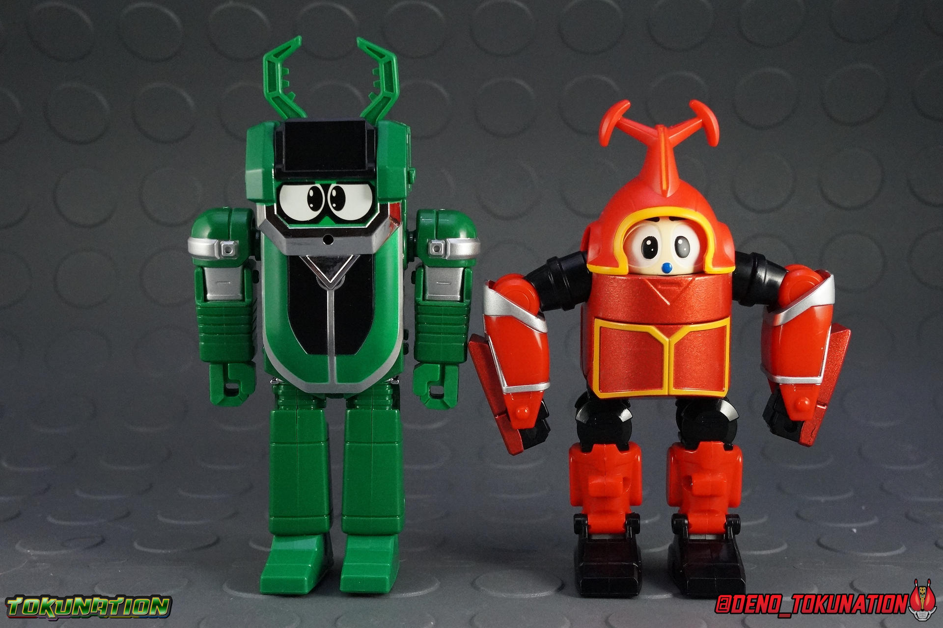 We're back for another delightful trip down memory lane with B-Robo Kabutack! You may recall that last year I examined the main man himself with the DX Super Change Kabutack Set. That massive 3 pack included not only Kabutack but his Drillut & Zabut armors as well. While the rest of this toyline isn't quite as complex as all that, it's fun none the less. So without further adieu, let's take a look at one of Kabutack's greatest friends & allies with Superchange Kuwajiro! For a quick refresher, B-Robo Kabutack ran from 1997-1998 and features an absolutely excellent gimmick for it's toy line (though the following year would see an even better one for Robotack). Kabutack's toy line focused on the Superchange gimmick. Each figure would have a base Normal Mode. A sort of child like innocent animal themed robot. And while each figure's Superchange was executed differently, by way of numerous hidden collapsed joints or inverting of the figures' body parts, they all also had unique Super Modes. Read on below to see just what to expect from Kuwajiro. Packaging Kuwajiro comes in the standard box type of the line. Unlike the DX Kabutack 3-pack, it's a pretty modest slim box design with an assortment of stock photos of both modes. Nothing terribly interesting. Main Figure You'll notice that as I continue doing these galleries, each figure in the Kabutack line comes packaged in Super Mode. But I like to start my reviews with Normal mode first, so that's where we'll begin. Kuwajiro Normal Mode is your typical kid friendly fun little bug-bot. He isn't particularly imposing, or functional even, but he has charm. I think the most odd thing about him is that he's significantly taller than Kabutack Normal & Super Modes. No matter what mode Kuwajiro is in, it's very much at odds with his friend. Theoretically the two should be about the same height in either mode. But Kuwajiro Normal Mode indeed towers over Kabutack. Now as for the functionality I mentioned, in this mode Kuwajiro is pretty limited. Only his arms do anything meaningful and even then they simply rotate 360 degrees and can swing out and up. It's really great, but because he lacks elbows you can't use them for much. The legs are similarly stunted in that they have twist ankles and hinged knees, but no hips. So getting him to balance for what limited poses he can achieve is difficult. Normally with this line you see a marked improvement between modes, but not this time. To get Kuwajiro to Super Mode, begin by opening the flaps on either side of his head, this will give clearance for the arms to move up. After opening the flaps just pull up on his antlers. This basically moves the entire body into the appropriate position. This fully reveals the Super mode head, slides the shoulders into position where the flaps were, and also raises the lower body up above the thighs. Which makes the legs artificially appear longer. The arms can be extended by pulling the forearms down as well. Don't be fooled though, while the arm is held together by a pin, even in this mode there aren't elbows. Then you just need to flip down the chest panel to cover his Normal Mode eyes and Super Mode is done. Compared to what we saw with Kabutack, Kuwajiro's Super Mode transformation is pretty basic. Honestly it's probably the most basic in the entire line. But sometimes that can be a good thing too. Kuwajiro Super Mode doesn't drastically change anything from Normal Mode. Everything is still basically where it was, just with leaner more heroic proportions. Equipping him with his Hasamic Cutter weapon finishes the look off nicely though. As before he can't dynamically pose and stands far above Kabutack height wise, but he's a very interesting bot design wise. Whether intentional or not, characters from Kabutack really do take some thematic inspiration from both B-Fighter shows that preceded it. Kuwajiro looks great with G-Stag. Considering Kabutack would later team-up with Blue Beet & Kabuto, I think the thematic similarities are intentional as well. Normal Mode is probably the better of the 2 modes, but neither really does anything extraordinary. Ultimately Kuwajiro is likely the weakest figure in the line, but even then it's still a fantastic toyline. Accessories 1 - Hasamic Cutter. This weapon needs to be assembled by cutting parts from a sprue first. It's a soft rubbery type plastic that you've undoubtedly encountered over the years with Bandai products. When assembled it can act as both sword and scissor-like cutting weapons. Perhaps an old predecessor to Kamen Rider Gattacks' Double Calibur? 1 - Label sheet. As with most any figure in this line a lebl sheet is included to replicate more show details. I have never used my label sheet and don't intend to. At some point in the future I'd like to get some quality repros made to use but that's for another time. Final Thoughts While not the most exciting release in the line, Superchange Kuwajiro still embodies some of the things that make B-Robo Kabutack one of my. I'm all about diminutive robots getting super heroic forms and at a bare minimum, Kuwajiro still manages that. And with the low low prices a majority of the figures in this toyline tend to go for (Kuwajiro was just 1200 yen) I can certainly overlook some functional flaws.