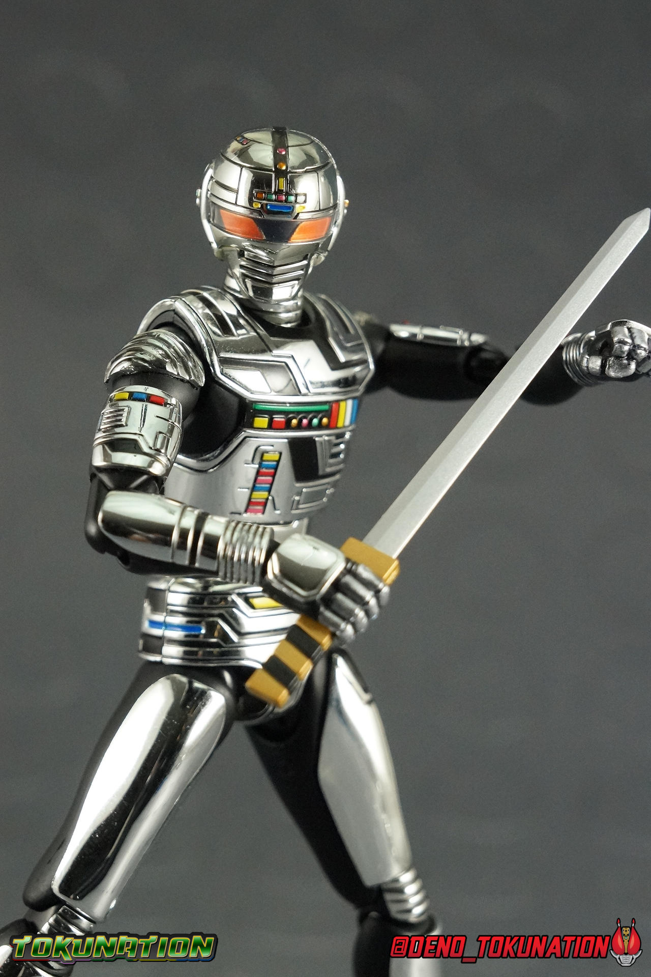 With the Dekranger/Gavan Space Squad movie on the horizon, we recently took a 2nd look back at S.H. Figuarts Deka Red. So while we were at it we figured it was time for a full gallery of the original Metal Hero himself, with S.H. Figuarts Space Sheriff Gavan! For a little background, Space Sheriff Gavan (Uchuu Keiji Gavan) was the inaugural series in Toei's Metal Hero franchise, the third of the big 3 Toei Tokusatsu franchises. The series debuted in 1982 and began with Retsu Ichijoji (Gavan) being dispatched by the Galactic Union Police in order to save Earth from the evil Don Horror and the Makuu Space Mafia. His adventures on Earth spanned 44 episodes and inspired the long tradition of Metal Hero's who succeeded him, including his 2 immediate successors who also bore the Space Sheriff title (Sharivan & Shaider). As well as his eventual modern replacement Gavan Type G. Type G would debut in 2011's Space Sheriff Gavan the Movie, and would even be followed up by modern updates to both Sharivan & Shaider. Obviously, Metal Heroes are undergoing somewhat of a renaissance in recent years. With S.H. Figuarts for shows like Juspion, Juuko B-Fighter, & Tokkei Winspector having been released in the last 2 years. Then there's a Premium Bandai Ranger Key Set, and even a 1:1 scale roleplay toy for Gavan. This is sort of the Golden Age for Metal Heroes. With all that in mind, as well as the recently announced Gavan Renewal Figuart coming our way, we figured it was well past time to take a look at the original S.H. Figuarts Gavan! Packaging The original Gavan packaging is actually pretty great. It's got some interesting detailing that really gives you a feel for the show and character. The later release, Gavan Type G, uses the same style of box with some swapped colors to differentiate, but really they're both pretty lovely. I don't know why but on occasion I'm kind of a sucker for cool packaging, in Gavan's case it just works for me. Main Figure Now first to get things out of the way, there is an S.H. Figuarts Gavan Renewal on the way, as recently revealed by Tamashii Nations. And I've had this original release ever since it first came out. Well I just can't properly express how excited I am by the prospect of the new figure. That's primarily because the original is such a flawed release. Read below to find out why. For starters Gavan actually really does look quite good out of the box. At first glance the chrome looks great, his proportions seem solid, and he manages to look a little less goofy than the actual show suit itself does from time to time. However on closer inspection the flaws begin to become clear. Starting with the chrome I mentioned, this was a bold choice by Tamashii Nations. Chrome has been used sparingly through out the S.H. Figuarts toyline but this is one of very few figures which is covered in it. And frankly it isn't entirely accurate. I get that they were going for the more striking look of Gavan, but reflective chrome just isn't what Gavan had all the time. He was often shown in more of a brushed silver. Silver armor with reflective aspects was used in appropriate scenes, but I always preferred the muted look of silver or gray to chrome. So I'm kind of 50/50 on the chrome. But the chrome on this figure is also very easy to flake, and applied inconsistently. It doesn't help that it's a finger print magnet as well. Looking at the feet, these were poorly designed in the first place. The ankle cuffs restrict nearly all movement so creating dynamic poses is very difficult. The cuffs also aggravate the chrome flaking. The way in which the hips impact the waist joint/diaper allows chrome to flake off there most easily. While we're on them the hips are also notoriously loose on most Gavan's The plastic used is the same weak type the wrist pegs were designed with (we'll get to that). So the hips themselves can crack internally and loosen over time, mine are quite bad at this point. The chest and torso details are actually quite nice, as are the arms. On the arms here comes the standard warning about the horrendously designed wrist pegs. They were constructed with paper thin plastic pegs that leave them extremely prone to breakage. Just be careful, and forgive me for not displaying Gavan with too many hands in the gallery. I couldn't bare to break another one. The arms themselves are limited by the shoulder design, the chrome shoulder pad impacts the joint itself making it hard to move his arms properly, they also tend to flake pretty badly over time. They got all the broad strokes of Gavan's detailing down pat on the torso and abs. But weirdly the lower torso section is on some strange angling joint that lets you lift up and pull out on the body, exposing a massive gap around his back when you do so. It looks very unnatural, not pleasing to the eye at all, and really it doesn't even facilitate that much more movement out of him. The head however is a dead ringer for the real deal, as is the swap out head described in the accessories section. If not for the flaws present in this design, Gavan could have been wonderful. As a huge fan of Metal Heroes I'm really quite disappointed that this is how the figuart turned out. I'm certain that the renewal will fix all of these issues and add some much needed proportionality to the design. As is this original figuart is somehow an even worse figure than the much older Toei Action Works release which was the standard for some time. Even the much older Souchaku Henshin release has more going for it than the figuart. It's just flawed in every aspect. Accessories Surprisingly for a Tamashii Web Exclusive, Gavan actually came with a decent number of accessories: 3 - sets of additional hands. Just the usual stuff, some open palms, some sword holding hands, and some pointing type fingers for Gavan's Laser Z Beam. Please be cautious, when exchanging hands on this figuart they are very easily prone to breakage. The wrist pegs snap clean off the ball join
