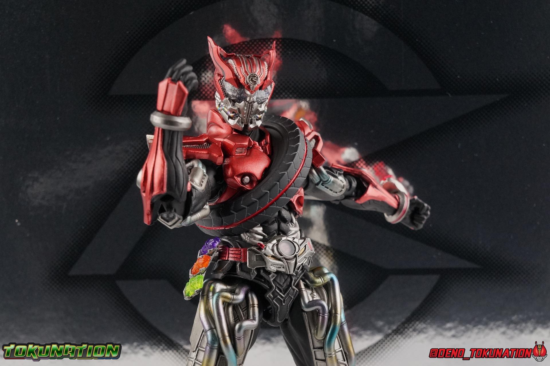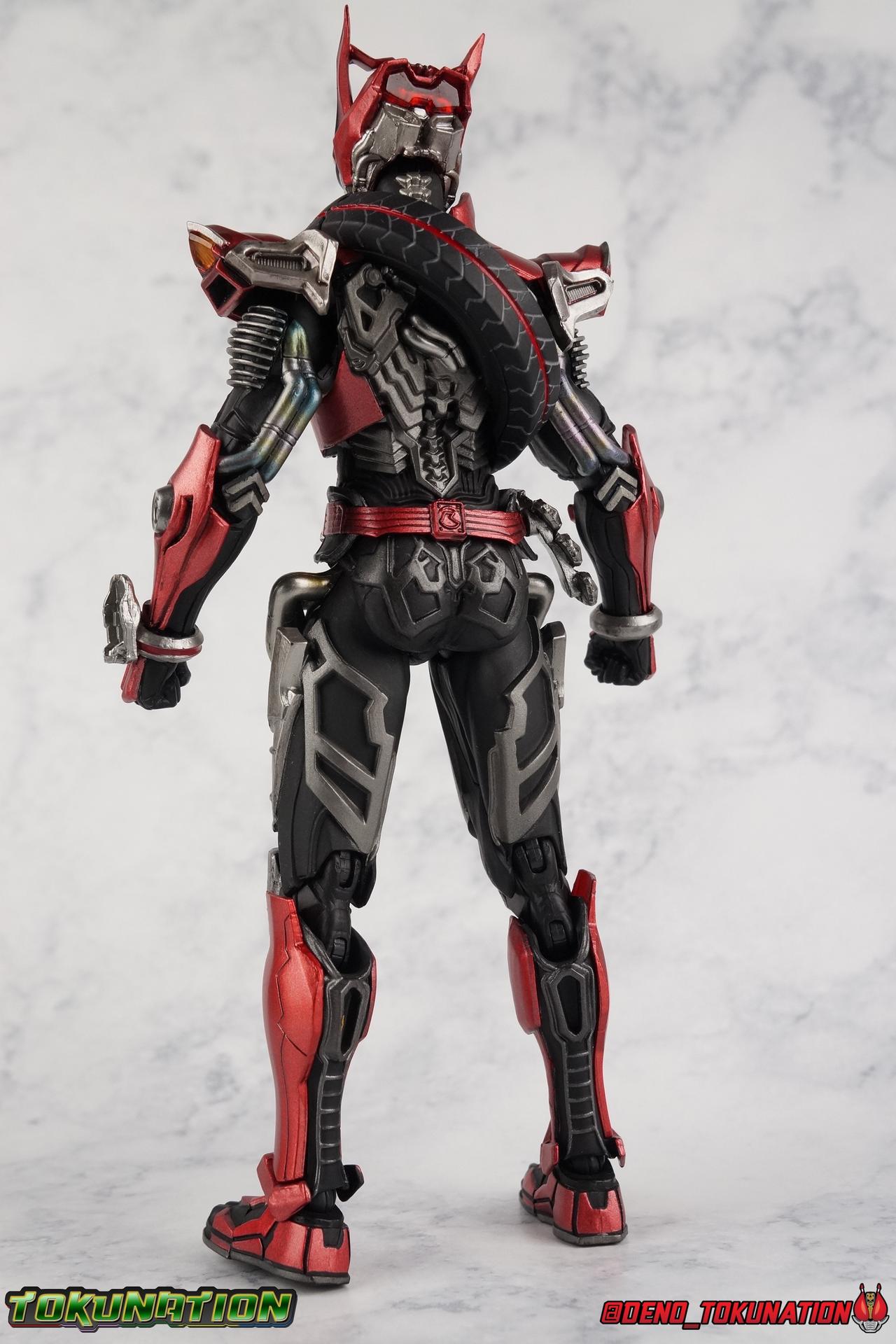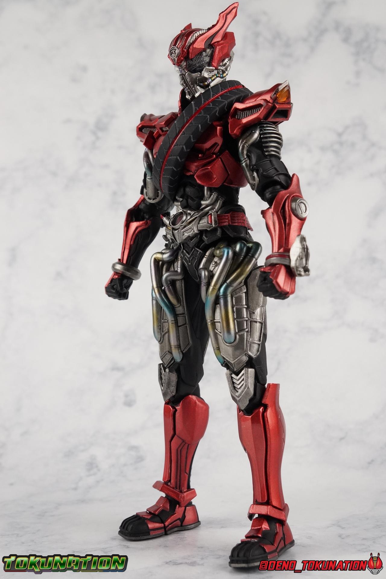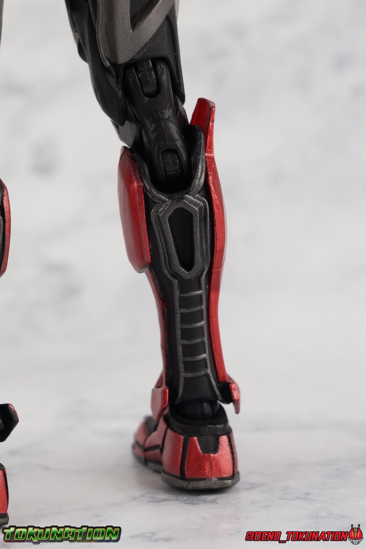 Normally I tend to limit myself to one scale of collecting for a particular show. I stick to 1/12 stuff, most often S.H. Figuarts. or gimmick and vintage figures around that scale. But every once in a while a show or figure grabs me enough that I do want to own it in a different size or line. Today's example of my weakness is brought to you by Kamen Rider Drive! I've never been huge into collecting S.I.C. figures, but S.I.C. Kamen Rider Drive Type Speed may finally be changing my tastes a little. Check out a full gallery & review below! Packaging As with most all modern S.I.C.'s, Drive Type Speed comes in a really elaborate and detailed window style box. The front actually looks like a stylized version of his helmet which I really dig. Obviously S.I.C.'s are fairly large, clocking in around 8", so this box is quite a bit bigger than an average figuart. And there are some fantastic stock photos on the exterior. They don't quite do this figure justice. Also the cardboard insert for the box is a fantastic reflective chrome with Drive's "R" emblem on it. It works great as a photo backdrop! Main Figure One thing I'll always give the S.I.C. toyline, details are key. And that's almost entirely thanks to the amazing man behind the line, Takeyuki Takeya. A brilliant artist with a mind for elaborate details and the meshing of organic and technological detailing. This release is doubly impressive because Takeya himself designed all the Roidmudes for Kamen Rider Drive. It was the first Kamen Rider Series to feature villains to be entirely designed by him. Though the riders themselves were not. S.I.C. Drive however, as with practically every other S.I.C. figure, was. This is Takeya taking a crack at Drive with his own unique style of detail and flourish. And it has been wonderfully executed. Though there are some minor caveats. The way the ball joints operate in the feet really irks me. They're on hinges but the ball also rotates 360, so it's very easy to get them off center, then Drive's feet won't sit flat at the same angle. The double jointed knees are astounding though. The entire calve can rest on the back of the thigh. That's just crazy. The hips can actually rotate out much further than I would have assumed too, those pipes on the thighs don't get in the way too much for outward movement, but they aren't exactly perfect either. They do pop off easily due to their design. And actually the hips can pull down a decent amount out of the waist so forward and back movement is remarkably good. This Drive can sit properly as though there were a Tridoron scaled to him. However he cant really get down on one knee to kneel, which is sort of my benchmark for figure posability. The upper body really only has one big thing that bugs me. And that's how loosely the Drive Driver sits on the belt itself. It's quite easy to pop off, the belt is pretty loose around the waist already, which normally I like because it frees up movement. But in this case it makes it easier to knock the driver off, that coupled with the soft plastic of the belt is obviously a great recipe for losing small parts. The lower torso also moves quite freely and is made of a soft plastic, though sometimes you can see straight through a hole in the waist because of the way it moves. The upper torso has some of the best asymmetrical detailing I've ever seen, I really love it. Taking Drive's tire sash to a new level. The way the ridges on the lower right & upper left corner of the chest compliment each other is gorgeous. And I love the added detail of a neck collar around the right side of Drive's head. It really drives (pun!) home the 'bisected by a tire idea' of his design. It's as though he was a totally normal rider then this thing just smashed it's way into the design and the suit just accommodated. This is why I love Takeya's work. The arms have some pretty standard movement, which is to say the shoulder pads keep them from doing much and the elbows can do about a 90 degree angle. The wrists don't have a ton of clearance because of how they sit flush with the wrist pads but you can get some use out of them. And lastly the head. Wow that just gorgeous brilliant detailed head. This take on the design easily looks like it could have fit in with the Roidmudes of the series. It's heroic, but it looks so, sinister? I love it. And it actually has plenty of room to move. Bravo on this design. This figure just rocks it at every level. It's just a gorgeous re-design of a suit that I already loved immensely. S.I.C. Kamen Rider Drive Type Speed gets the best of both worlds in it's first outing with this line. Hopefully S.I.C. Mashin Chaser & Heart can live up to this standard as well! Accessories As with most S.I.C.'s Drive is loaded up! 1 - Handle Sword. This version of the handle sword is quite the detailed departure from the figuart. As with everything else about this figure it takes the car aesthetic to the extreme. I love it. It can accept Shift Cars in a similar fashion to the S.H. Figuarts release. 1 - Door Gun. While the Door Gun may not look as radically different as the normal version it's still a great looking weapon that compliments Drive's new deep details very well. It can accept Shift Cars in a similar fashion to the S.H. Figuarts release and has an opening door as well. 1 - Max Flare Tire. This giant hunk of plastic can replace the standard Type Speed tire in much the same way as the figuart. It comes apart in sections to snap over the chest. In the case of this one the flame effects are molded onto the tire so they aren't removable. They are also totally awesome. 1 - Max Flare belt read out. This replaces Mr. Belt's standard face. It works basically just like the SHF, take the driver off and replace the plate. 3 - sets of hands. 1 open pair, 1 set for holding the gun, 1 set for holding the sword. I am a bit disappointed that he doesn't have a pair of relaxed open hands, but oh well. 6 - Shift Cars. That's 1 each of Midnight Shadow, 