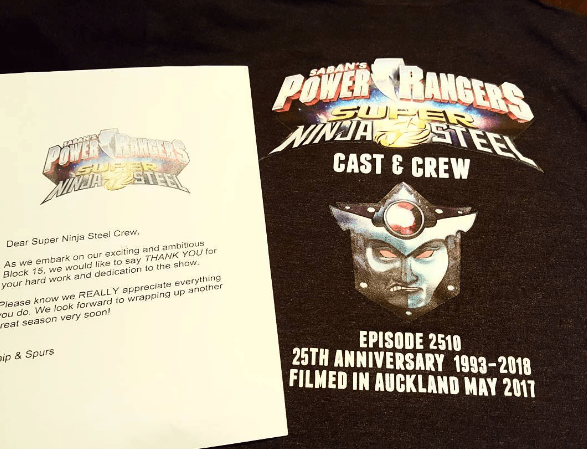 So this image has recently come online: a souvenir T-shirt from the filming of Power Rangers Super Ninja Steel.