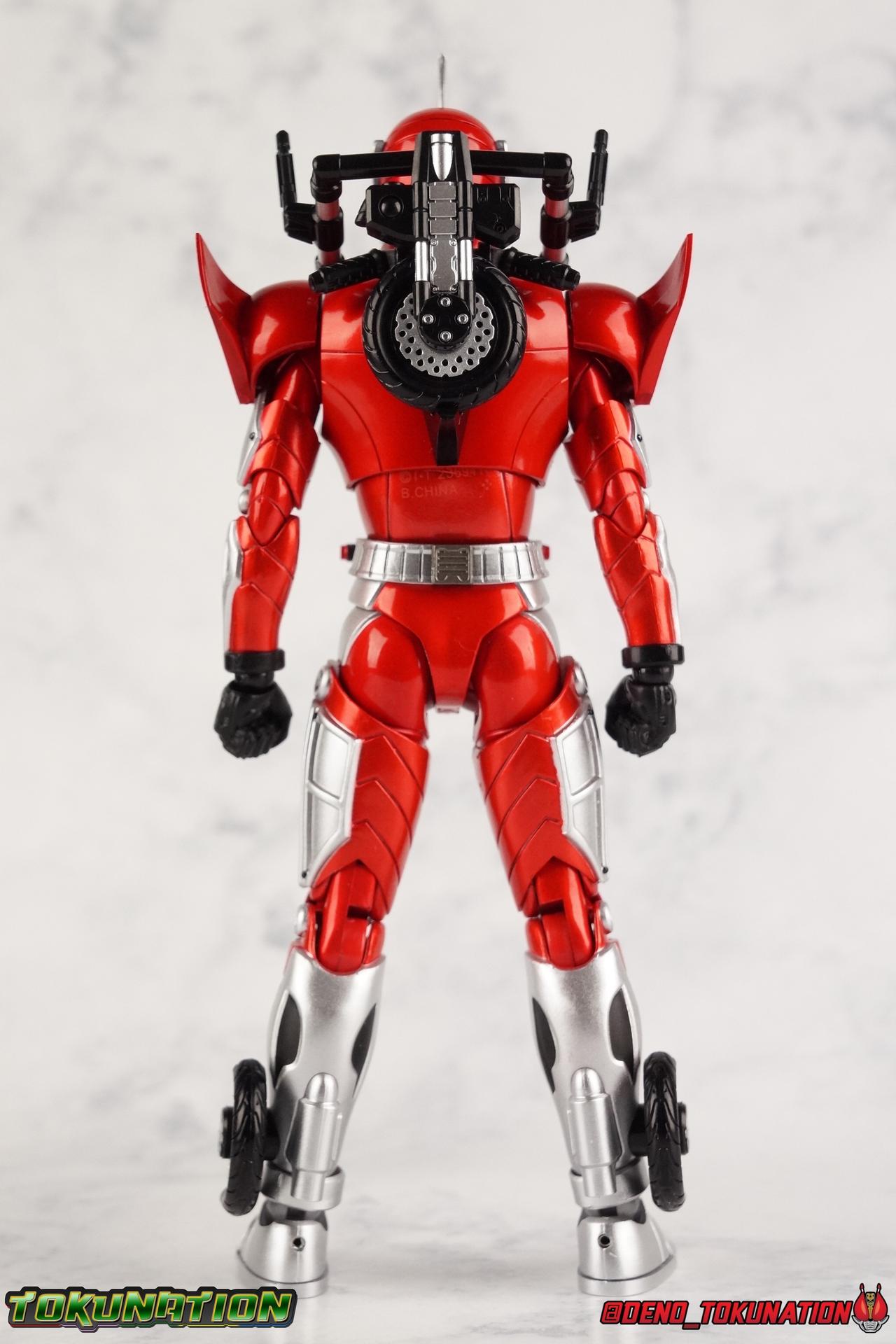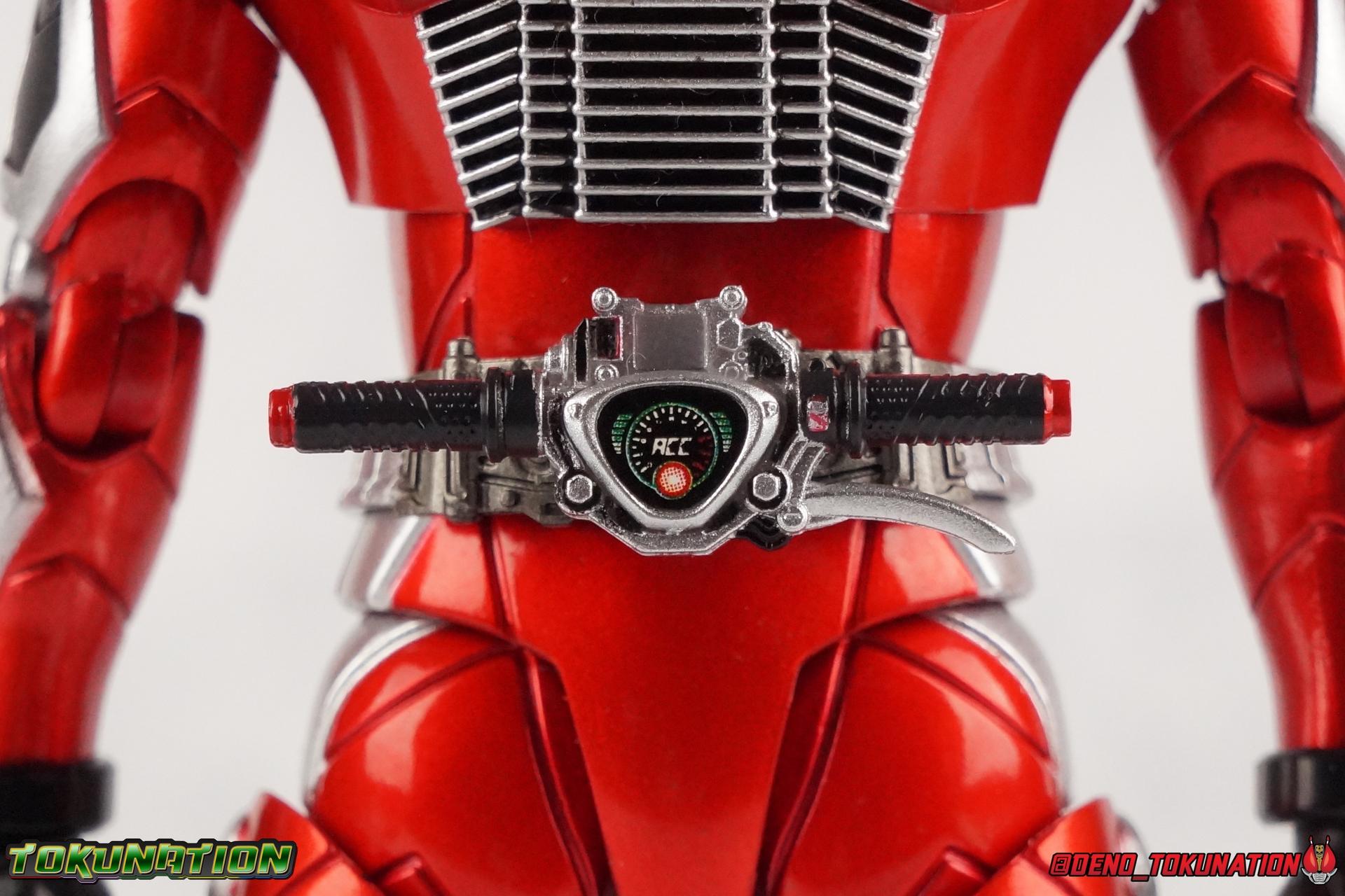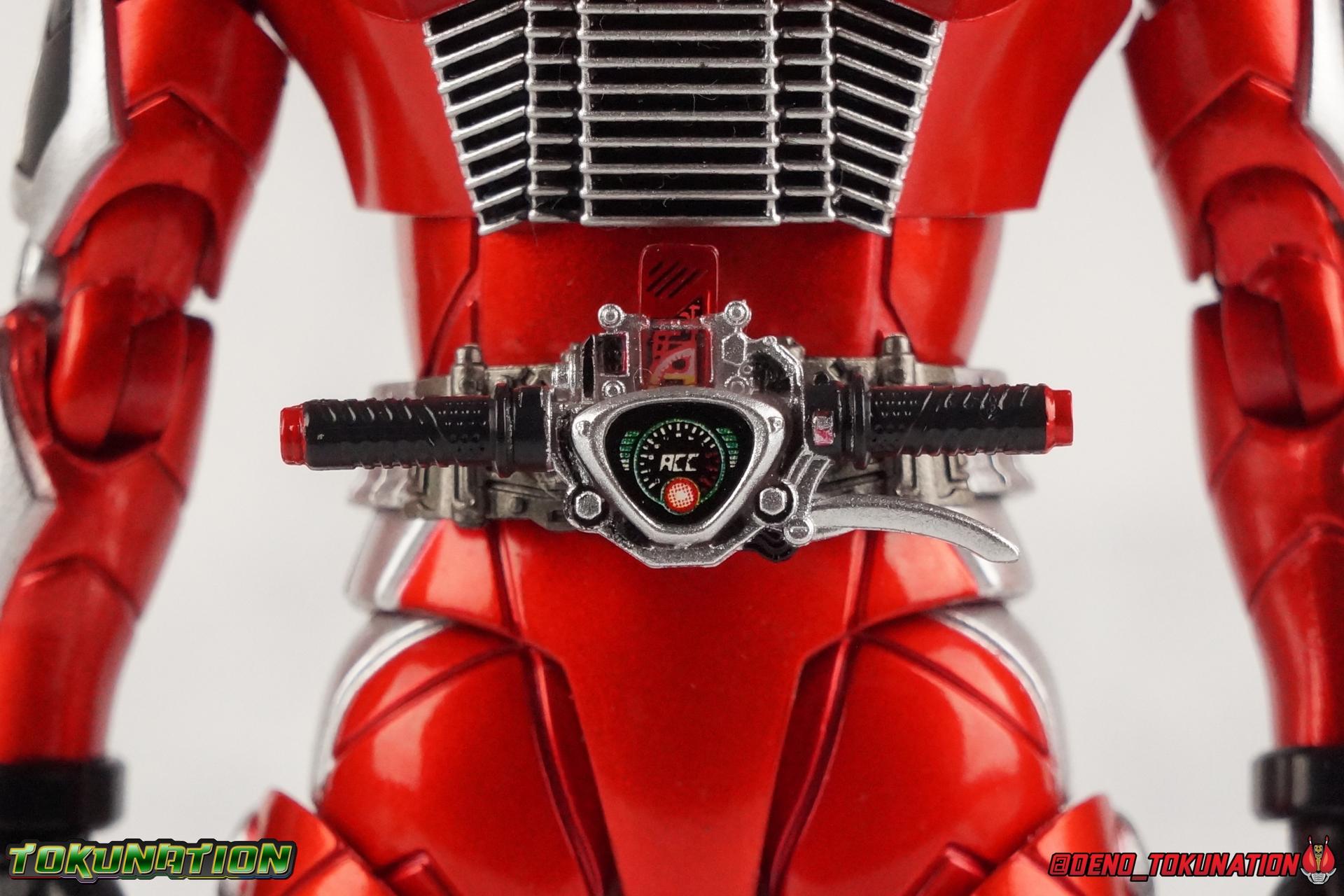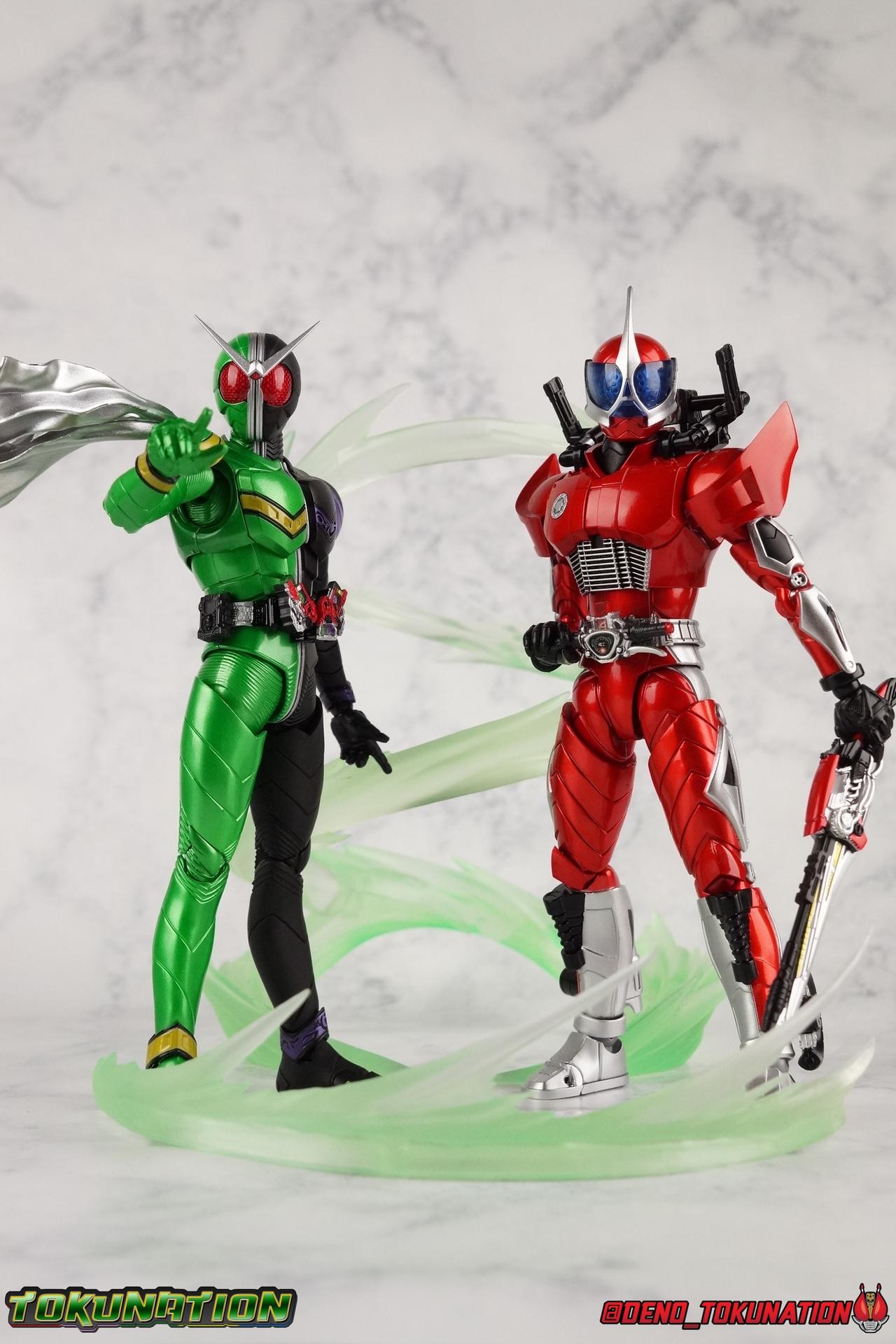 Ryu Terui was an ordinary police office like anyone else, until the day that Isaka the Weather Dopant savagely murdered his entire family. With the help of Shroud though, Ryu began a quest for his revenge as Kamen Rider Accel! Years ago, when S.H. Figuarts was still a pretty fledgling line Accel had his first collector style figure. For the time, it was really pretty great. Good detailing, decent poseability, even some nice diecast feet for stability. But as with many figuarts from that era, it's aged out. Now, 7 years later, Bandai has revisited this character as the next entry in their premium renewal line with S.H. Figuarts Shinkocchou Seihou Kamen Rider Accel! Packaging This is the one area I'm always going to be less than impressed with for Shinkocchou Seihou. While the the slip cover box style actually is something I really like, it's always quite boring too. The standard black & white packaging with a few official images just doesn't wow me like it did when this subline was still fairly new. I still think it's some of the best collectors style packaging we could hope for, but I would like to see maybe the colors get mixed up a bit at least. Main Figure Like I mentioned above, it's been 7 years people. 7 years since the original Accel figuart was released. I honestly hadn't even realized it had been that long, but let me tell you now that Seihou Accel induces some serious whiplash. The differences between the original & Seihou releases of Decade, Kuuga, Kabuto, they were stark. W was on another level entirely. I dare say that Shinkocchou Seihou Accel is every bit the kind of improvement that W was. He's just a top notch release. For starters, Seihou Accel is just bigger. As you can see in my comparison shots below, he's about a head taller than the original. Overall about 15% larger and bulkier. This was much much needed. A figure that can finally match the suits proportions properly. But really it's more than that. This figure excels (see what I did there??) in putting the original to shame in every conceivable way. From an articulation standpoint there's really no comparison. Seihou Accel features the best combination of ankles knees & hips I've seen on a figuart in a long time. Plenty of clearance for the ankles, strong toe bends, nice flat feet to achieve balanced poses, hips with a wide range of motion thanks to their complex design. It's just fabulous. Now let's take a pits top at the Accel Driver. This meticulously detailed henshin device looks every bit as spectacular as the W Driver did, and like it, it can accept Gaia Memories like the included Accel & Engine. It's also removable, surely to replicate Accel's transformation to bike form, but obviously this figure can't accomplish that. The rest of the torso, like the rest of the figure is exquisite (a few minor scuffs in the silver paint aside). And it has plenty of clearance, a good arch for the back etc etc you get the picture. Now let's look at my one big qualm with this figure, the arms. While they are a vast improvement over the original, I take issue with two things. 1, the shoulders are kind of horrendous. The shoulder pads are hinged well enough, but for some reason not in any way that facilitates them clearing the actual shoulder cavity for posing, they impact it alot, but even if you remove them entirely, the shoulder sockets are very tight and kind of limited in most circumstances/ You have to apply a lot of force sometimes to move them. On top of this are the wrists. When I plug hands onto them, the peg holes seem too shallow, the hand sort of floats above the ball joint and doesn't rest naturally so it looks awkward. They also pull off the ball rather easily when posing. But to me at least the hands also feel a bit disproportionate and over-sized. They get the job done, but they do look off. Finishing up top, we have Accels head, which really captures his likeness better than either of the previous figuart offerings, the original head or the "improved" one that came with Accel Booster. This is a sharp, accurate likeness that really sells the notion that a person could be wearing that helmet in there. My only complaint is the neck is just a tad too short so the chin impacts the collar around the neck on the sides. It's not detrimental, just annoying. Overall this is an excellent release. I have issues with the arms, but honestly that's pretty minor. This is a gorgeous figure that communicates Ryu Terui's personality astonishingly well. And paired up with Kamen Rider W, it's like these guys walked right off screen. Bring on Skull & Eternal! Accessories As with most any Shinkocchou Seihou, this figure comes with a perfect array of accessories: 5 - sets of hands. Basically all purpose for everything you'll need. 1 set of open palmed hands, several sets for holding things specifically for the Engine Blade and a bike riding pair, and there's even a pair for holding Gaia Memories. 1 - alternate head. Basically the only difference here is that the underside of the visor has some additional painted details to replicate the way the visor lights up when Accel powers up or executes a Maximum Drive. 1 - Accel Gaia Memory. Just plug this one into the Accel Driver to complete the figure's standard look. I'm still astonished, ever after W, just hoe well detailed these tiny things are. And easy to lose! Just be careful when handling them. 1 - Engine Gaia Memory. One of Accels "artificial" memories, Engine should be used in conjunction with the next accessory. 1 - Engine Blade. Accel's signature sword and sort of all purpose weapon. Able to accept Gaia Memories by folding the blade forward, the detail on this item basically matches what was present with the original figuart. This one is a bit sharper, more crisp paint apps, and is generally just more representative of the actual show prop. It's not terribly different from the original, but it's still noticeable to me. Final Thoughts As with Kamen Rider W, and in fact any Seihou