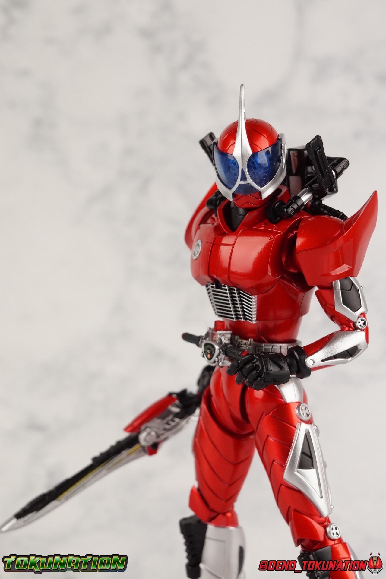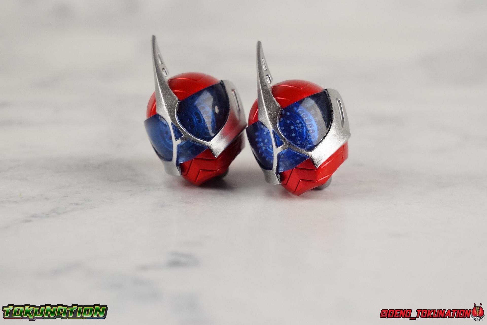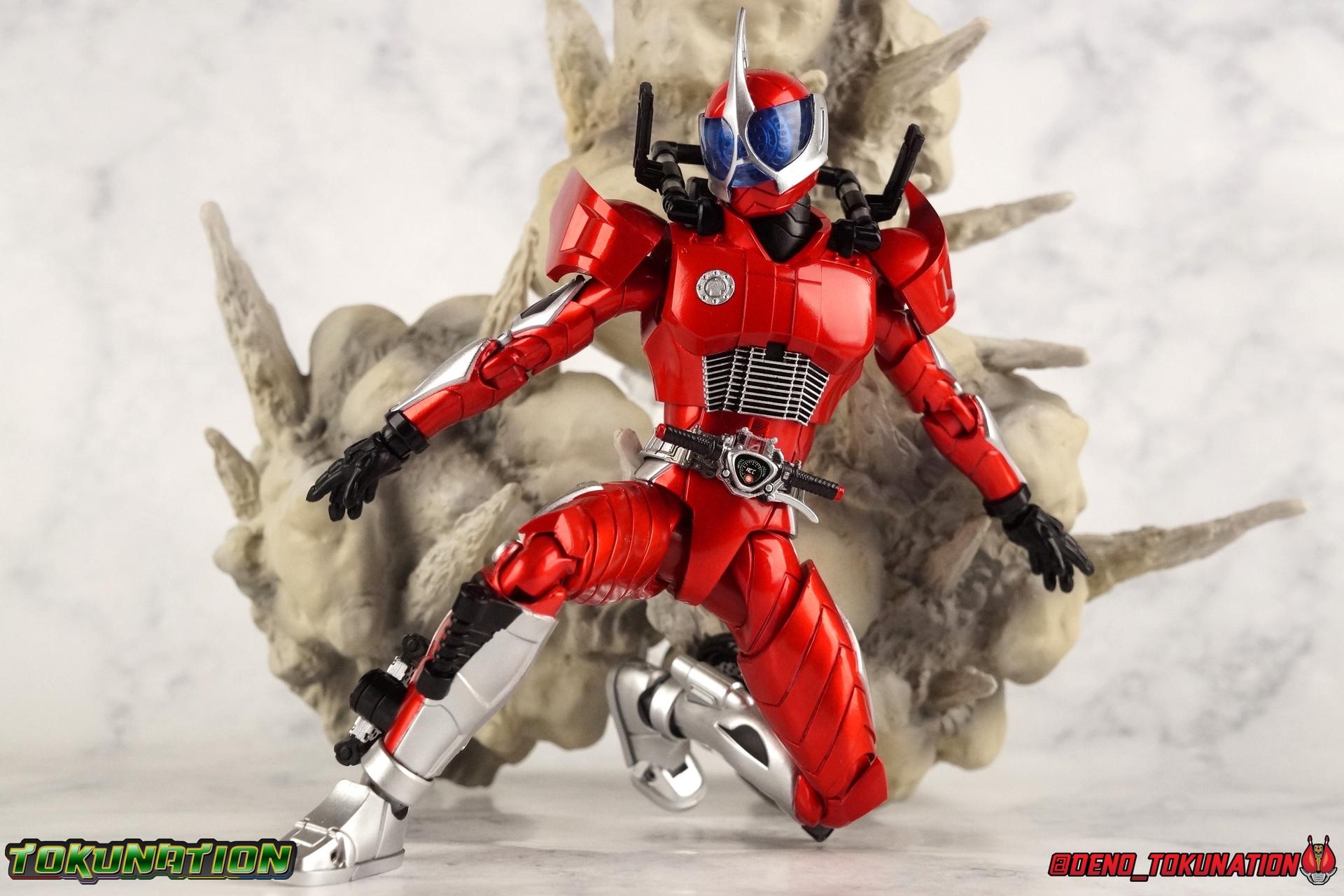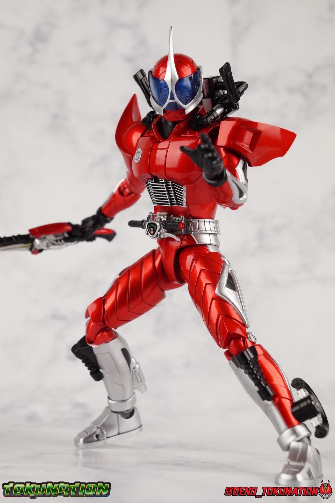 Ryu Terui was an ordinary police office like anyone else, until the day that Isaka the Weather Dopant savagely murdered his entire family. With the help of Shroud though, Ryu began a quest for his revenge as Kamen Rider Accel! Years ago, when S.H. Figuarts was still a pretty fledgling line Accel had his first collector style figure. For the time, it was really pretty great. Good detailing, decent poseability, even some nice diecast feet for stability. But as with many figuarts from that era, it's aged out. Now, 7 years later, Bandai has revisited this character as the next entry in their premium renewal line with S.H. Figuarts Shinkocchou Seihou Kamen Rider Accel! Packaging This is the one area I'm always going to be less than impressed with for Shinkocchou Seihou. While the the slip cover box style actually is something I really like, it's always quite boring too. The standard black & white packaging with a few official images just doesn't wow me like it did when this subline was still fairly new. I still think it's some of the best collectors style packaging we could hope for, but I would like to see maybe the colors get mixed up a bit at least. Main Figure Like I mentioned above, it's been 7 years people. 7 years since the original Accel figuart was released. I honestly hadn't even realized it had been that long, but let me tell you now that Seihou Accel induces some serious whiplash. The differences between the original & Seihou releases of Decade, Kuuga, Kabuto, they were stark. W was on another level entirely. I dare say that Shinkocchou Seihou Accel is every bit the kind of improvement that W was. He's just a top notch release. For starters, Seihou Accel is just bigger. As you can see in my comparison shots below, he's about a head taller than the original. Overall about 15% larger and bulkier. This was much much needed. A figure that can finally match the suits proportions properly. But really it's more than that. This figure excels (see what I did there??) in putting the original to shame in every conceivable way. From an articulation standpoint there's really no comparison. Seihou Accel features the best combination of ankles knees & hips I've seen on a figuart in a long time. Plenty of clearance for the ankles, strong toe bends, nice flat feet to achieve balanced poses, hips with a wide range of motion thanks to their complex design. It's just fabulous. Now let's take a pits top at the Accel Driver. This meticulously detailed henshin device looks every bit as spectacular as the W Driver did, and like it, it can accept Gaia Memories like the included Accel & Engine. It's also removable, surely to replicate Accel's transformation to bike form, but obviously this figure can't accomplish that. The rest of the torso, like the rest of the figure is exquisite (a few minor scuffs in the silver paint aside). And it has plenty of clearance, a good arch for the back etc etc you get the picture. Now let's look at my one big qualm with this figure, the arms. While they are a vast improvement over the original, I take issue with two things. 1, the shoulders are kind of horrendous. The shoulder pads are hinged well enough, but for some reason not in any way that facilitates them clearing the actual shoulder cavity for posing, they impact it alot, but even if you remove them entirely, the shoulder sockets are very tight and kind of limited in most circumstances/ You have to apply a lot of force sometimes to move them. On top of this are the wrists. When I plug hands onto them, the peg holes seem too shallow, the hand sort of floats above the ball joint and doesn't rest naturally so it looks awkward. They also pull off the ball rather easily when posing. But to me at least the hands also feel a bit disproportionate and over-sized. They get the job done, but they do look off. Finishing up top, we have Accels head, which really captures his likeness better than either of the previous figuart offerings, the original head or the "improved" one that came with Accel Booster. This is a sharp, accurate likeness that really sells the notion that a person could be wearing that helmet in there. My only complaint is the neck is just a tad too short so the chin impacts the collar around the neck on the sides. It's not detrimental, just annoying. Overall this is an excellent release. I have issues with the arms, but honestly that's pretty minor. This is a gorgeous figure that communicates Ryu Terui's personality astonishingly well. And paired up with Kamen Rider W, it's like these guys walked right off screen. Bring on Skull & Eternal! Accessories As with most any Shinkocchou Seihou, this figure comes with a perfect array of accessories: 5 - sets of hands. Basically all purpose for everything you'll need. 1 set of open palmed hands, several sets for holding things specifically for the Engine Blade and a bike riding pair, and there's even a pair for holding Gaia Memories. 1 - alternate head. Basically the only difference here is that the underside of the visor has some additional painted details to replicate the way the visor lights up when Accel powers up or executes a Maximum Drive. 1 - Accel Gaia Memory. Just plug this one into the Accel Driver to complete the figure's standard look. I'm still astonished, ever after W, just hoe well detailed these tiny things are. And easy to lose! Just be careful when handling them. 1 - Engine Gaia Memory. One of Accels "artificial" memories, Engine should be used in conjunction with the next accessory. 1 - Engine Blade. Accel's signature sword and sort of all purpose weapon. Able to accept Gaia Memories by folding the blade forward, the detail on this item basically matches what was present with the original figuart. This one is a bit sharper, more crisp paint apps, and is generally just more representative of the actual show prop. It's not terribly different from the original, but it's still noticeable to me. Final Thoughts As with Kamen Rider W, and in fact any Seihou