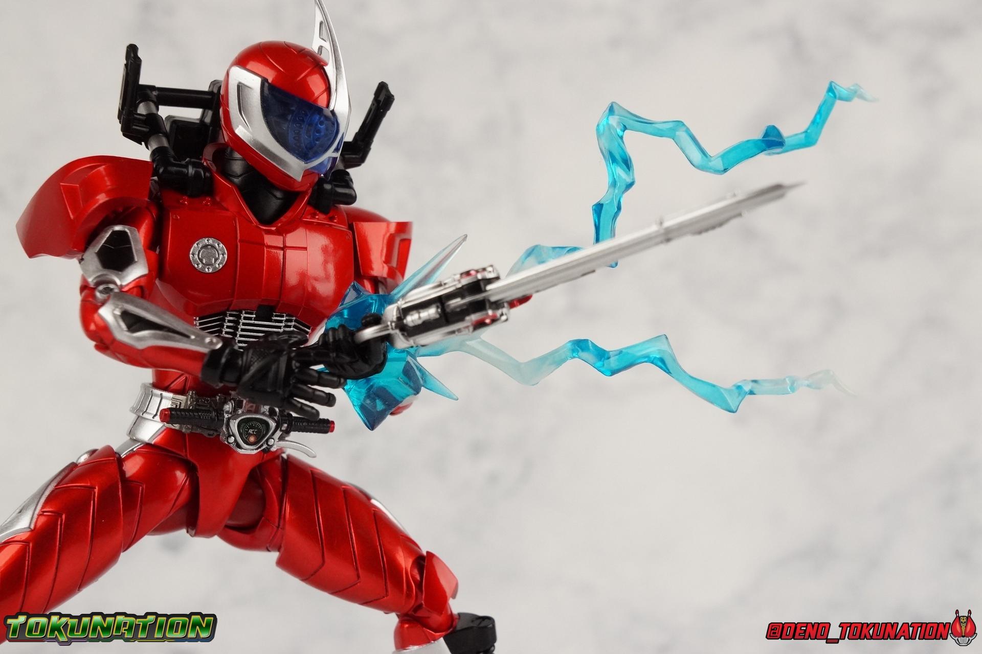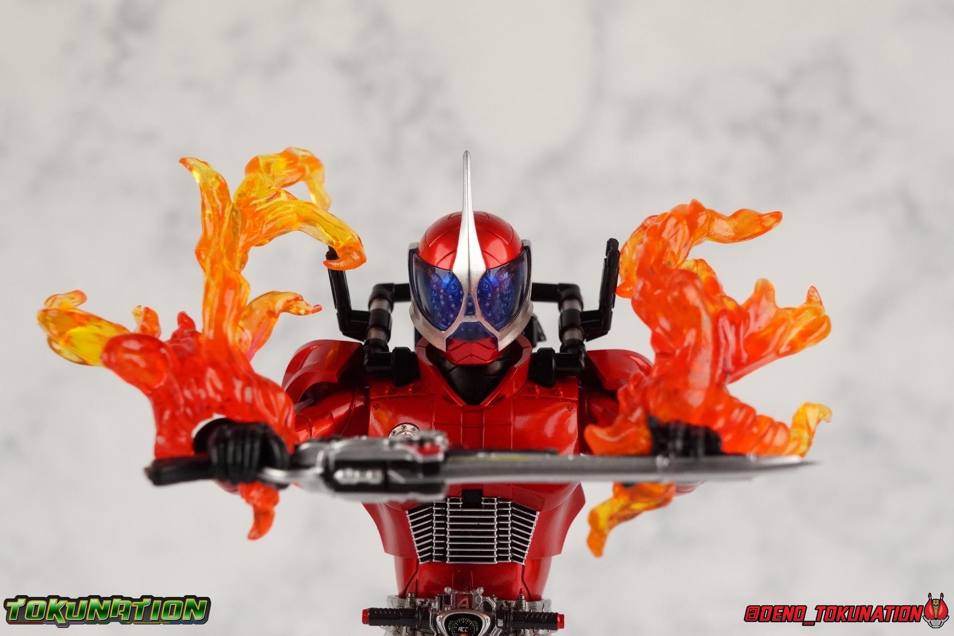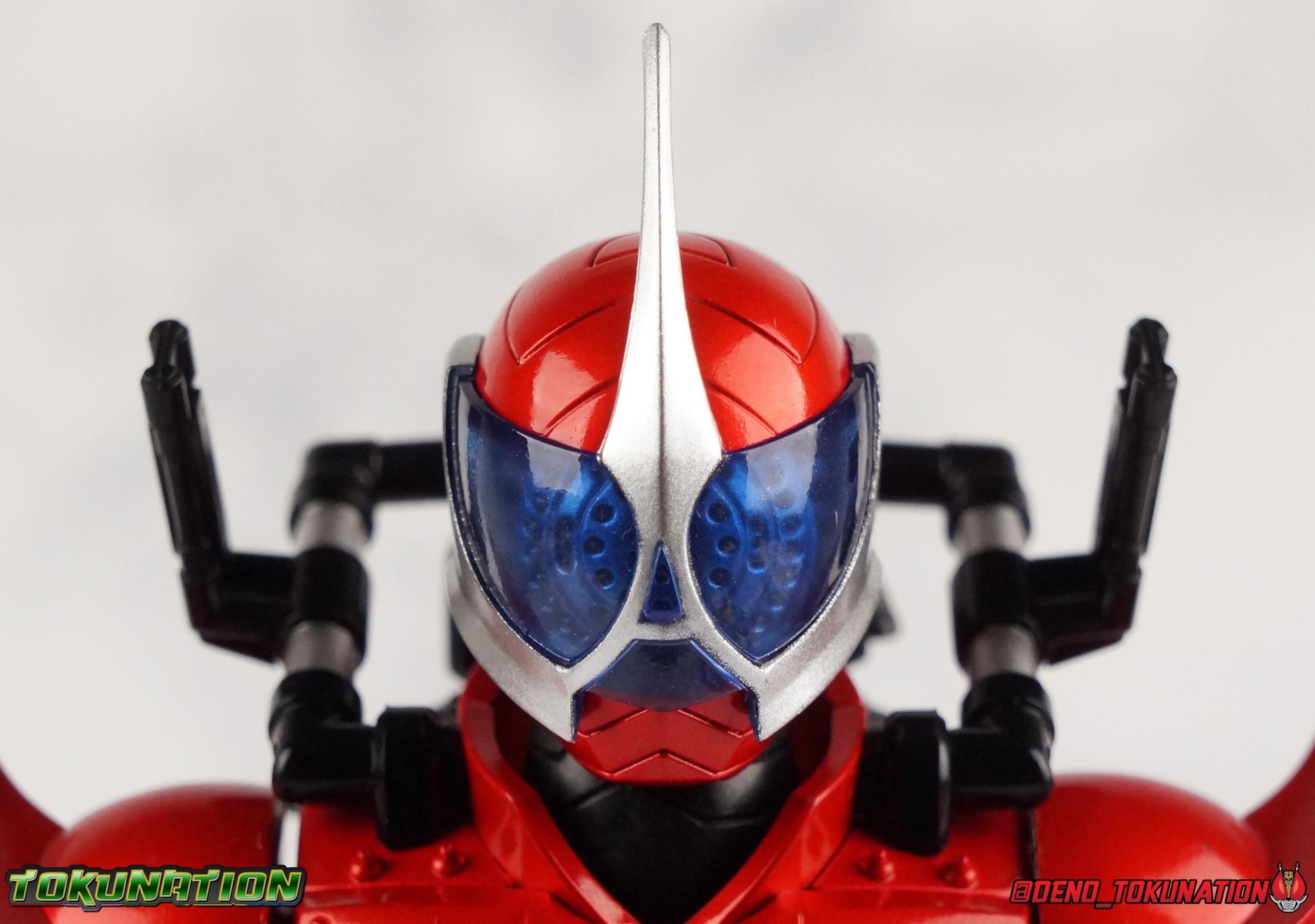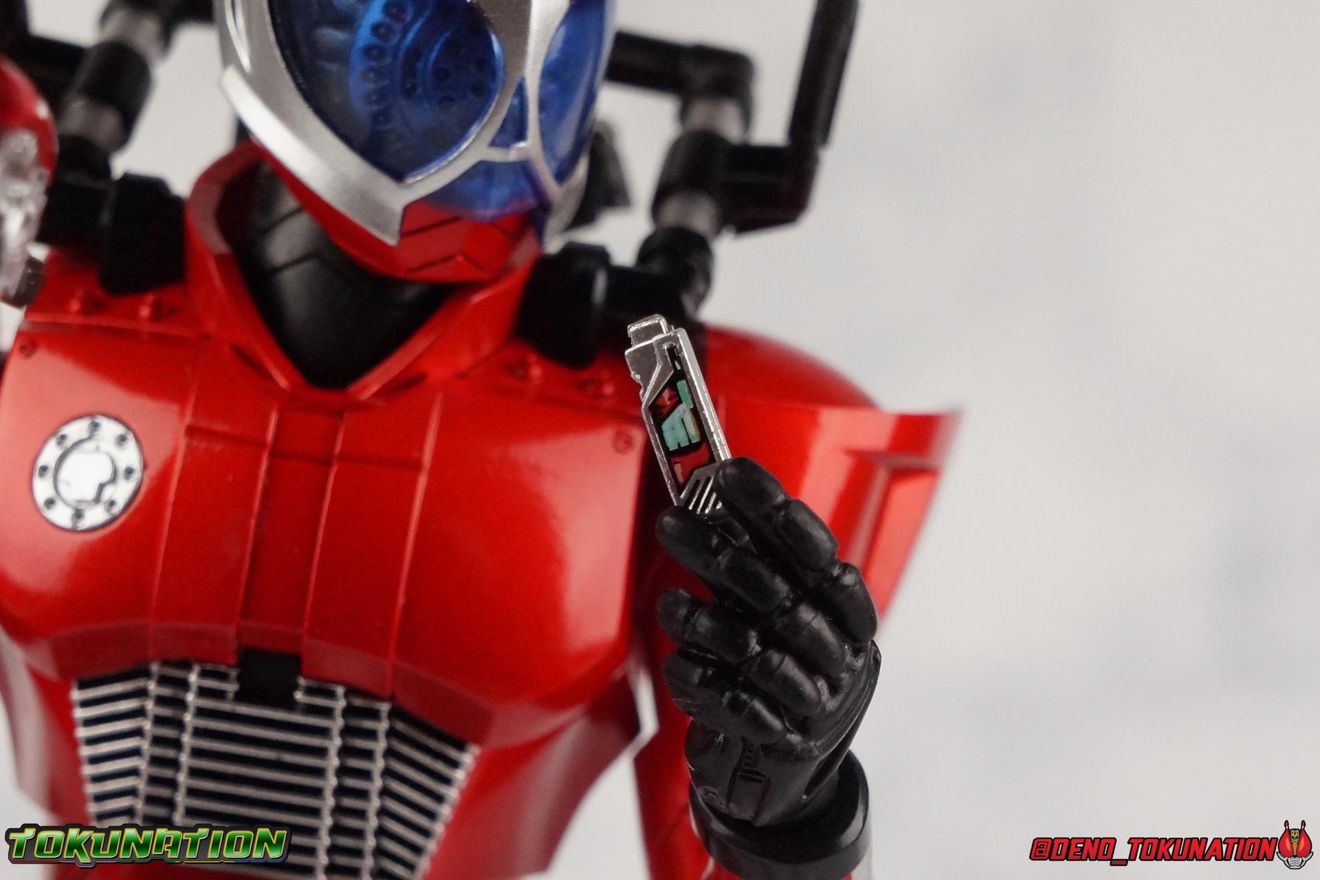 Ryu Terui was an ordinary police office like anyone else, until the day that Isaka the Weather Dopant savagely murdered his entire family. With the help of Shroud though, Ryu began a quest for his revenge as Kamen Rider Accel! Years ago, when S.H. Figuarts was still a pretty fledgling line Accel had his first collector style figure. For the time, it was really pretty great. Good detailing, decent poseability, even some nice diecast feet for stability. But as with many figuarts from that era, it's aged out. Now, 7 years later, Bandai has revisited this character as the next entry in their premium renewal line with S.H. Figuarts Shinkocchou Seihou Kamen Rider Accel! Packaging This is the one area I'm always going to be less than impressed with for Shinkocchou Seihou. While the the slip cover box style actually is something I really like, it's always quite boring too. The standard black & white packaging with a few official images just doesn't wow me like it did when this subline was still fairly new. I still think it's some of the best collectors style packaging we could hope for, but I would like to see maybe the colors get mixed up a bit at least. Main Figure Like I mentioned above, it's been 7 years people. 7 years since the original Accel figuart was released. I honestly hadn't even realized it had been that long, but let me tell you now that Seihou Accel induces some serious whiplash. The differences between the original & Seihou releases of Decade, Kuuga, Kabuto, they were stark. W was on another level entirely. I dare say that Shinkocchou Seihou Accel is every bit the kind of improvement that W was. He's just a top notch release. For starters, Seihou Accel is just bigger. As you can see in my comparison shots below, he's about a head taller than the original. Overall about 15% larger and bulkier. This was much much needed. A figure that can finally match the suits proportions properly. But really it's more than that. This figure excels (see what I did there??) in putting the original to shame in every conceivable way. From an articulation standpoint there's really no comparison. Seihou Accel features the best combination of ankles knees & hips I've seen on a figuart in a long time. Plenty of clearance for the ankles, strong toe bends, nice flat feet to achieve balanced poses, hips with a wide range of motion thanks to their complex design. It's just fabulous. Now let's take a pits top at the Accel Driver. This meticulously detailed henshin device looks every bit as spectacular as the W Driver did, and like it, it can accept Gaia Memories like the included Accel & Engine. It's also removable, surely to replicate Accel's transformation to bike form, but obviously this figure can't accomplish that. The rest of the torso, like the rest of the figure is exquisite (a few minor scuffs in the silver paint aside). And it has plenty of clearance, a good arch for the back etc etc you get the picture. Now let's look at my one big qualm with this figure, the arms. While they are a vast improvement over the original, I take issue with two things. 1, the shoulders are kind of horrendous. The shoulder pads are hinged well enough, but for some reason not in any way that facilitates them clearing the actual shoulder cavity for posing, they impact it alot, but even if you remove them entirely, the shoulder sockets are very tight and kind of limited in most circumstances/ You have to apply a lot of force sometimes to move them. On top of this are the wrists. When I plug hands onto them, the peg holes seem too shallow, the hand sort of floats above the ball joint and doesn't rest naturally so it looks awkward. They also pull off the ball rather easily when posing. But to me at least the hands also feel a bit disproportionate and over-sized. They get the job done, but they do look off. Finishing up top, we have Accels head, which really captures his likeness better than either of the previous figuart offerings, the original head or the "improved" one that came with Accel Booster. This is a sharp, accurate likeness that really sells the notion that a person could be wearing that helmet in there. My only complaint is the neck is just a tad too short so the chin impacts the collar around the neck on the sides. It's not detrimental, just annoying. Overall this is an excellent release. I have issues with the arms, but honestly that's pretty minor. This is a gorgeous figure that communicates Ryu Terui's personality astonishingly well. And paired up with Kamen Rider W, it's like these guys walked right off screen. Bring on Skull & Eternal! Accessories As with most any Shinkocchou Seihou, this figure comes with a perfect array of accessories: 5 - sets of hands. Basically all purpose for everything you'll need. 1 set of open palmed hands, several sets for holding things specifically for the Engine Blade and a bike riding pair, and there's even a pair for holding Gaia Memories. 1 - alternate head. Basically the only difference here is that the underside of the visor has some additional painted details to replicate the way the visor lights up when Accel powers up or executes a Maximum Drive. 1 - Accel Gaia Memory. Just plug this one into the Accel Driver to complete the figure's standard look. I'm still astonished, ever after W, just hoe well detailed these tiny things are. And easy to lose! Just be careful when handling them. 1 - Engine Gaia Memory. One of Accels "artificial" memories, Engine should be used in conjunction with the next accessory. 1 - Engine Blade. Accel's signature sword and sort of all purpose weapon. Able to accept Gaia Memories by folding the blade forward, the detail on this item basically matches what was present with the original figuart. This one is a bit sharper, more crisp paint apps, and is generally just more representative of the actual show prop. It's not terribly different from the original, but it's still noticeable to me. Final Thoughts As with Kamen Rider W, and in fact any Seihou