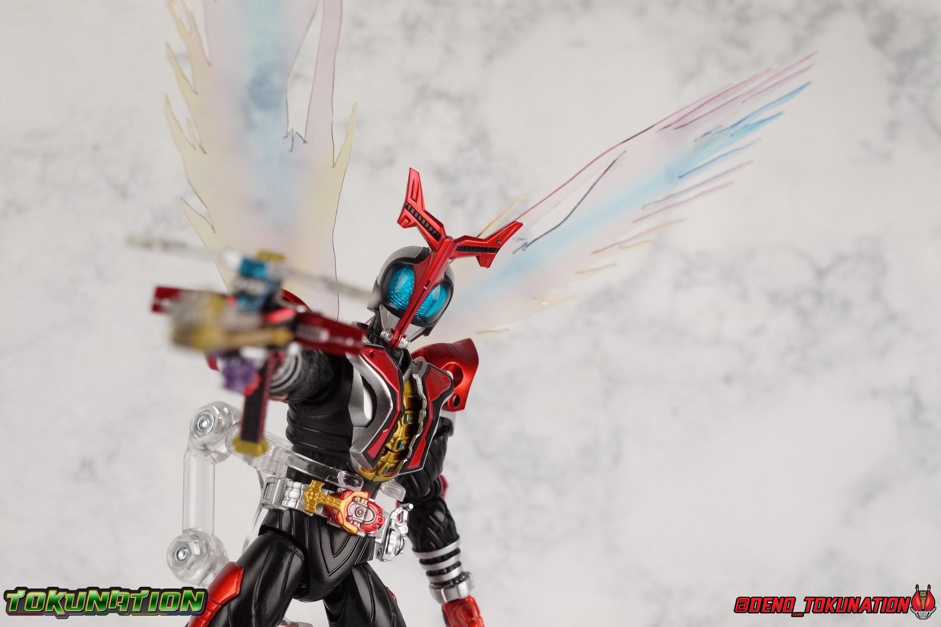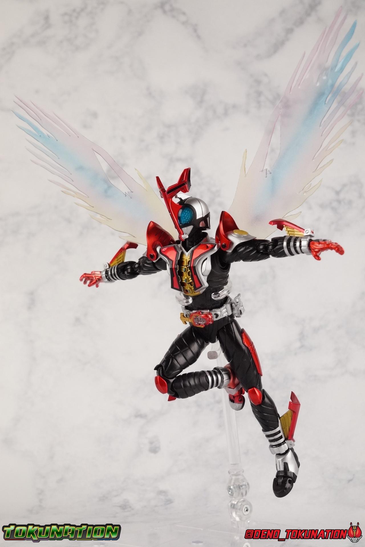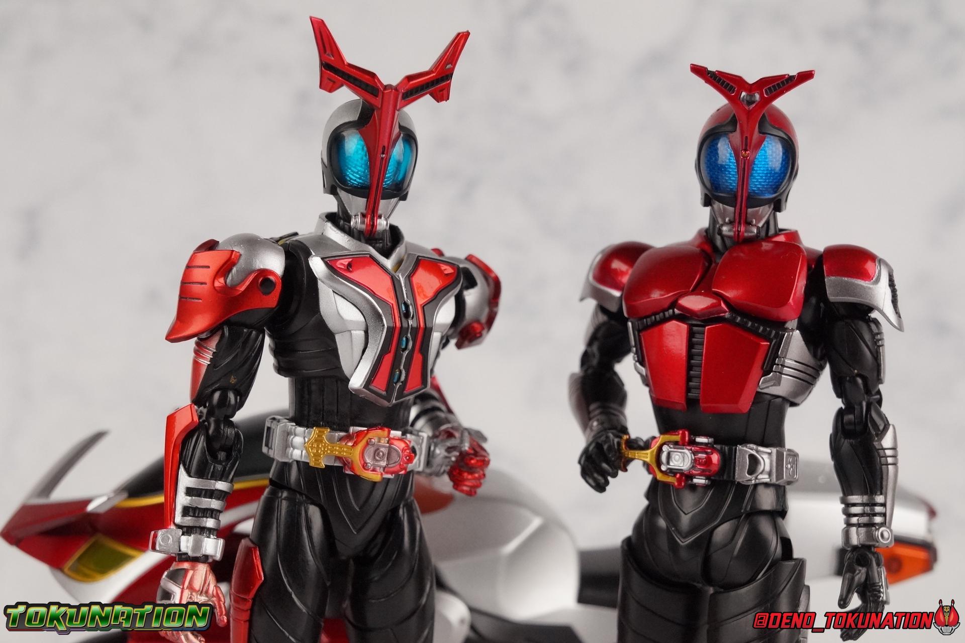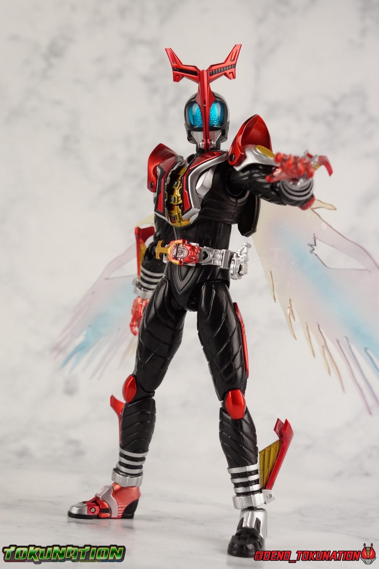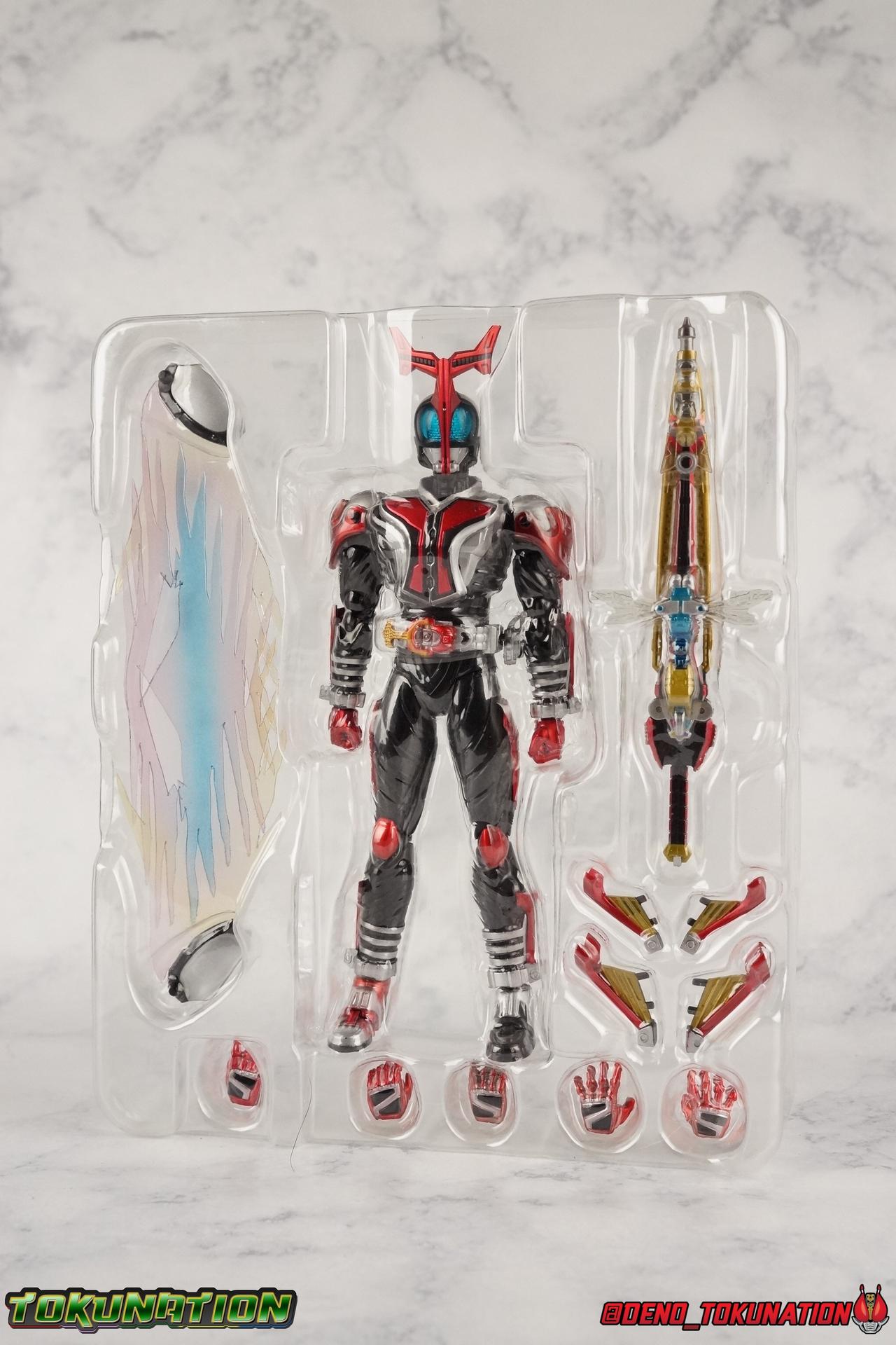 Well, it's official. Tamashii Nations has confirmed release details for Shinkocchou Seihou Hyper Kabuto! So we've decided to head back down memory lane again and do a gallery of the original S.H. Figuarts Kamen Rider Hyper Kabuto! Remember, this figure came out nearly 7 years ago. So of course it won't match up to the standards of today's releases. But let's examine where the new Seihou release is likely to improve. Packaging Like many older 1.0 releases, the original Hyper Kabuto came in a pretty plain box. Just basic two tone red with black text & one gray scale photo of the actual suit rather than the toy. Indeed this was the boring era of figuarts packaging. Main Figure Now, of allllll the figuarts based on the original Kabuto mold, Hyper is probably the best one. It suffers the least from all of that body types' original flaws. No noticeably bowed legs, no loose hip joints, and a head that's at least proportionate to the body. However it does have it's own unique flaw. Fading paint. Specifically the red paint apps. Over time they seem to fade excessively, in much the same way that Knight Survive and the original Kuuga Rising Mighty have. It's mostly present on the arms and especially on the hands, and there's no real way to stop it either. That being said here's how the figure actually functions. As I said before this mold doesn't really suffer from the same kind of persistent QC problems as the rest of the original line. It does however have some loose ankles and very tight hips. And the paint fade is of course an issue. But as you can see below, this is actually still a pretty serviceable figure. It's no Seihou, but it's been a good figure to fill out your Kabuto display for the last 7 years. While the combination of loose ankles and tight hips can make some posing difficult, ultimately this mold still has plenty of personality. That mostly thanks to the really great range of motion in the arms and head, and the bulk & detailing of the armor on the upper body. This figures' body armor is the real selling factor though. While many figures of the time and even now, don't feature built-in form switching gimmicks, Hyper Kabuto did. Thanks to some swappable ankle & wrist components and some removeable chest panels you can trasnform Kabuto from his standard Hyper Form to Clock Up mode. The wrist & ankle wings peg on when you remove the red panels that are already present. They can come off easily so just be cautious and try not to snap the tiny pegs that hold them in place. The chest panels are on similarly tiny pegs, you just remove them and peg them back on a little further out from the center. To achieve the full Clock Up look you also need to fold up the extra red shoulder pads. All in all it's a pretty satisfying transition from one mode to the next, and again it's just something you don't see in many figures. There's also a pair of light wings included to finish off the look of Clock Up, mostly for Kabuto's Hyper Kick attack. While not as new or nice as many modern releases, this is a figure that can still work for many collectors on a budget. Accessories Surprisingly Hype Kabuto is pretty loaded down for a 7 year old retail release: 2.5 - sets of hands. One set of open hands, one set for holding the Perfect Zecter in sword form, and single right hand for pointing up to the Path of Heaven. 1 - Perfect Zecter. It's actually a pretty impressively detailed weapon for the era. It can do the rudementary trasformation from sword to gun form quite well. And the individual Zecters present on it are all removable as they should be. It's pretty well detailed for what it is honestly. It's a little too heavy for the weak wrists and shallow hands to hold up but you can get him in the poses you need to get the job done. 2 - replacement wrist wings. These parts should be used in conjunction with the ankle wing parts and the wings of light for the figures' backpack. These help replicate Hyper Kabuto's Clock Up mode. 2 - replacement ankle wings. These parts should be used in conjunction with the wrist wing parts and the wings of light for the figures' backpack. These replicate Hyper Kabuto's Clock Up mode. 2 - "wings of light". You have to remove some small pads on the backpack that are a bit like a carapace, but the wings themselves have new enlarged pads attached to them too. The wings are actually pretty nice, given they're just clear pieces of plastic with some rainbow application applied. They really do look nice, but seeing pictures of the new Seihou wings, it kinds of puts these to shame. For the era this figure was released, that's a phenomenal selection. It really is. But the accessories that come with the S.S. release are all vastly improved versions of these so it should be clear who the winner will be in the match up. Final Thoughts Frankly this is still a solid figure after all these years. It's just a bit too small and lanky. Those are the biggest issues that plague this figure and the biggest reasons to upgrade to the upcoming Shinkocchou Seihou release. The accessories that come with the new one, particularly the new wings, far outshine what came with this original figure as well. But if you're on a budget and still a love of all things Kabuto, then the original Kabuto Hyper Form figuart should be right up your alley.