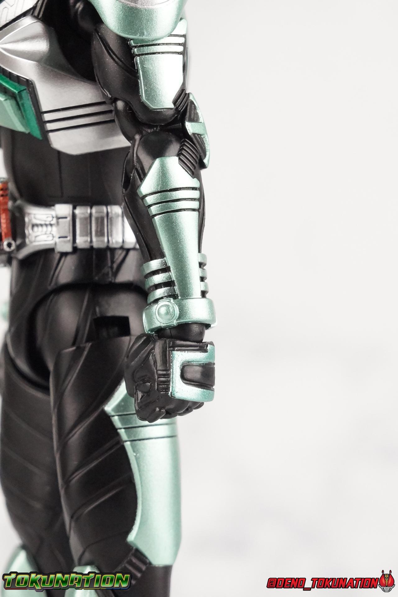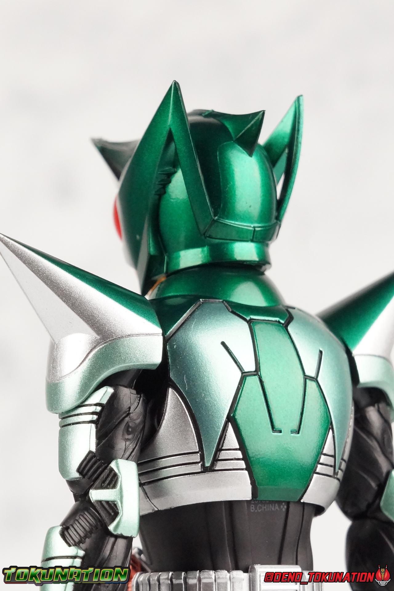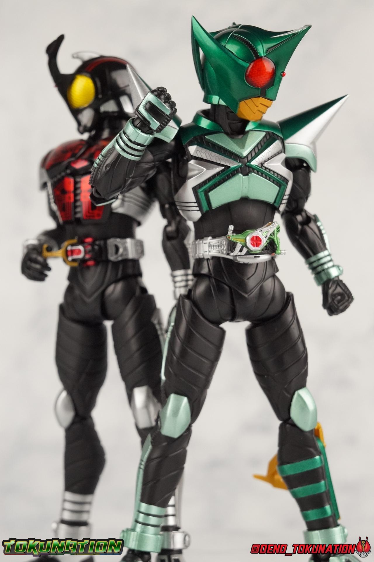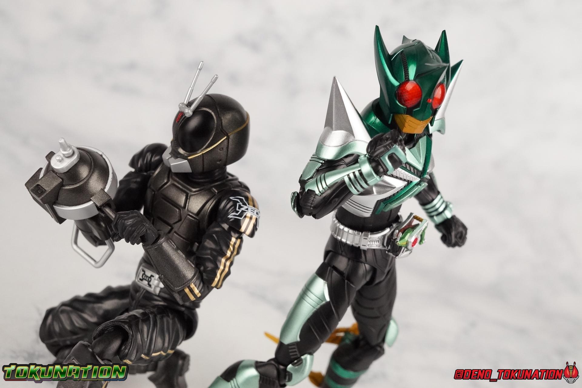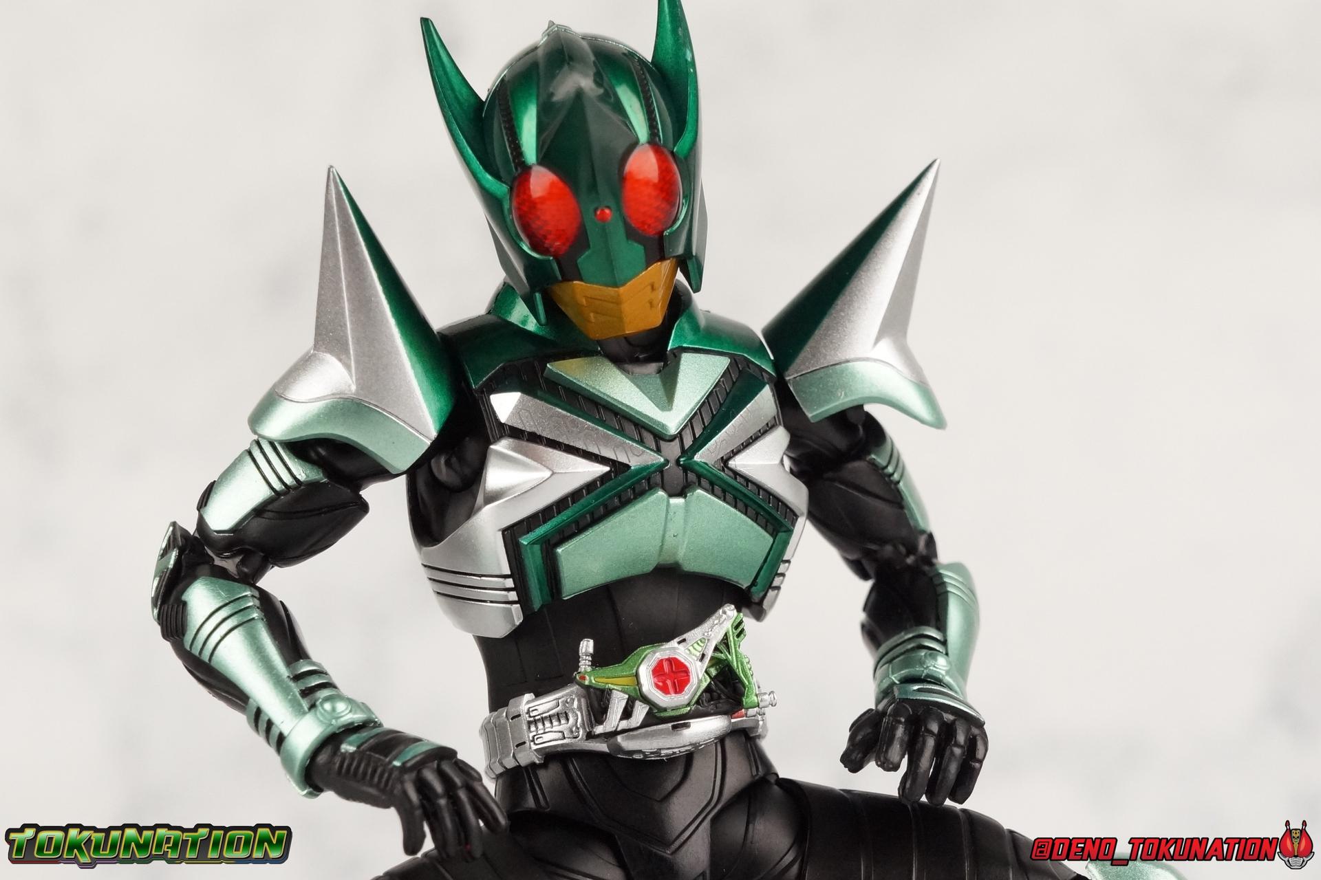 Sou Yaguruma was once the top dog of ZECT, commanding legions of ZECTroopers as Kamen Rider TheBee. The advocate of "perfect harmony" would soon be humbled however by Souji Tendou, and begin walking a darker path of self-loathing that eventually (and inexplicably) lead him to his new identity as Kamen Rider Kickhopper! Now Yaguruma is the latest addition to the Shinkocchou Seihou premium renewal line of S.H. Figuarts! So let's dive into our review of the figure. Packaging That standard slipcover packaging of Shinkocchou Seihou returns again. I promise I really appreciate the ease of access this kind of packaging provides. I really like this design more than a standard figuarts square box, but they've gotta start spicing things up. The one monotone image across the front of the box is getting rather boring. The presentation is nice but it's starting to fall flat in the face of more colorful and creative mainline releases like those from Ex-Aid is all. Main Figure Just as with Kabuto, Gattack, & Dark Kabuto before him, Kickhopper is an overwhelmingly needed update to an outdated and obsolete figure. The original release was plagued by the now standard QC issues of the original Kabuto line. Especially with those bowed legs. I'm happy to report that Seihou Kickhopper is the perfect successor to that original release. As with my last couple Seihou galleries form this series, you'll find a lot of similar passages in my review, it's just unavoidable when these figures share the same basic body and tooling aside from a few key areas. But I'll definitely zero in on the differences with this one. To start, the most iconic thing about Kickhopper is of course the Anchor Joint weapon attached to his left ankle. This unique item not only gives Kickhopper the 'jump' in his Rider Jump, but packs all the power behind his Rider Kick. It's also the most improved thing about this release. On the original figure it was a static accessory, permanently fixed in placed. This go around however the Anchor Joint is actually jointed and can be slid down the shin with the blade fully extendable to properly recreate a Rider Kick. The style of hips originally implemented in this mold provide a wide and balanced motion that allows you to replicate all of Kickhoppers most iconic poses & attacks. Though I do still think any standing kick looks pretty goofy in figure form. I would say the hips are limited only by their design as they do impact the waist assembly a little more prematurely than I'd like. But it's undeniable how versatile they are compared to many figures. The Hopper Zecter is really nicely detailed, especially when compared to the original. The details are sharp, the paint apps crisp, and it's even removeable. If you flip it around, the backside is also (properly) fully painted in Punch Hopper colors. It does pop off the buckle rather easily but it just looks so good. And while we don't have moving pectoral plates or flexible chest armor like with Kabuto & Dark Kabuto, Kickhopper's design is still pretty smooth, albeit a bit more limited in the upper body area. But you also don't have to worry about the torso impacting the Zecter. The new chest armor is really really nice though, it looks like a perfect replica of the show prop with really subtle paint details I had never really noticed before. The arms are free of nearly all obstruction thanks to wonderfully hinged shoulder pads. They do tend to look a little unnatural in some poses and expose the joints beneath however. But the elbows and wrist provide the same great range of motion we've come to expect from this mold, one that's still holding up very well 3 years on. Lastly we look at Kickhoppers head, which is just spot on. The original suffered from it's disproportionate size to the body as well as some issues with length and width. I'm happy to report that this go around the head is the correct size relative to the body and also the proper glossy green. The mouth plate is a brilliant gold and the compound eyes really sparkle in the right light. As with his 3 predecessors, Shinkocchou Seihou Kickhopper really is the ultimate apology for the original release. And being able to FINALLY recreate my favorite moment from Kabuto, the Triple Rider Kick in Seihou form, is the ultimate treat. Accessories Not much here, but just what you need: 1- Hopper Zecter (open). This is the flipped version of the Hopper Zecter from Kickhopper's Rider Jump/Kick combination. After the moving parts that were present on Seihou Kabuto's Zecter years ago I was surprised that Seihou Gattacks' was a swap out part instead, and I'm surprised again that the Hopper Zecter is the same. It just seems like something that could have been engineered to work instead. I mean just look at the W Driver & Gaia Memories. 2 - sets of hands. These hands are a bit odd if you ask me. The open hands are a very stiff variety of open palm. They aren't very expressive at all. The other pair are the standard type of "holding things" hands, and they look almost perfectly shaped for handlebars on a Rider Machine. But the Hopper Bros had no such bikes, nor any weapons they would have held. So these hands are a really pointless inclusion. The two glaring omissions that most collectors will notice are undoubtedly items included with the original figuart. The ramen bowl as well as a personalized Tamashii Stage. The ramen bowl was a pretty hilarious and iconic accessory, signifying one of the goofier plots of the show. And while the stage isn't nearly as important, it was nice that the original Hopper bros came with them. As is the original figuart is so dirt cheap now you could pretty much buy it just for those accessories. So while it's a bummer they weren't included here, it's no great loss either. Final Thoughts That's 4 down and well frankly quite a few to go. With Hyper Kabuto on the way finally, is it only a mater of time before TheBee, Sasword, Drake and others finally get this premium treatment as well